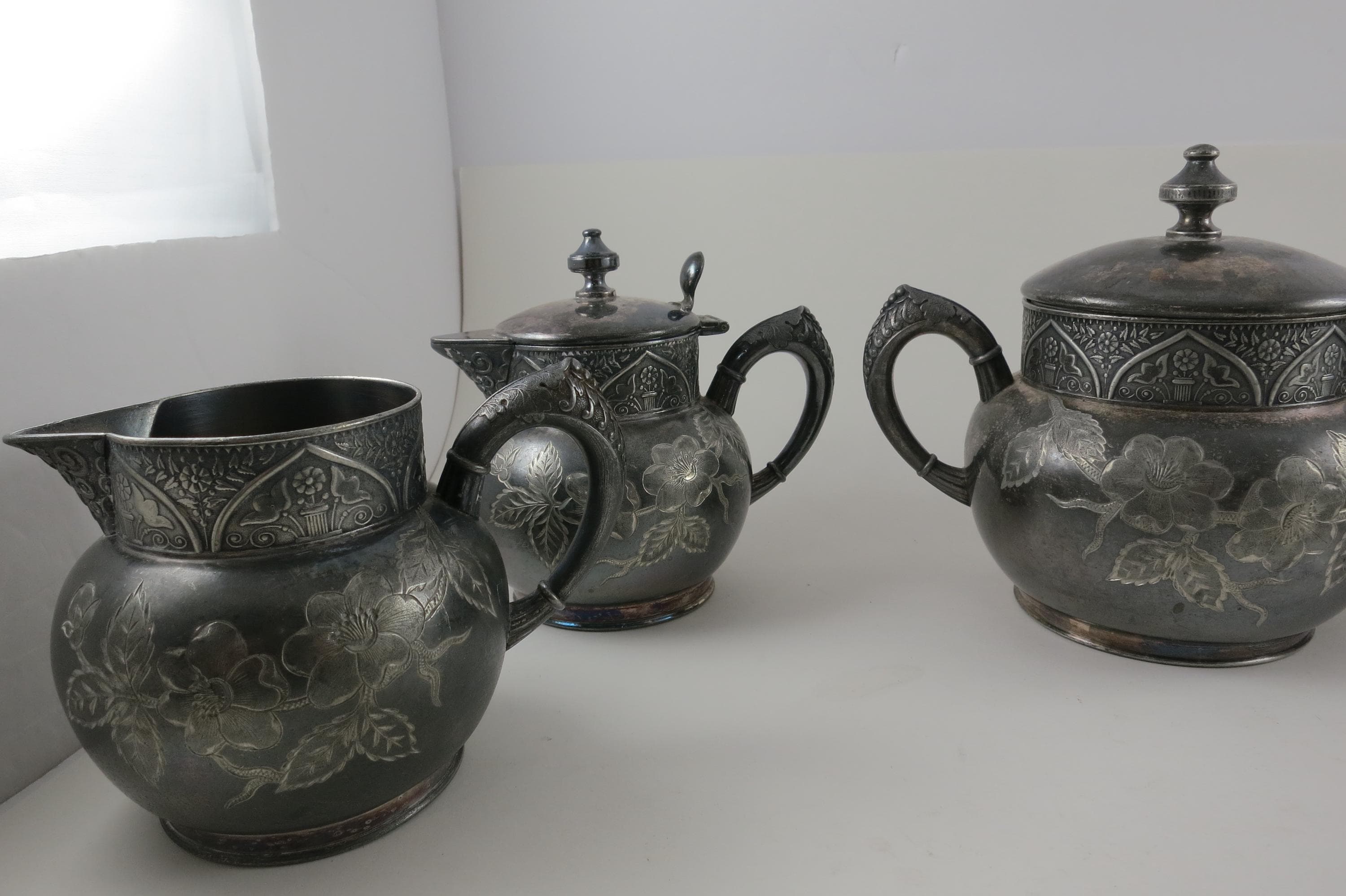 1881-1893 Hartford Silver Plate Company 5 Piece Set 1411 Etched Floral.