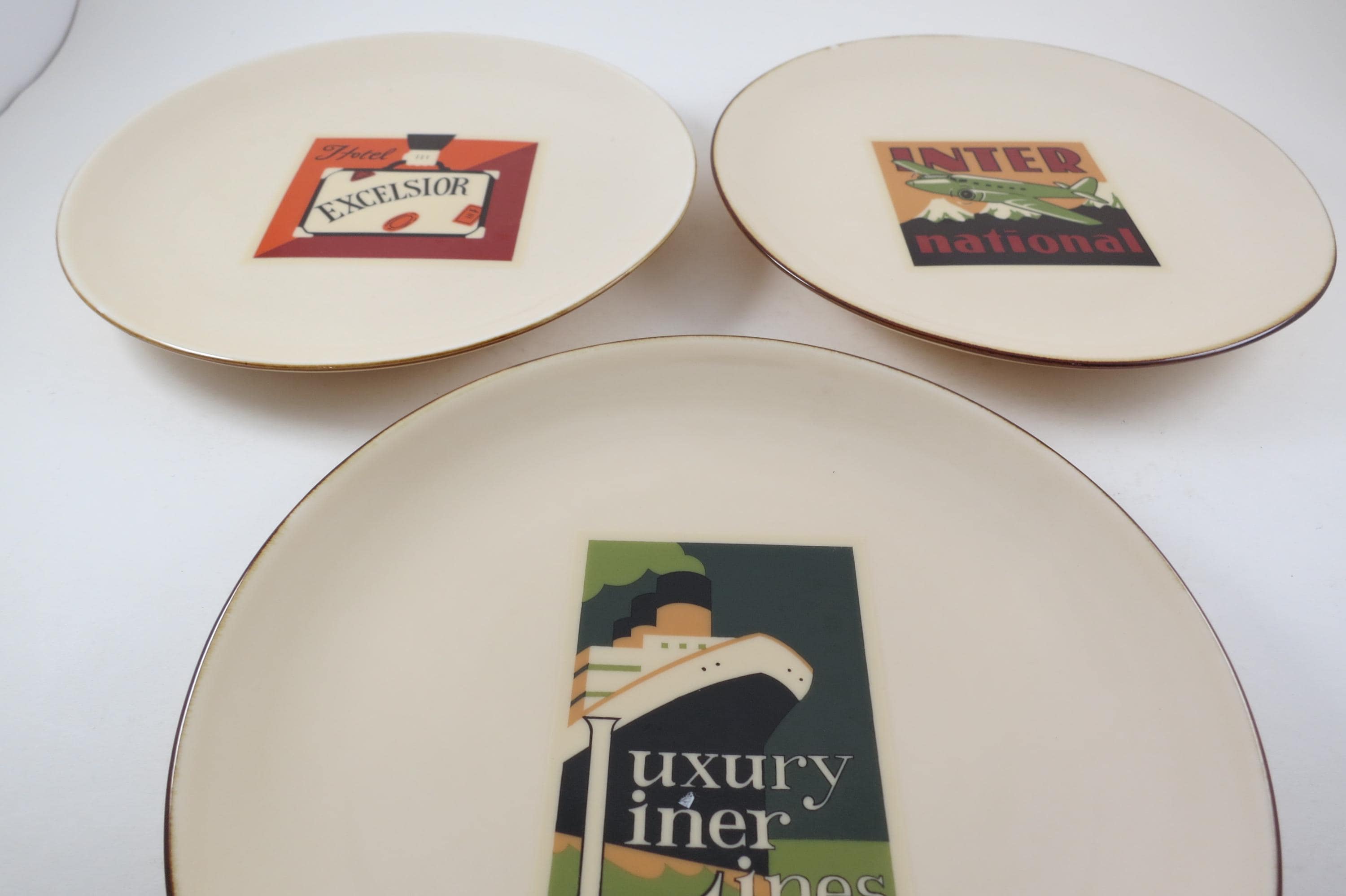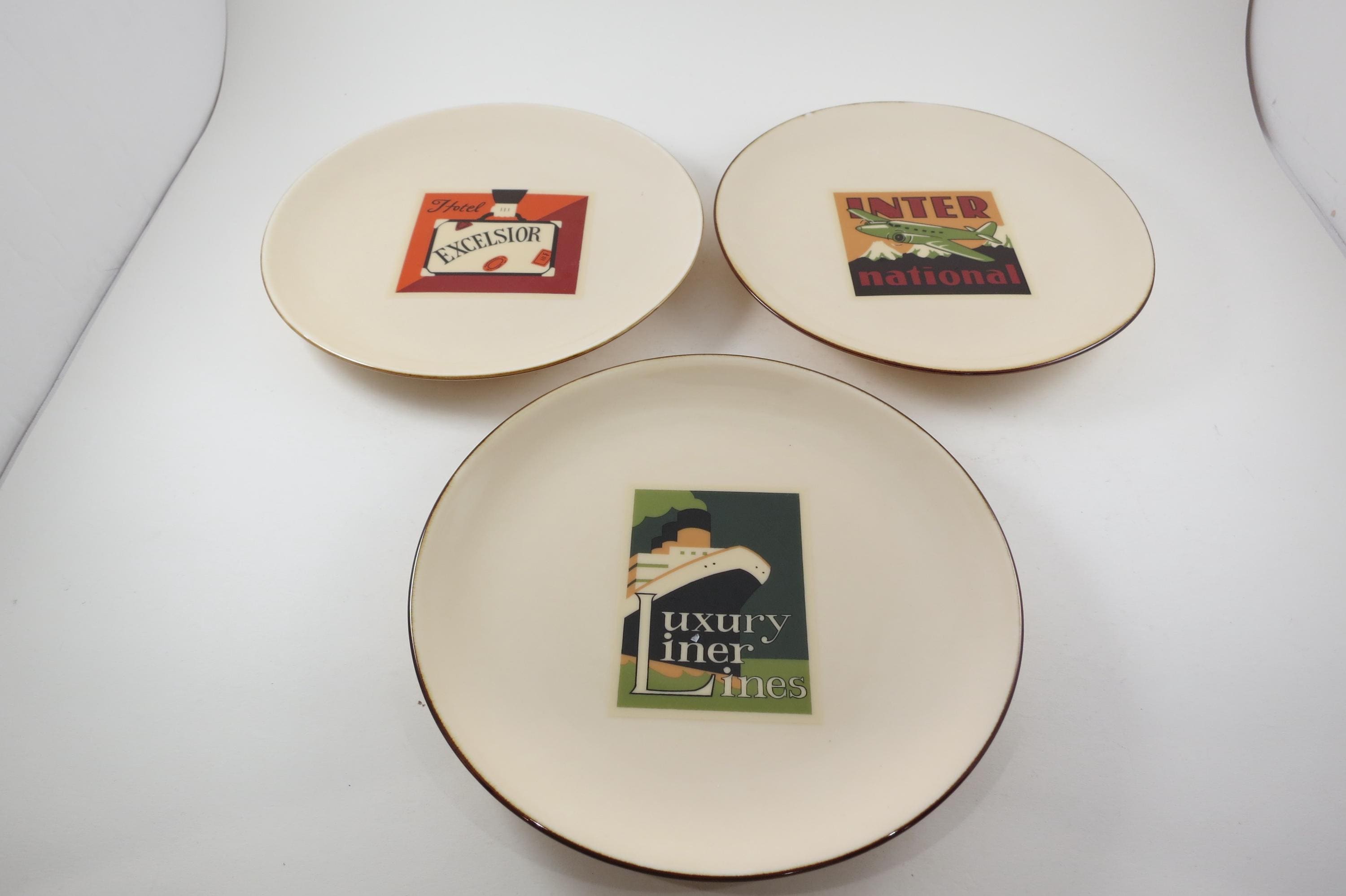 Set of Three Vintage Pottery Barn 2002 Travel Salad Size Collector Plates