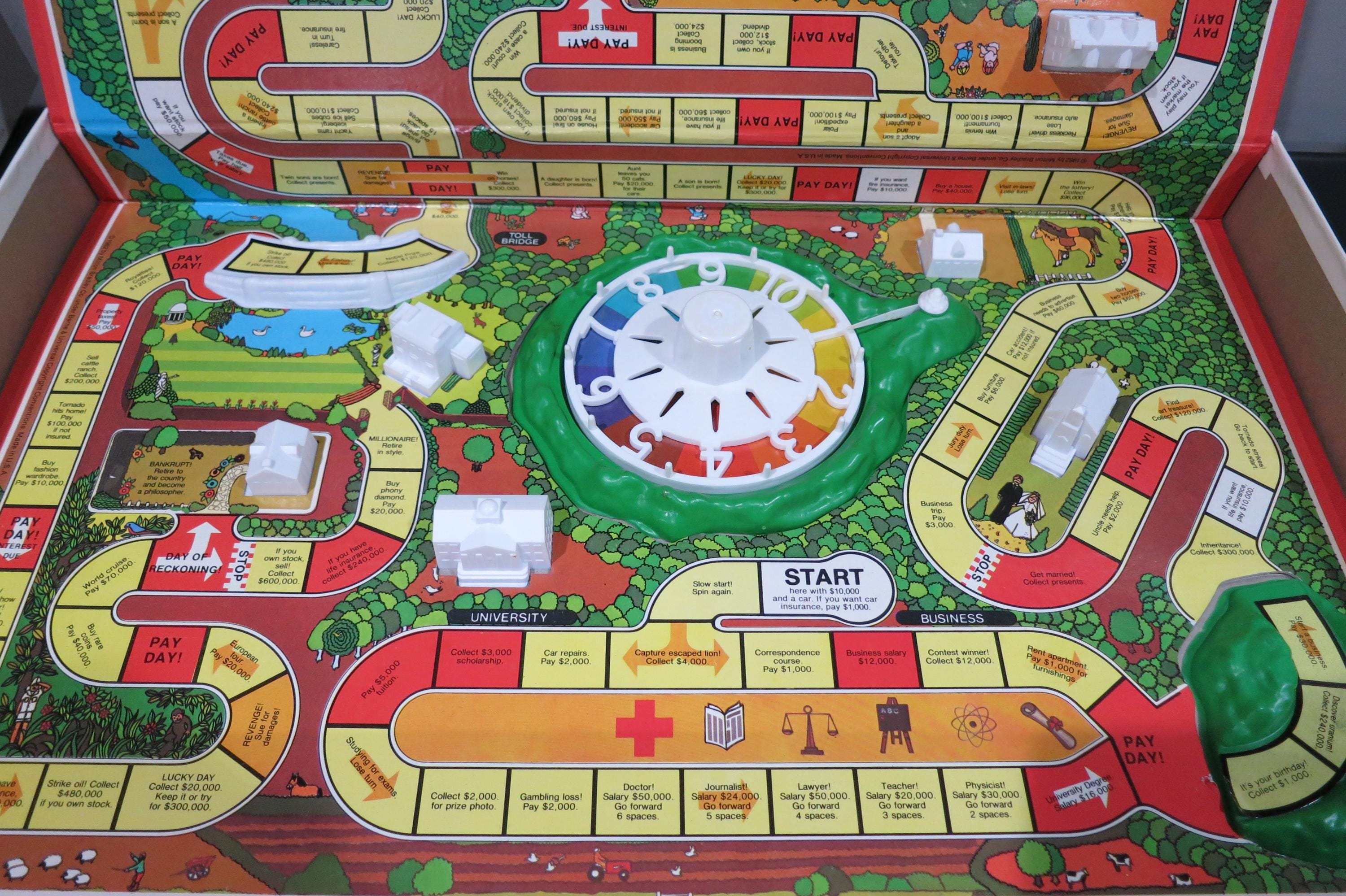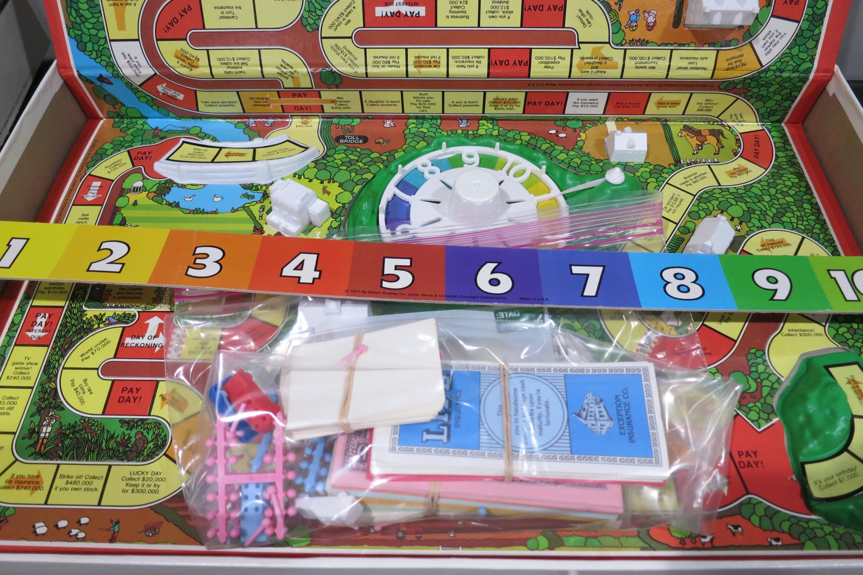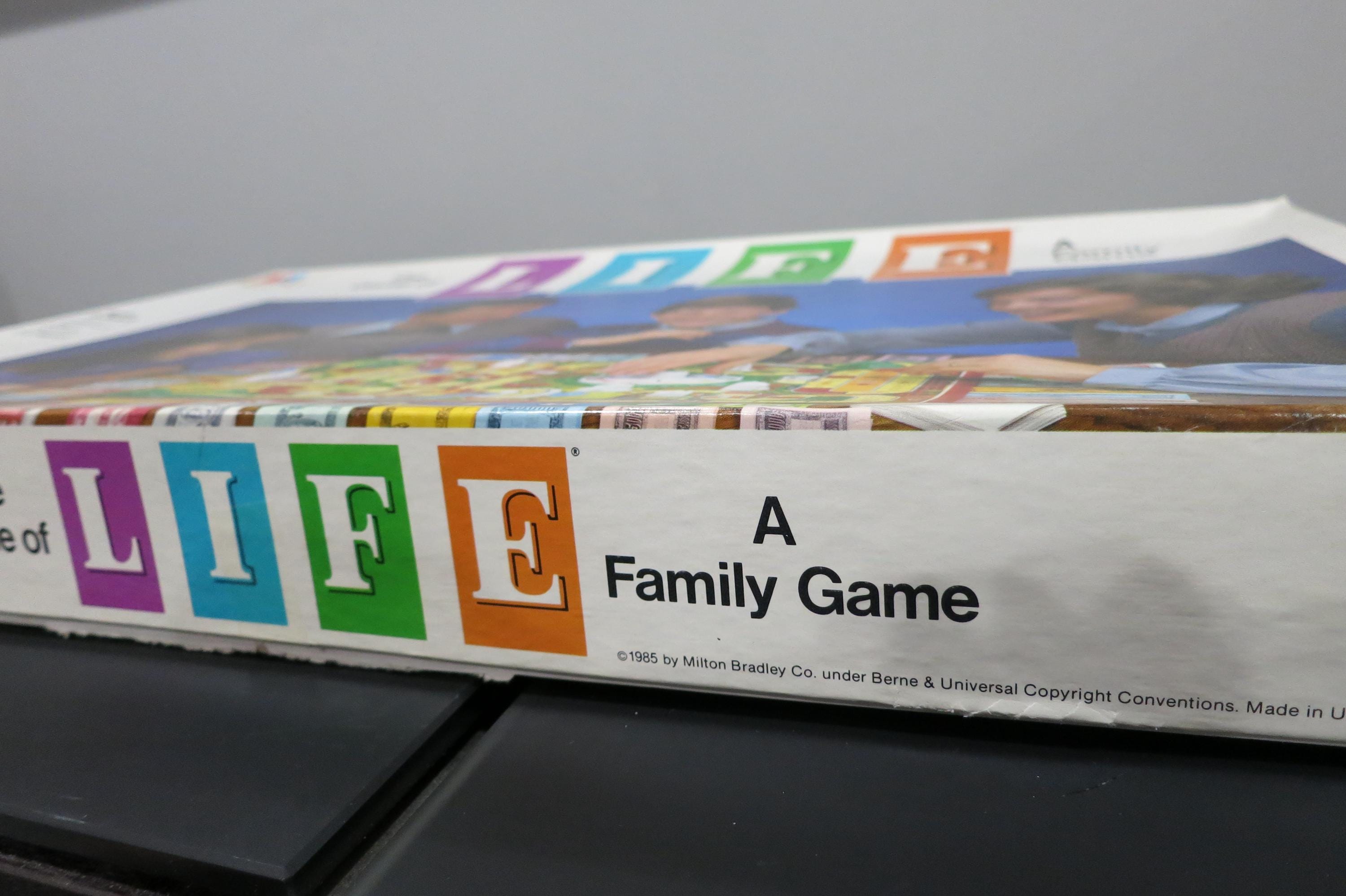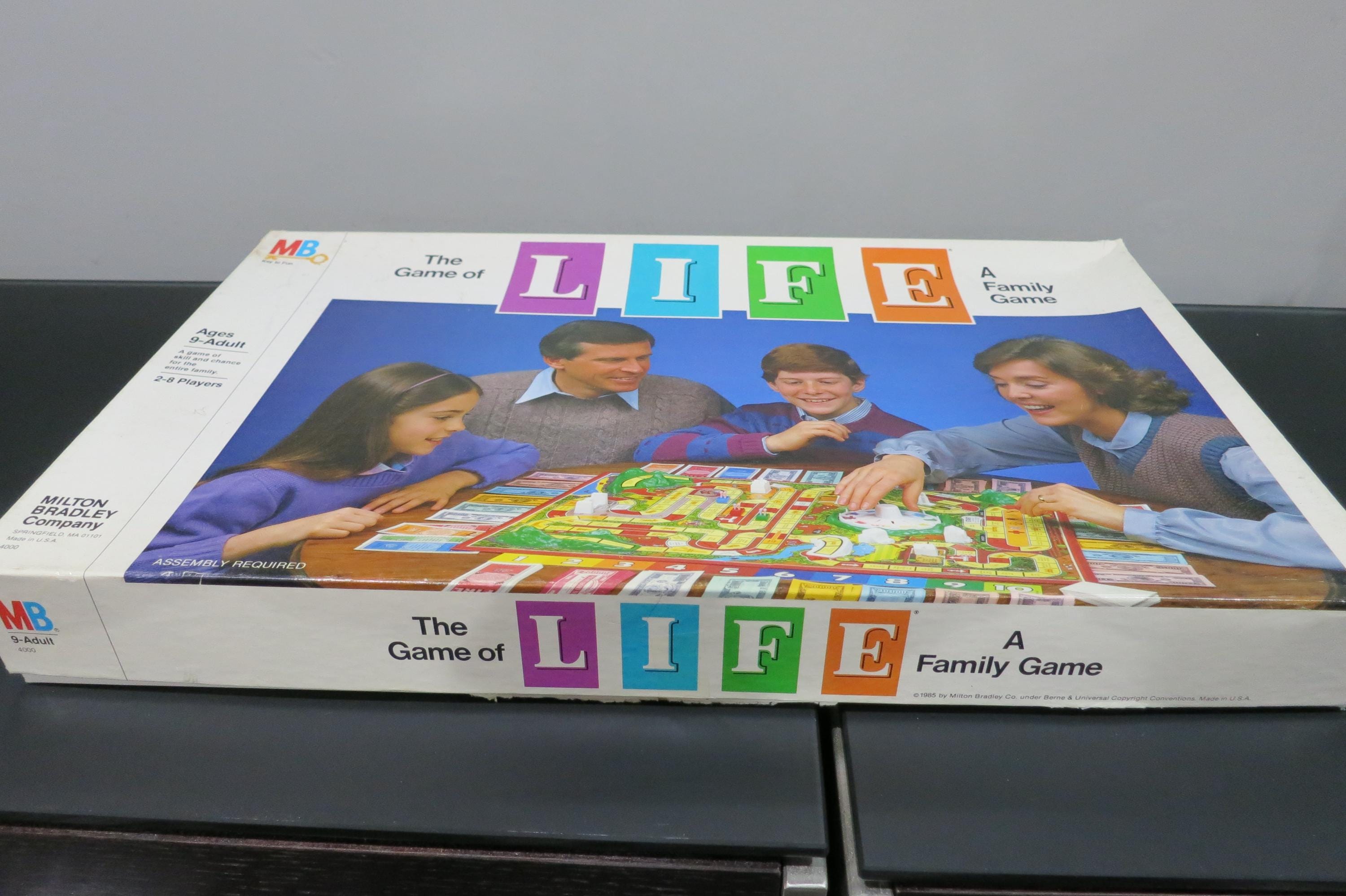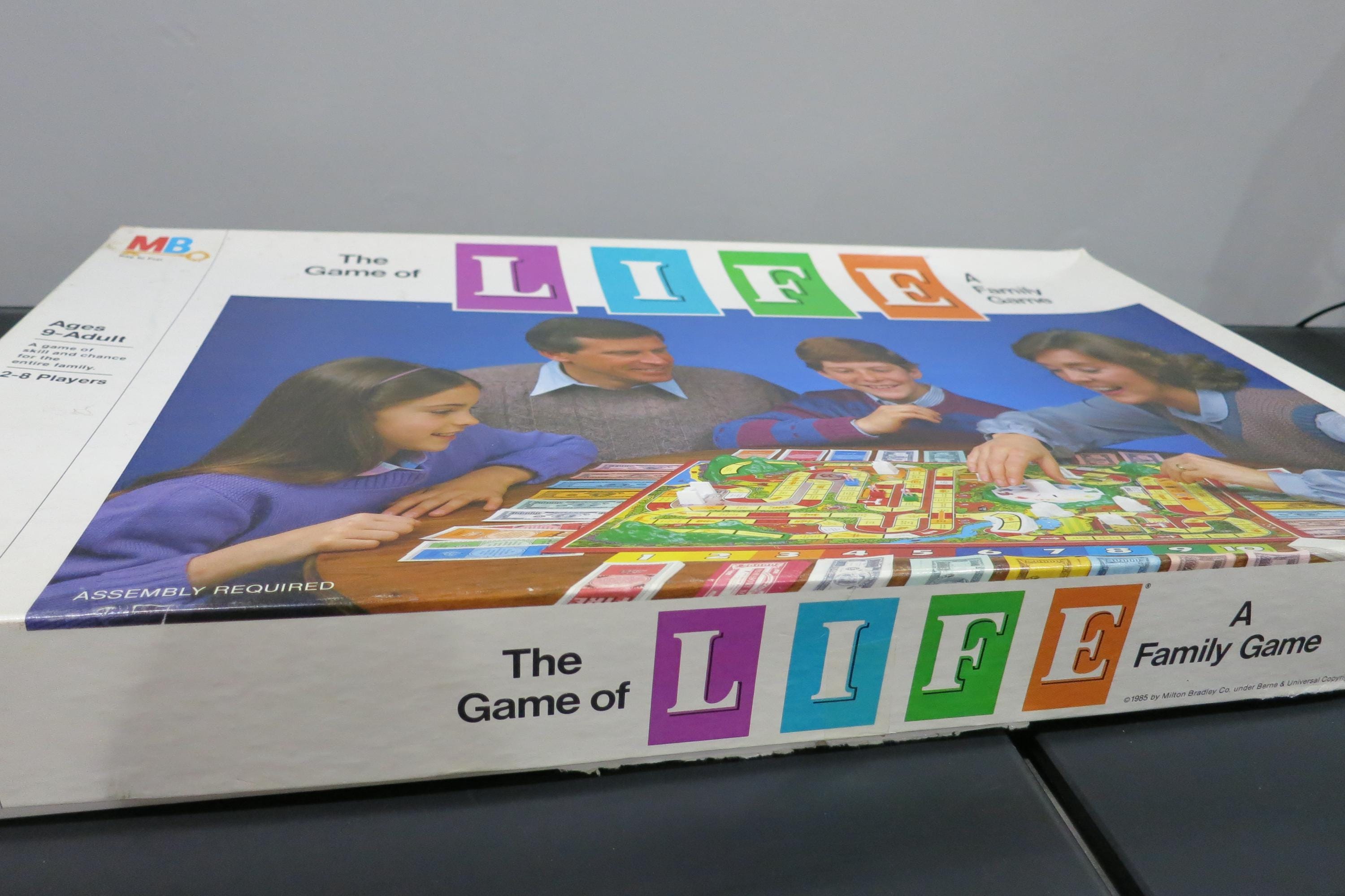 Vintage 1985 Milton Bradley Board Game No 4000 The Game of Life 100% Complete Excellent Condition. Great Game! Hours of entertainment. Box shows normal wear and wear on the bottom.