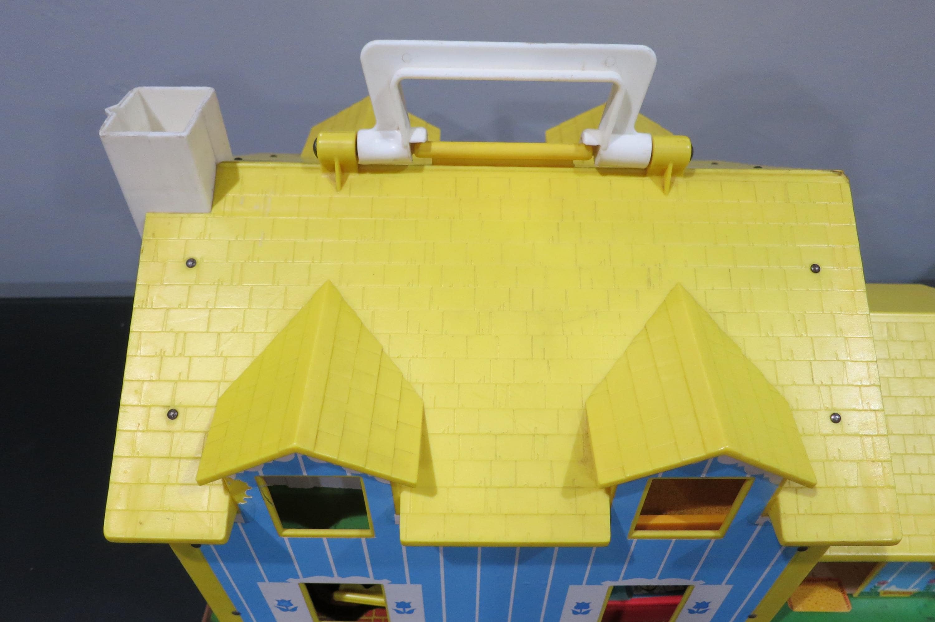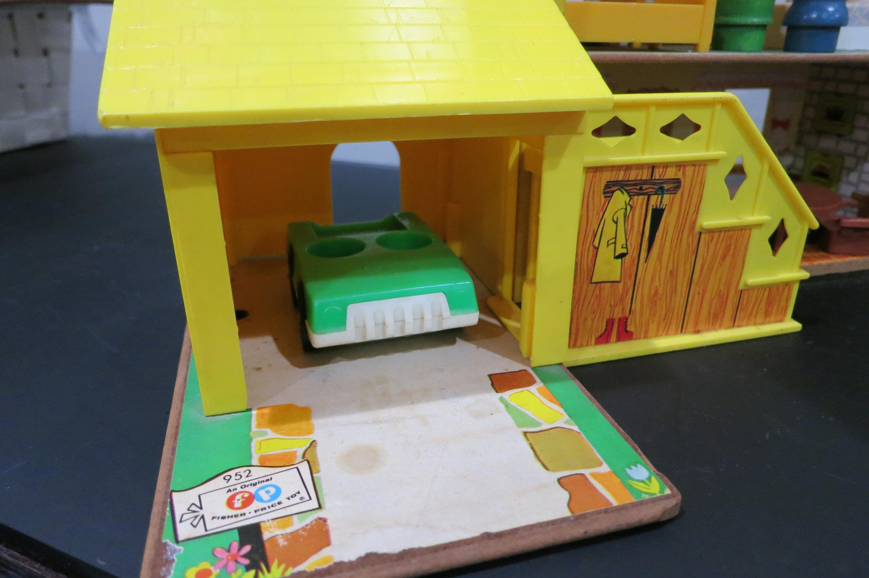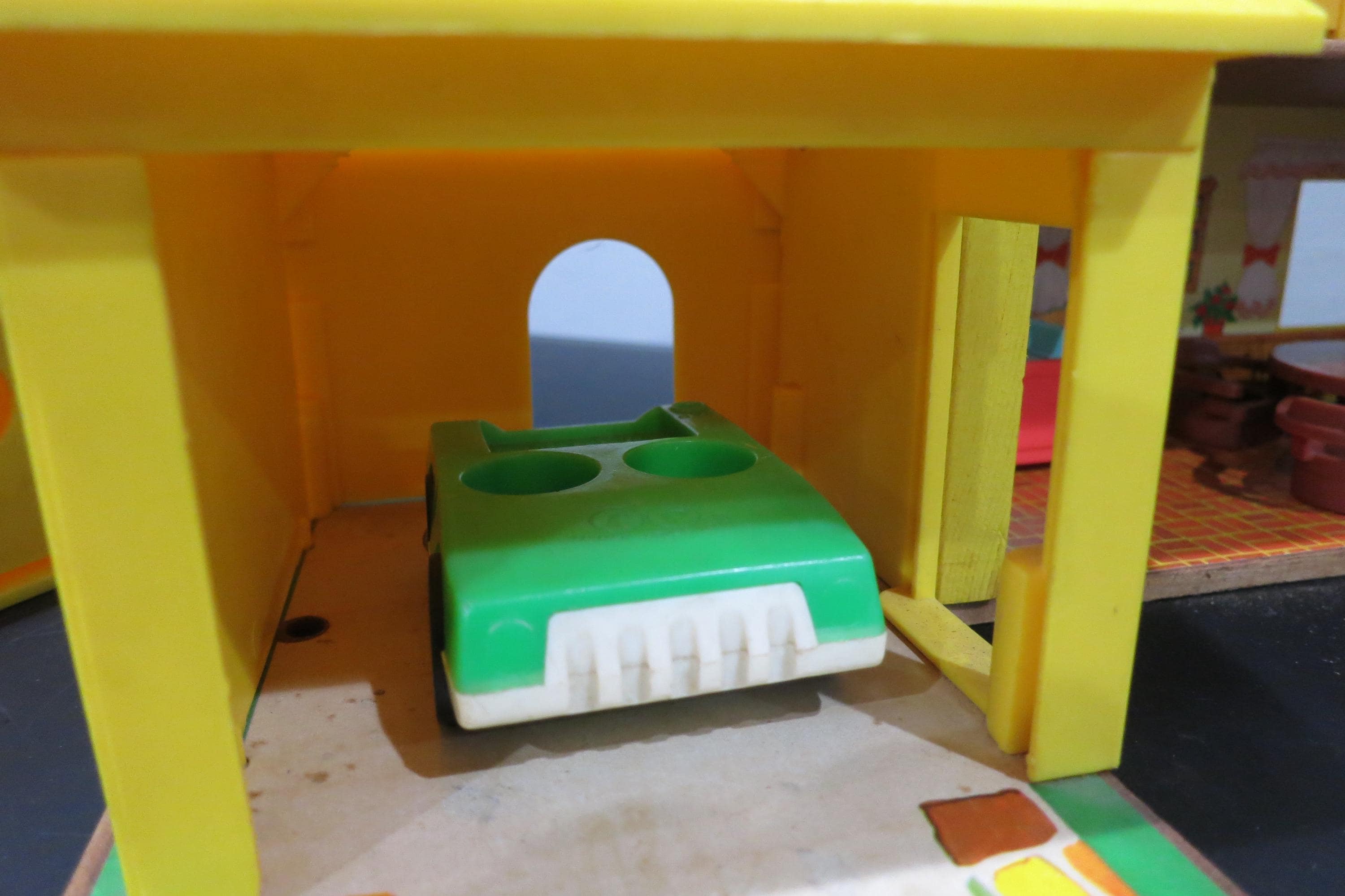 Vintage 1969 Fisher Price Play House: Yellow with Car Furniture People 22 Pieces