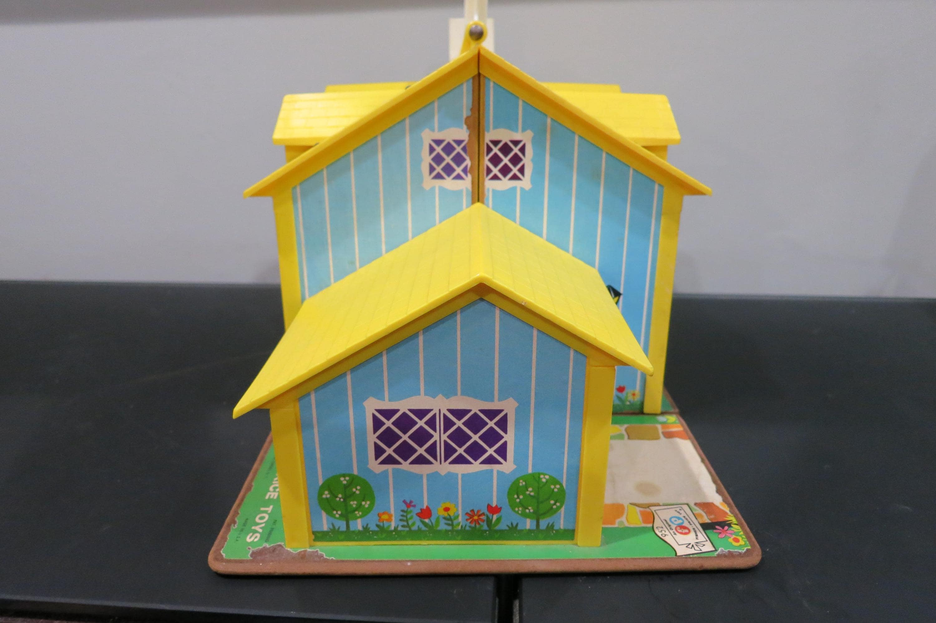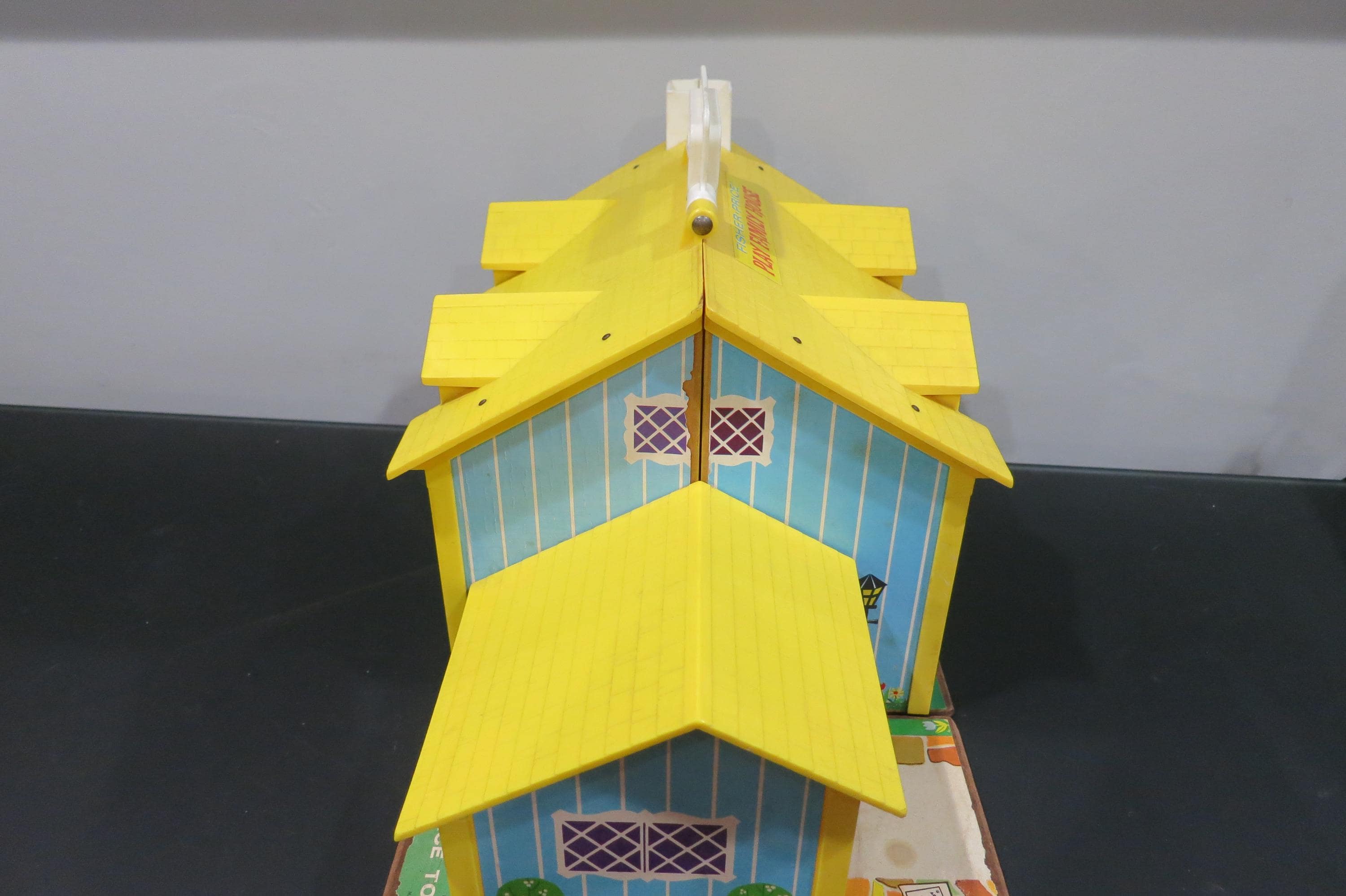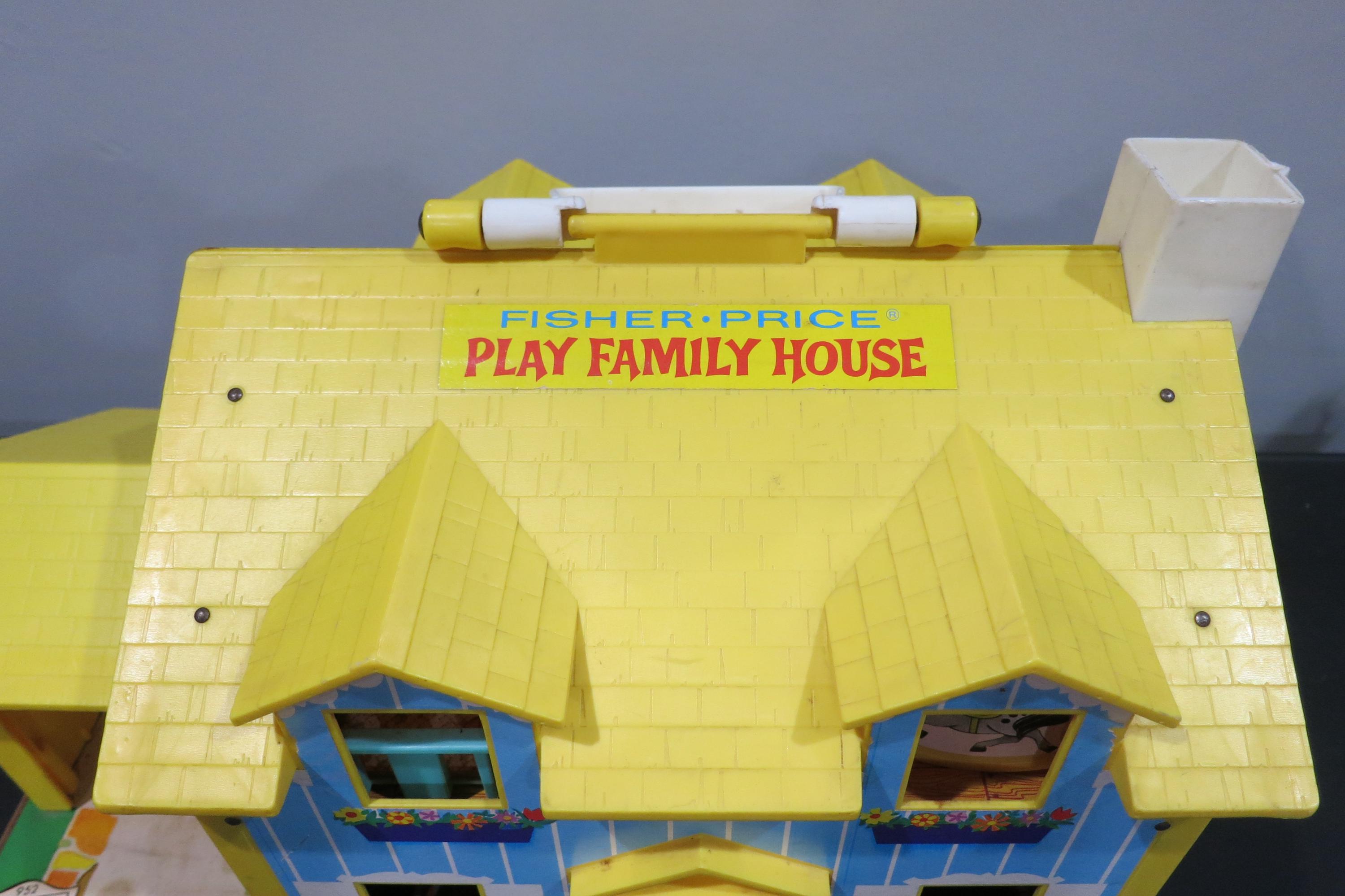 Vintage 1969 Fisher Price Play House: Yellow with Car Furniture People 22 Pieces