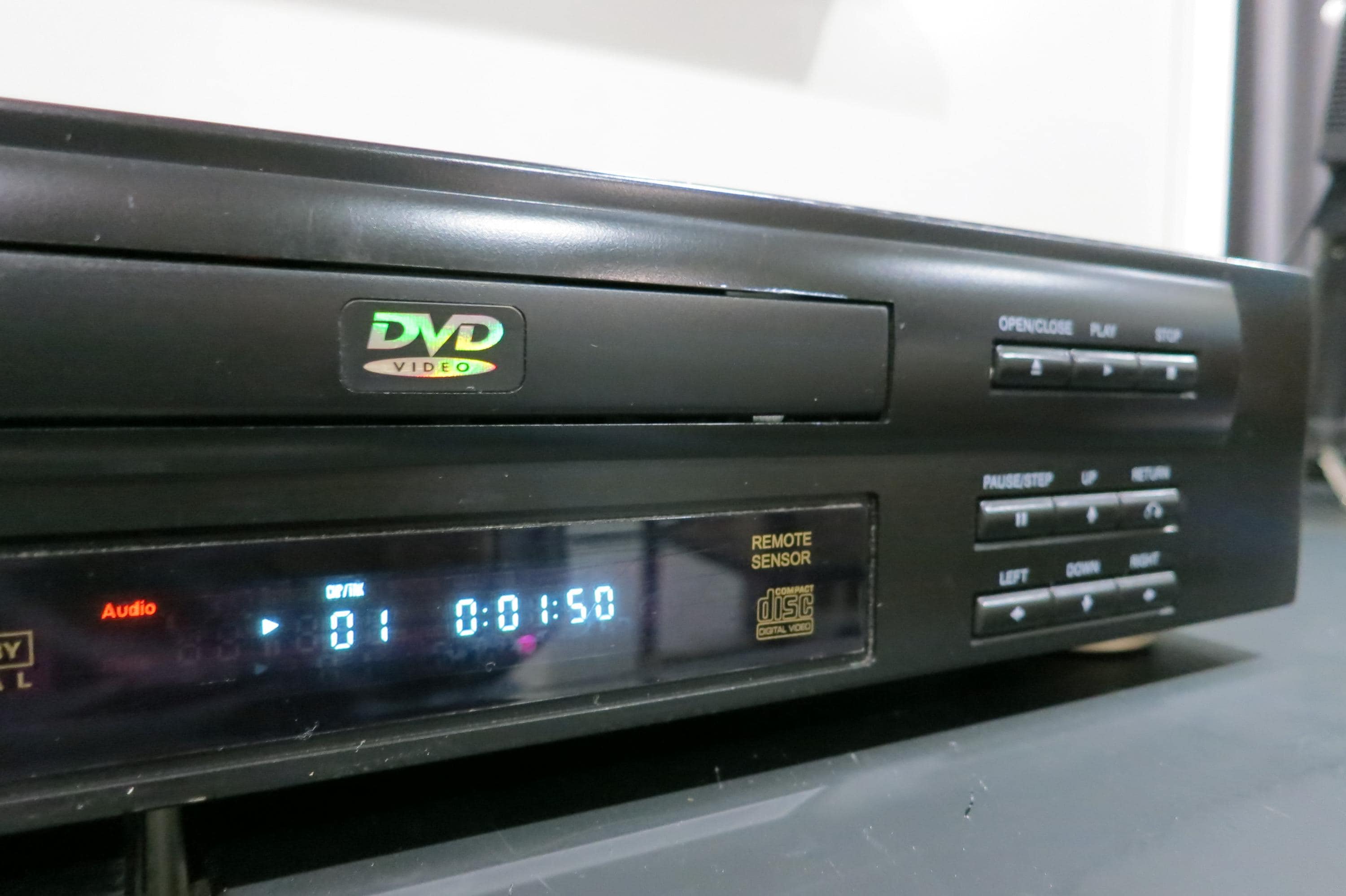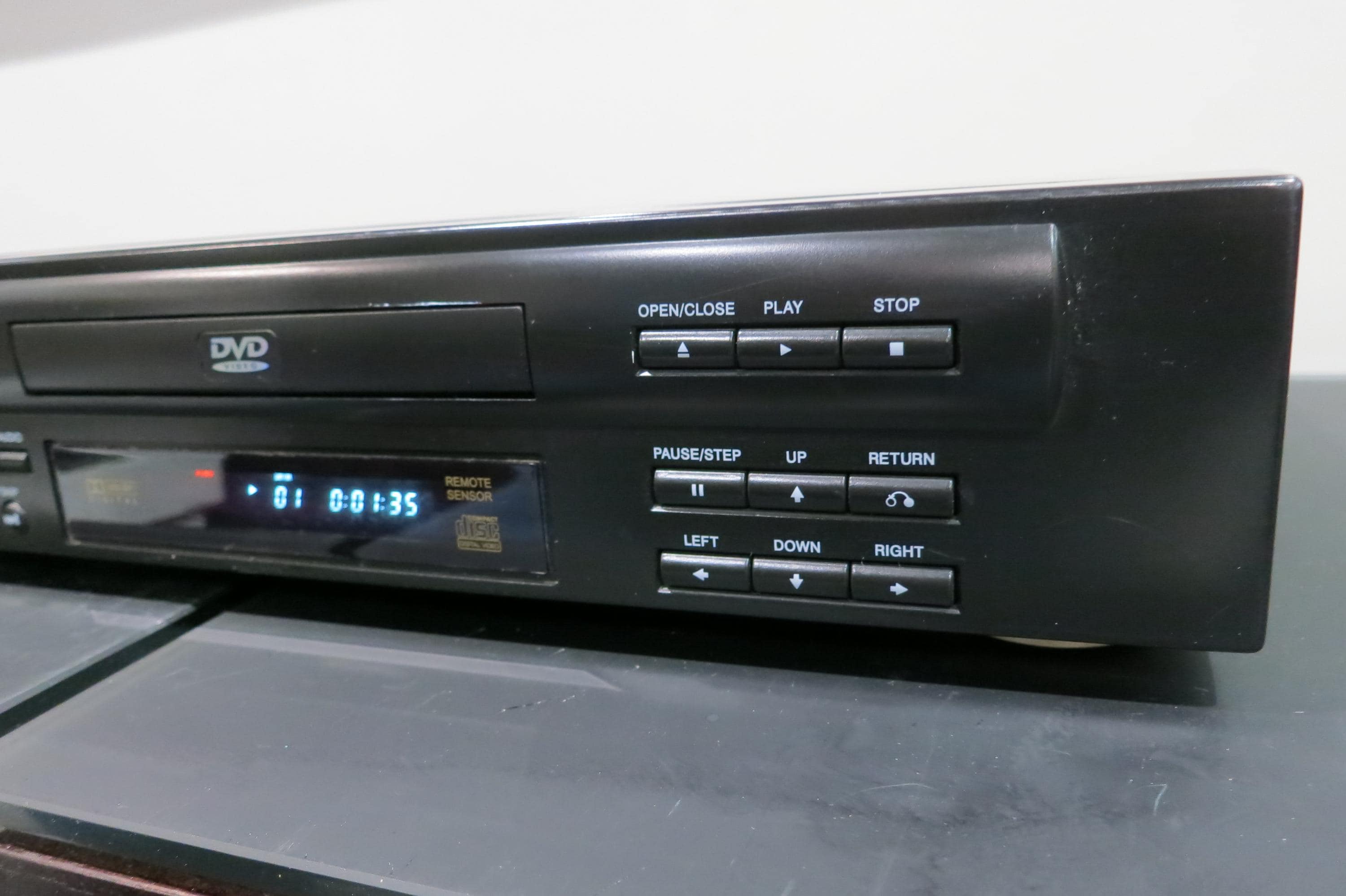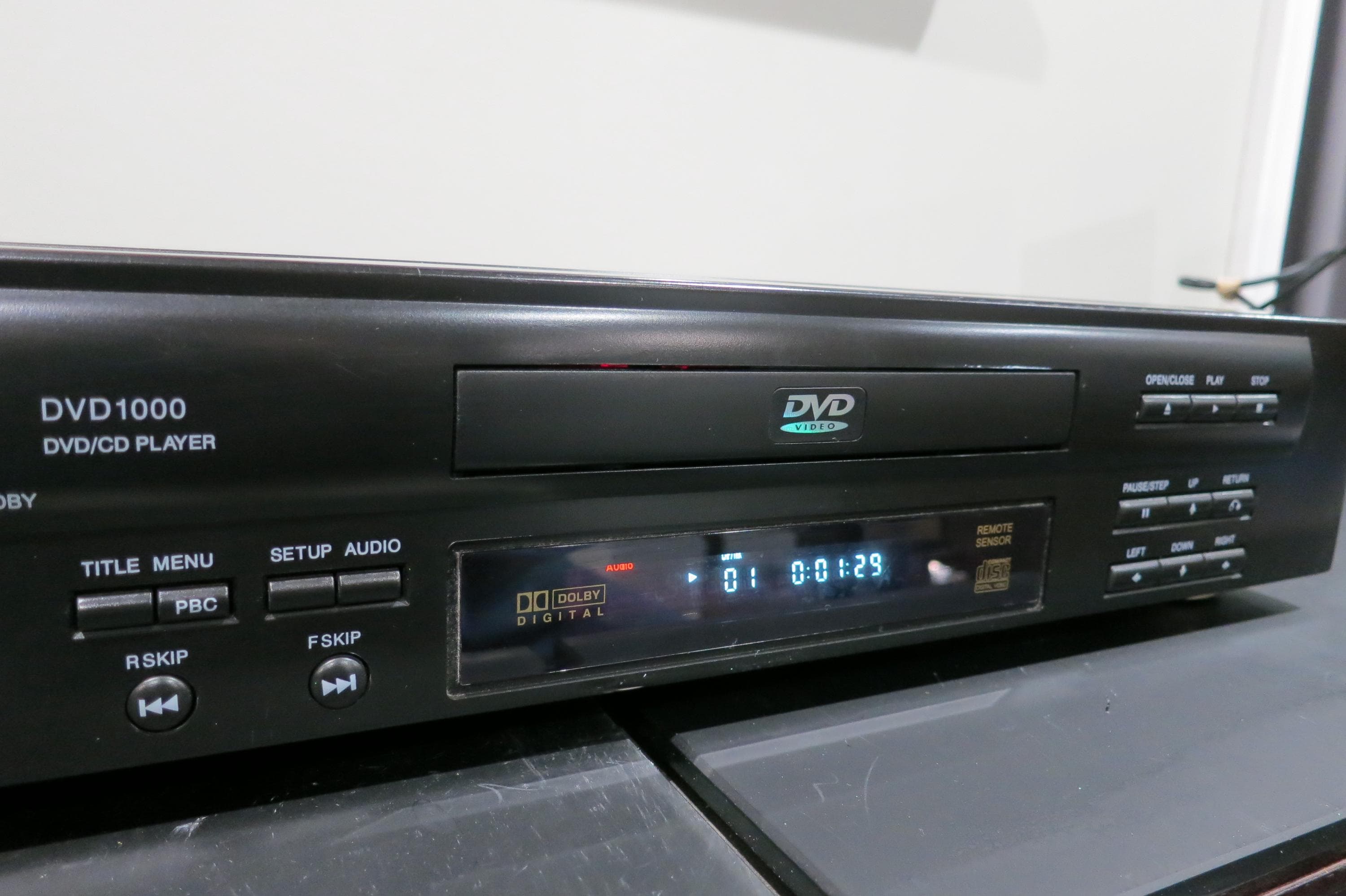 Features Dolby Digital, Skip, Blue Display and Counter. Top of the case has a few scuffs.