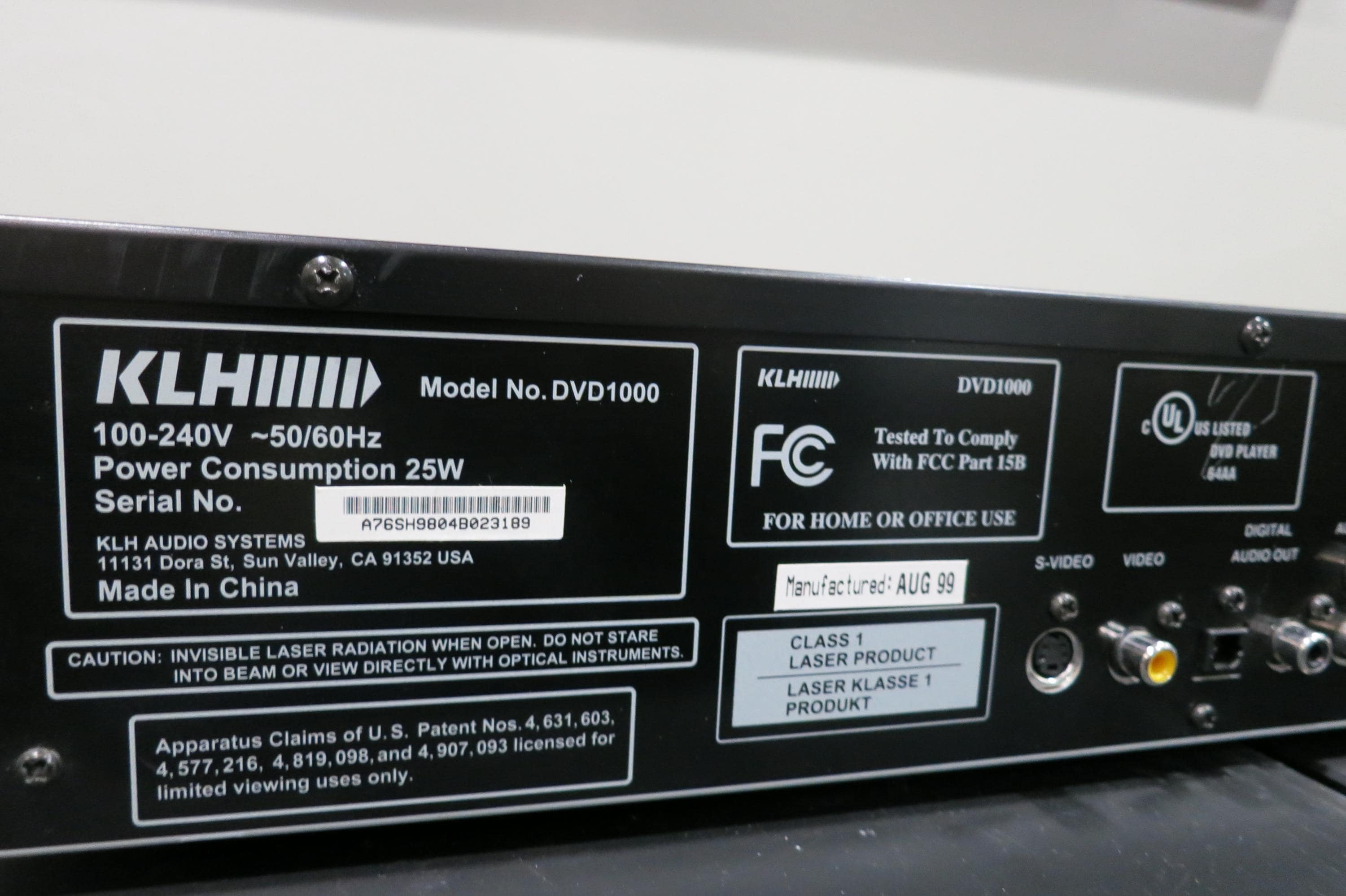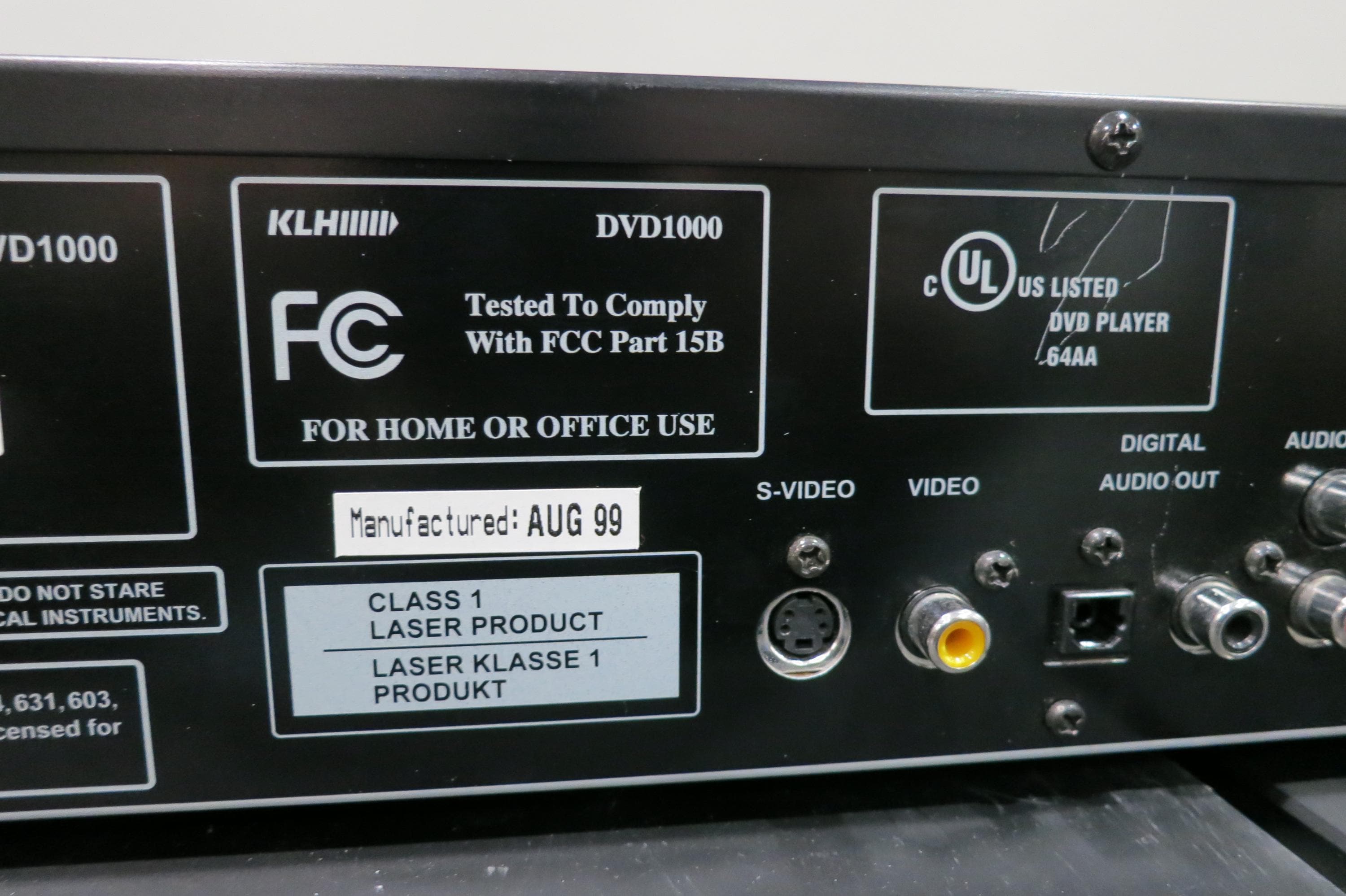 Vintage 90's KLH Digital DVD/CD Player Model DvD-1000.