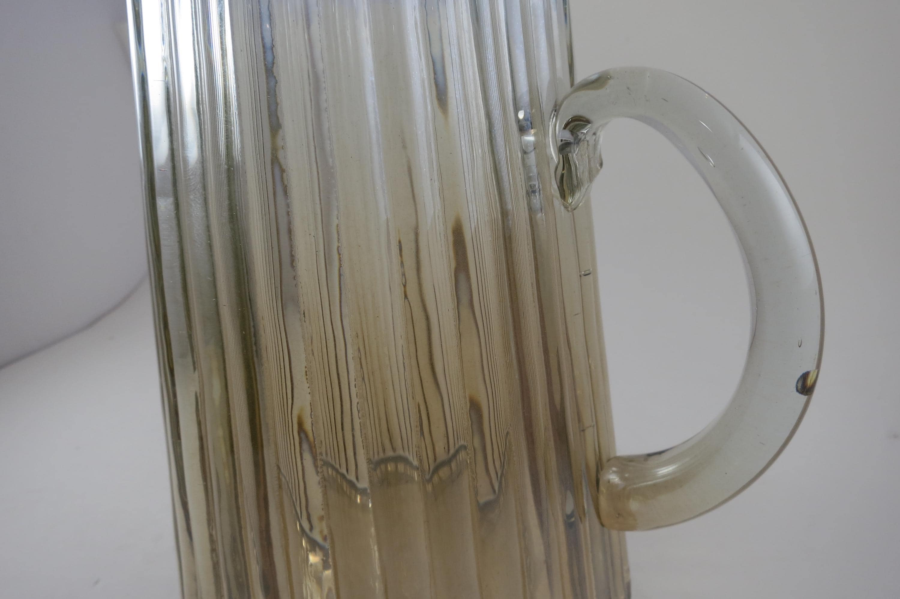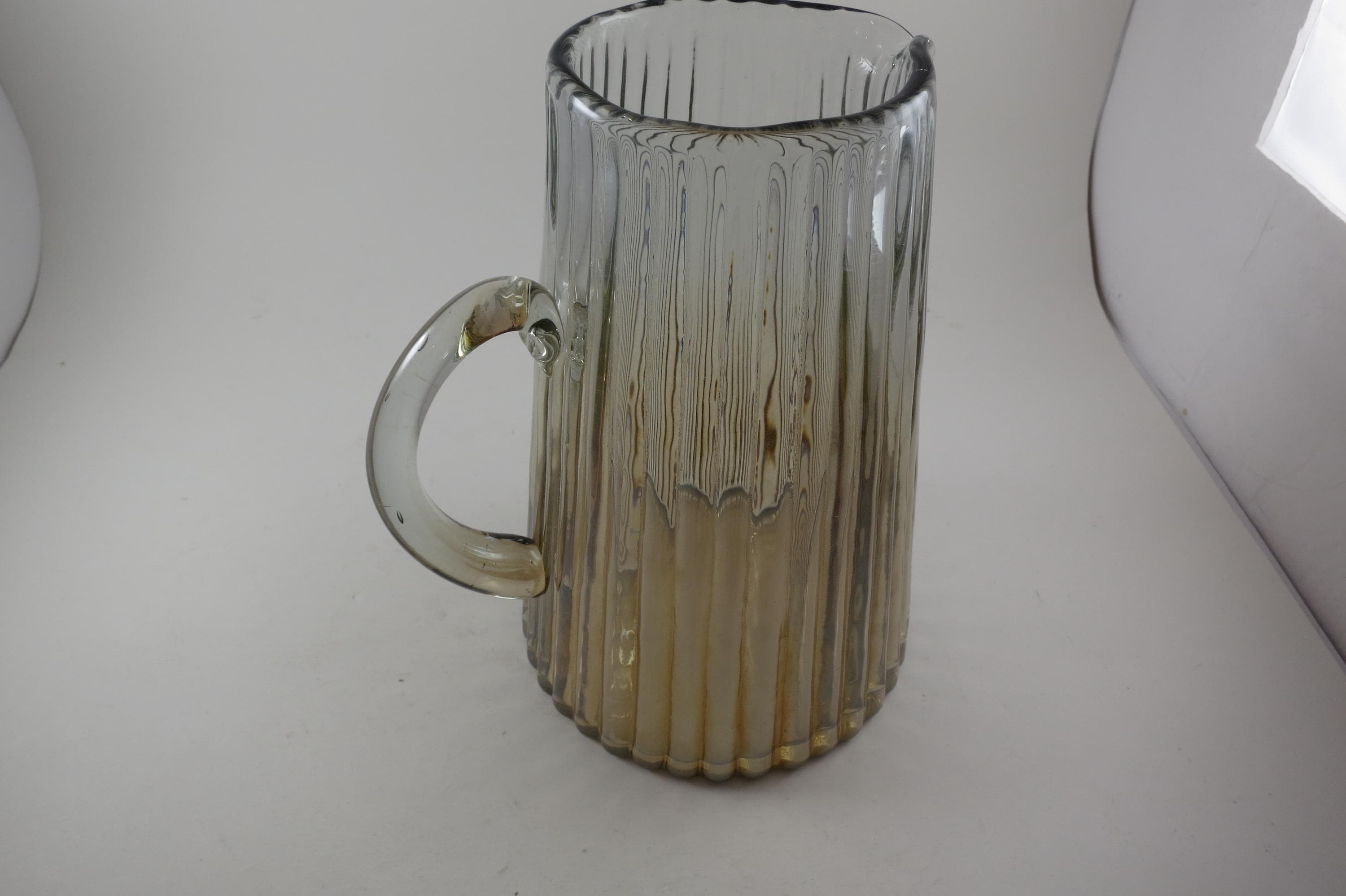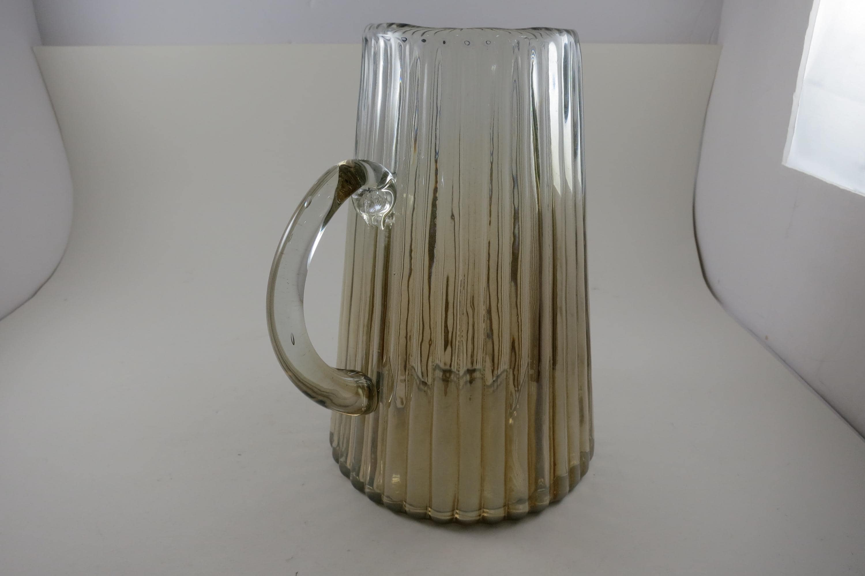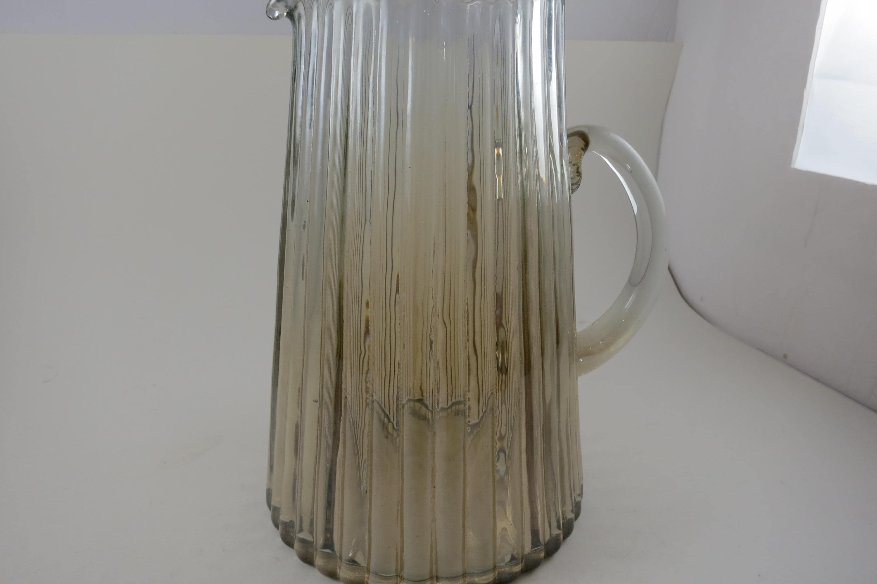 Vintage Brown Tint Ribbed Glass Pitcher with Applied Handle 8.5 Tall