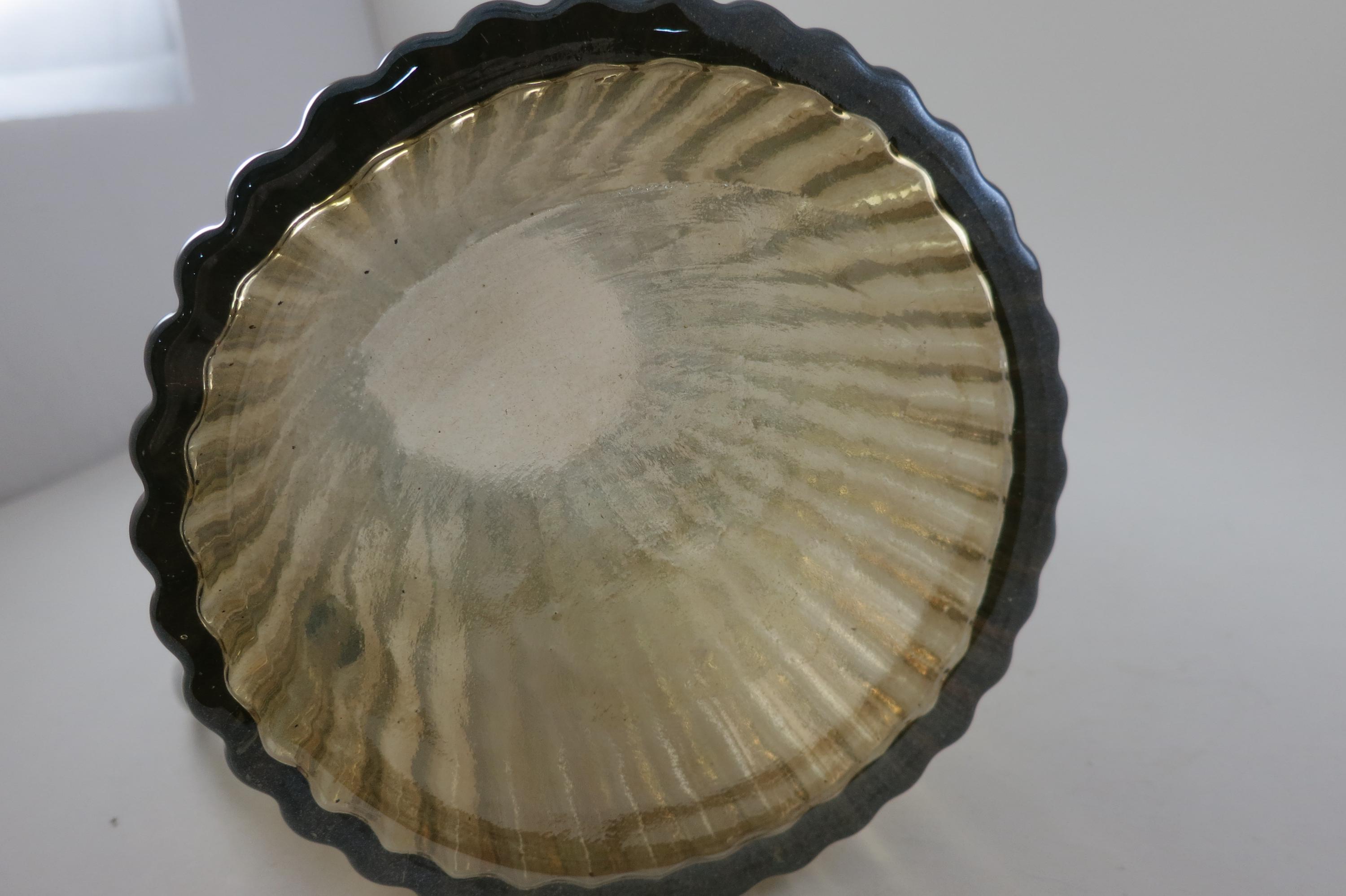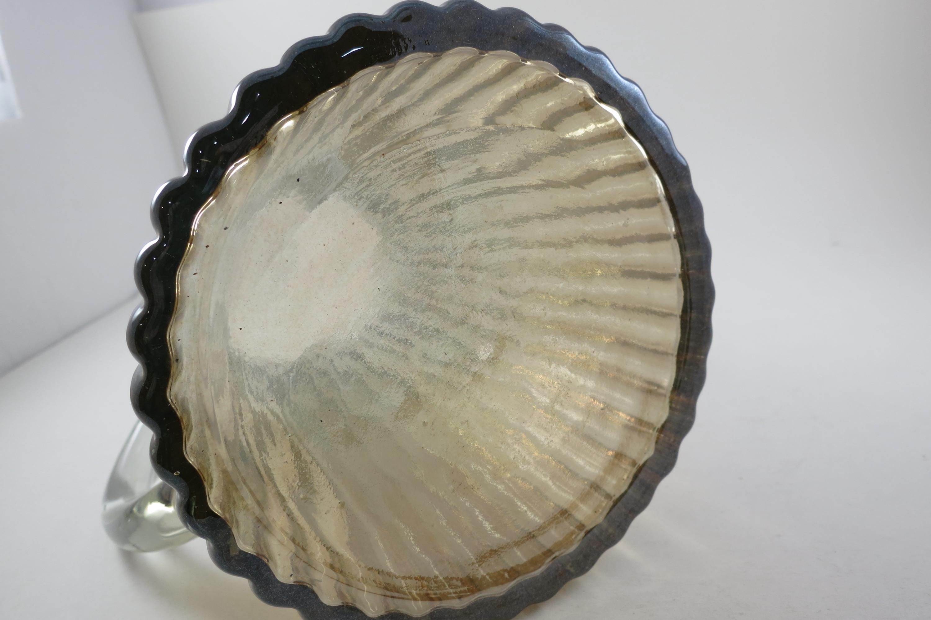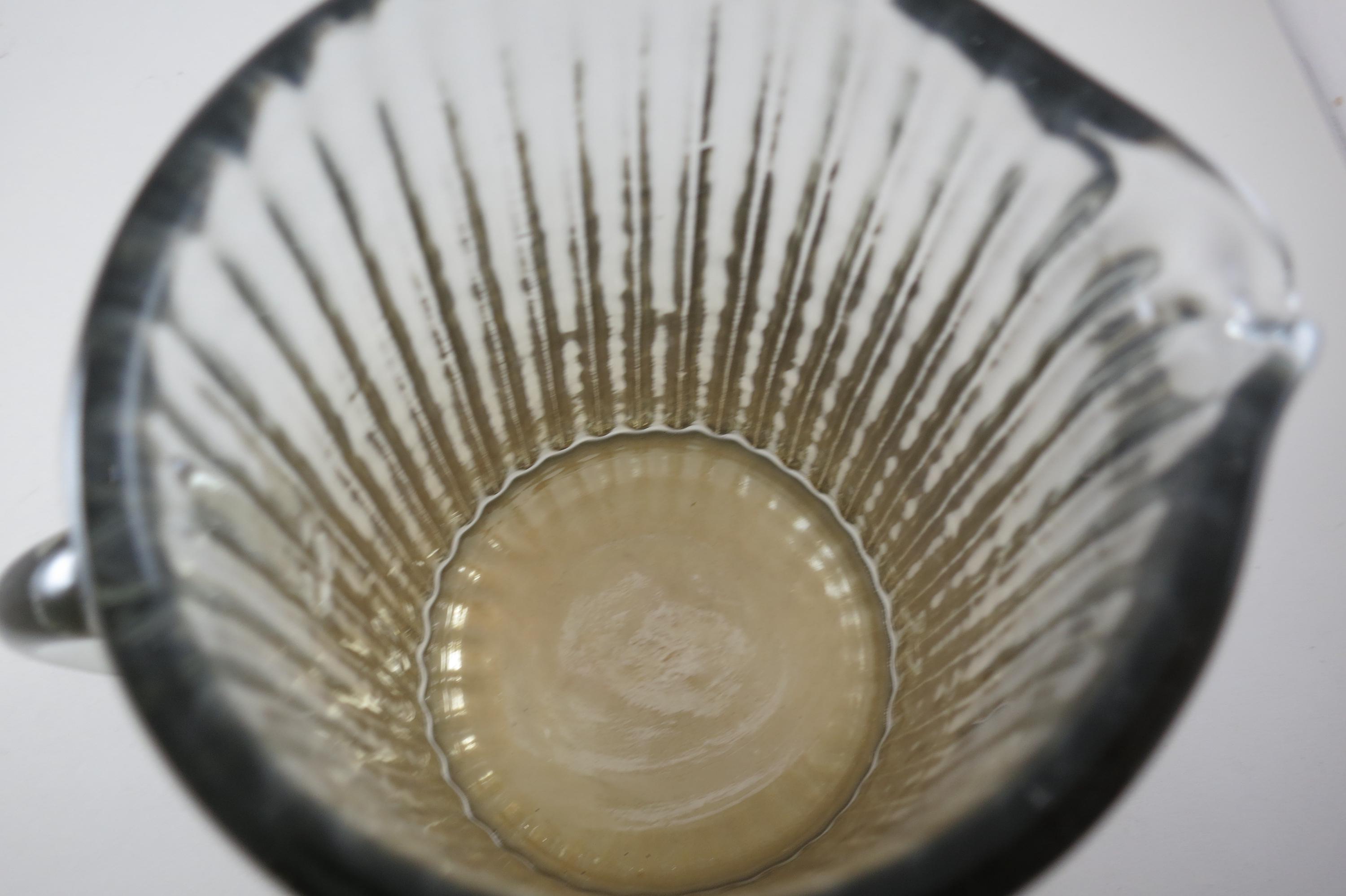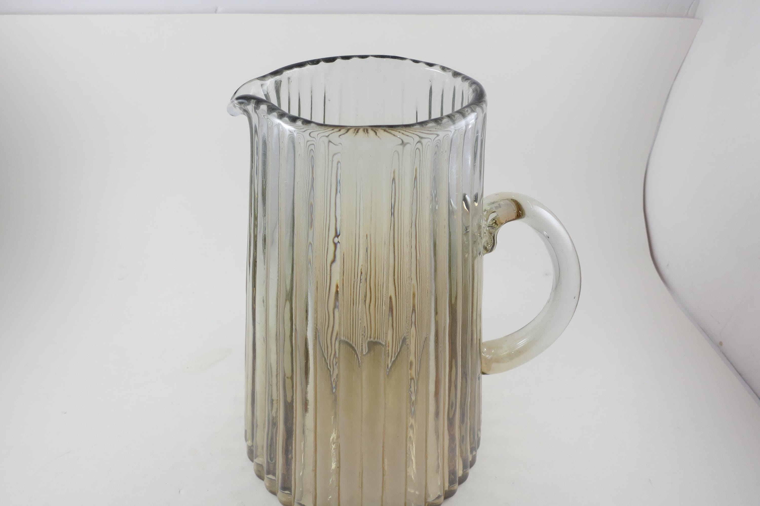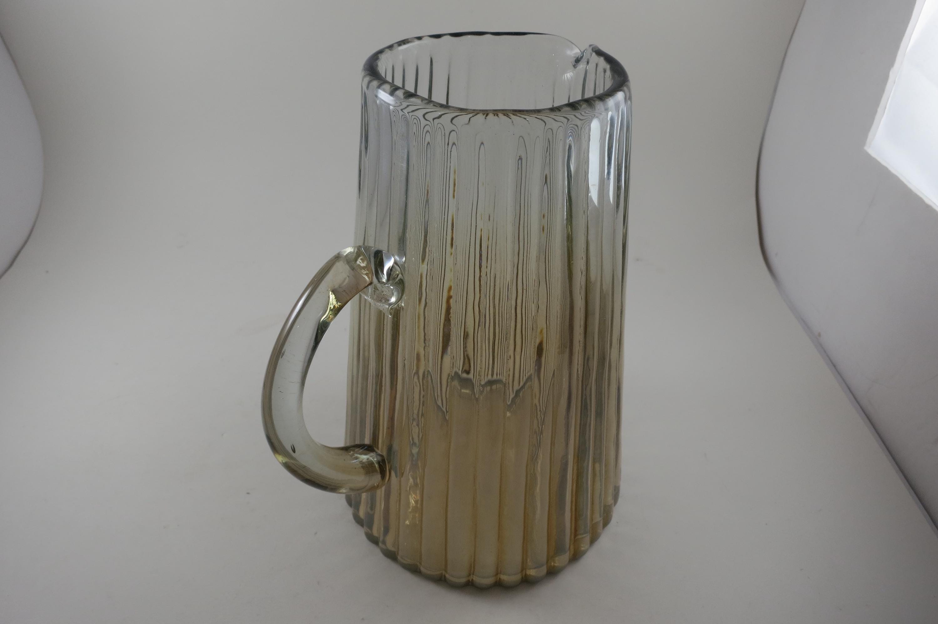 Vintage Brown Tint Ribbed Glass Pitcher with Applied Handle 8.5 Tall