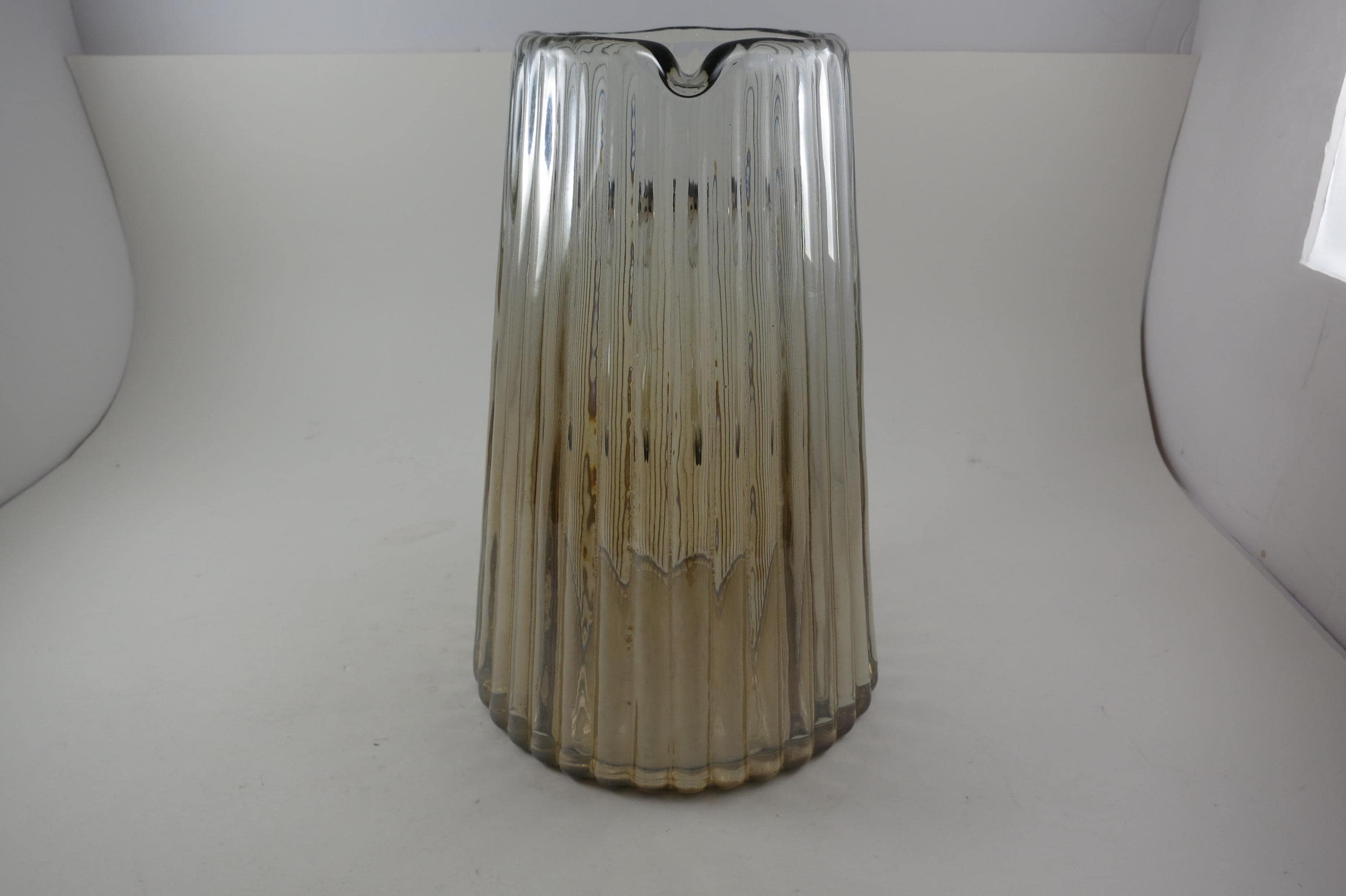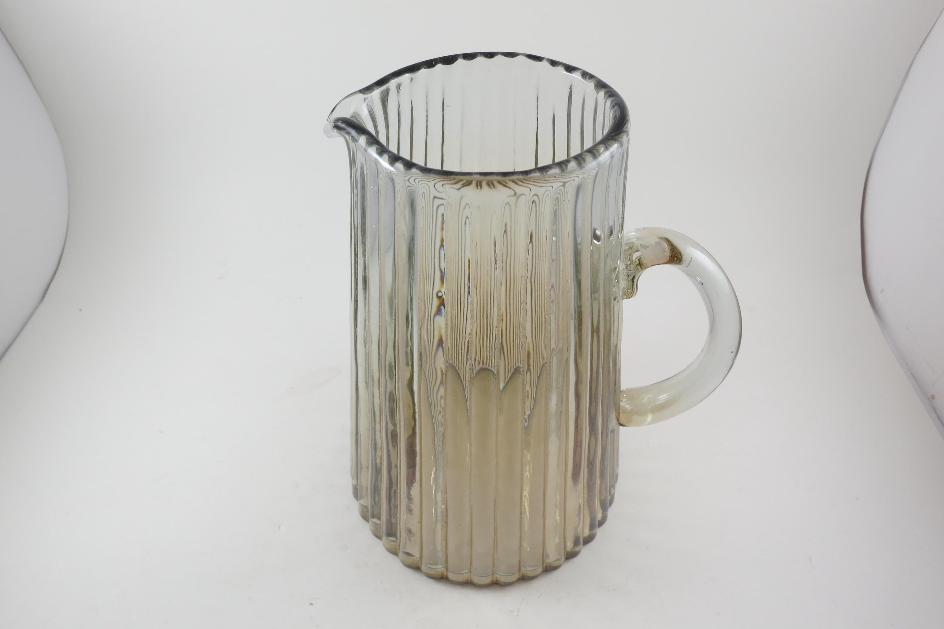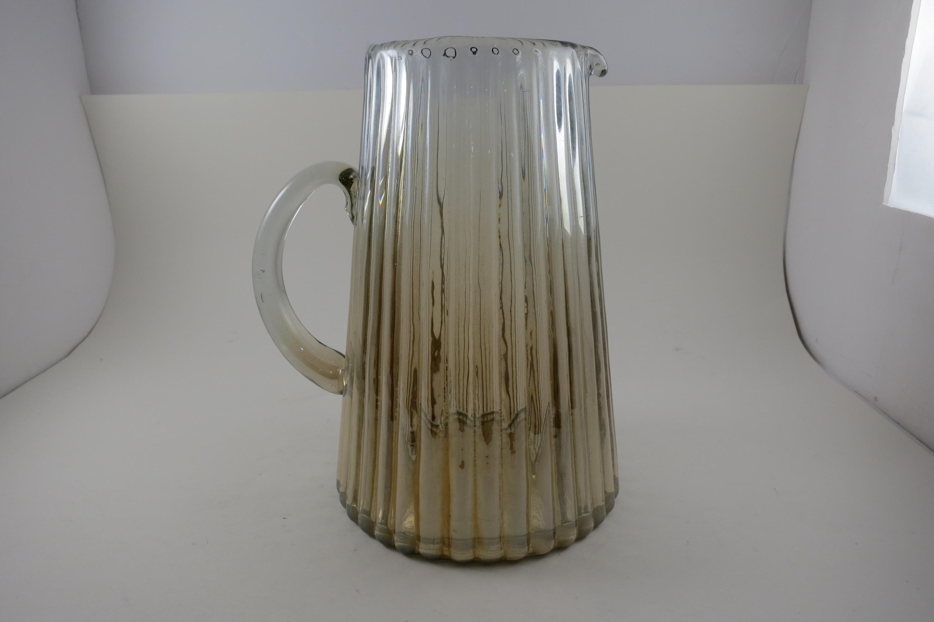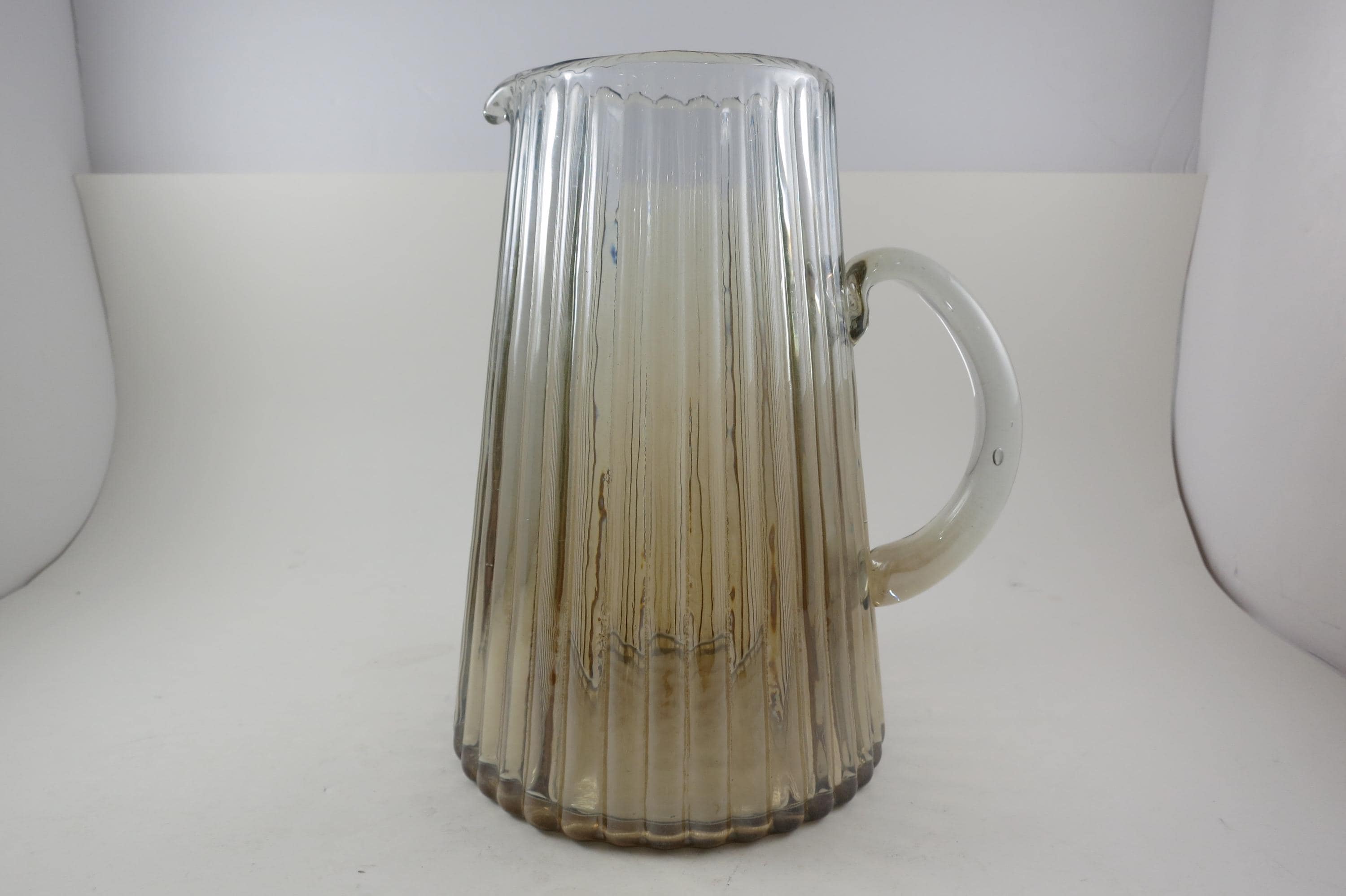 Vintage Brown Tint Ribbed Glass Pitcher with Applied Handle 8.5 Tall.