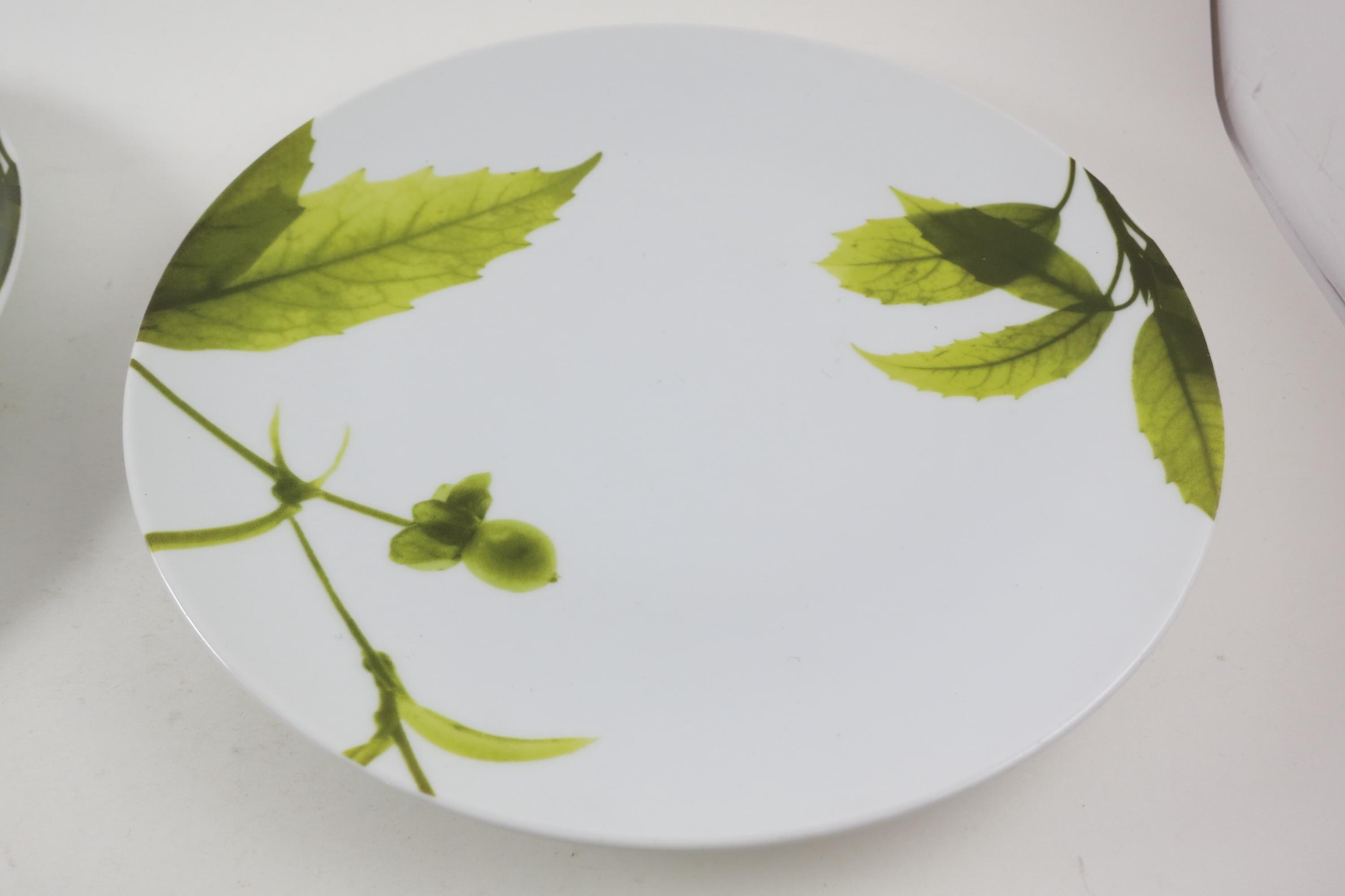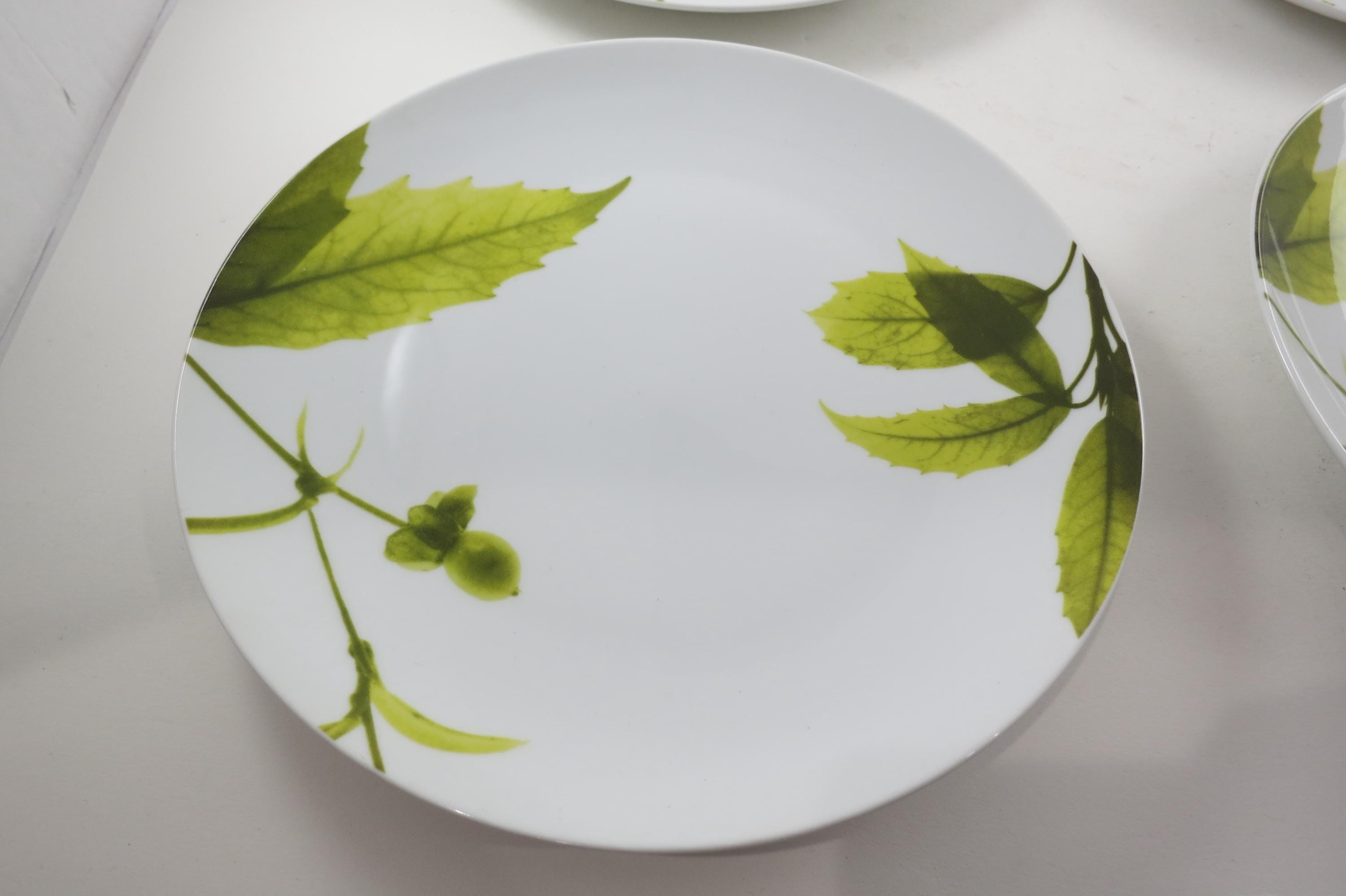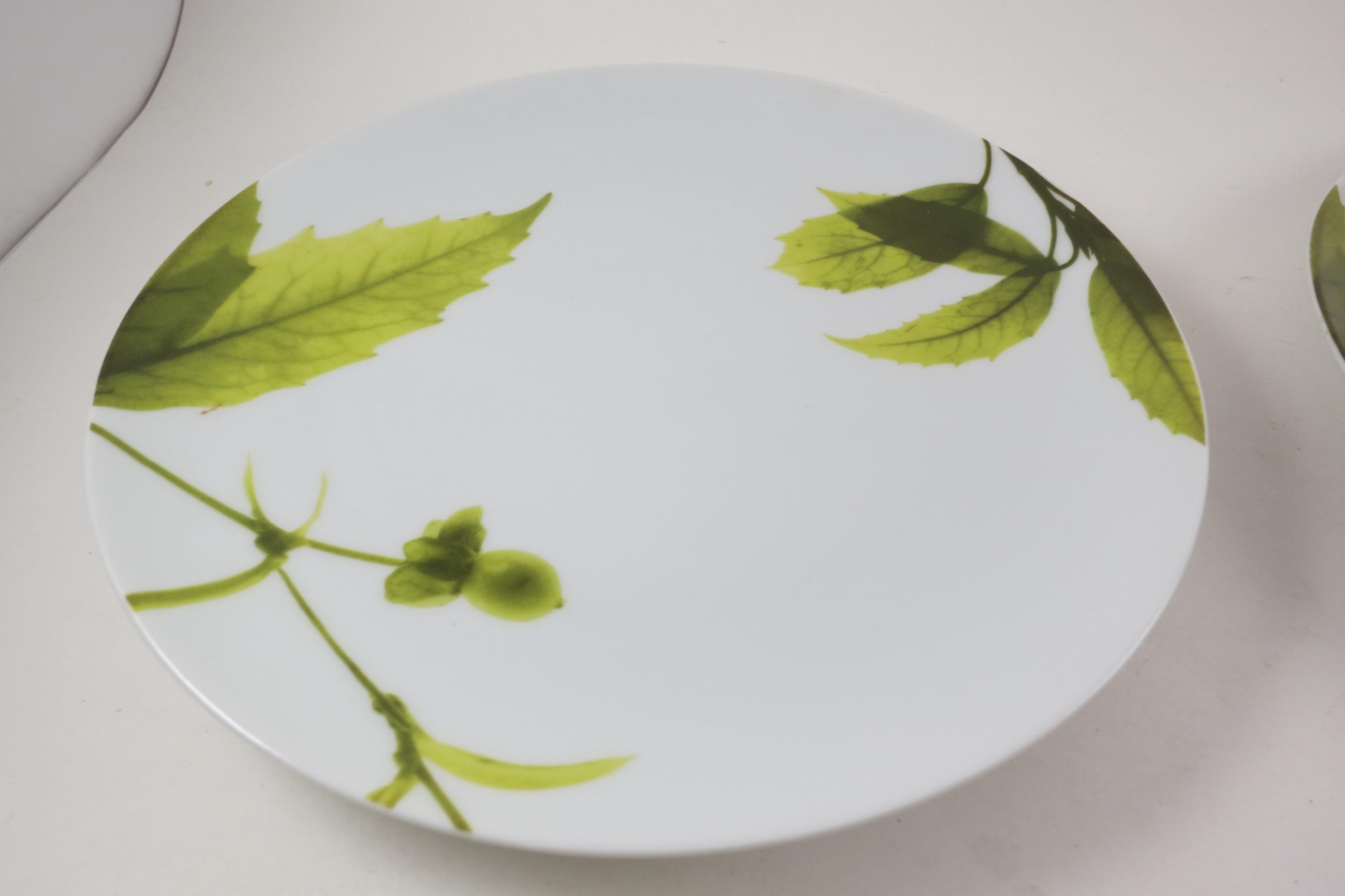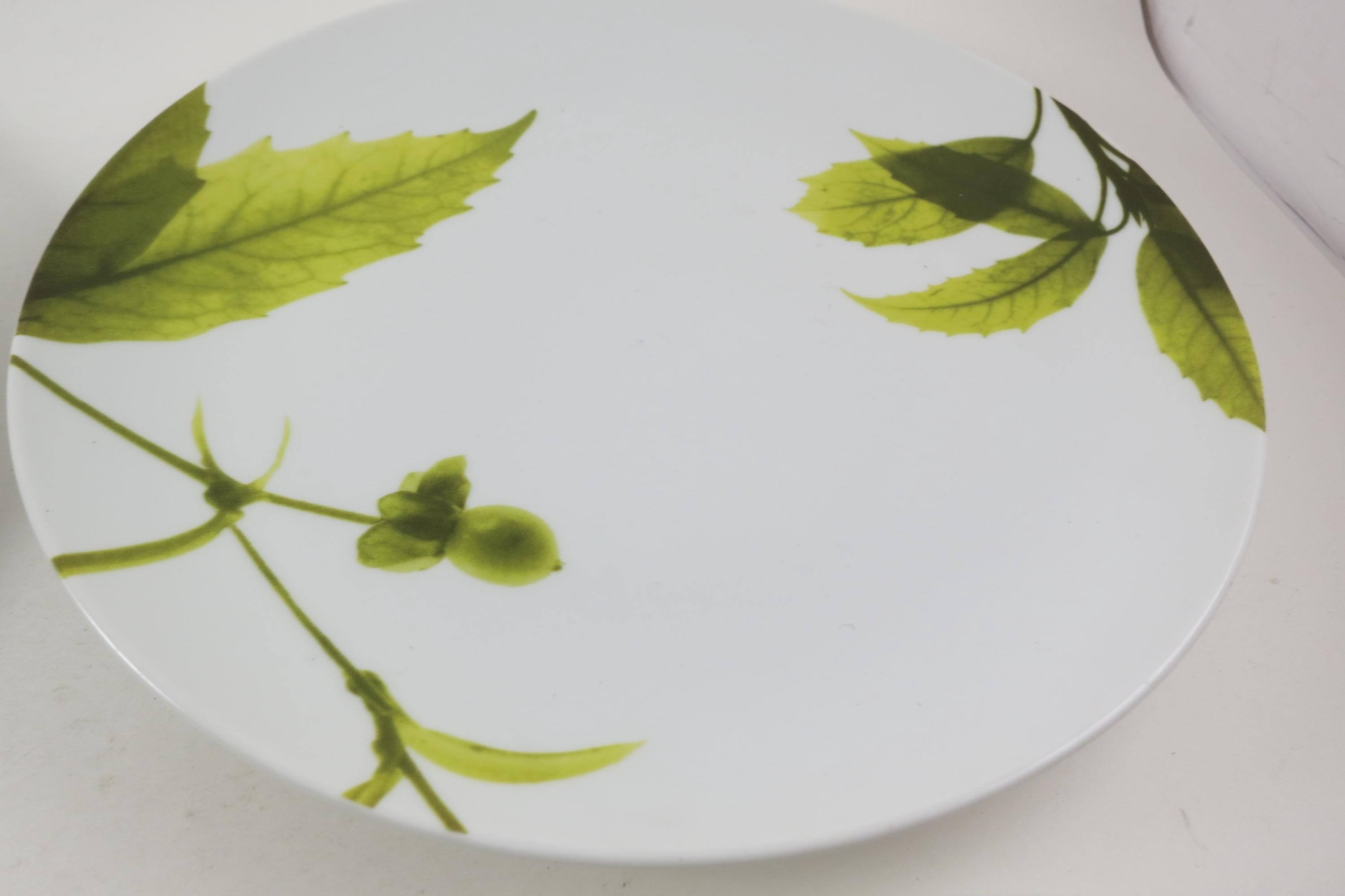 Set of Four Vintage Crate & Barrel 8 Inch Salad Plates Green Leaf Porcelain