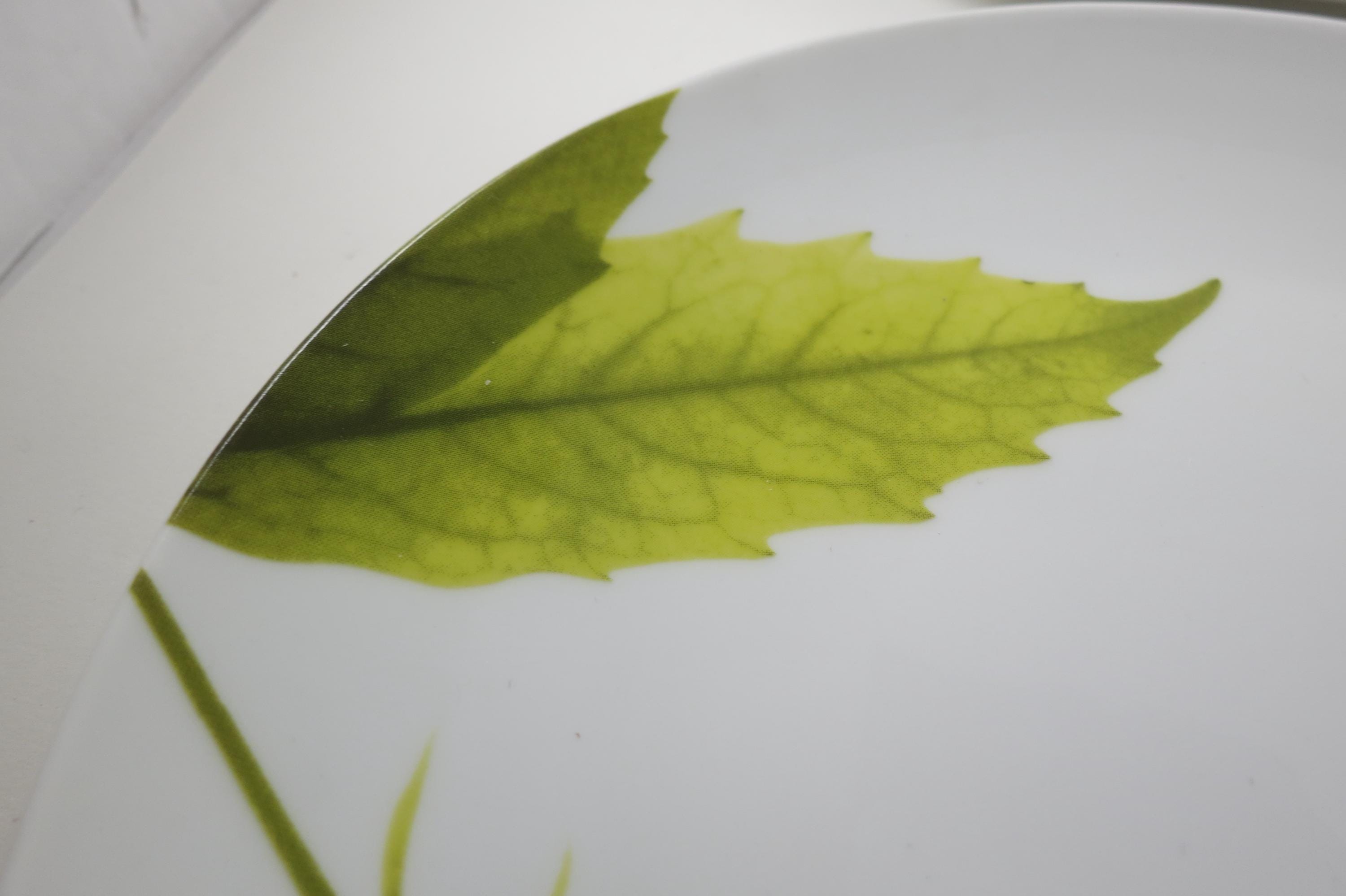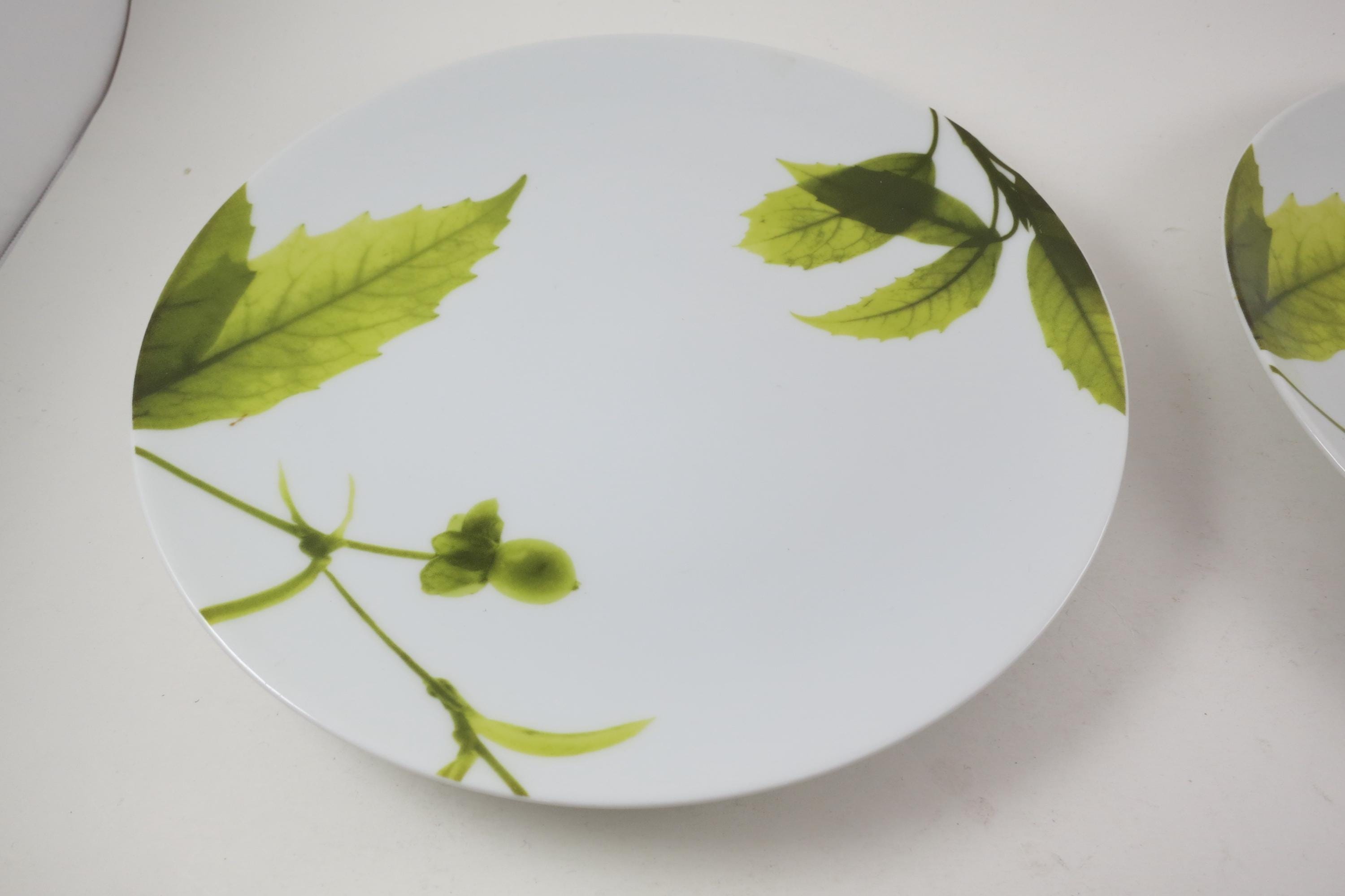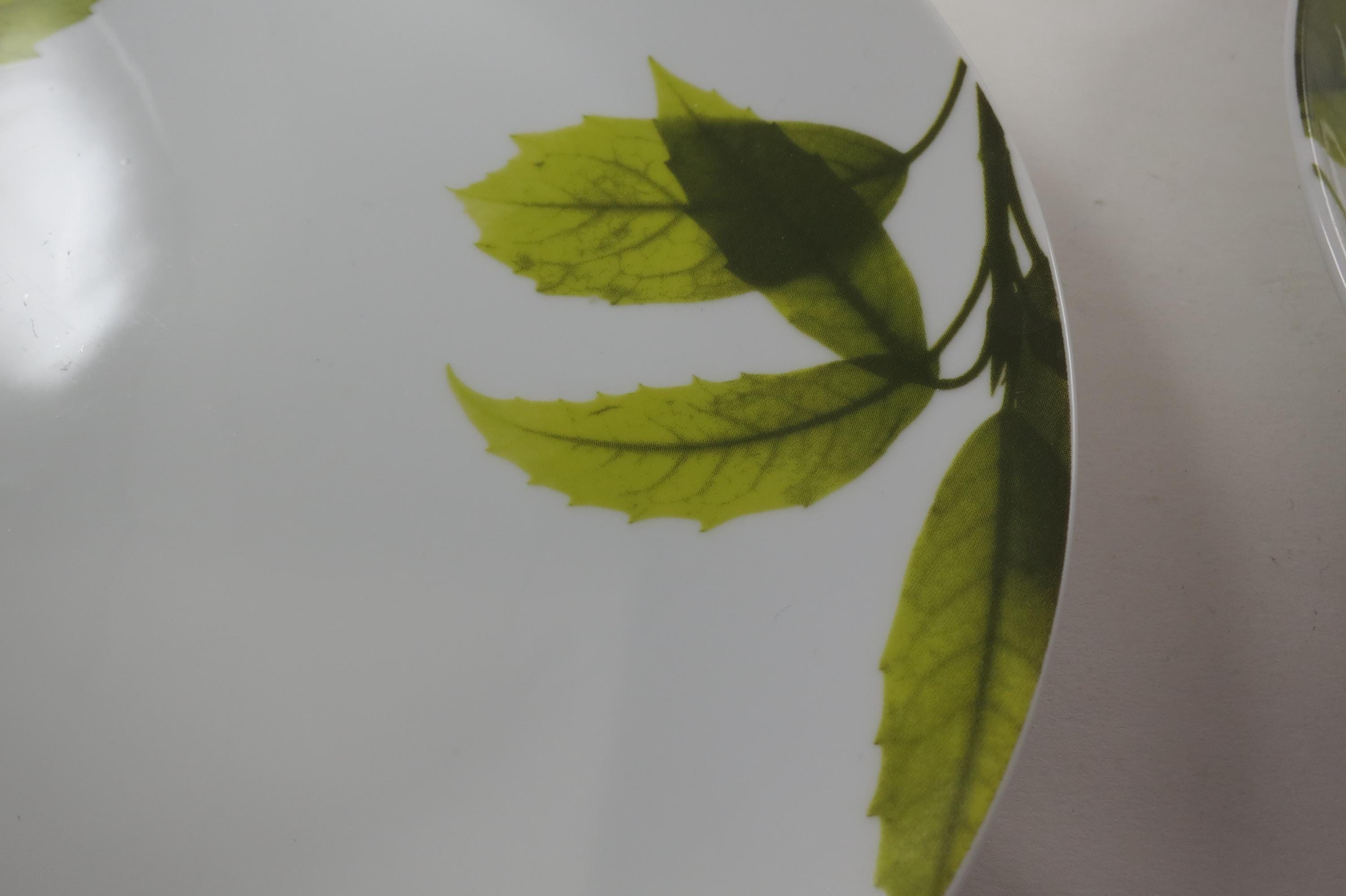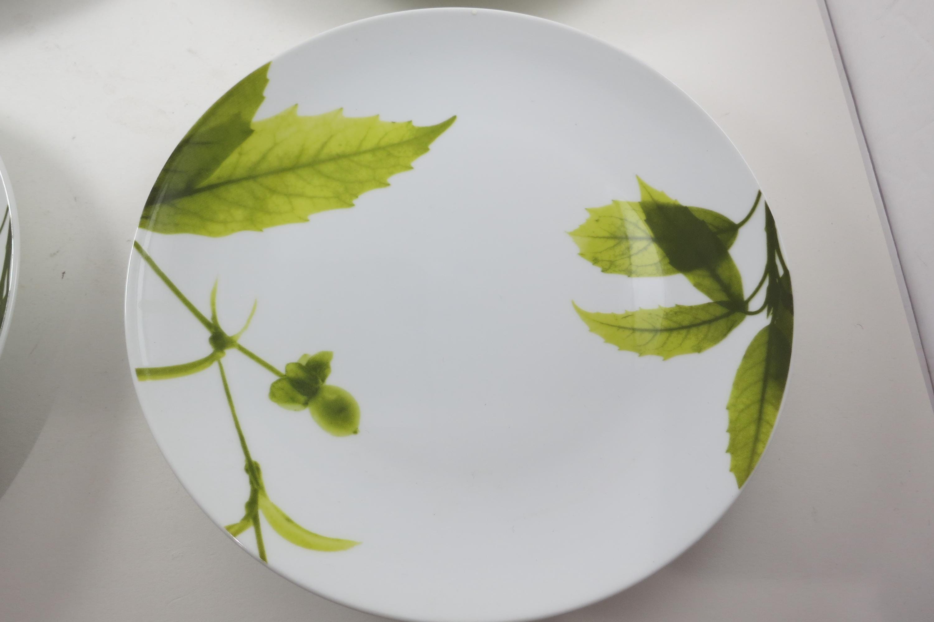 Set of Four Vintage Crate & Barrel 8 Inch Salad Plates Green Leaf Porcelain