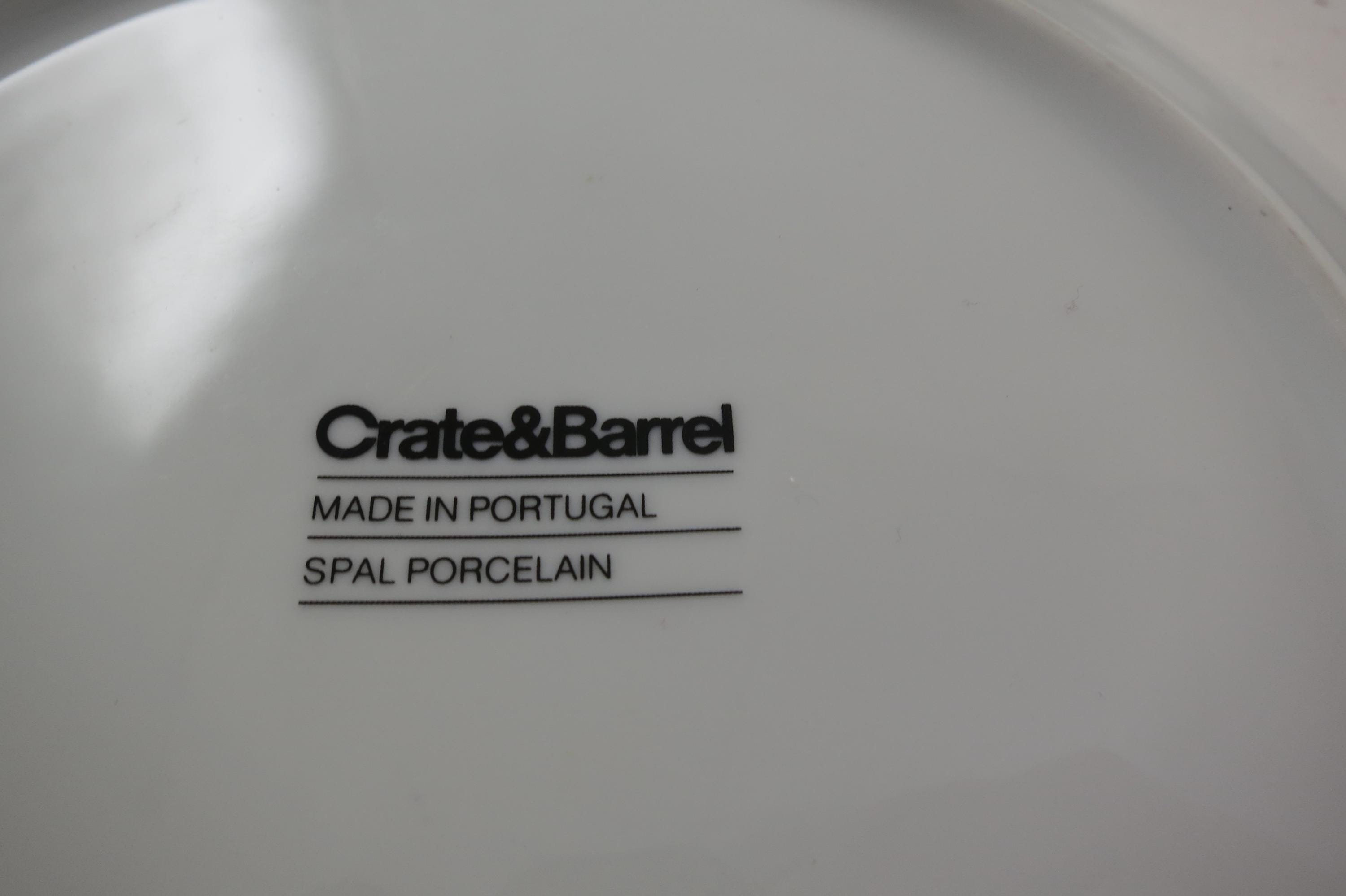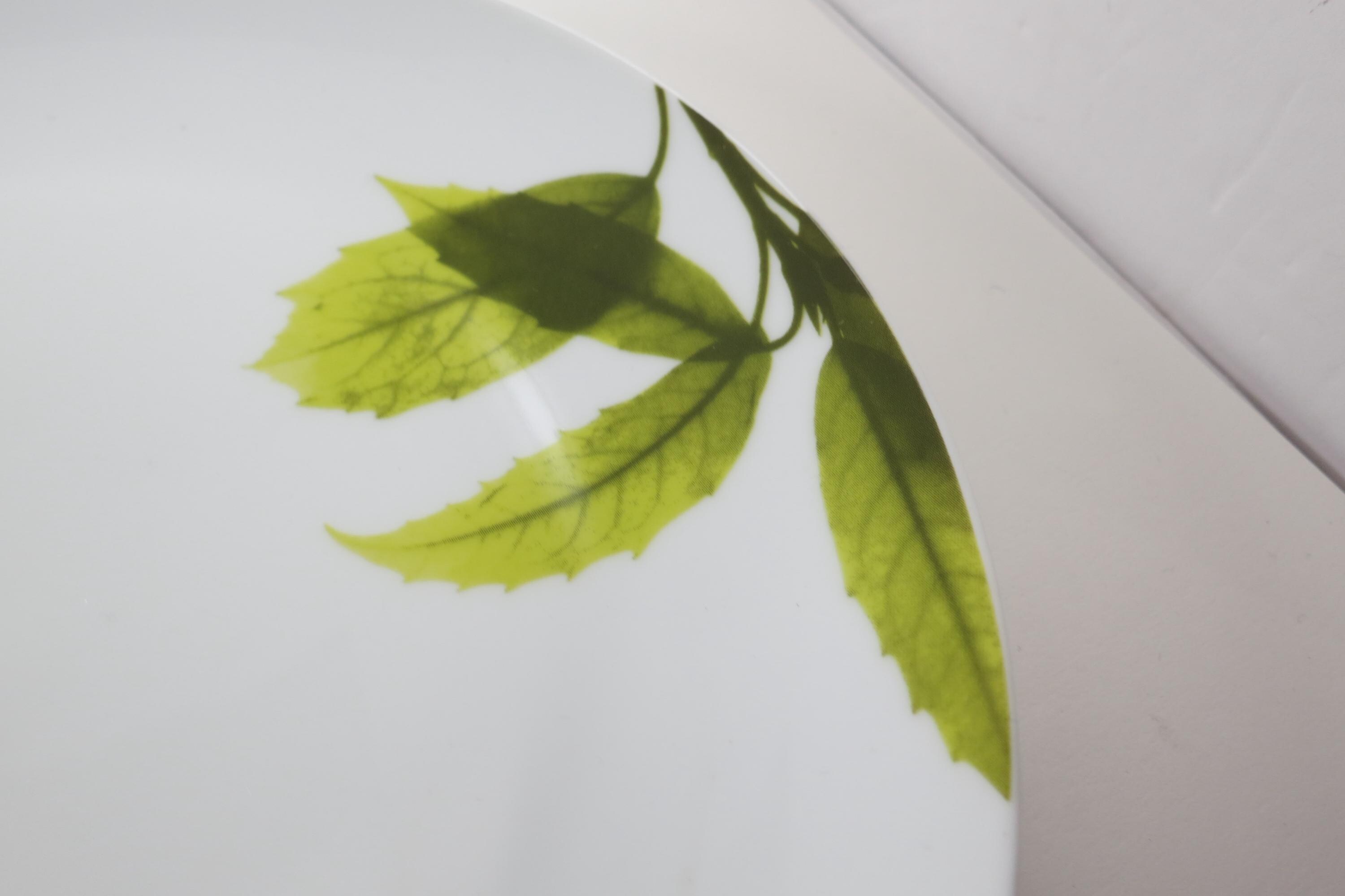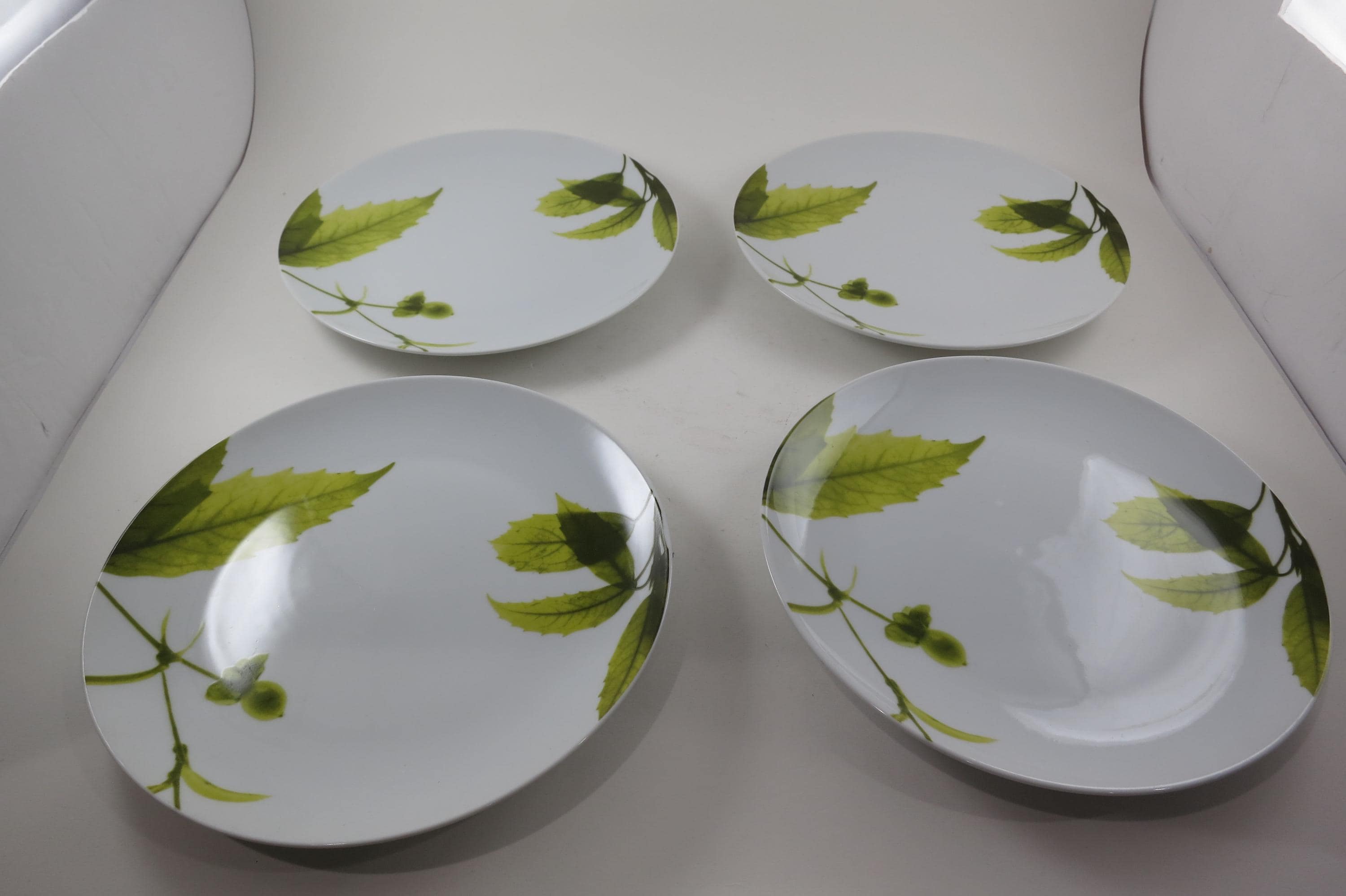 Set of Four Vintage Crate & Barrel 8 Inch Salad Plates Green Leaf Porcelain. No chips, cracks or damages. These are in very good condition and are a beautiful pattern!