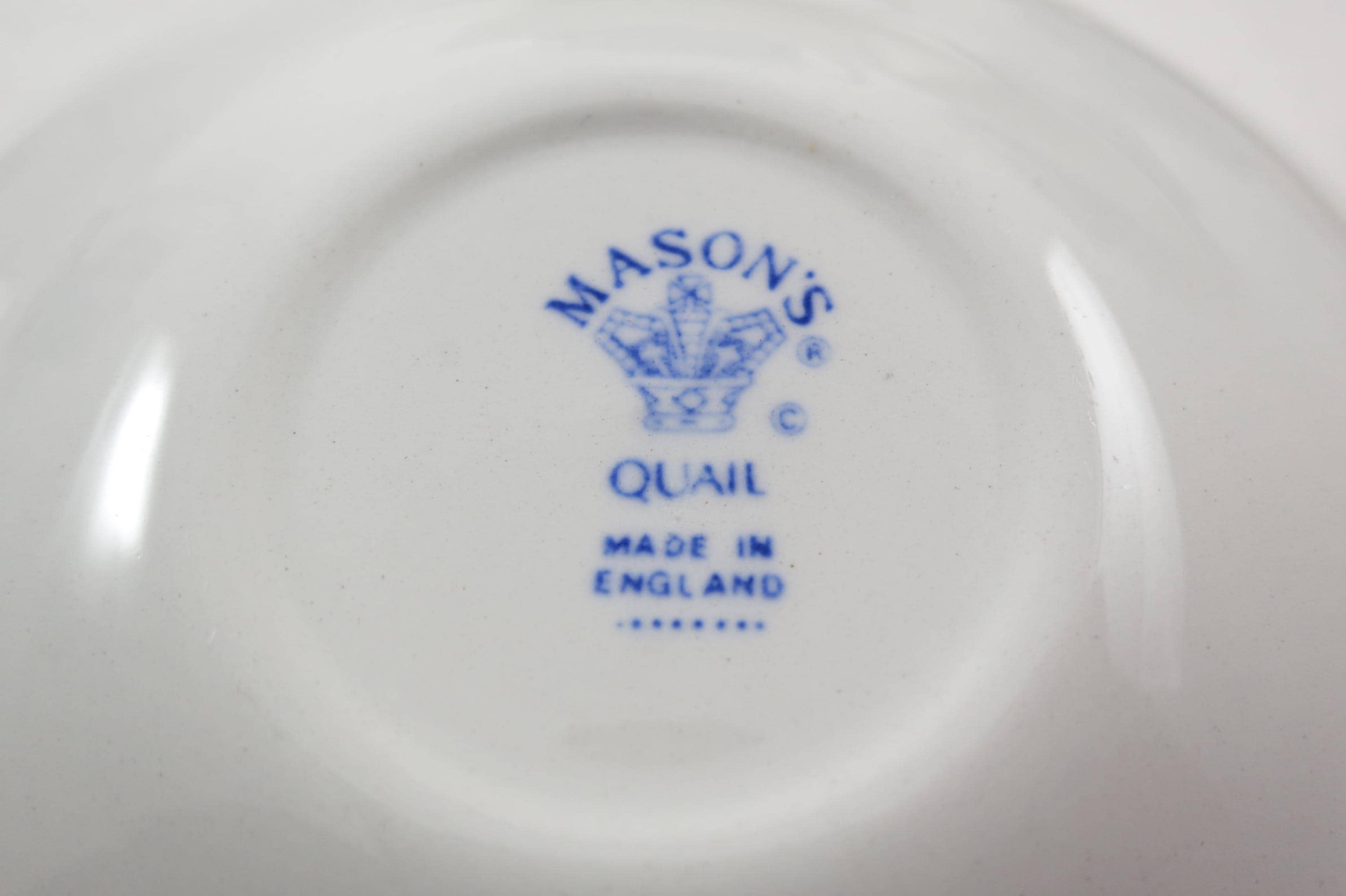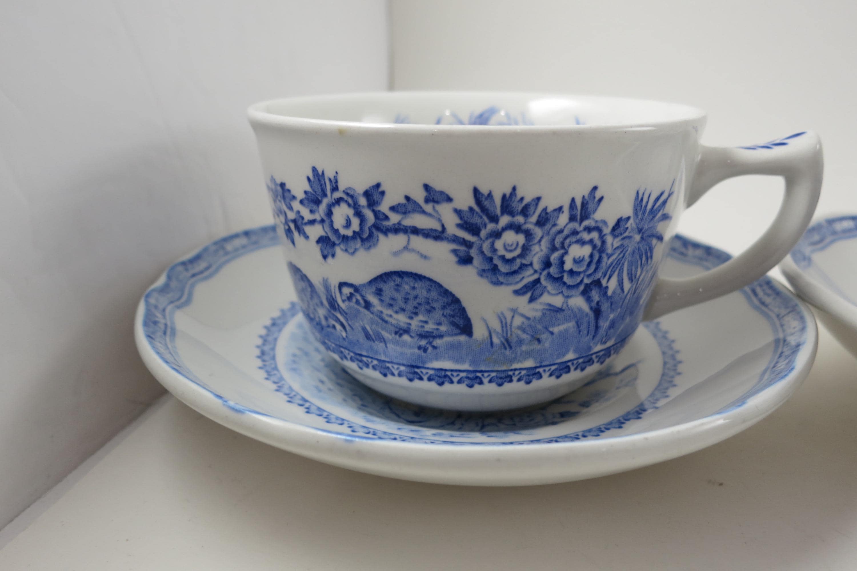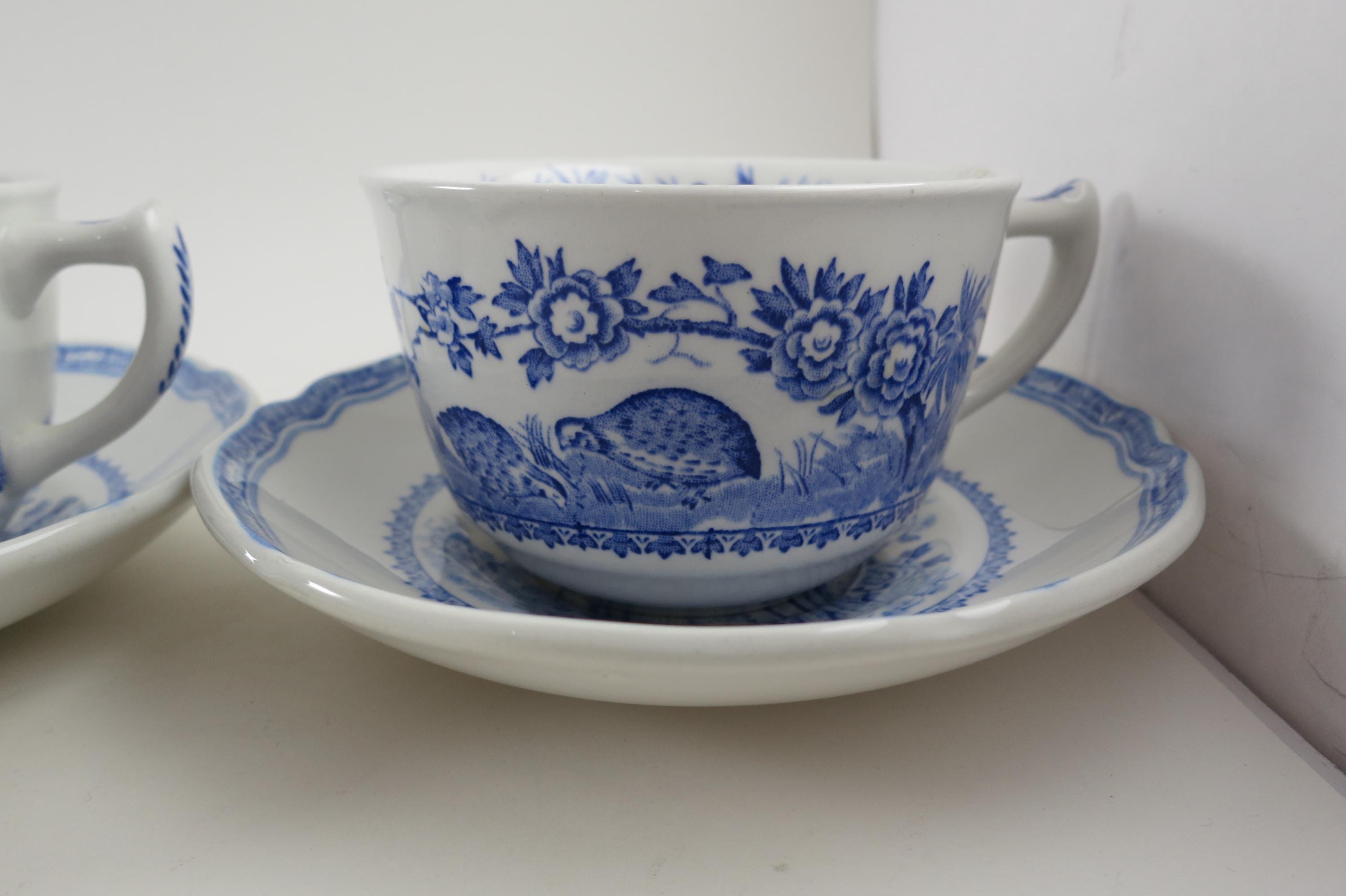 Vintage Set of Four Mason's Quail Blue & White England Cup and Saucer Sets