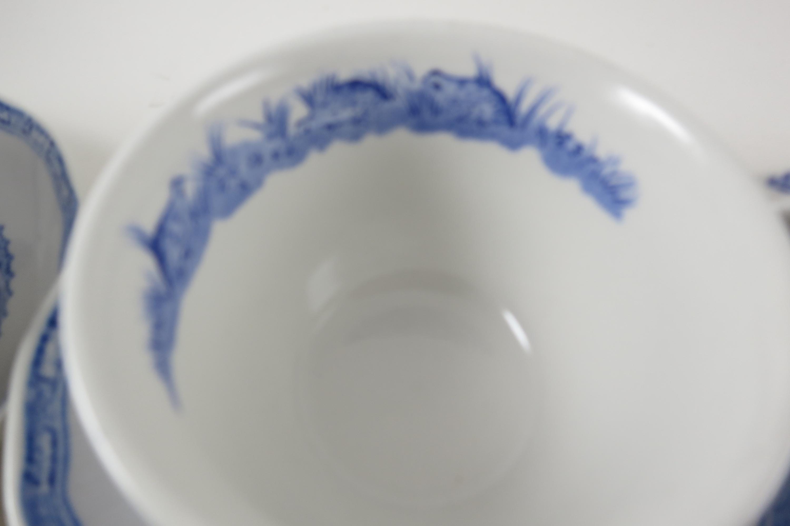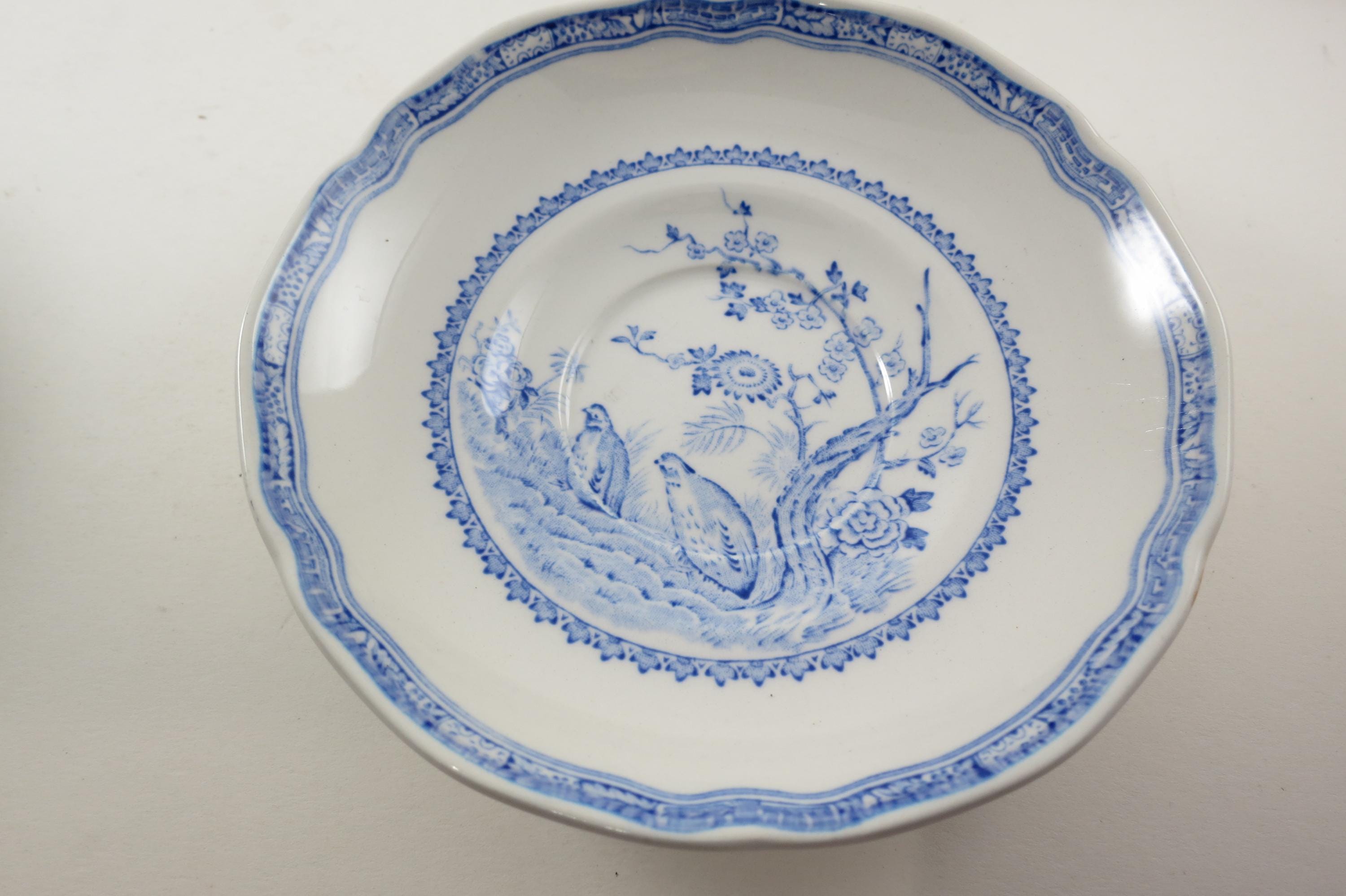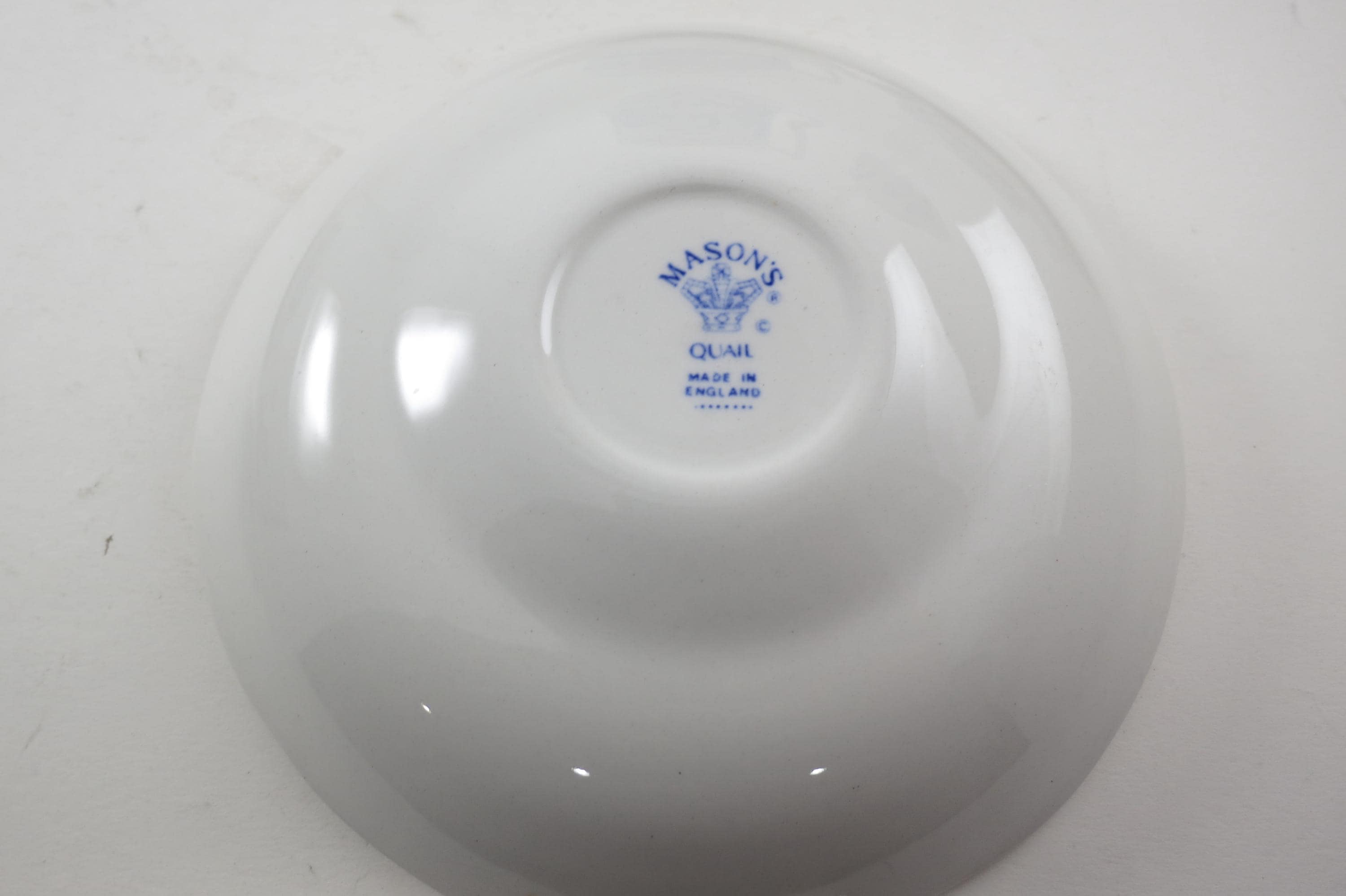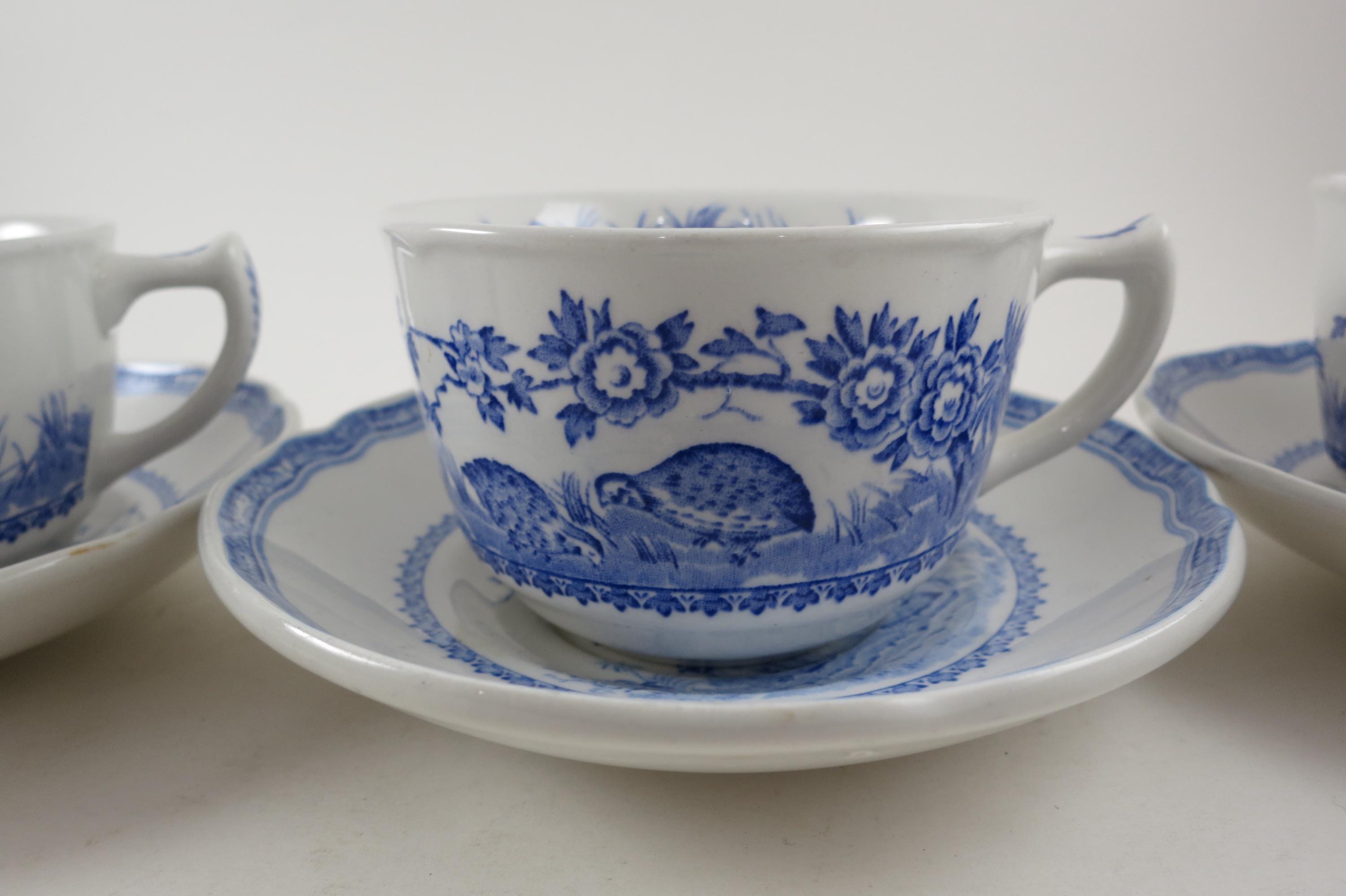 Vintage Set of Four Mason's Quail Blue & White England Cup and Saucer Sets