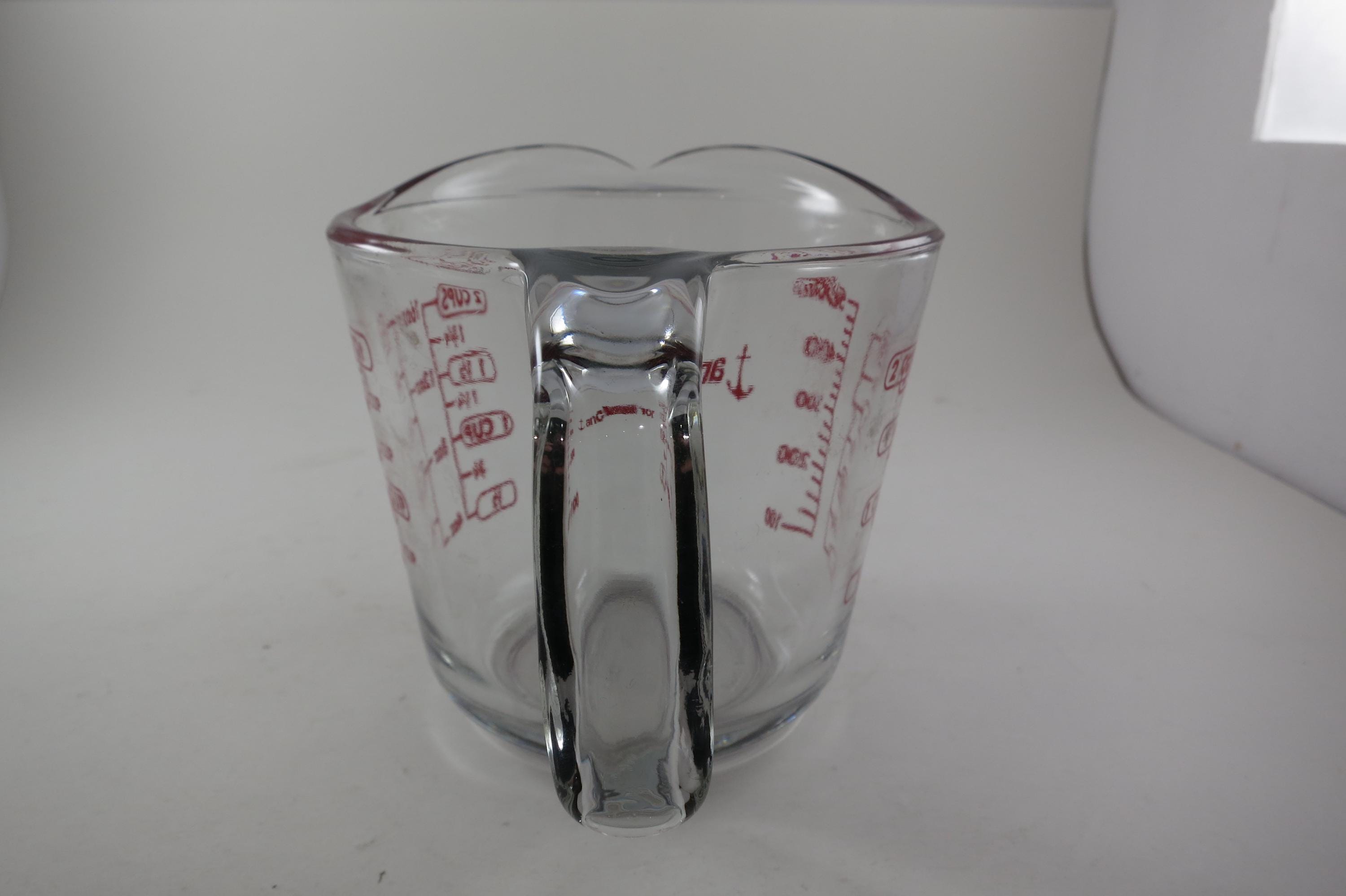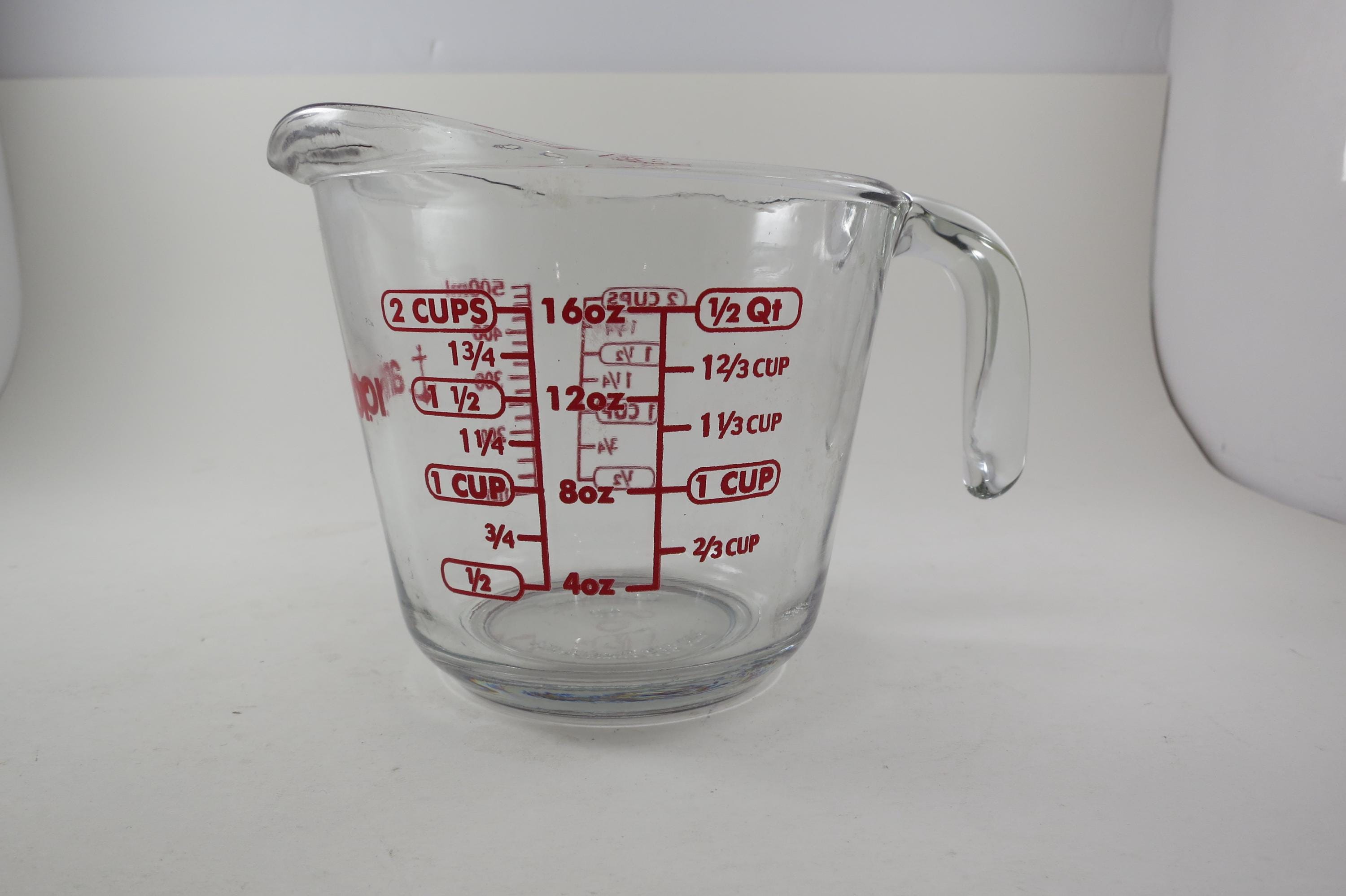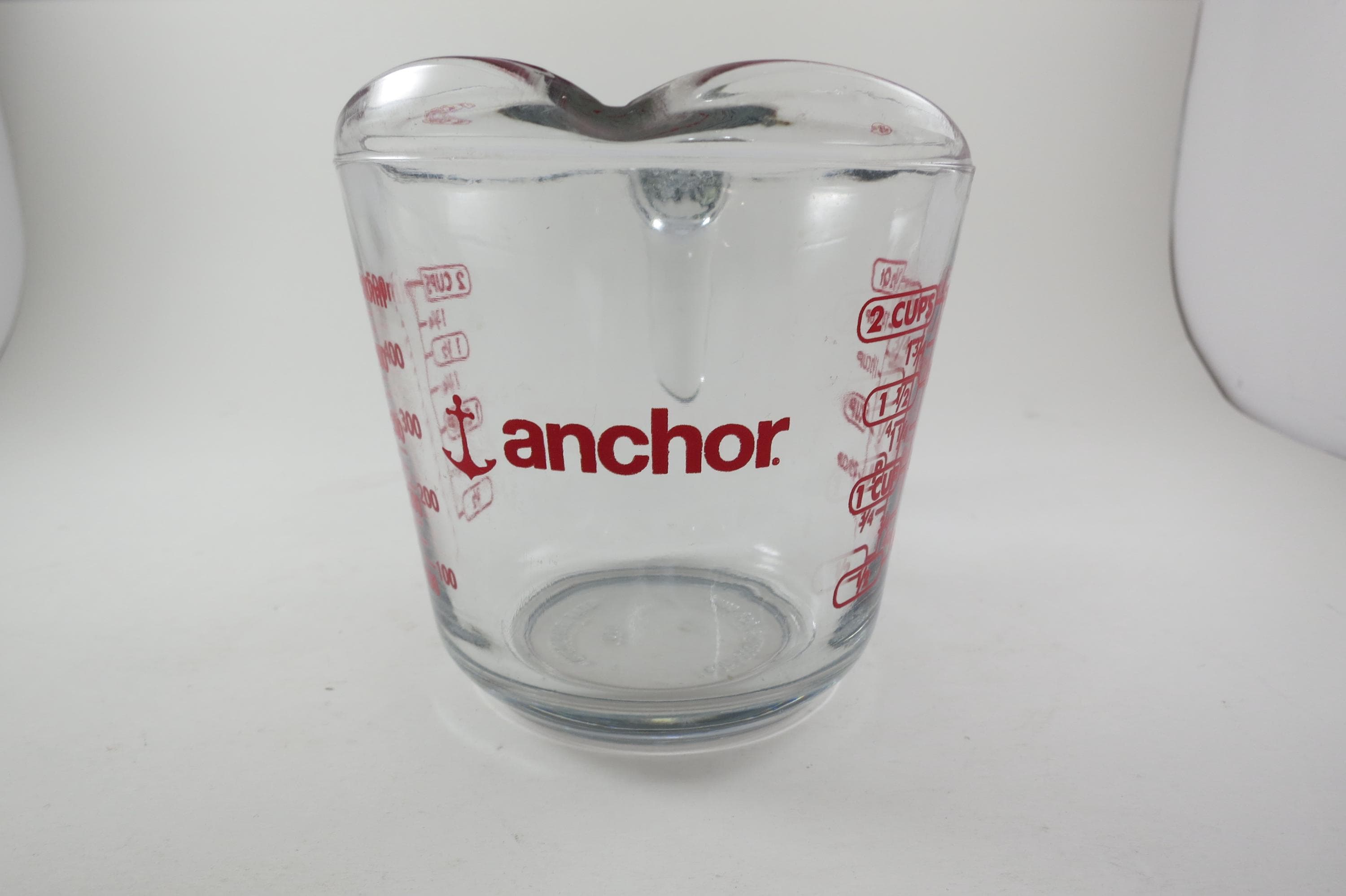 Anchor Hocking 2 Cup Measuring Cup with Red Lettering Excellent Condition.