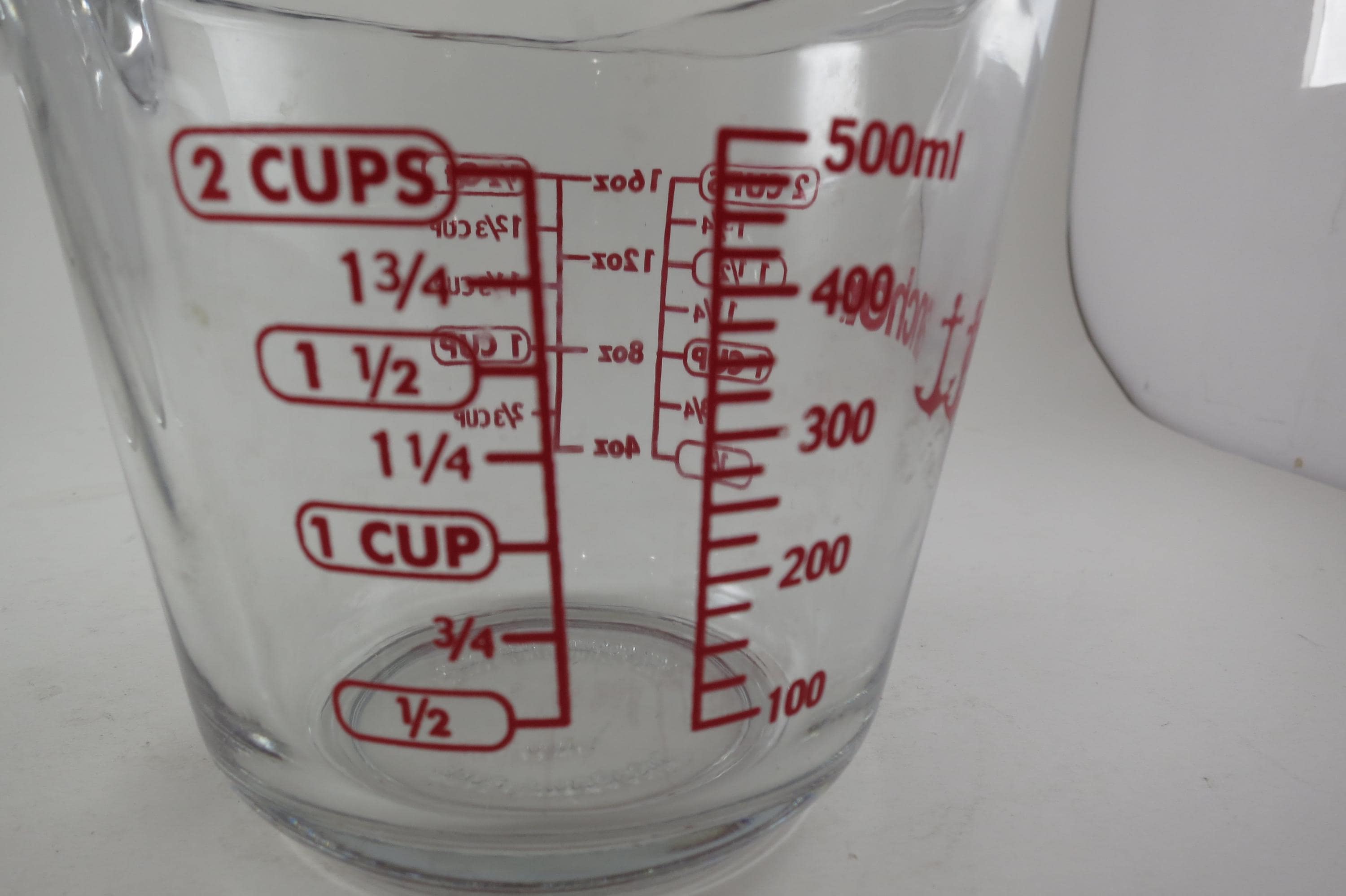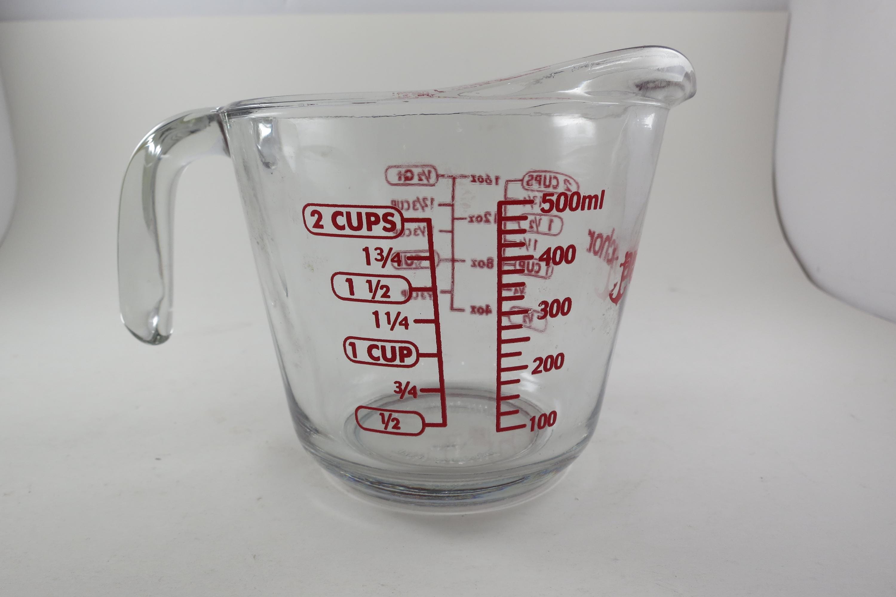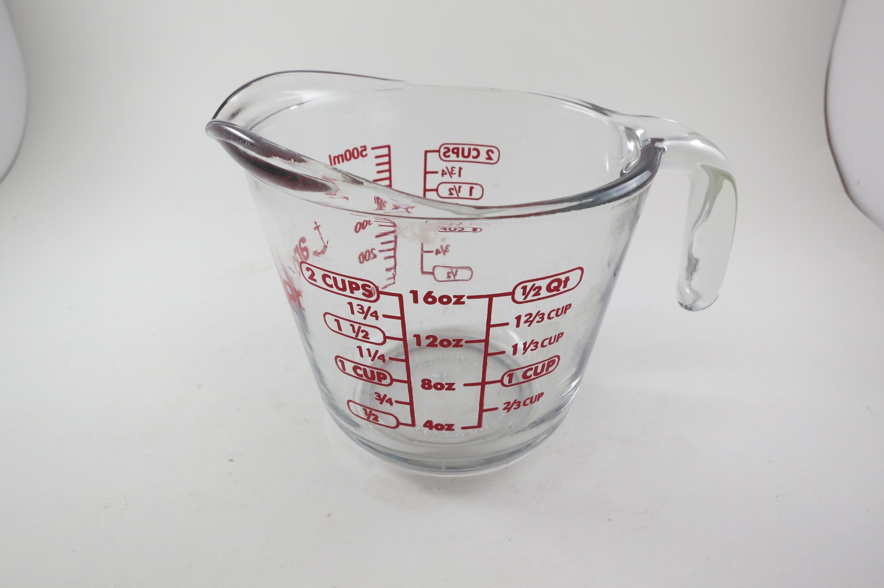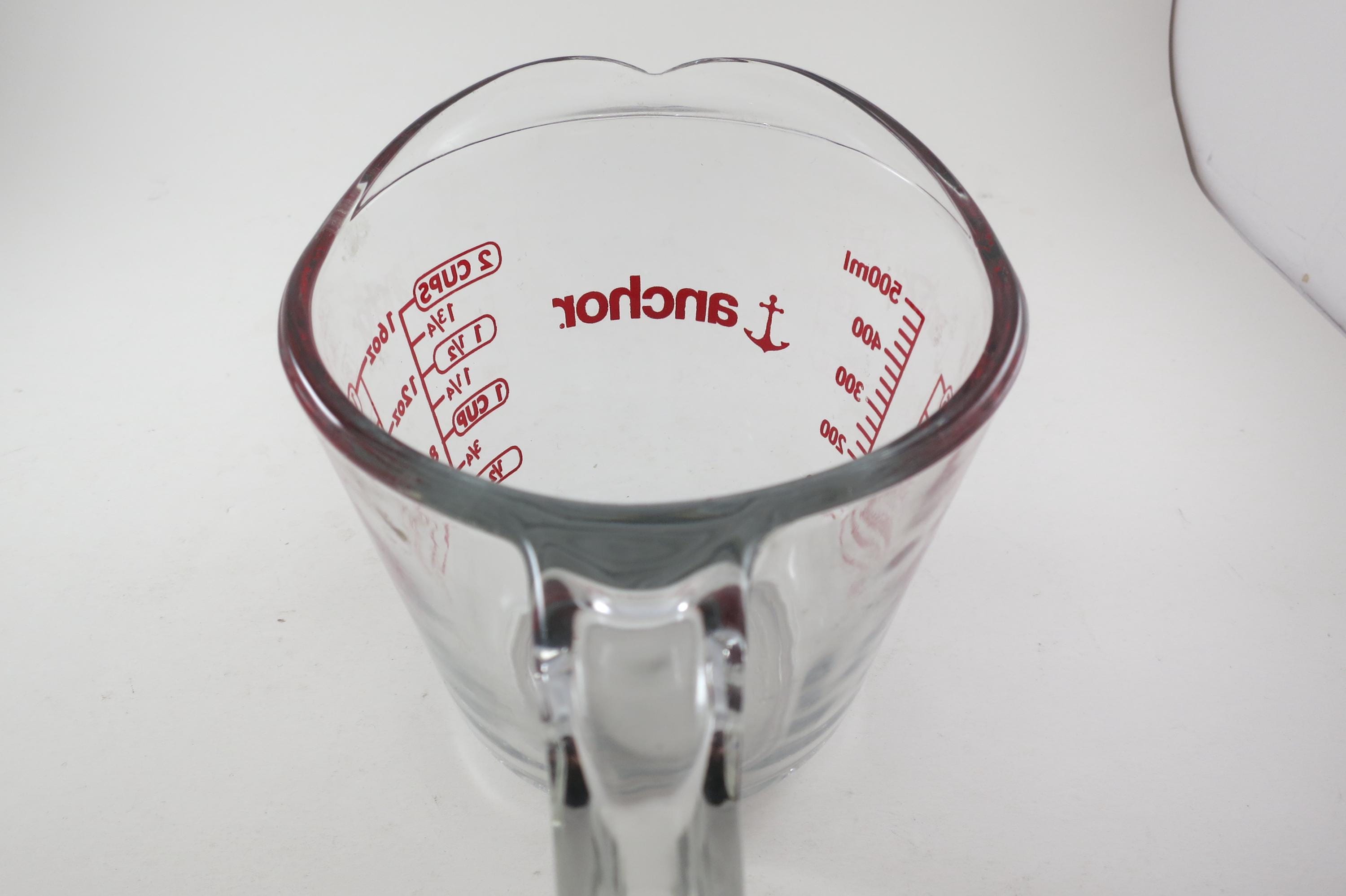 Anchor Hocking 2 Cup Measuring Cup with Red Lettering Excellent Condition.
