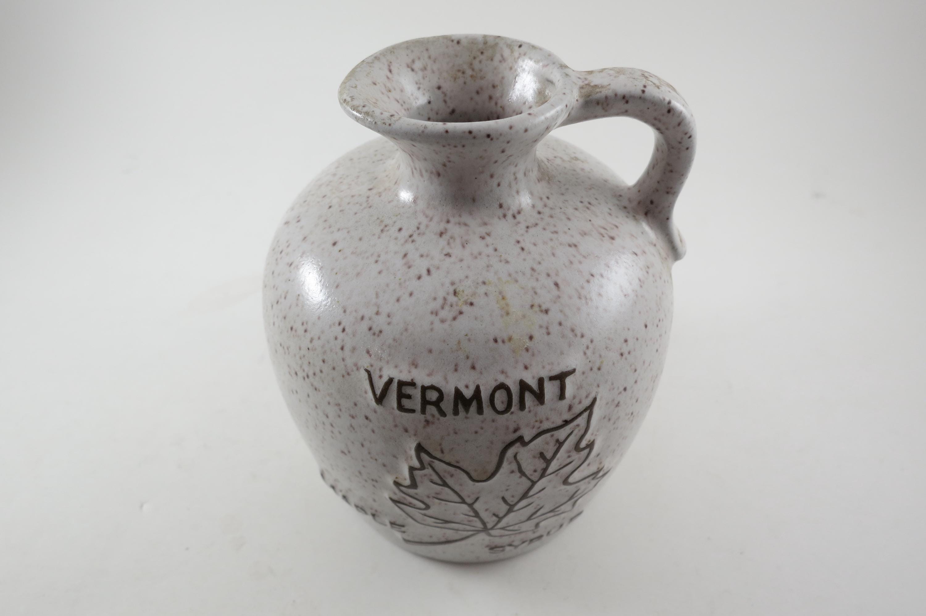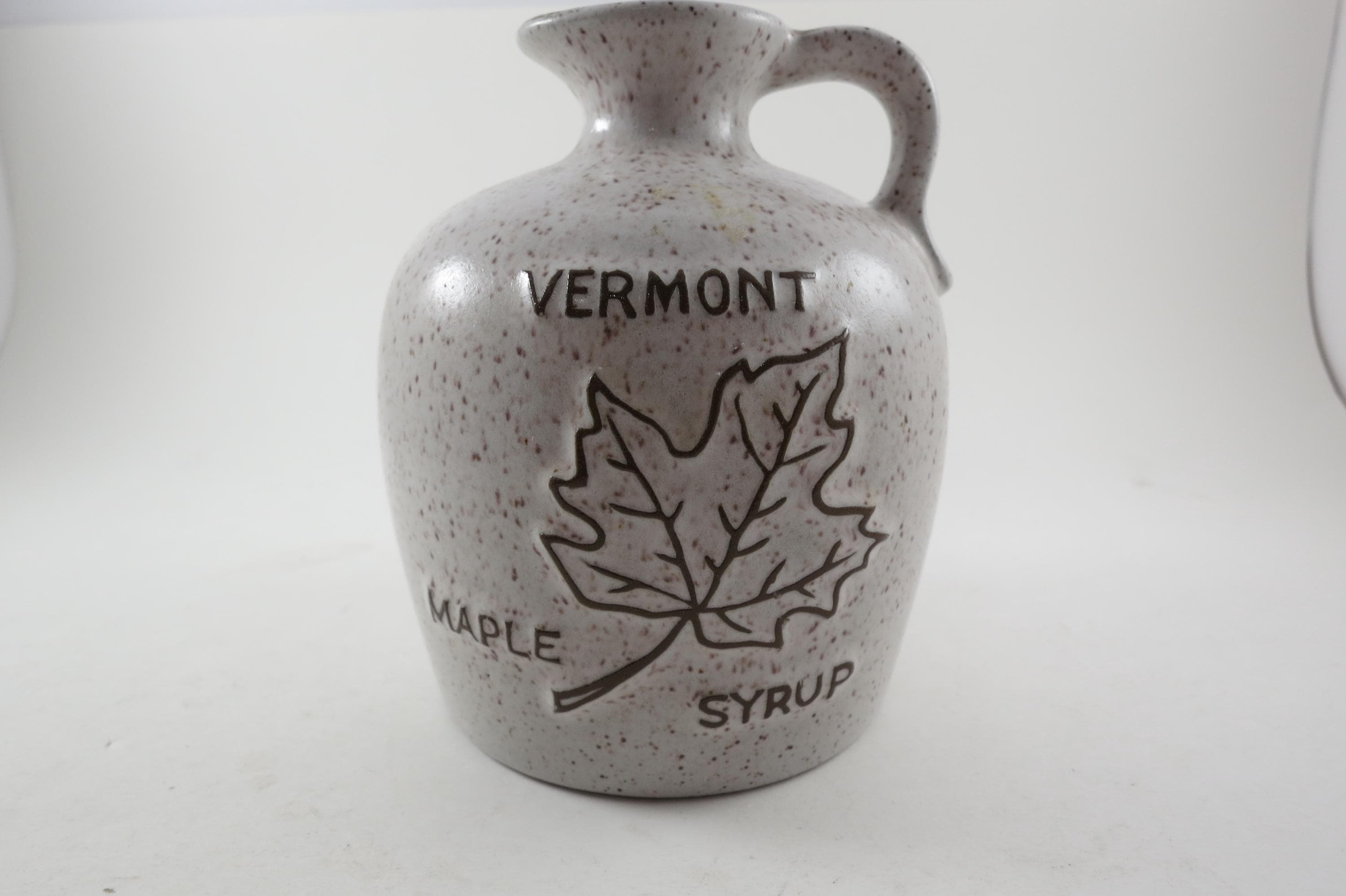 Speckled Stoneware Onion River Pottery Vermont Maple Syrup Jug.