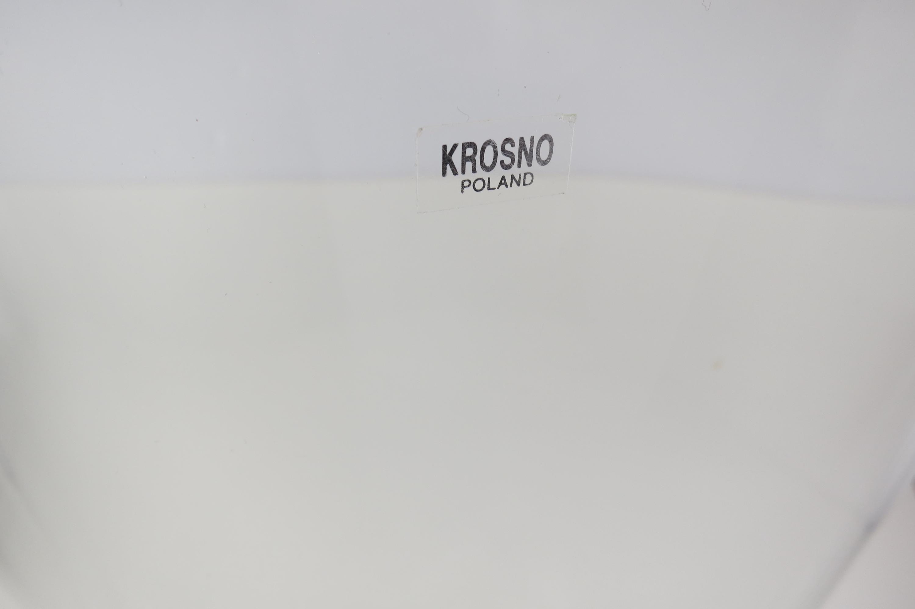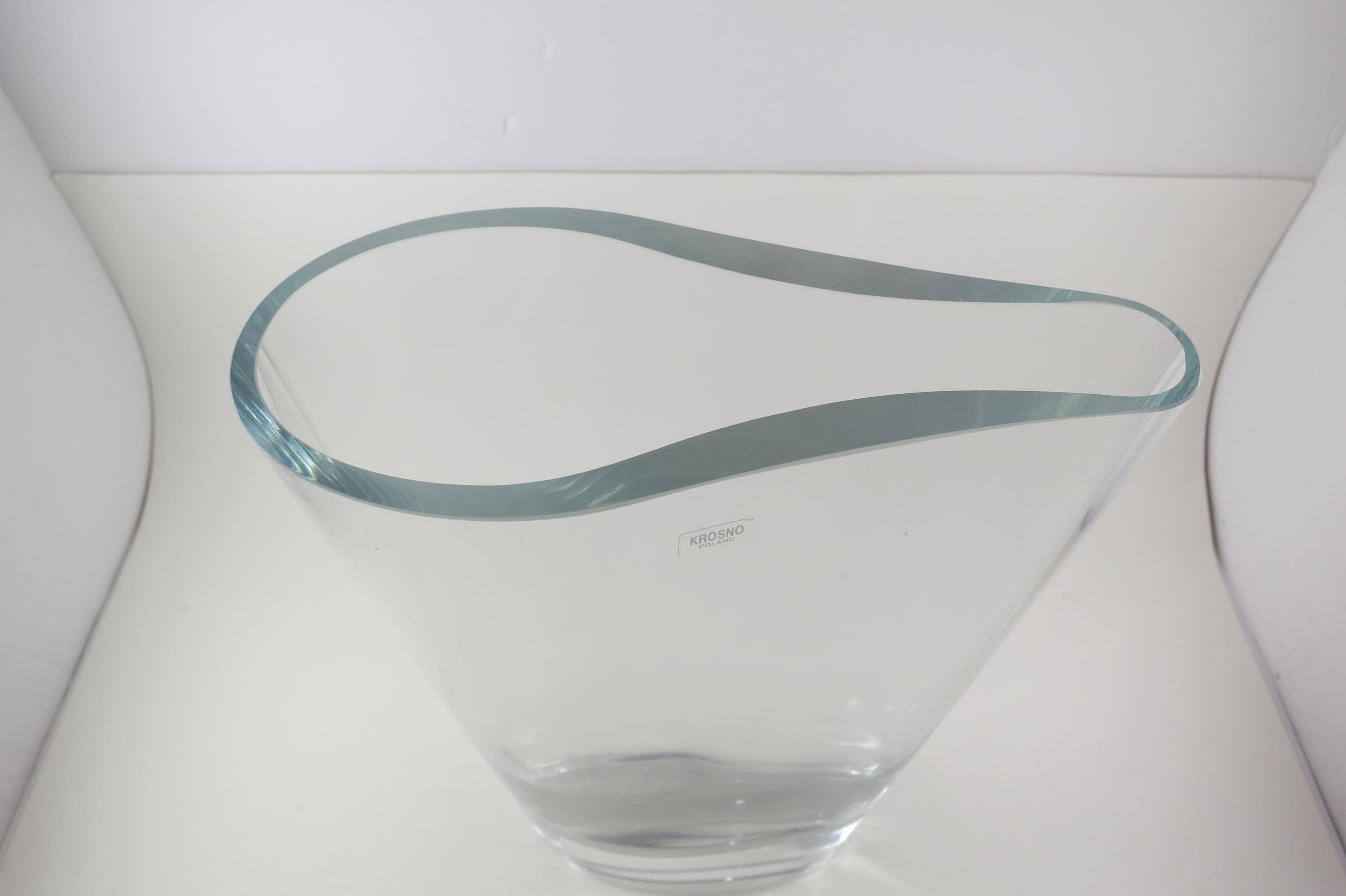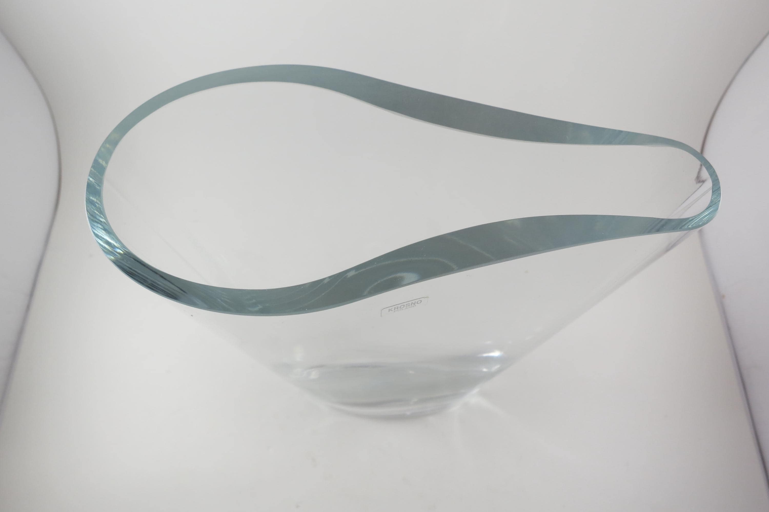 Fabulous display vase with a unique top mold. No damages, still has the krosno sticker. 11 Inches tall, one end is 3 1/2 inches wide and the other is 1 1/2 inches wide.