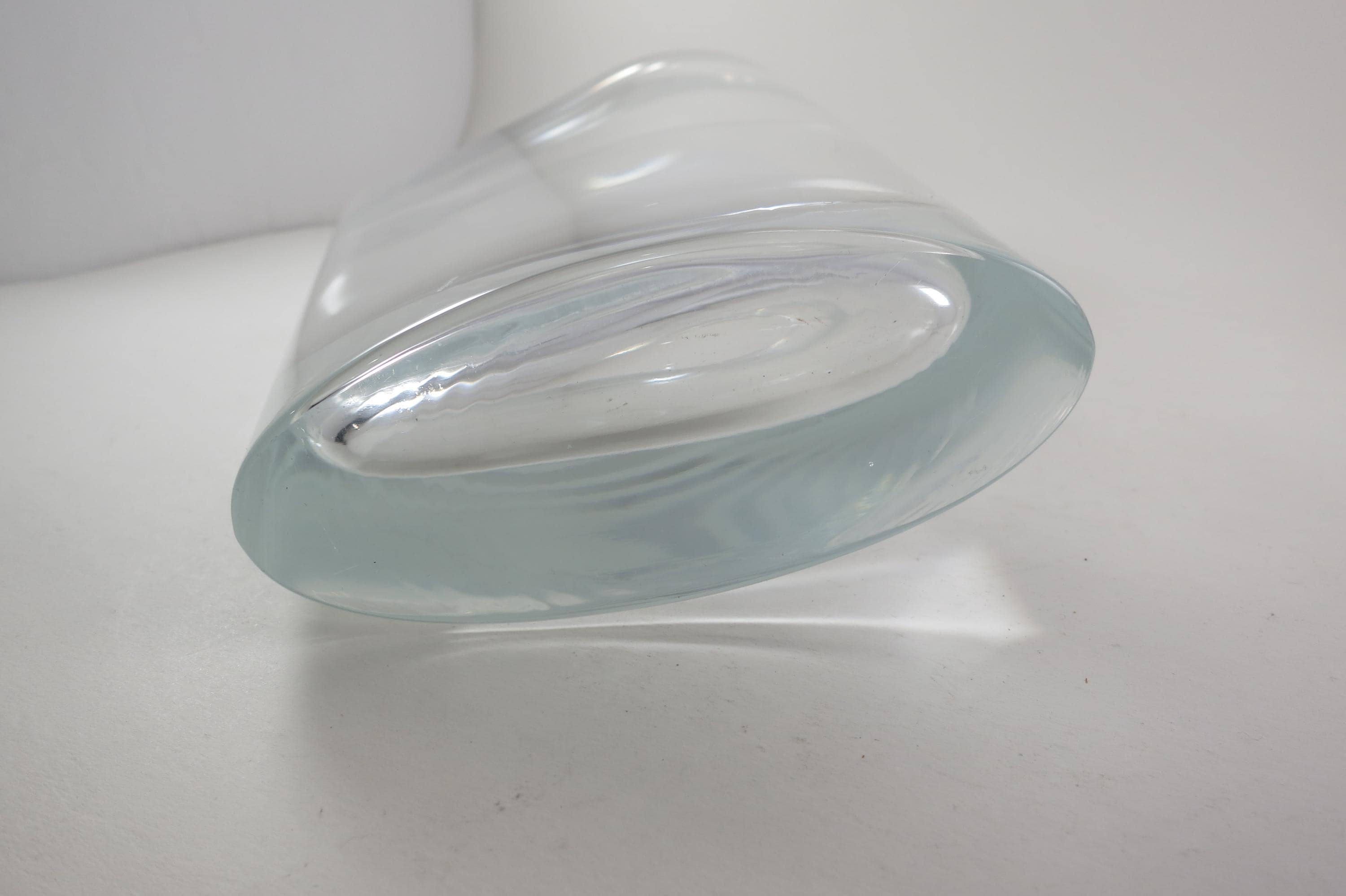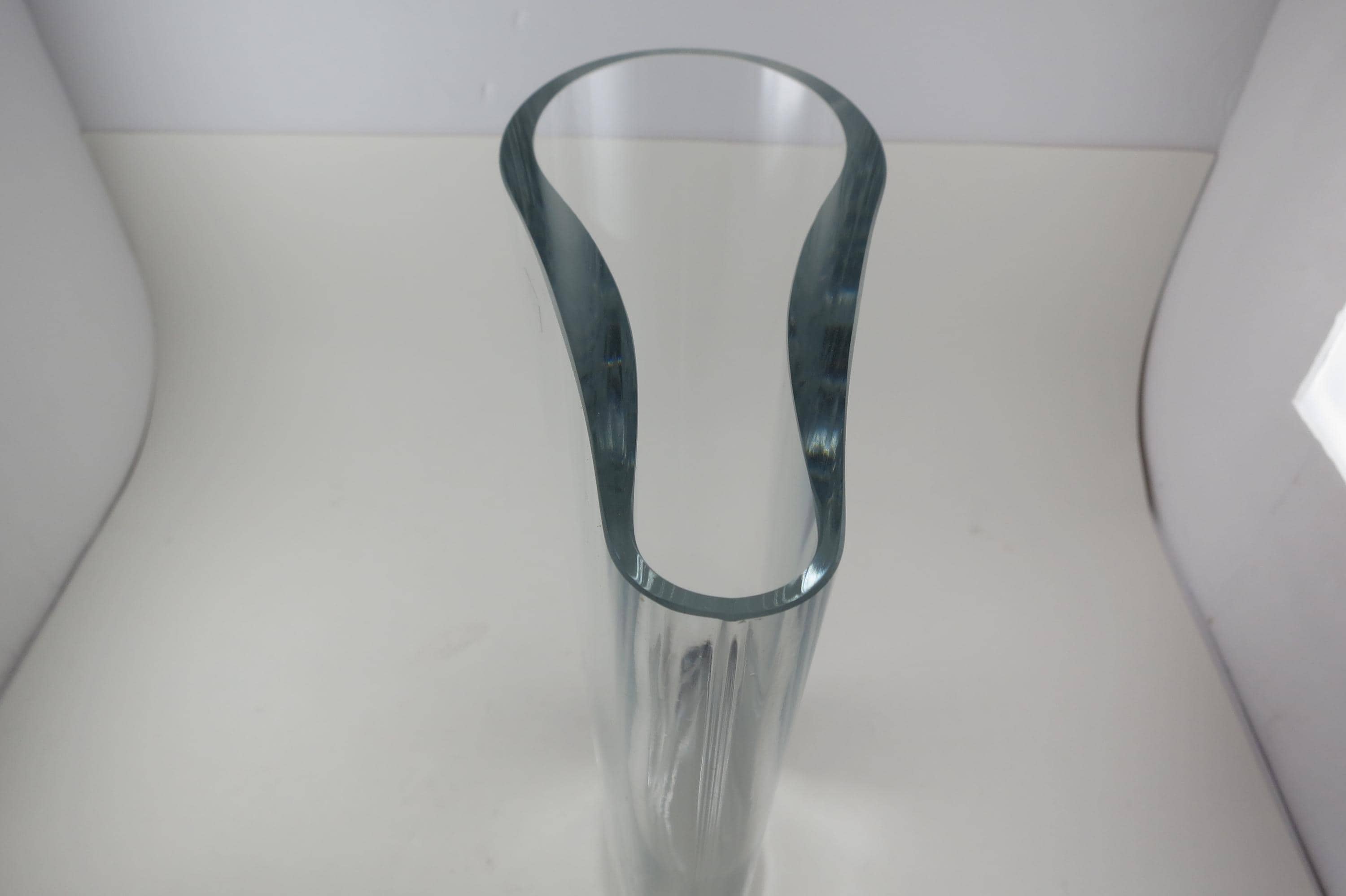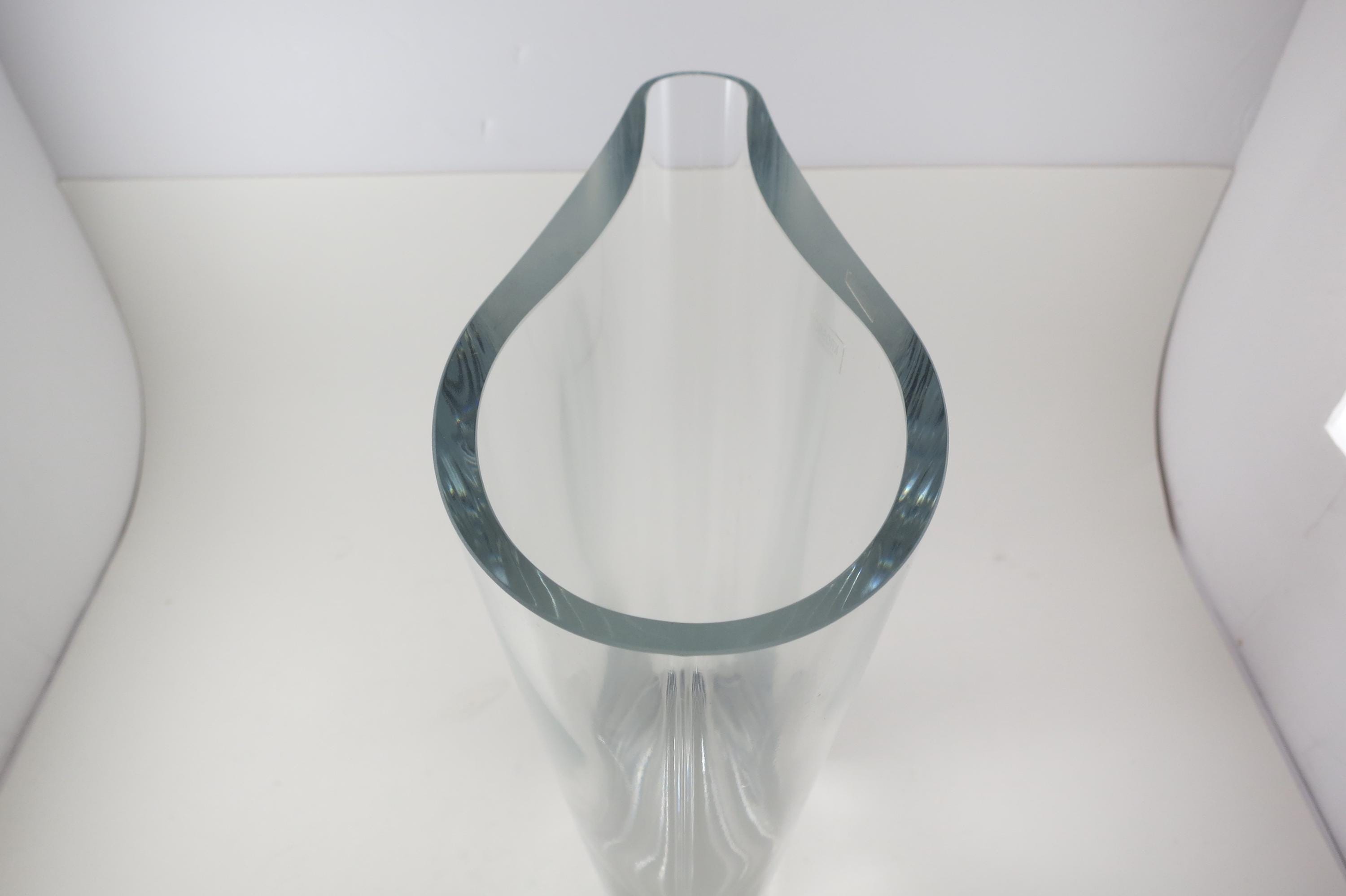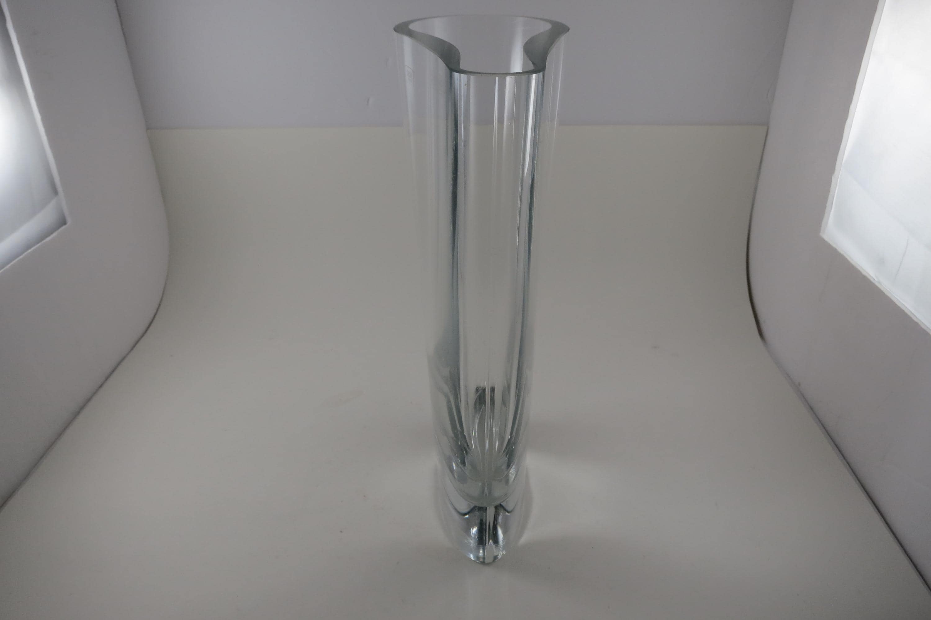 Fabulous display vase with a unique top mold. No damages, still has the krosno sticker. 11 Inches tall, one end is 3 1/2 inches wide and the other is 1 1/2 inches wide.