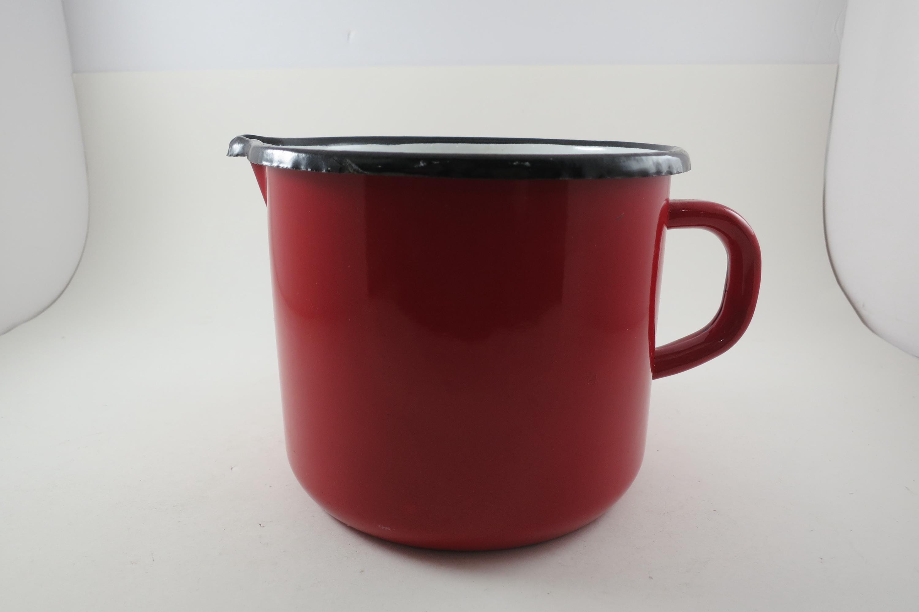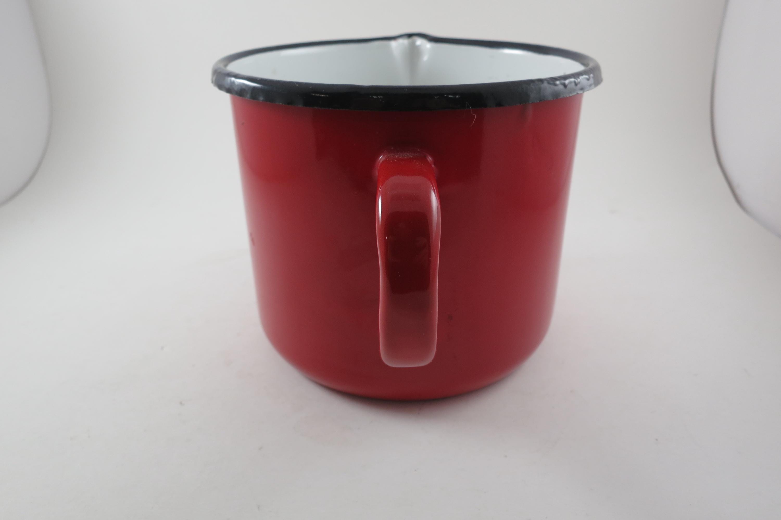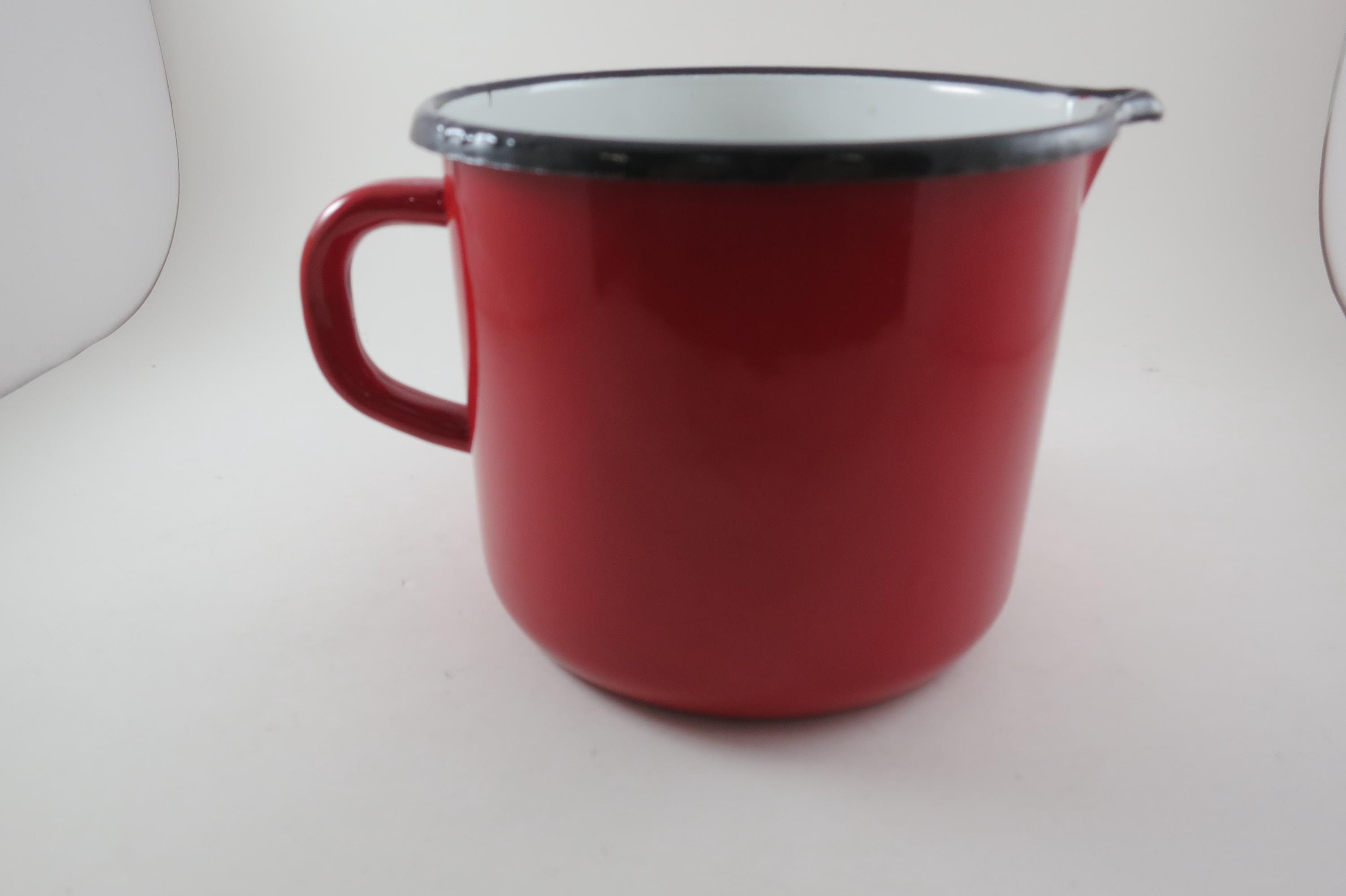 Vintage Emailul Enamelware Red 50 Ounce Measuring Cup Romania Black Rim. Great for Camping!