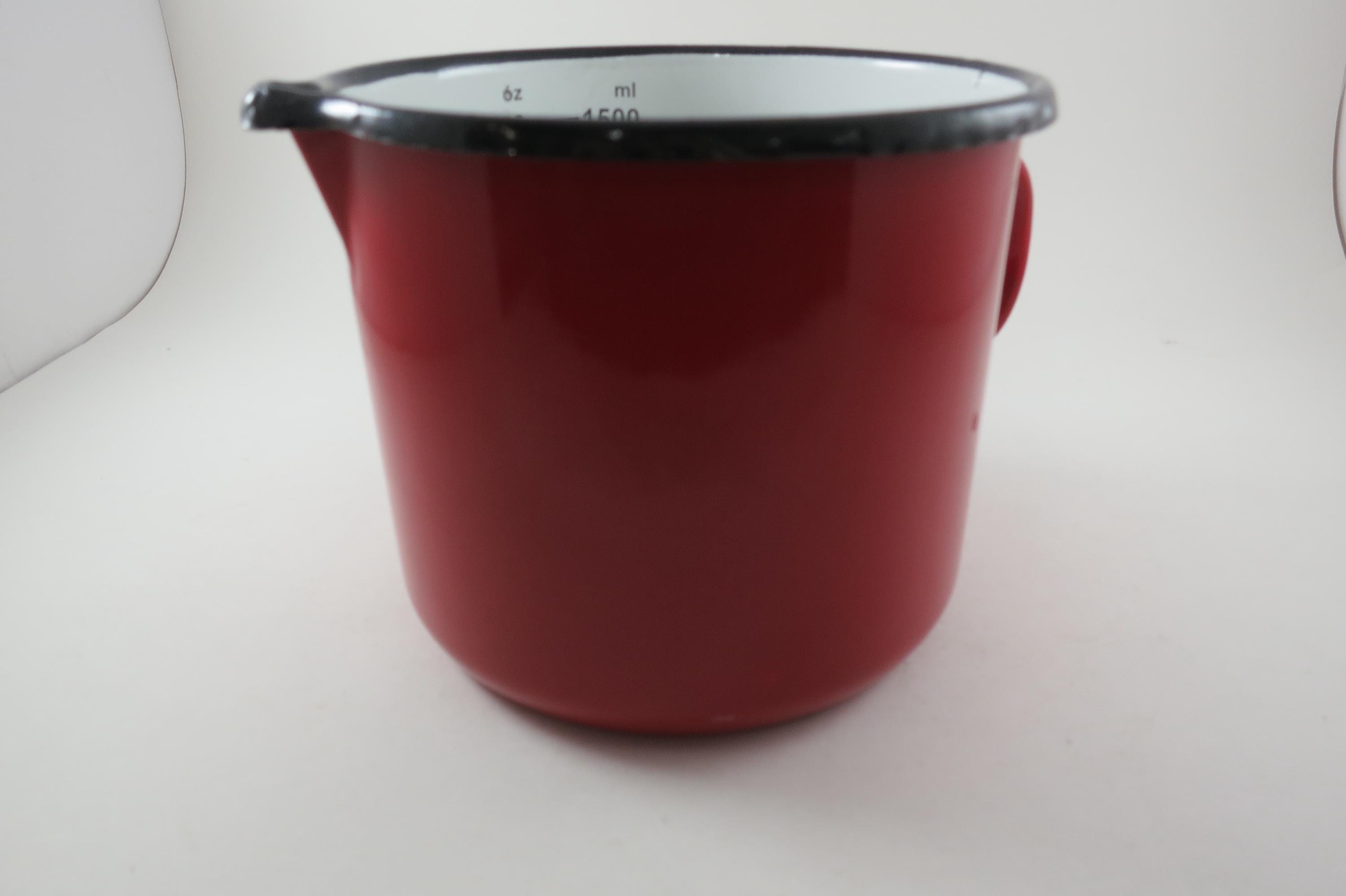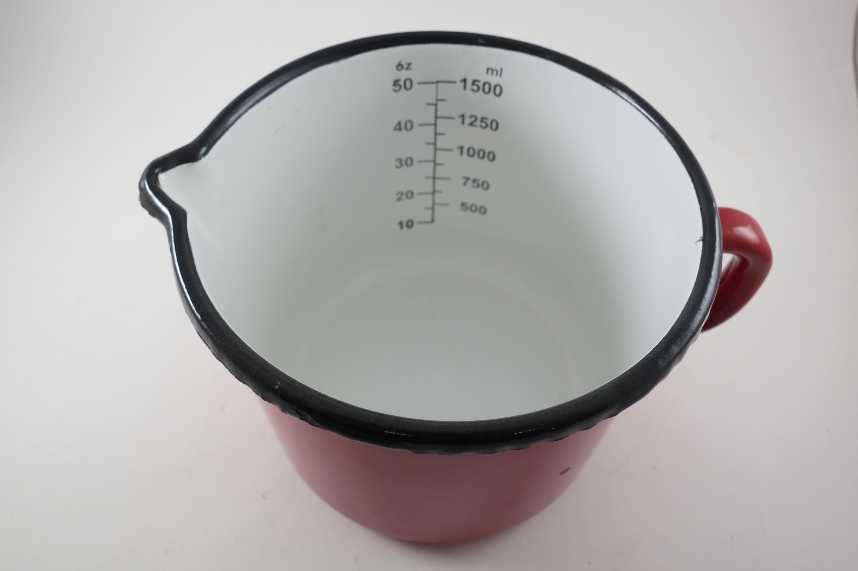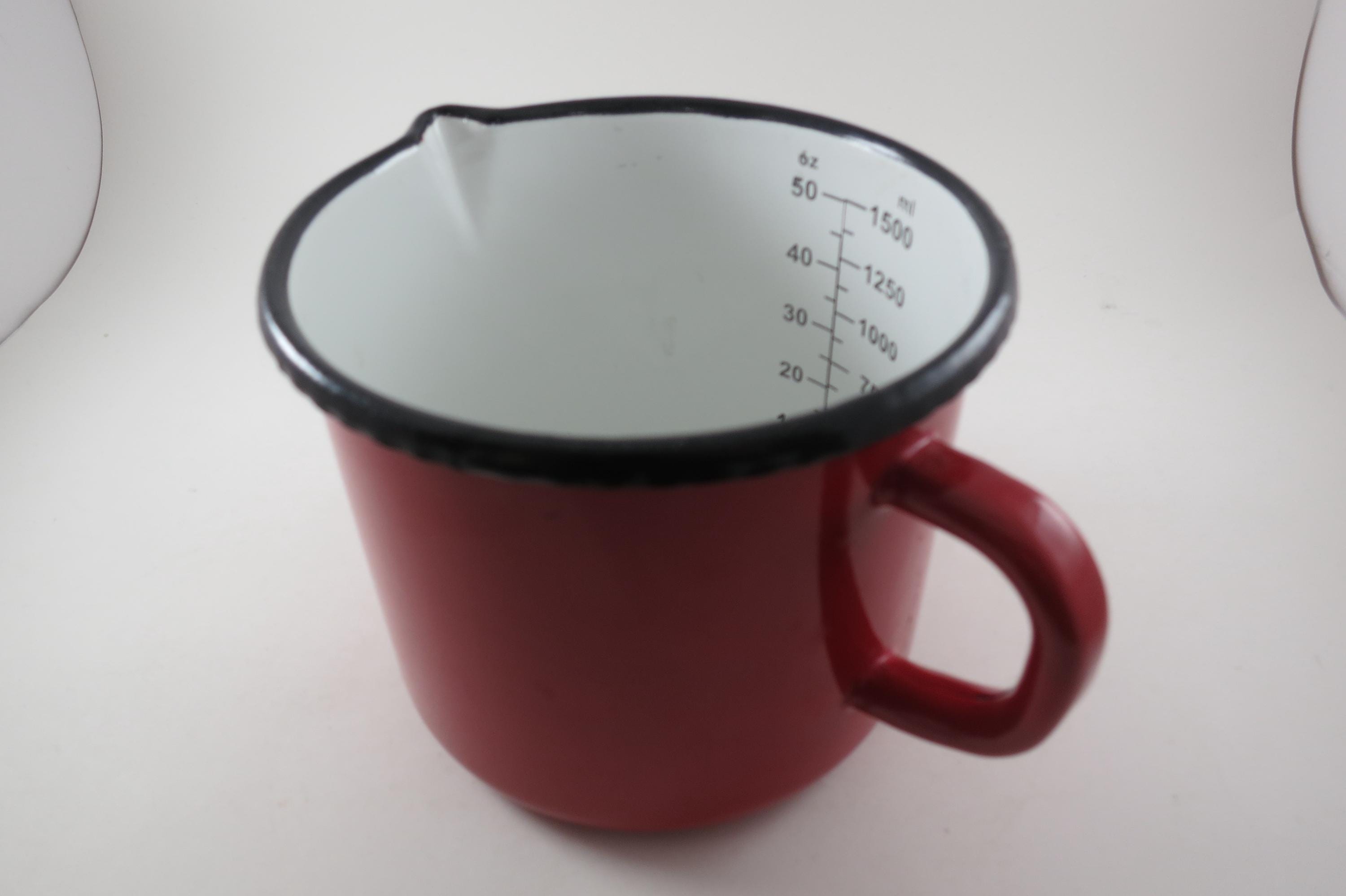 Vintage Emailul Enamelware Red 50 Ounce Measuring Cup Romania Black Rim