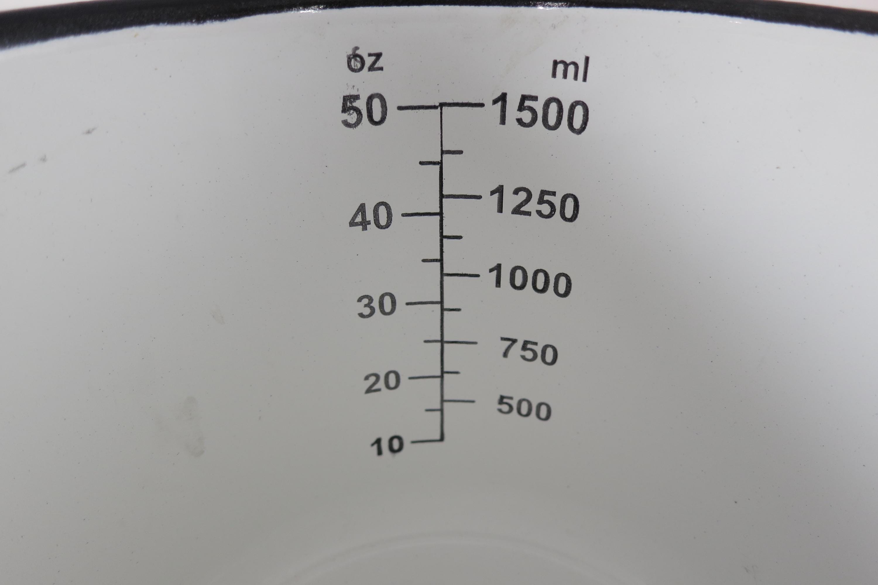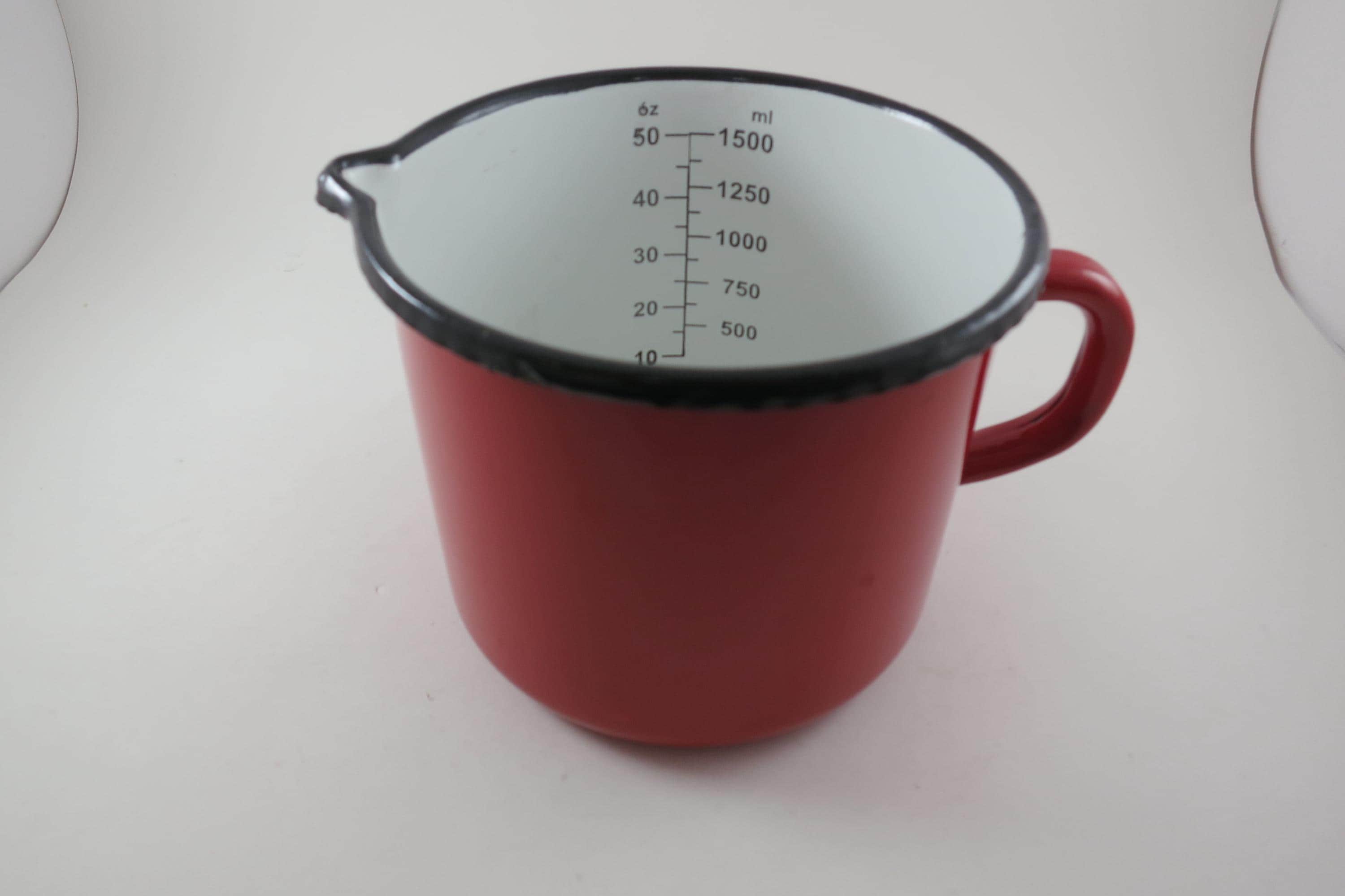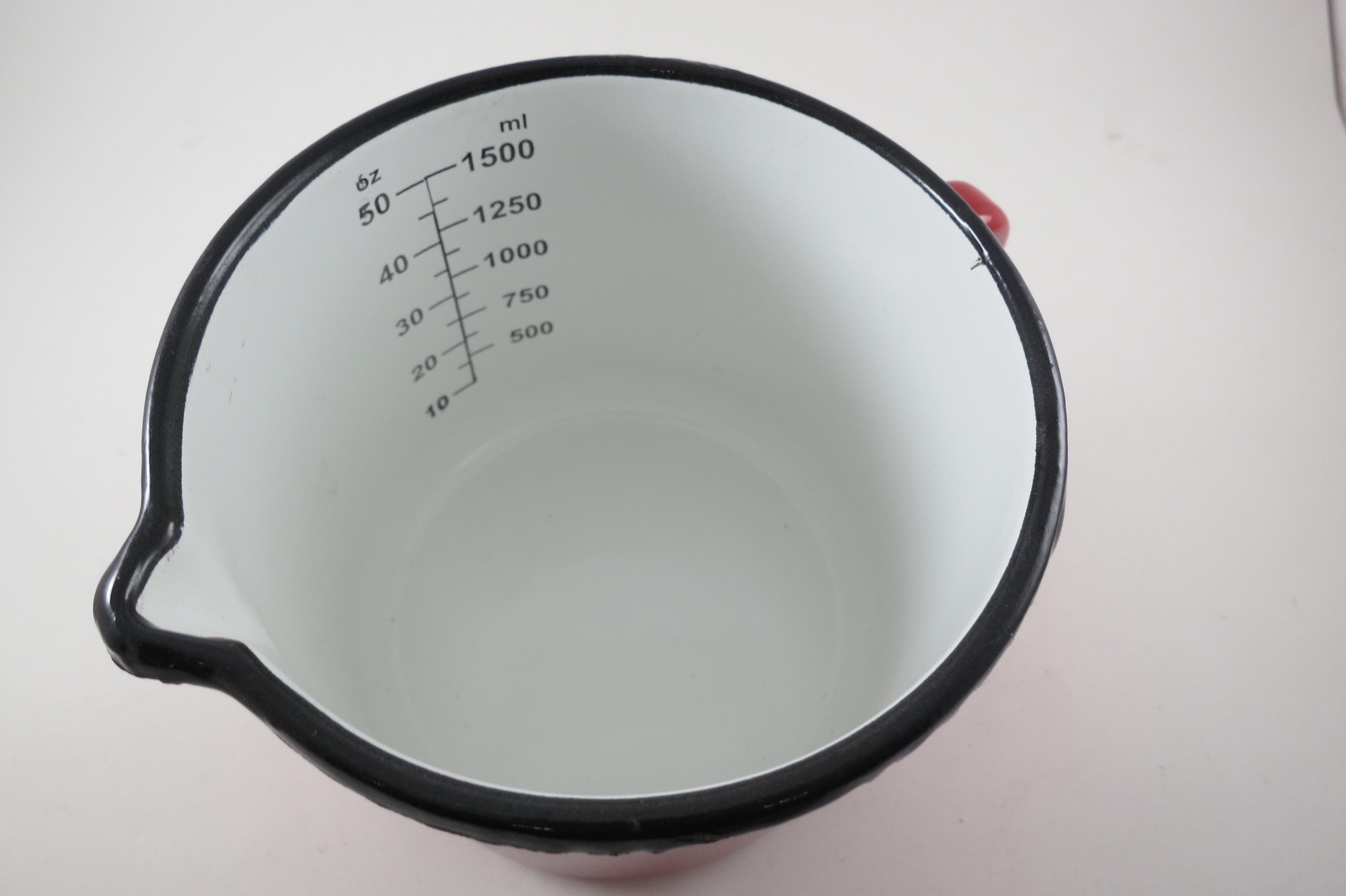 Vintage Emailul Enamelware Red 50 Ounce Measuring Cup Romania Black Rim