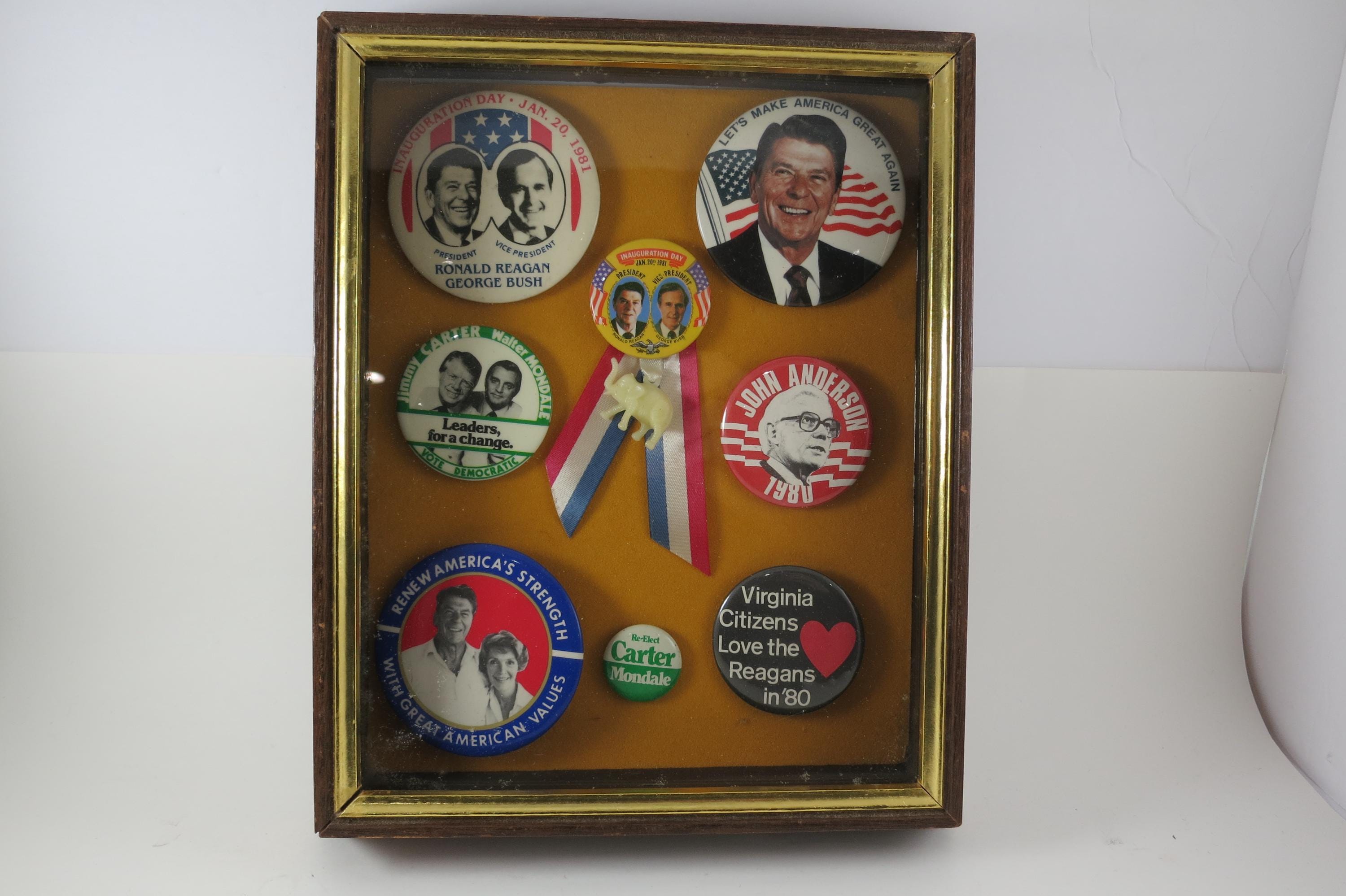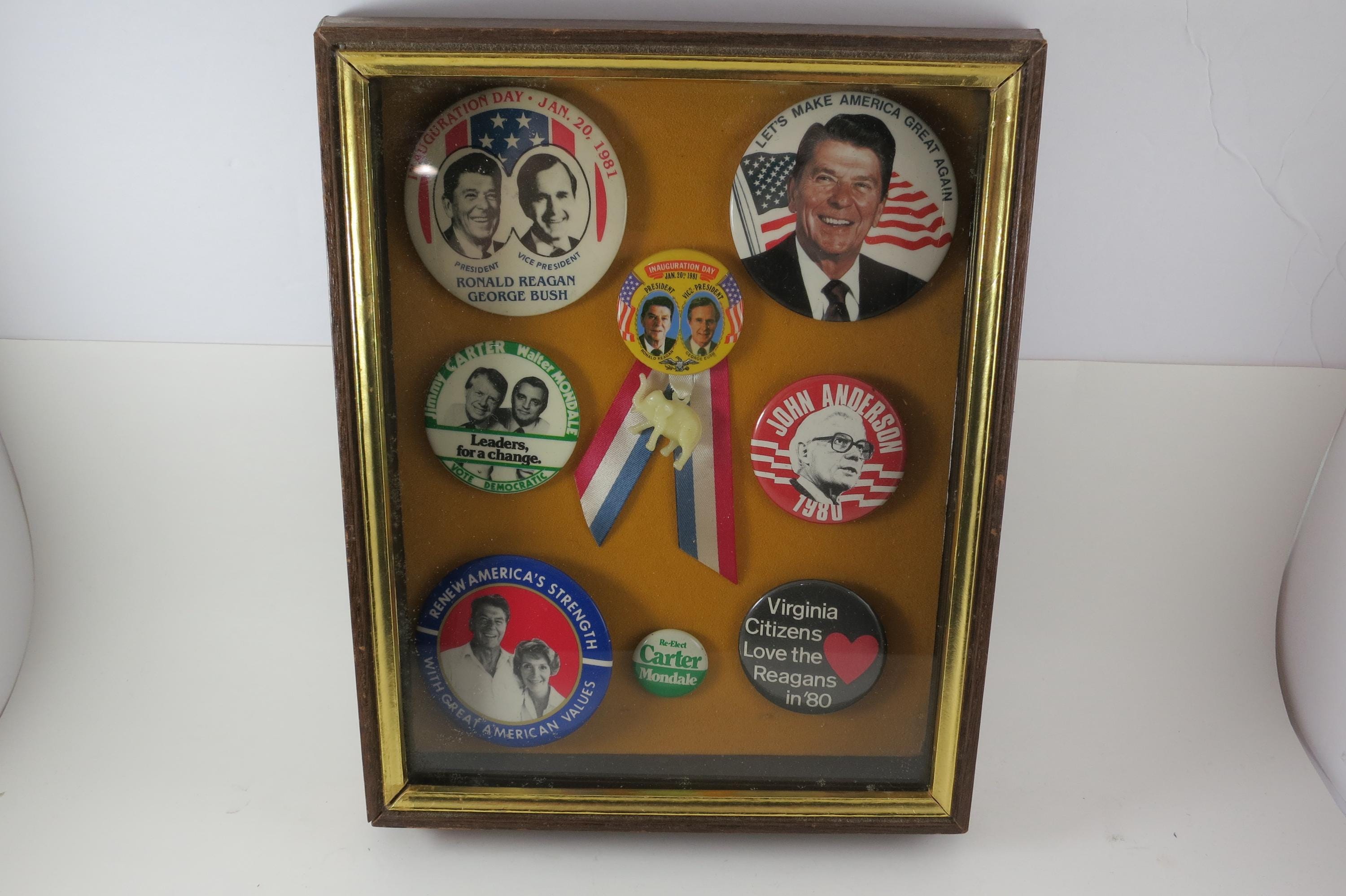 Custom Made 1980 Presidential Election Shadowbox Pins Ribbons Reagan.