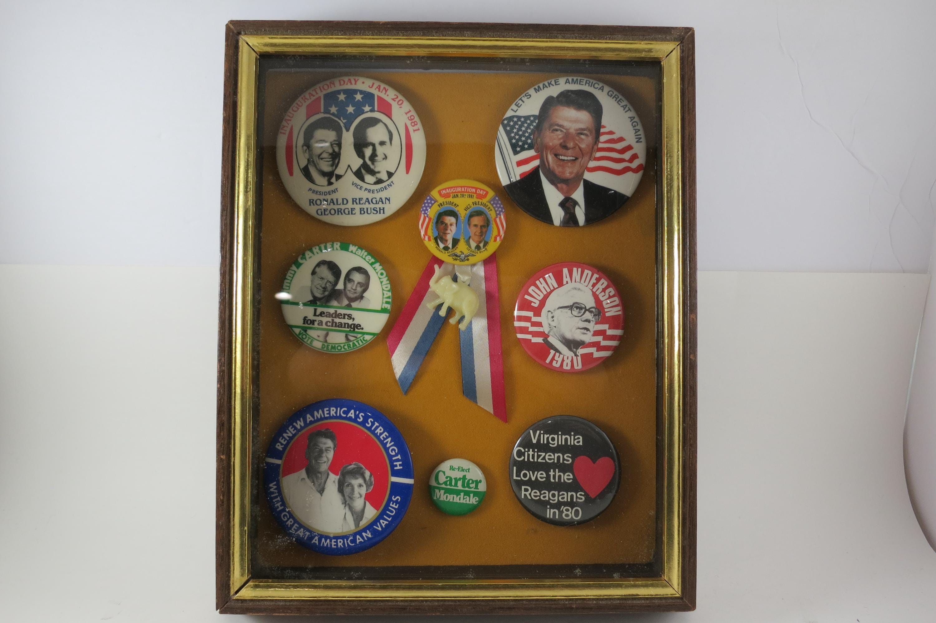 Custom Made 1980 Presidential Election Shadowbox Pins Ribbons Reagan