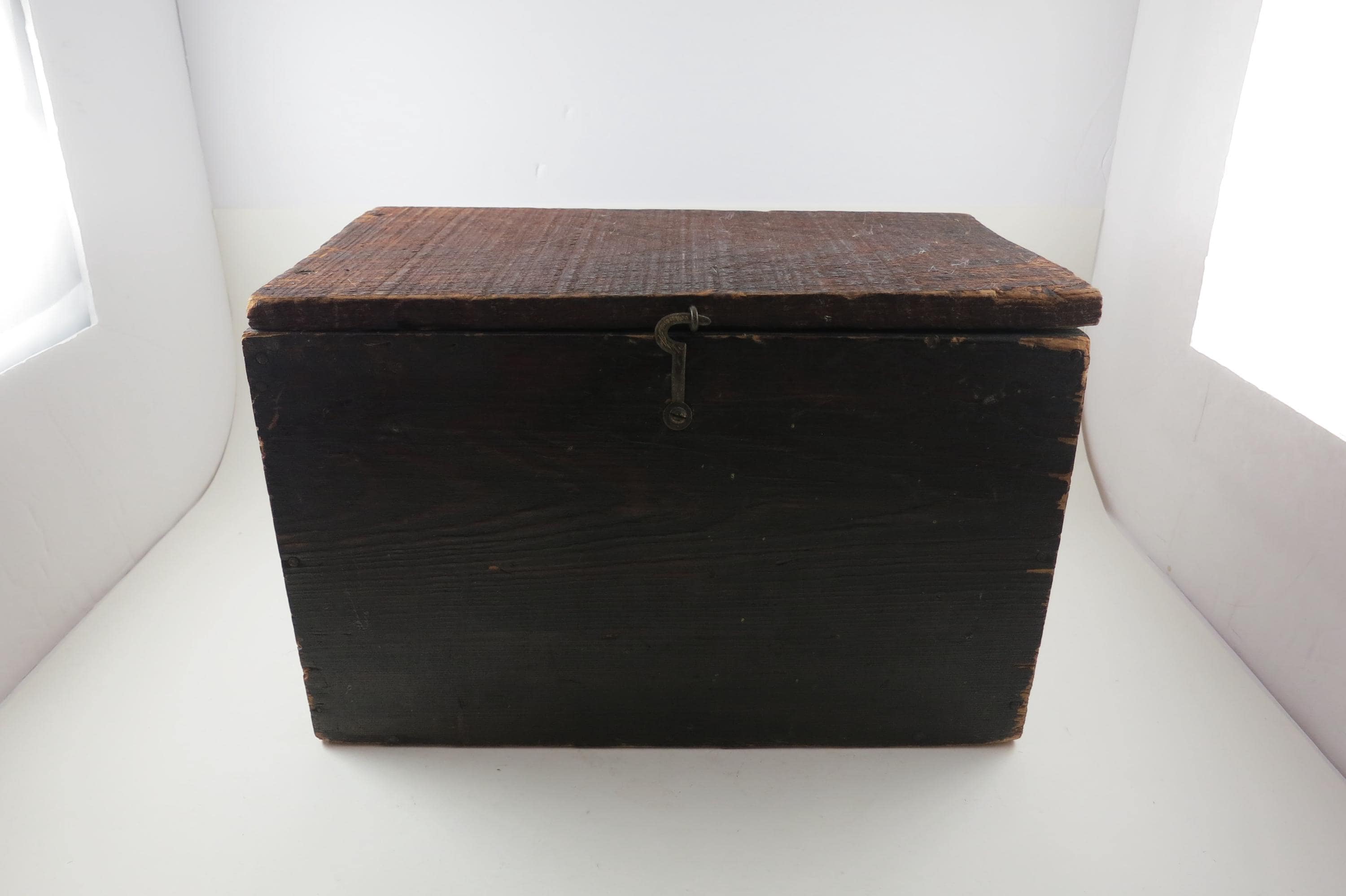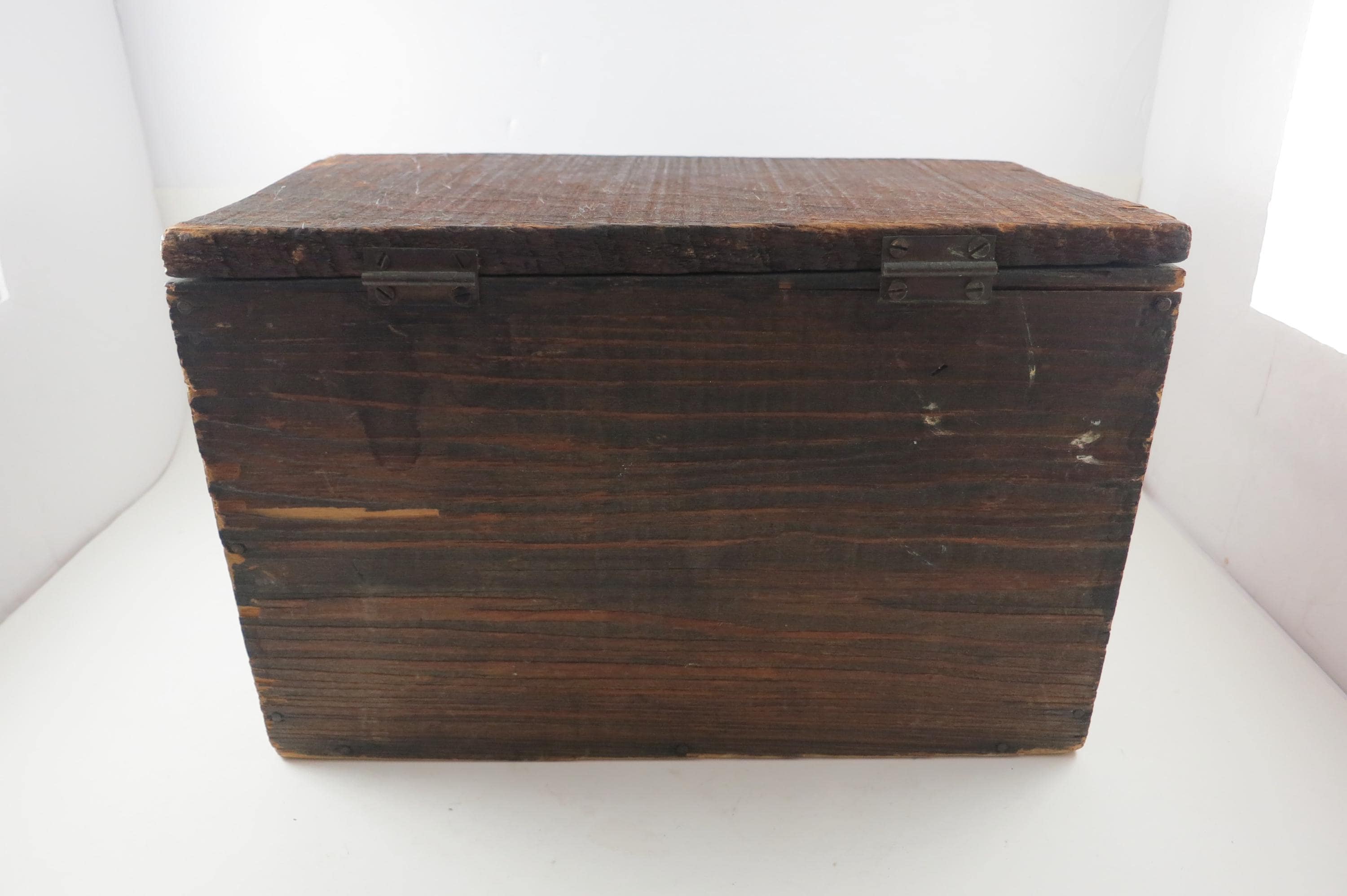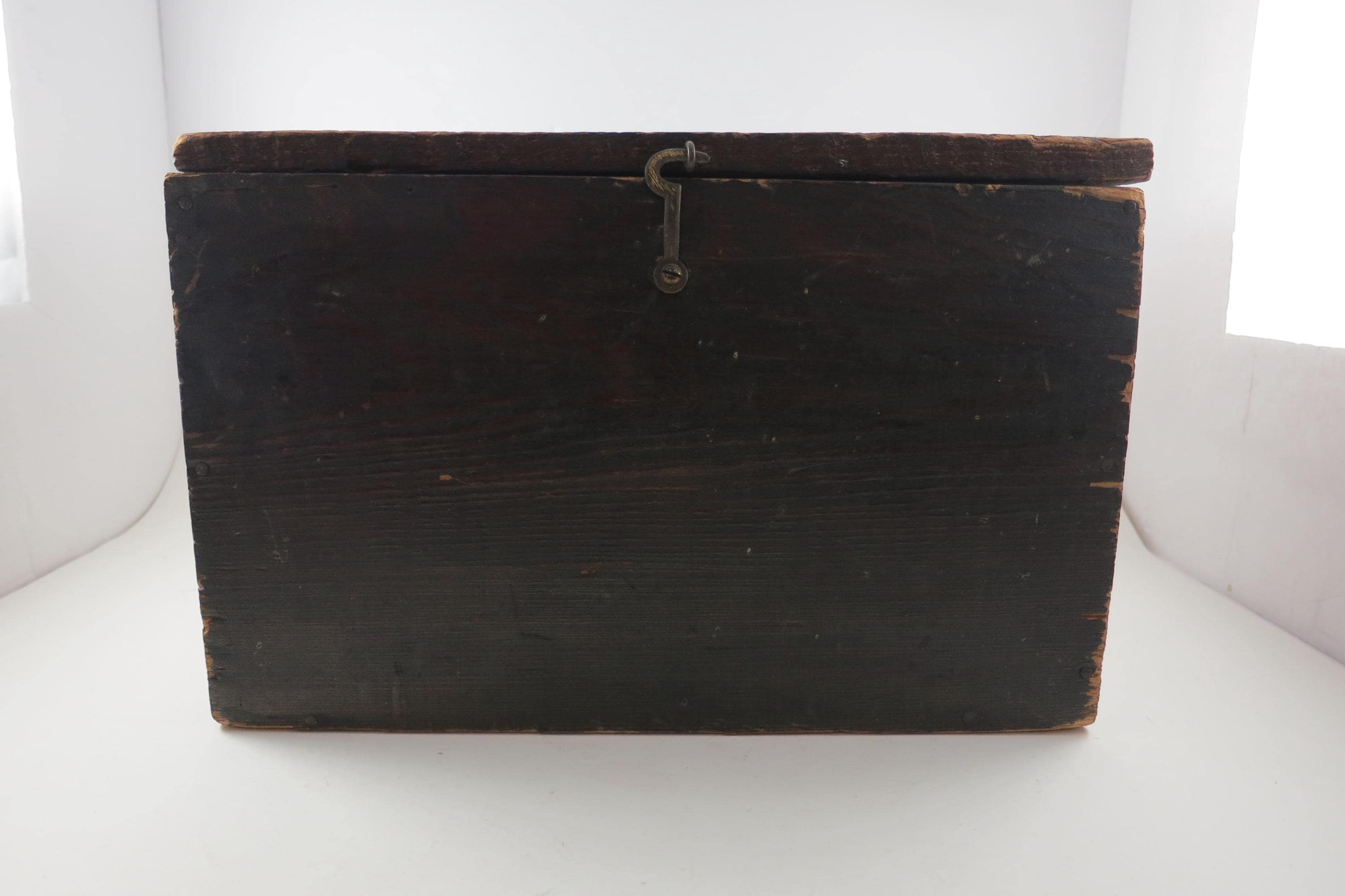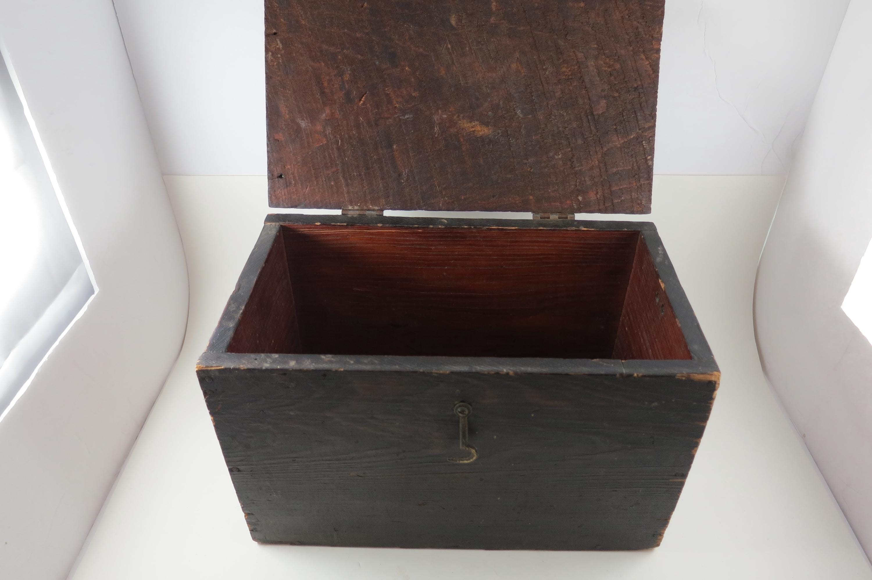 Antique Wooden Treasure Keepsake Storage Box 11 1/2 Inches. Good condition for a box this old! Has a small brass latch to keep the top closed.
