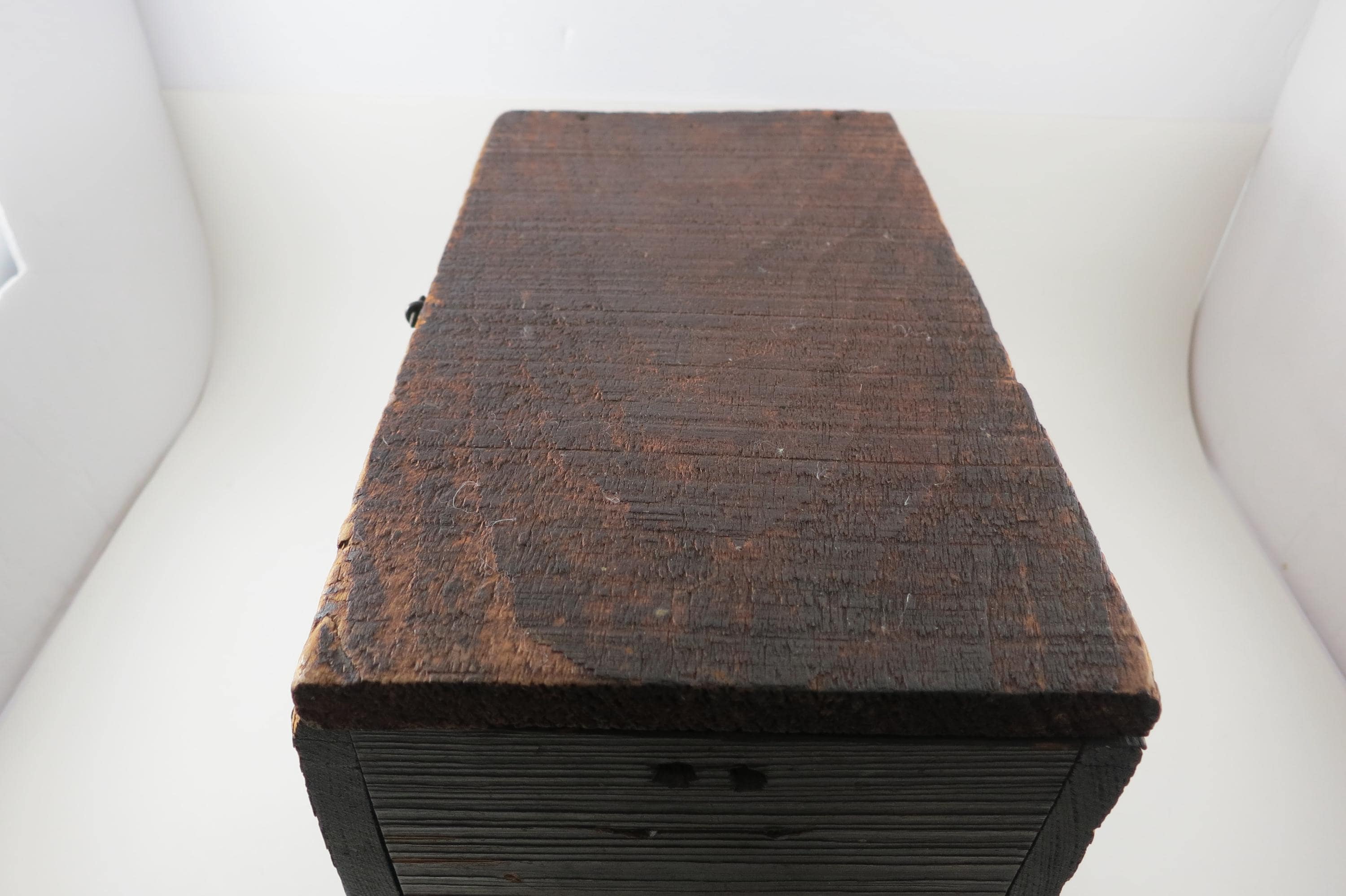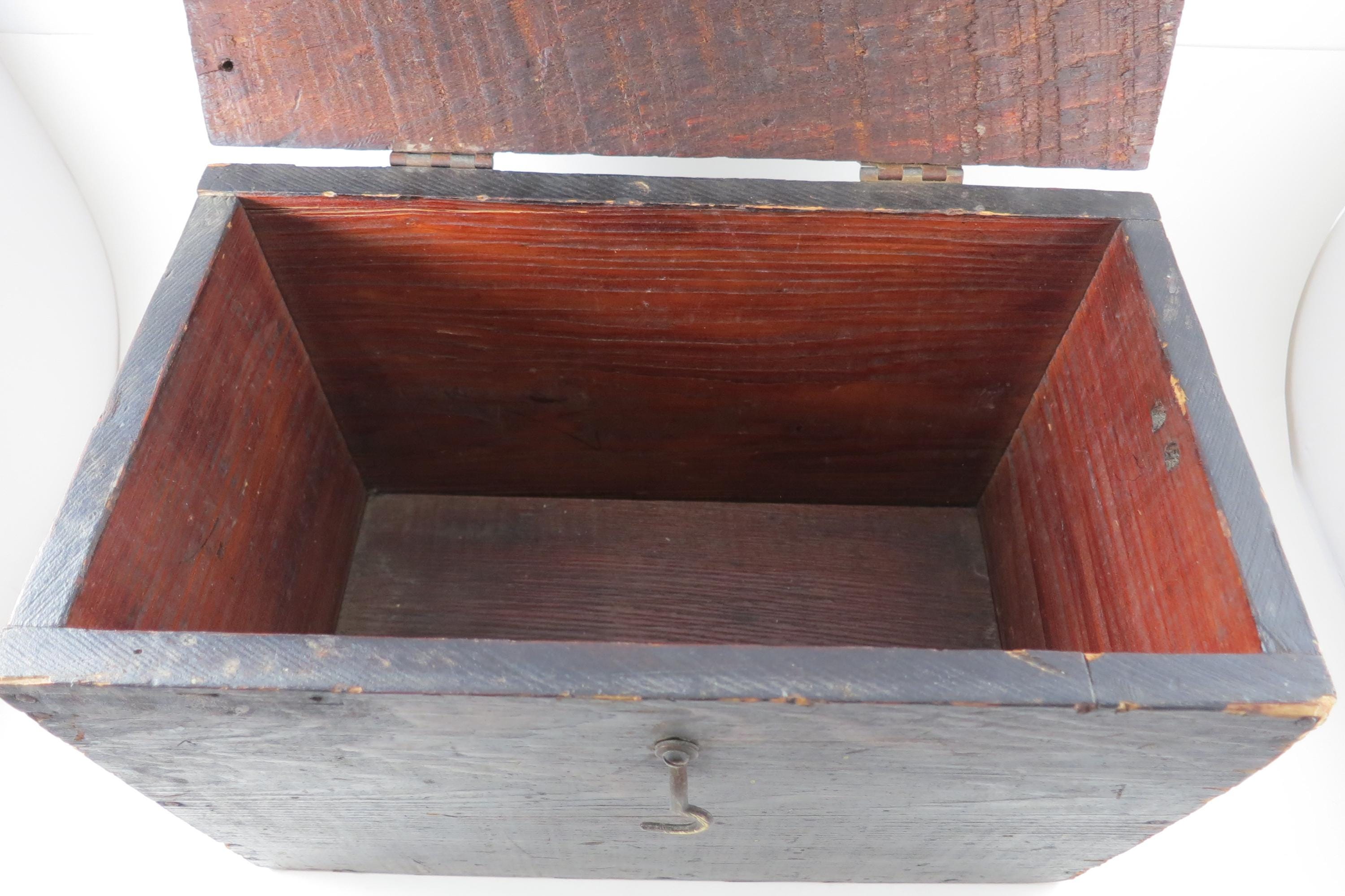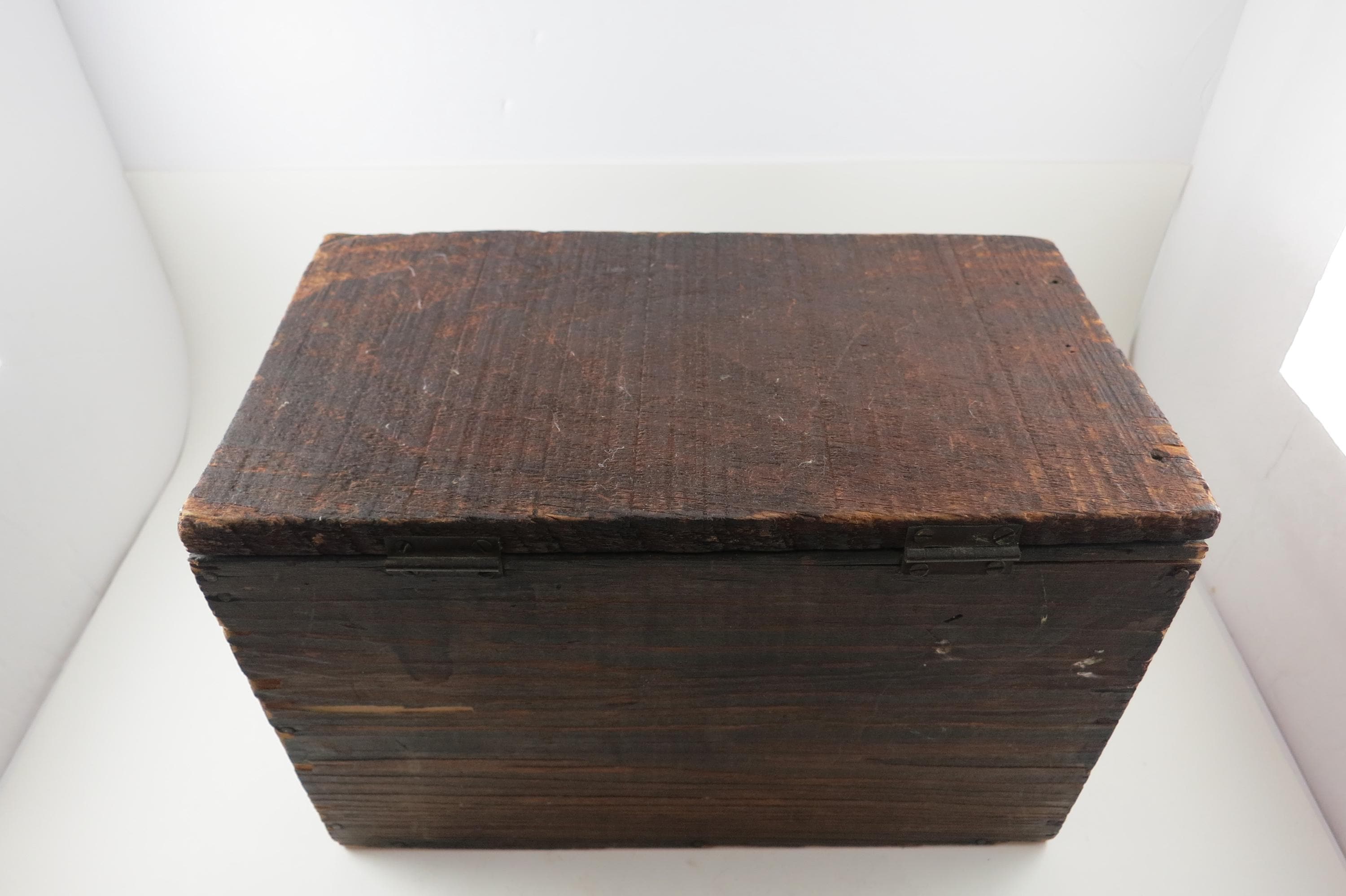 Antique Wooden Treasure Keepsake Storage Box 11 1/2 Inches. Good condition for a box this old! Has a small brass latch to keep the top closed.