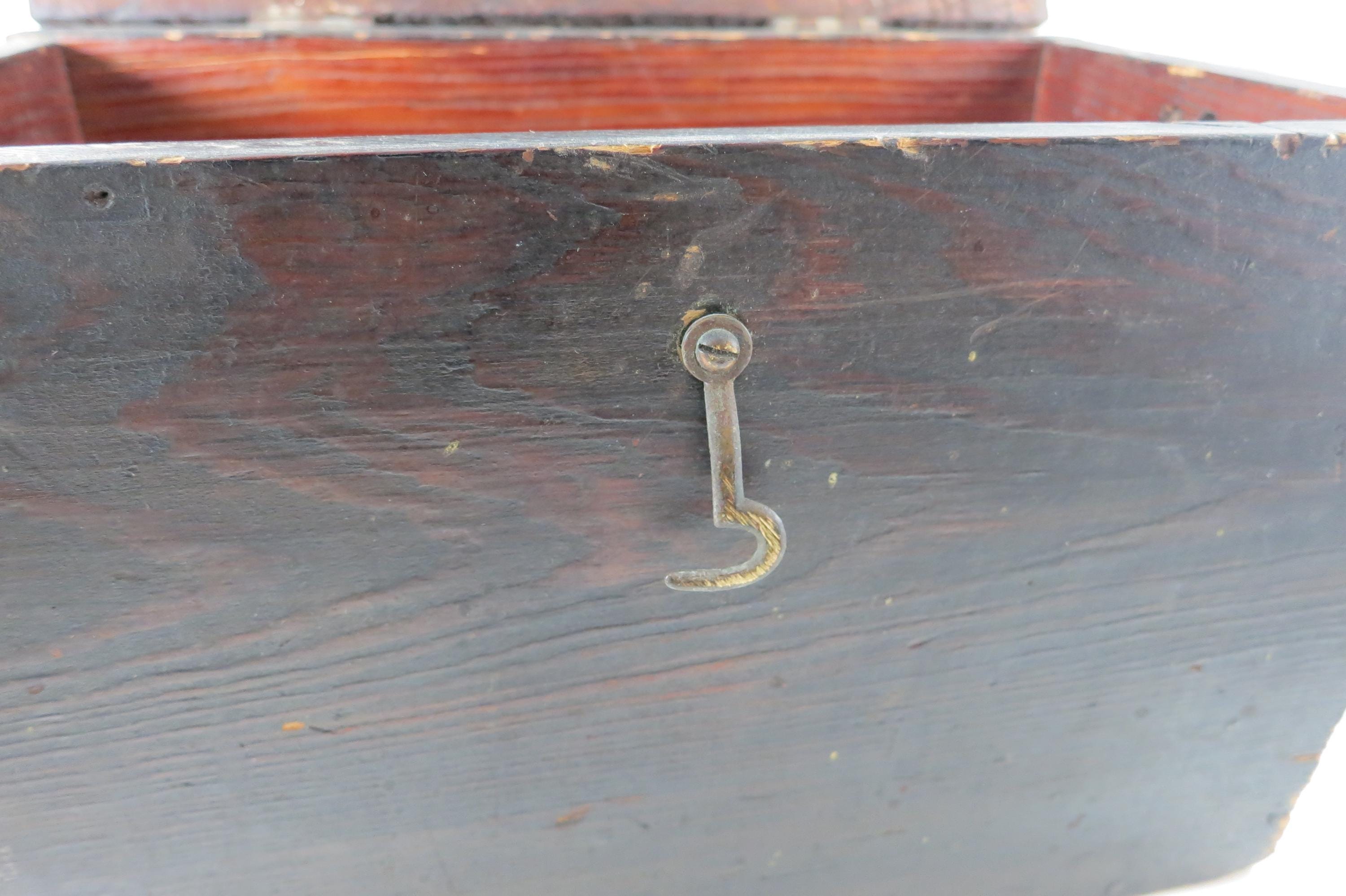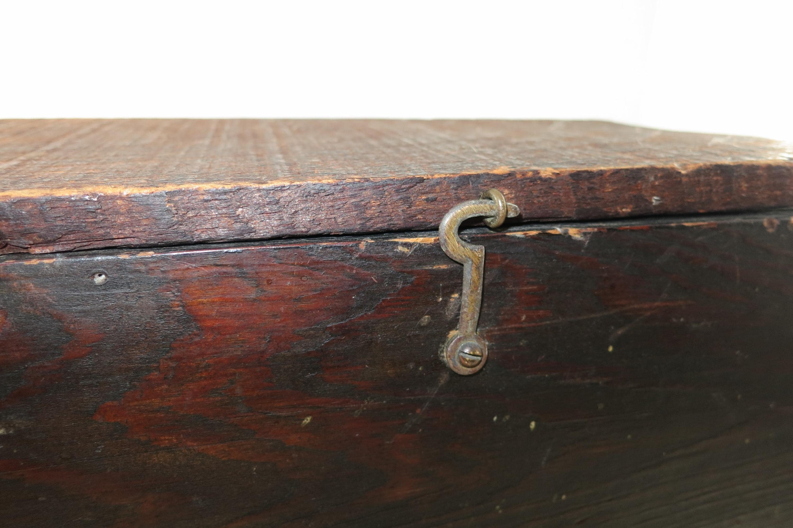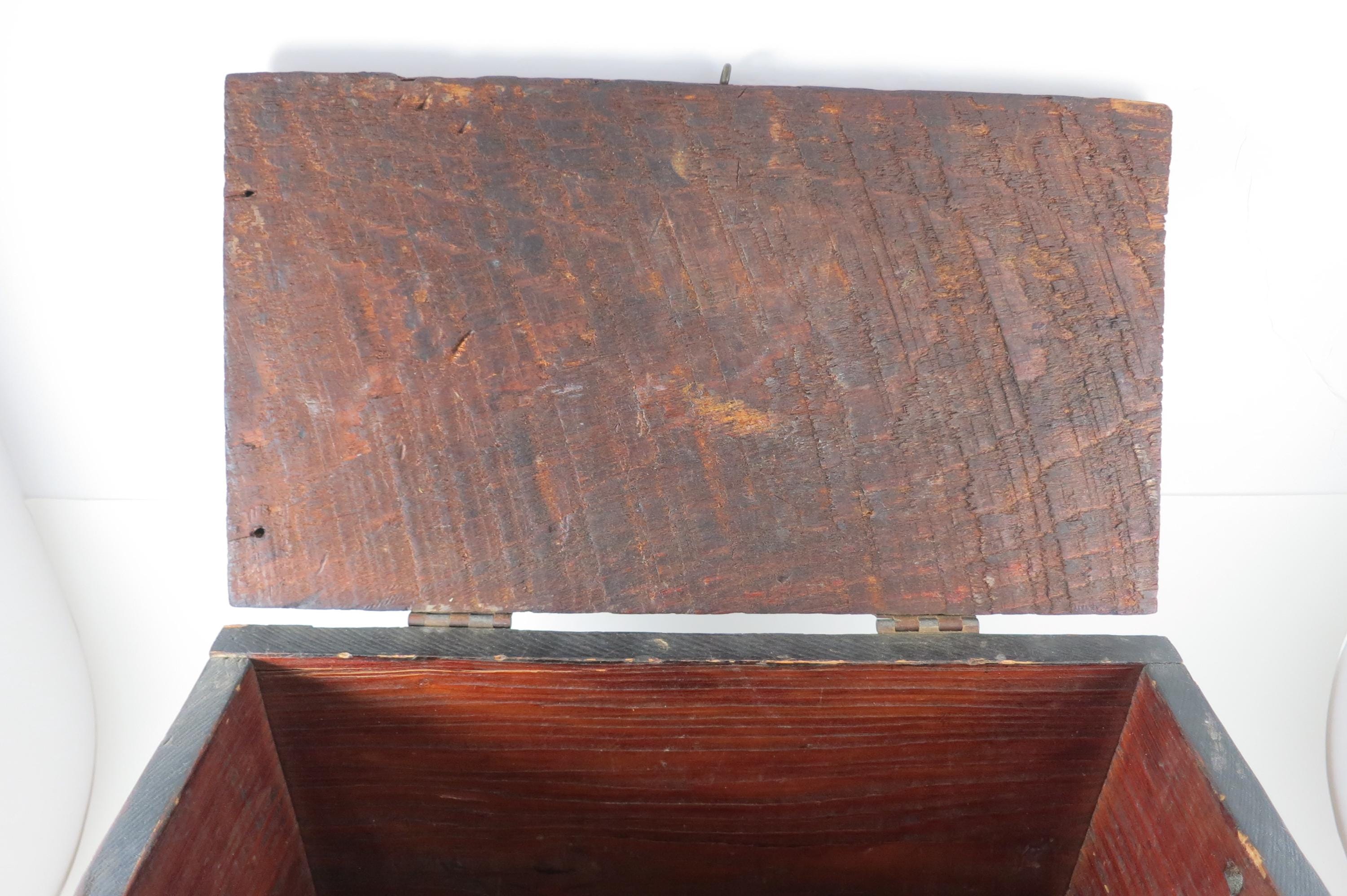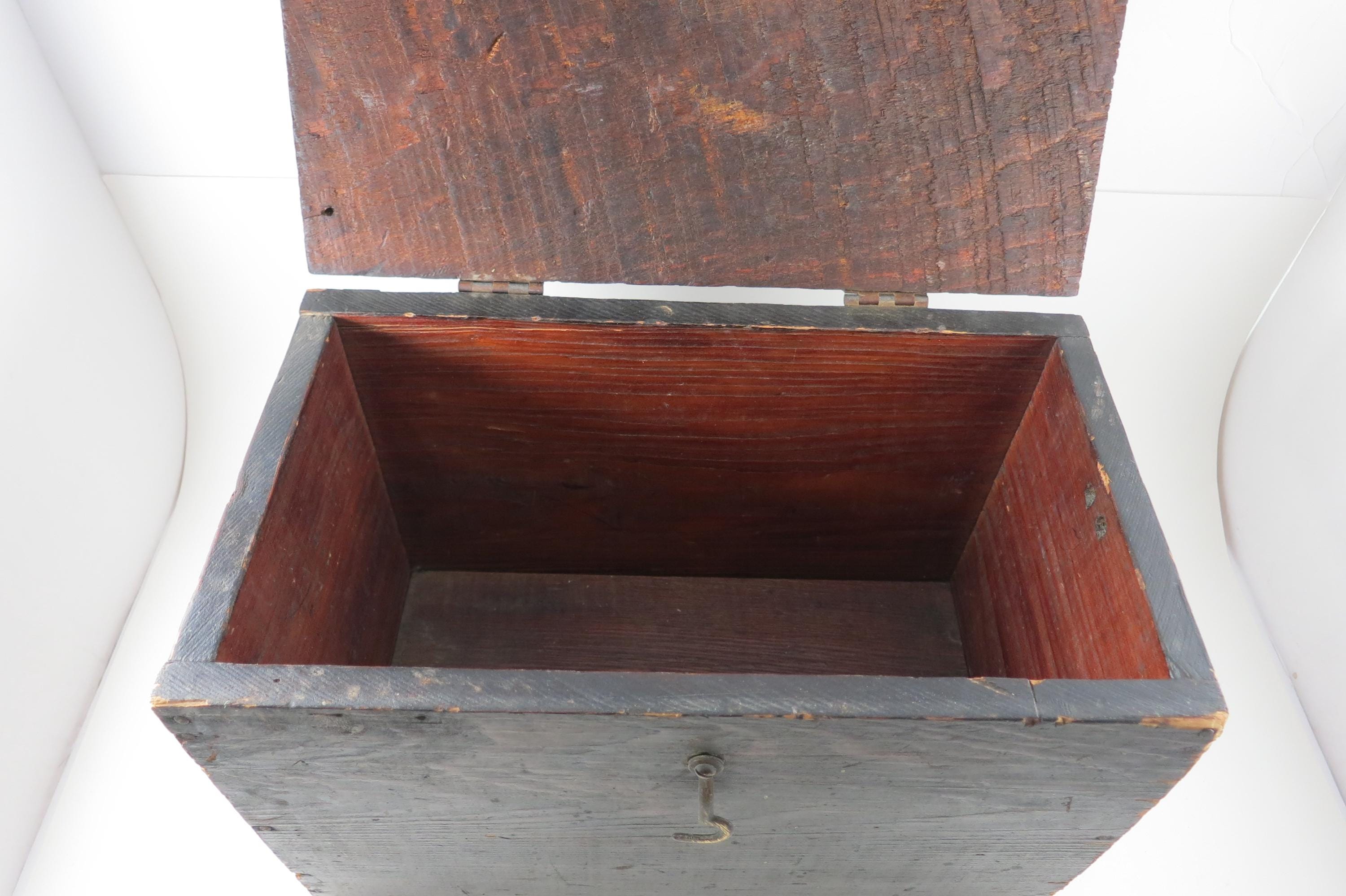 Antique Wooden Treasure Keepsake Storage Box 11 1/2 Inches. Good condition for a box this old! Has a small brass latch to keep the top closed.