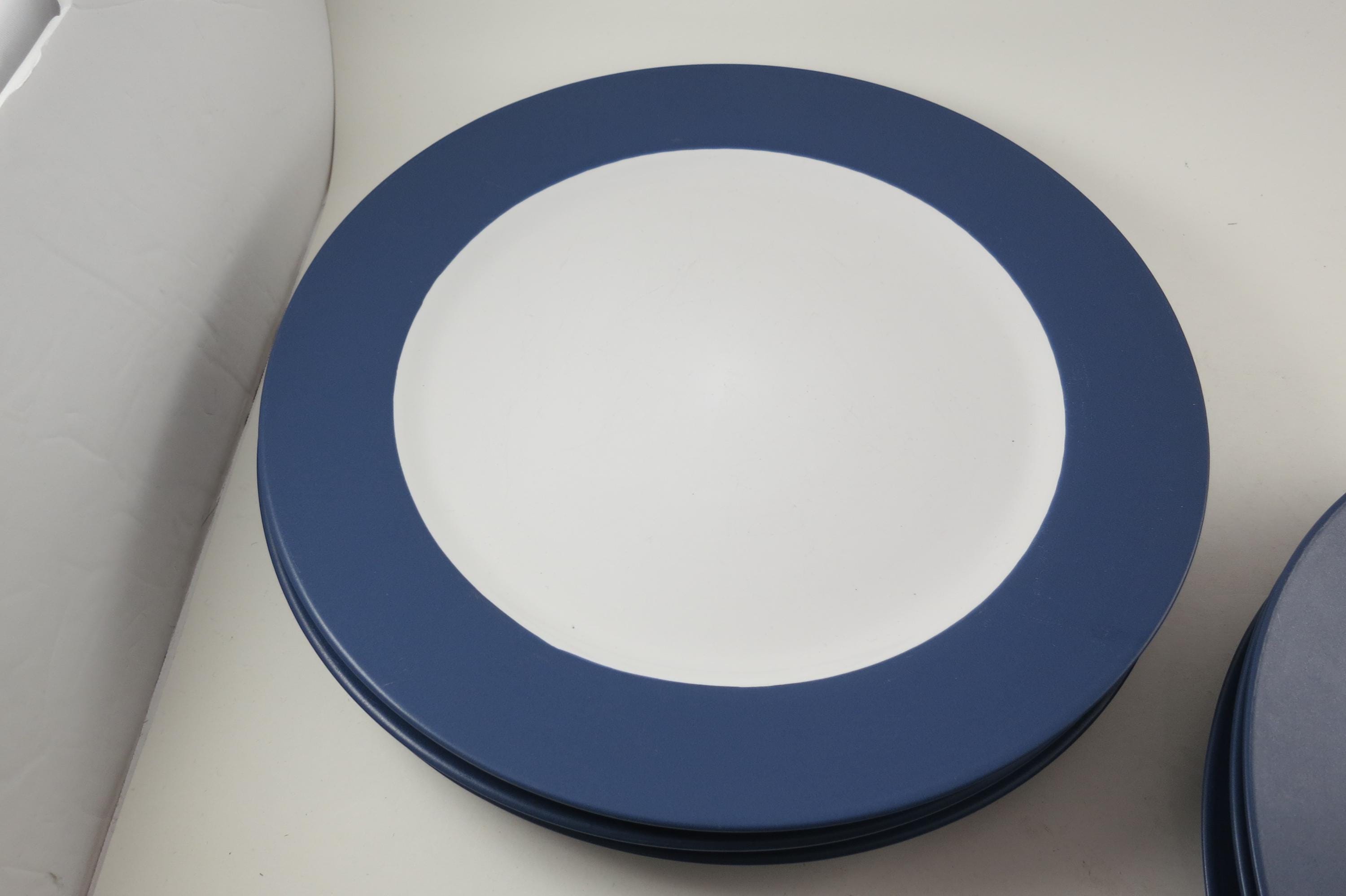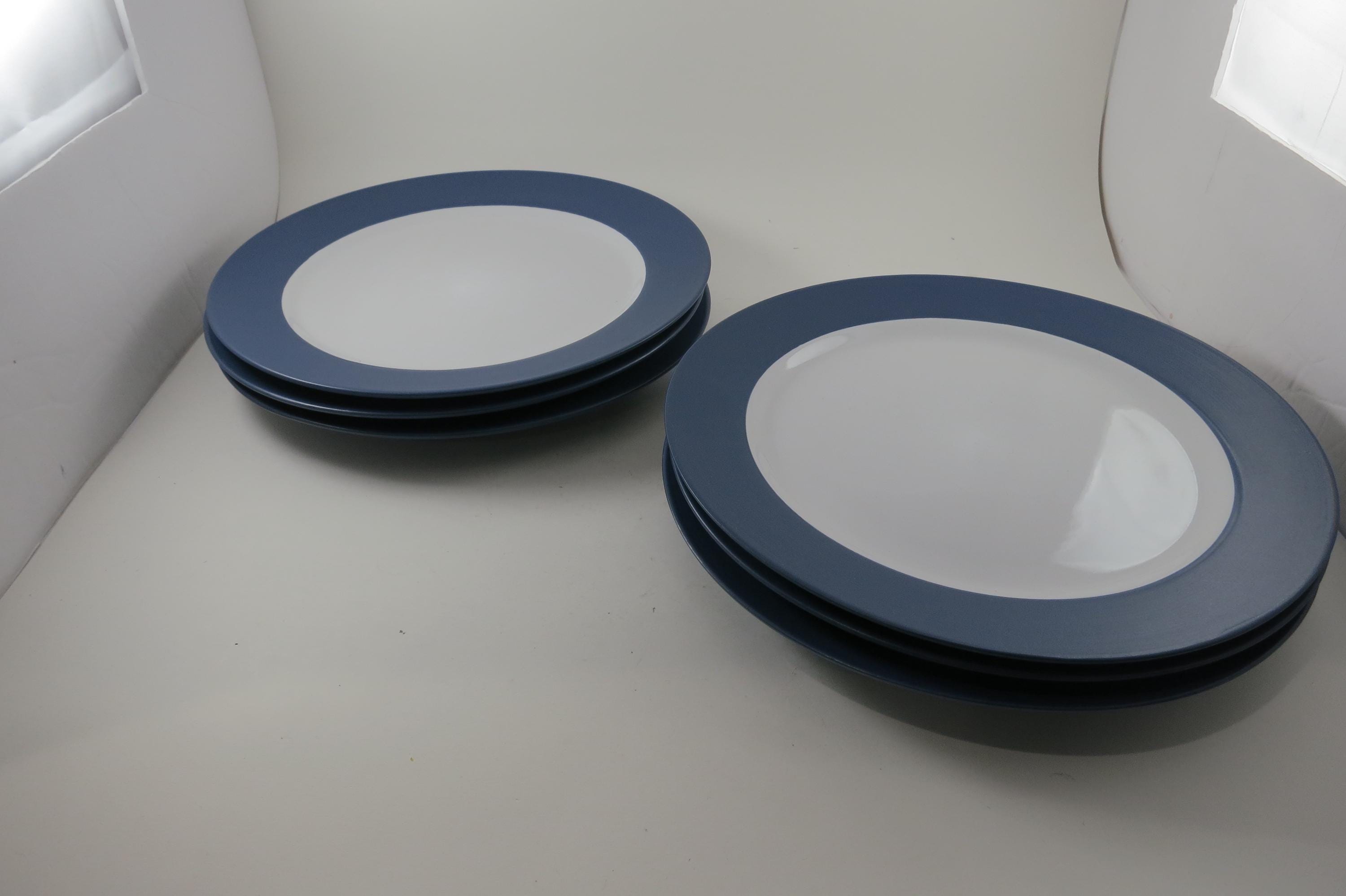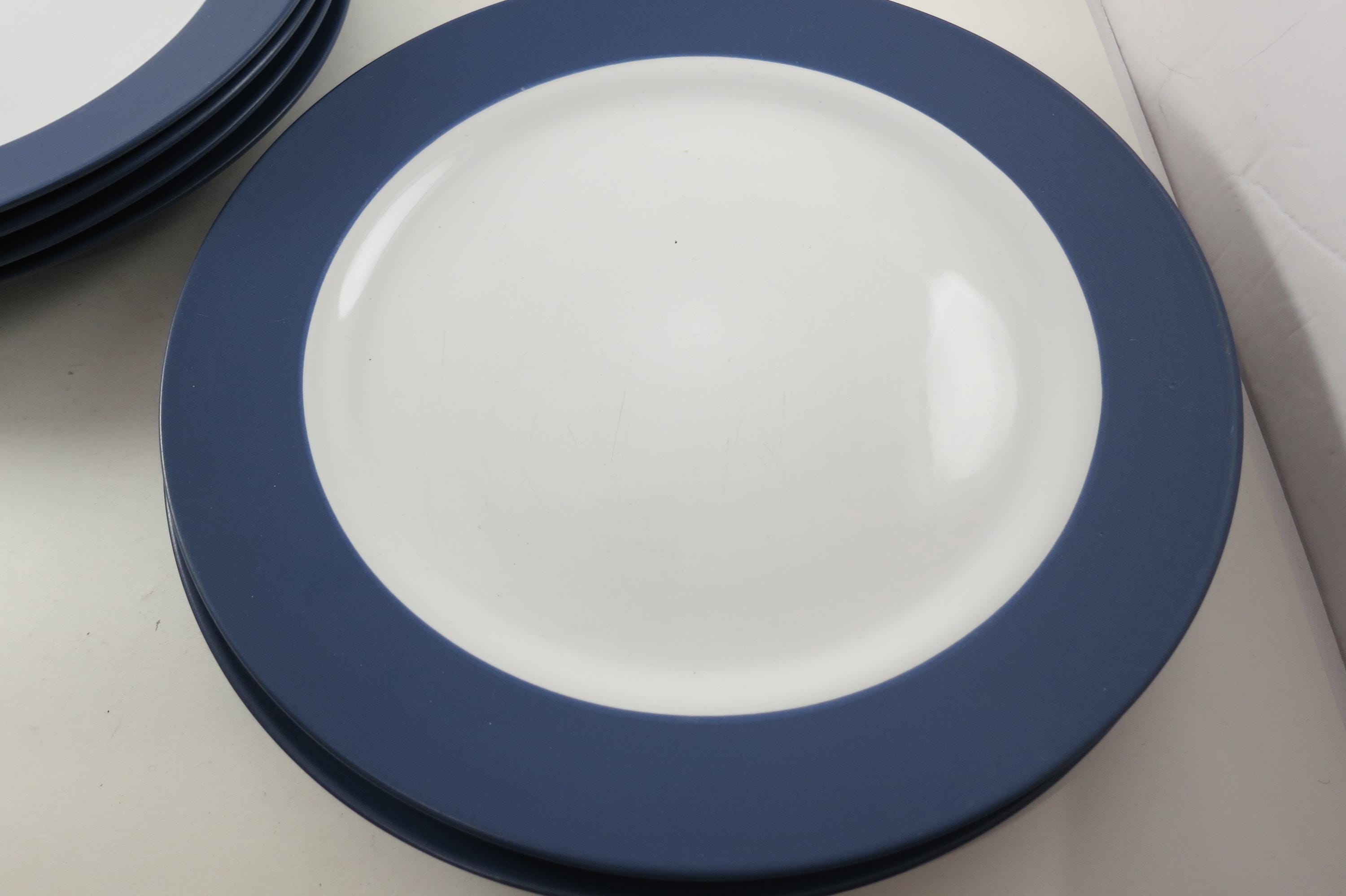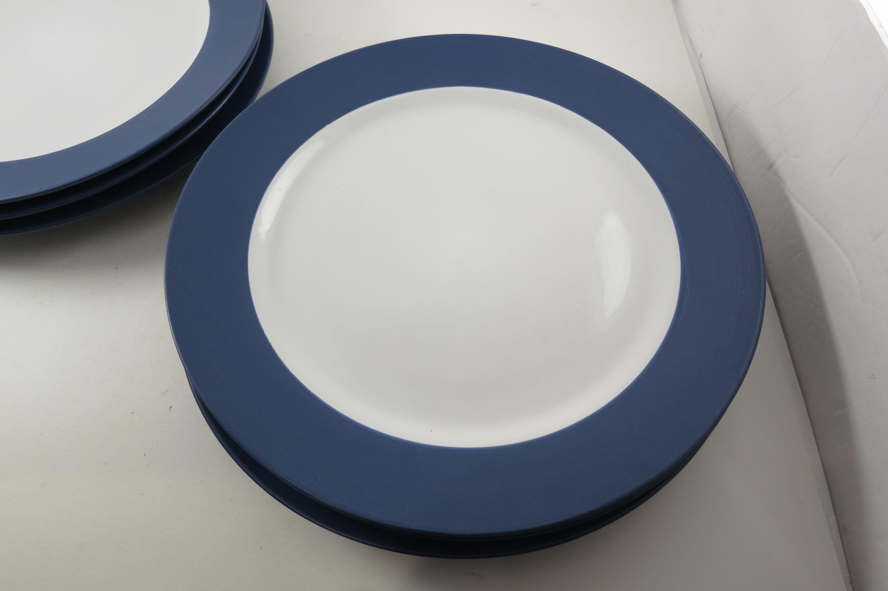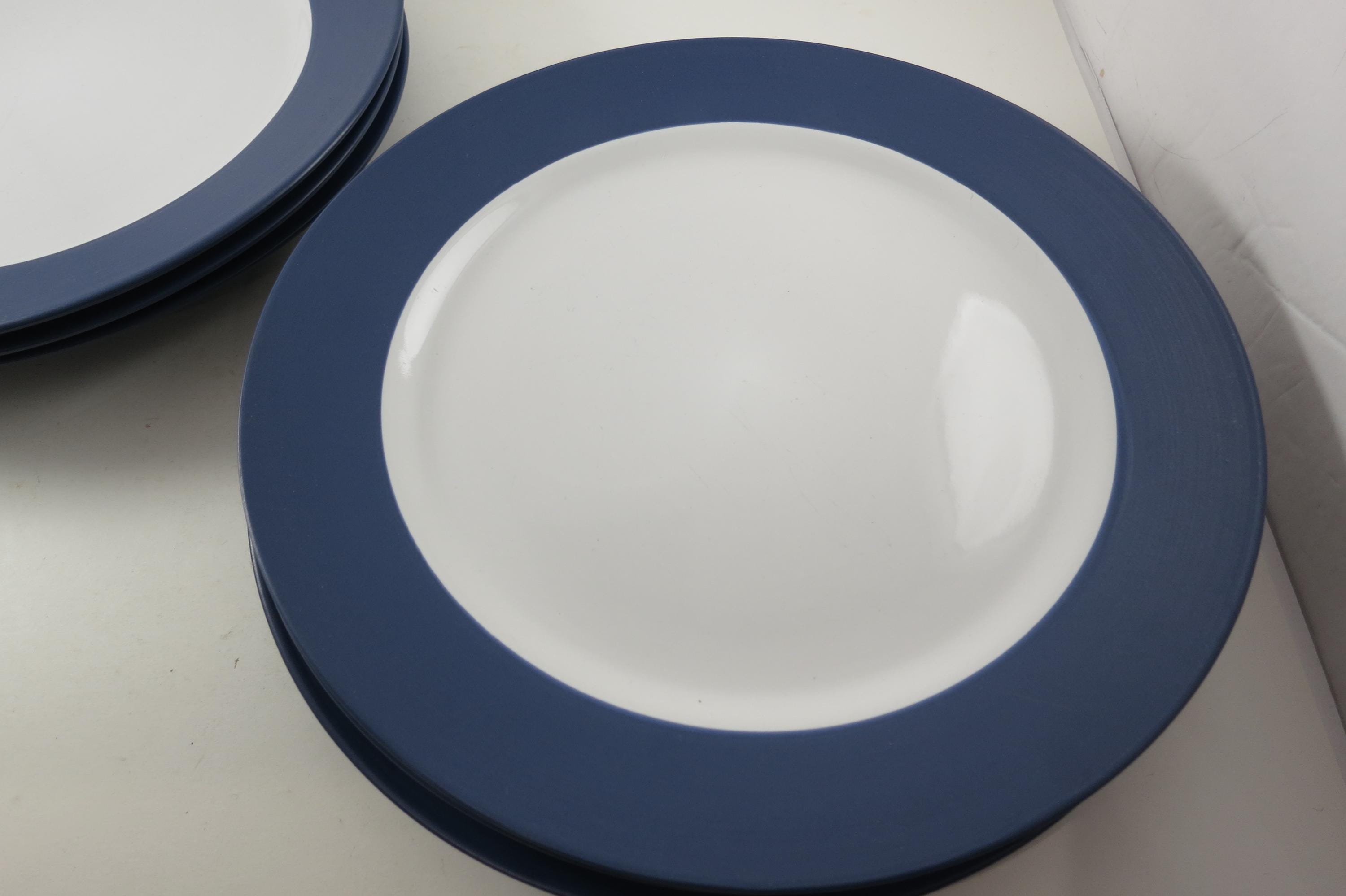 Set of Six Vintage Pfaltzgraff Everyday Harmony Cobalt 10 1/2 Inch Dinner Plates.