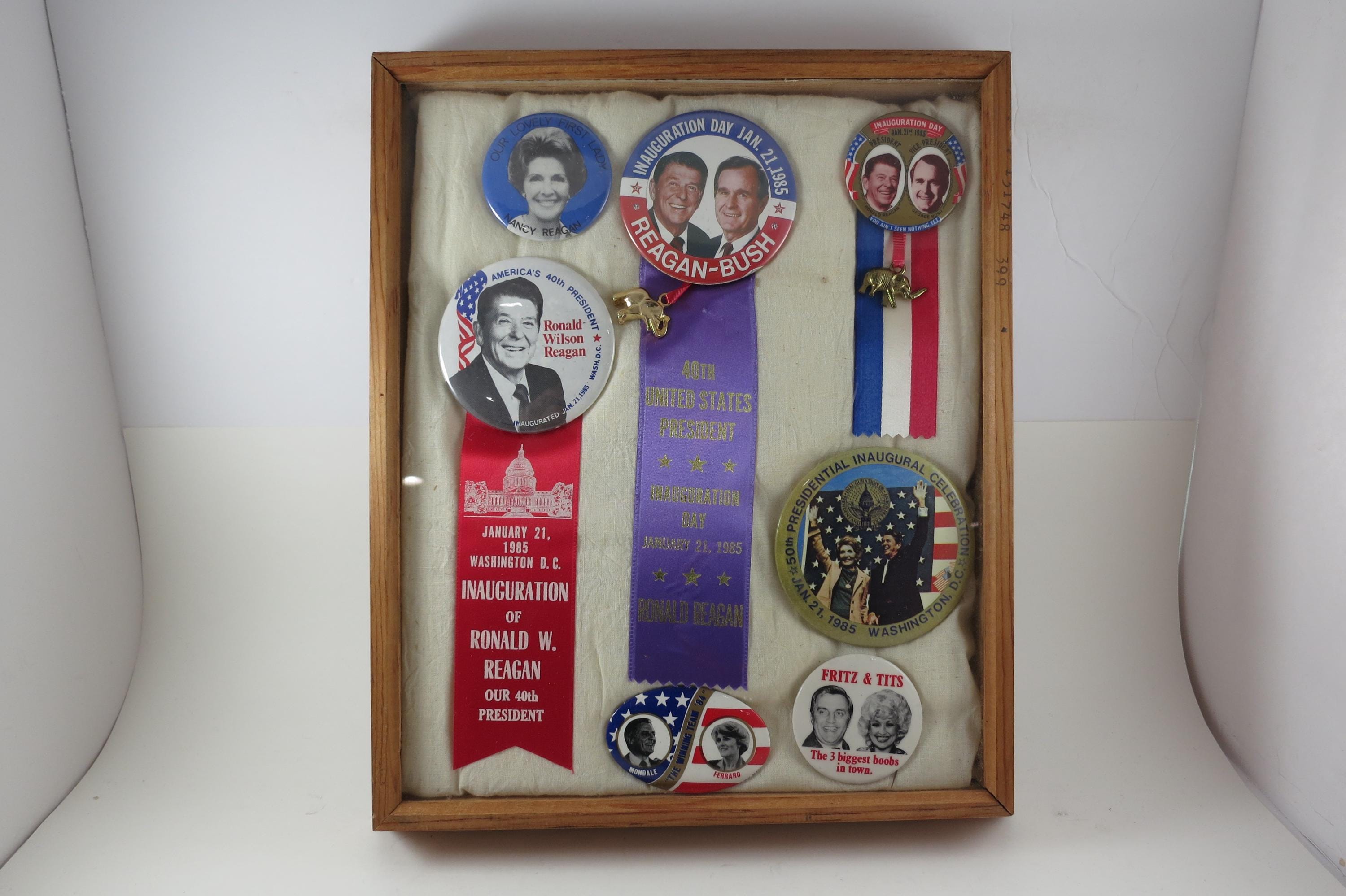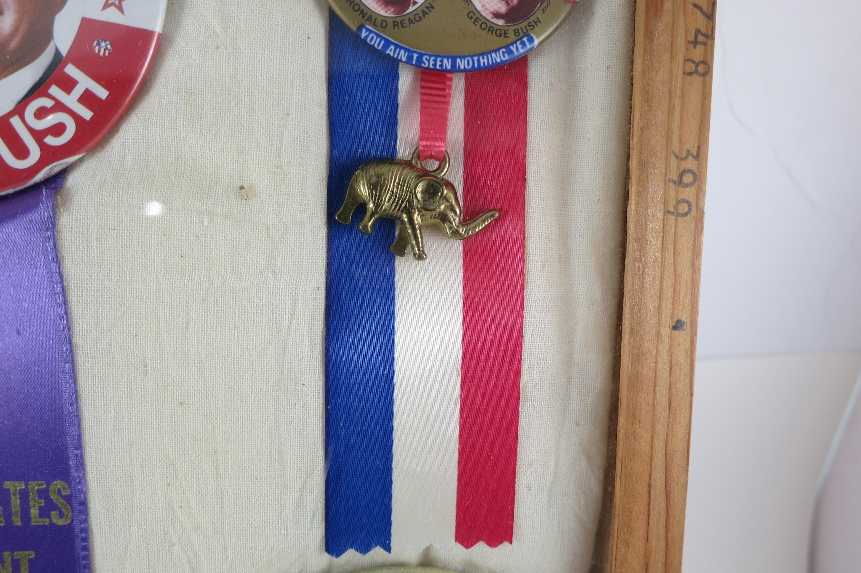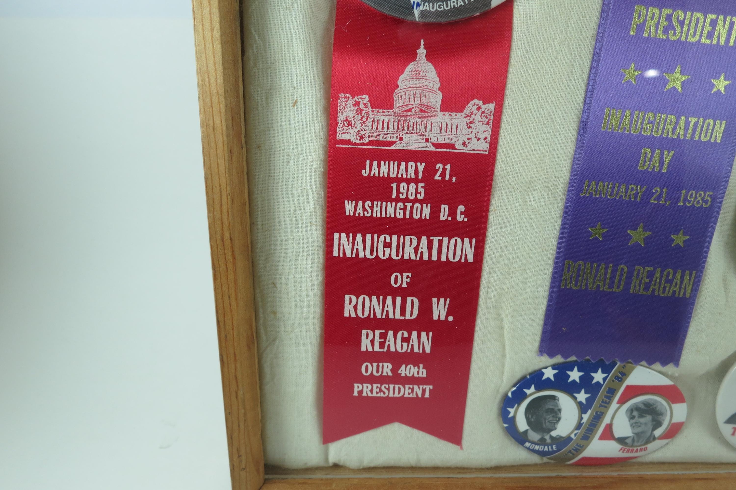 Custom Made 1984 Presidential Election Shadowbox Pins Ribbons Reagan Bush Mondale Ferraro