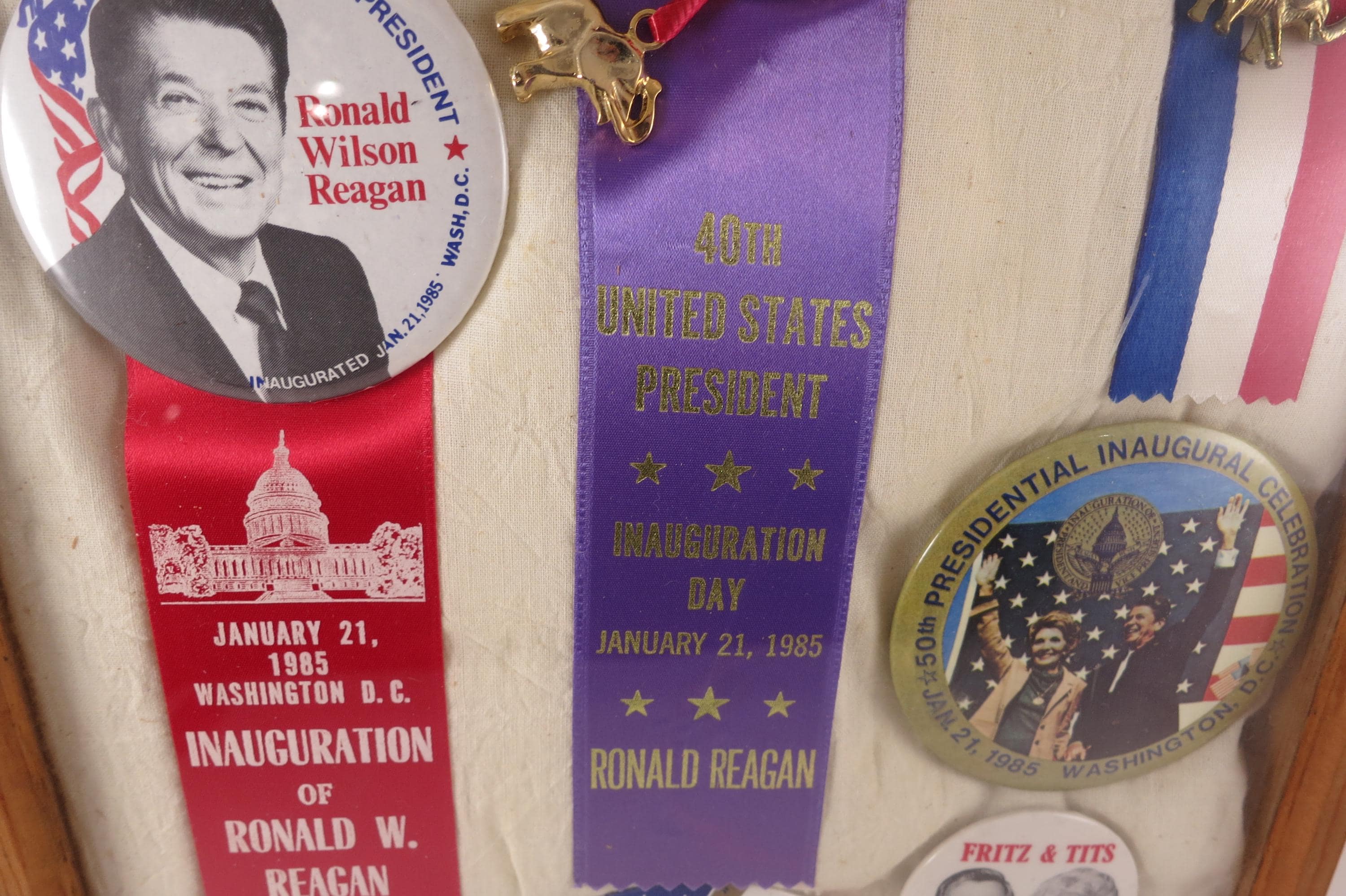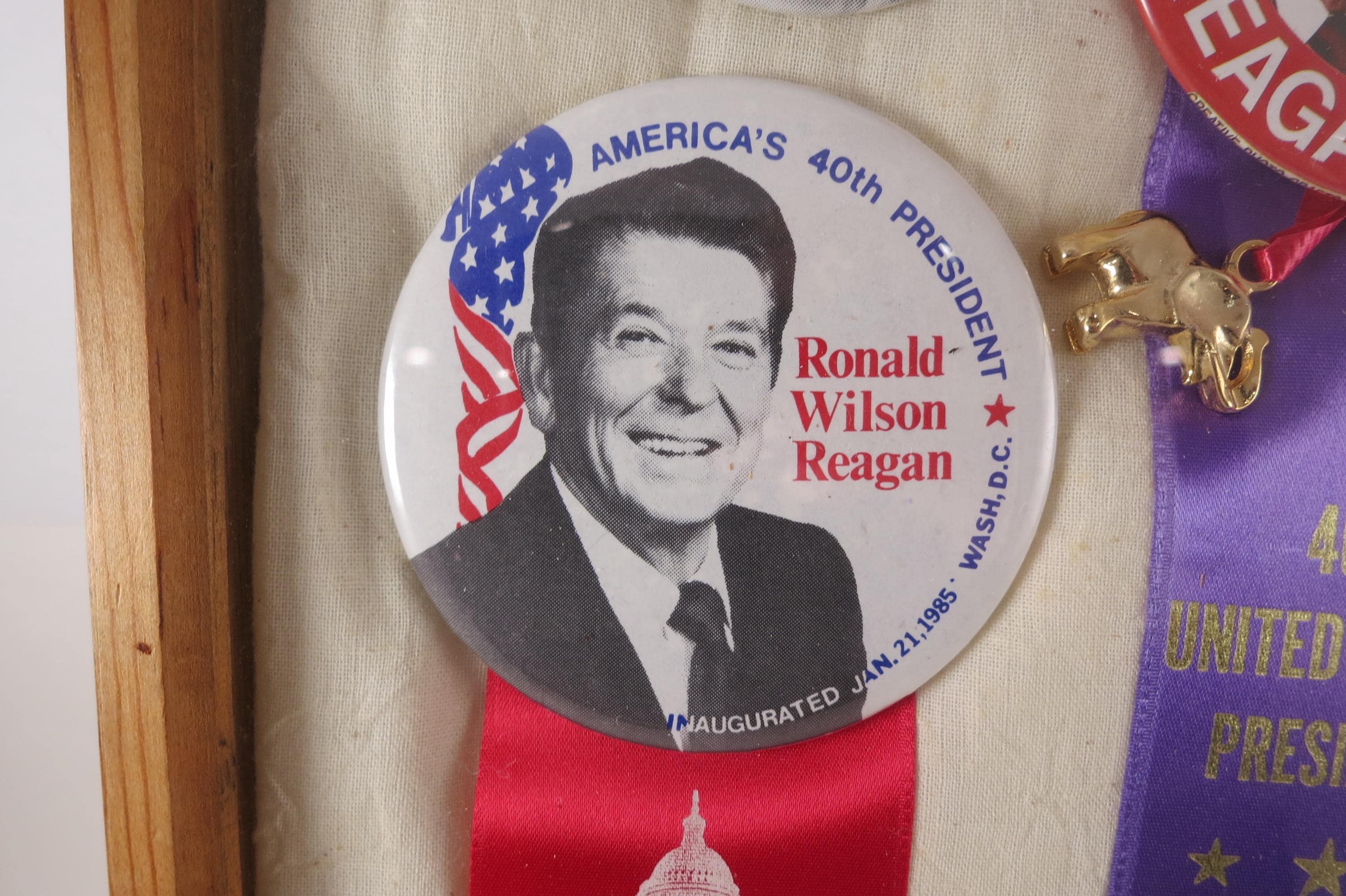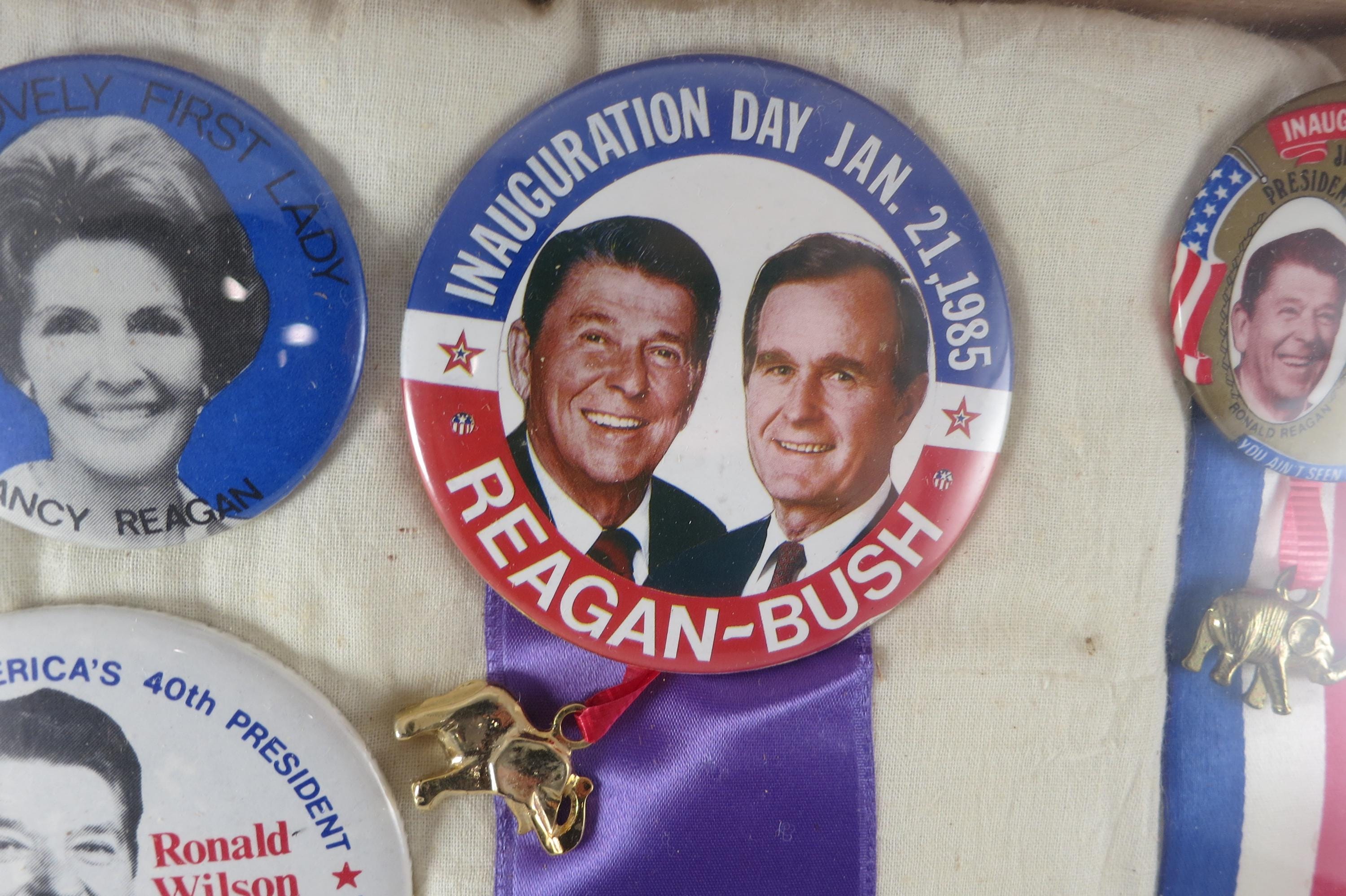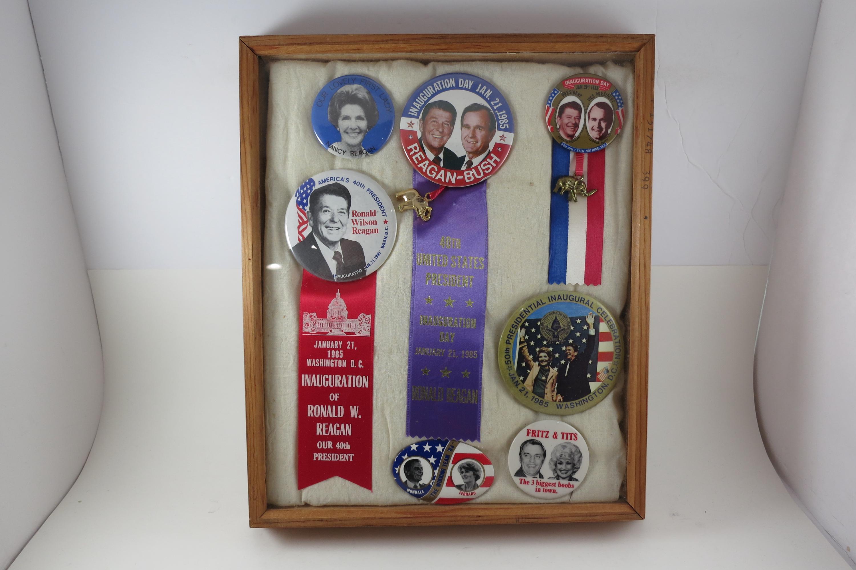 Custom Made 1984 Presidential Election Shadowbox Pins Ribbons Reagan Bush Mondale Ferraro