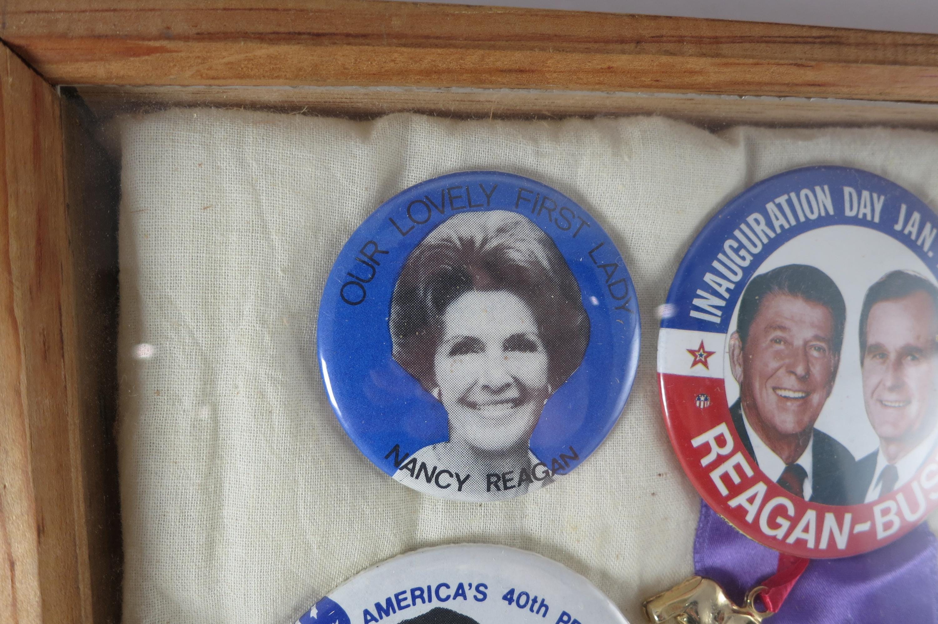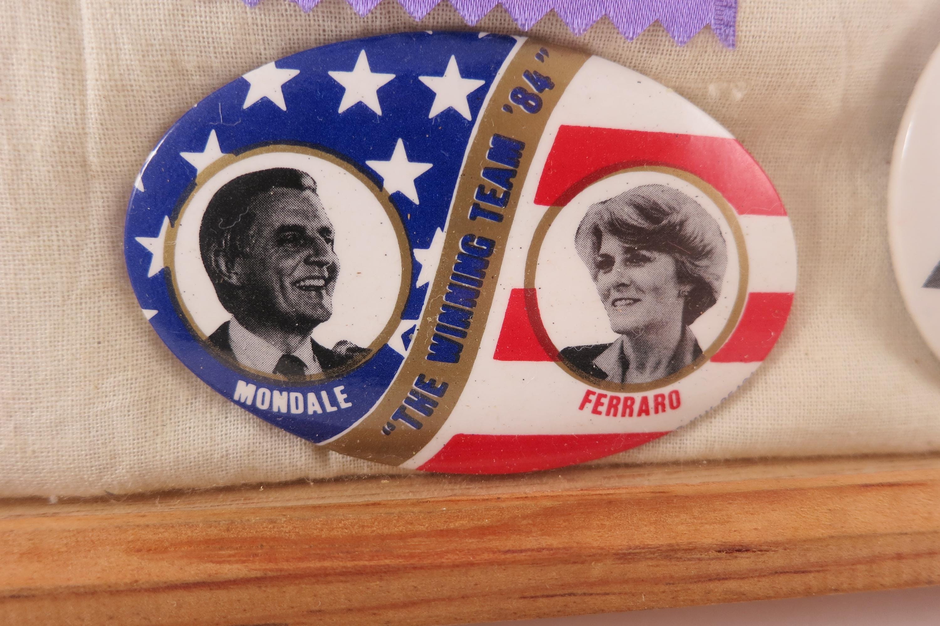 Custom Made 1984 Presidential Election Shadowbox Pins Ribbons Reagan Bush Mondale Ferraro.