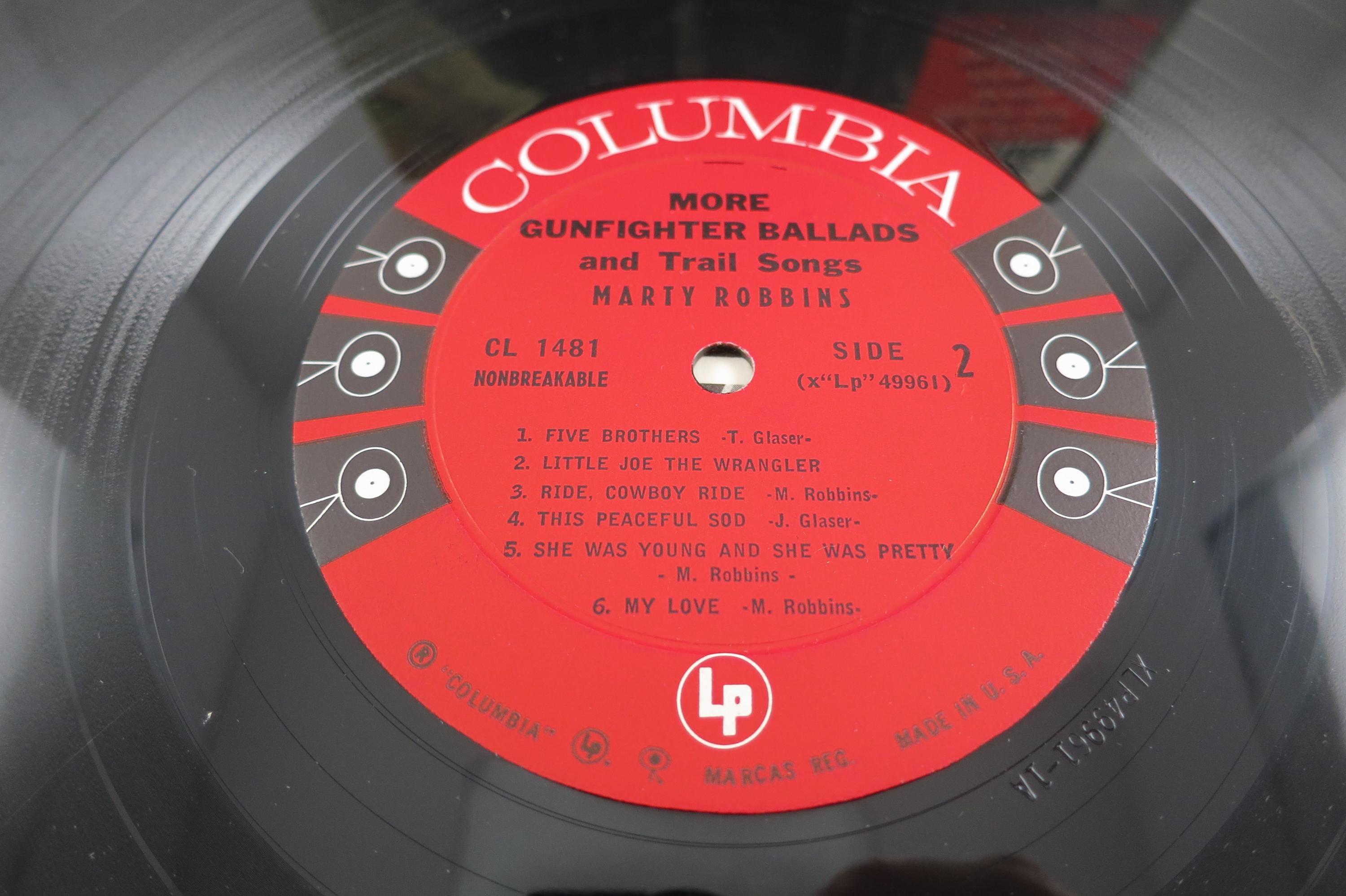 Vintage 1960 Vinyl LP Record More Gunfighter Ballads and Trail Songs Marty Robbins Six Eye Label Excellent Condition. Original cover is in excellent condition and includes the original inner paper sleeve. Record is the Columbia six eye and is excellent as well. A very nice copy of this classic! Tracks are as follows