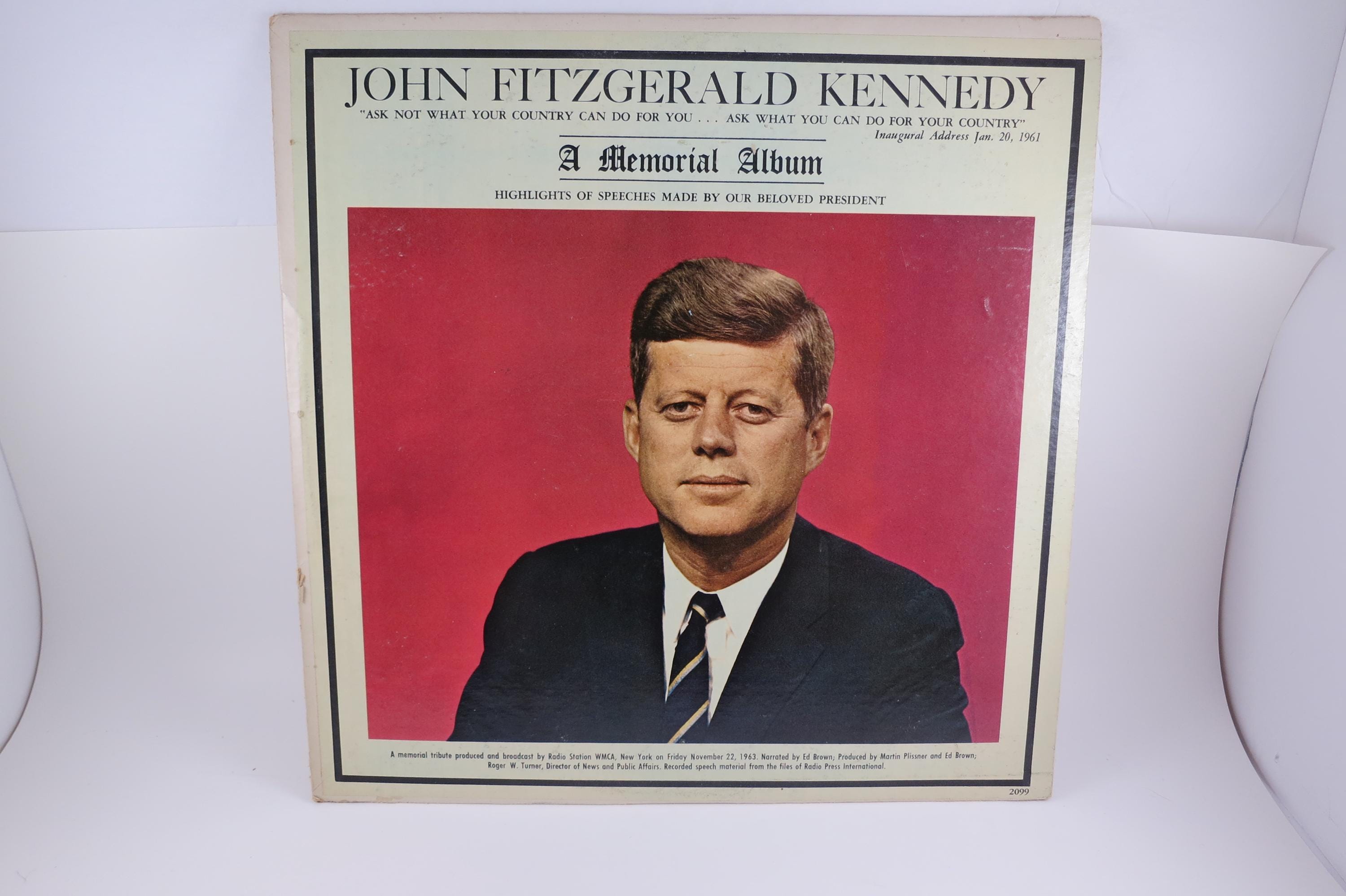 Vintage 1963 LP Record John Fitzgerald Kennedy A Memorial Album Highlights of Speeches by JFK Excellent Condition. Cover is excellent and Includes the inner paper sleeve. Record is excellent as well.