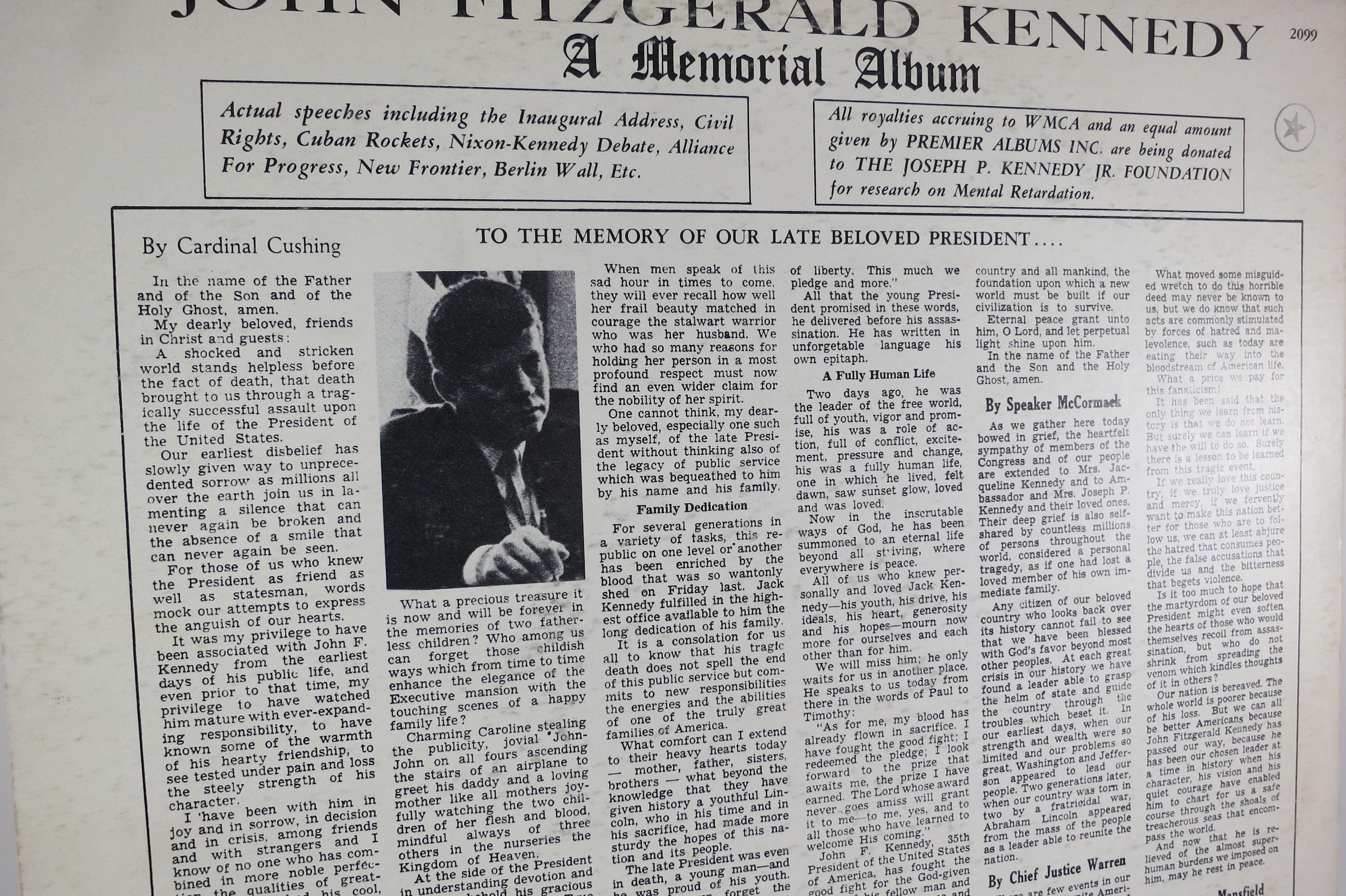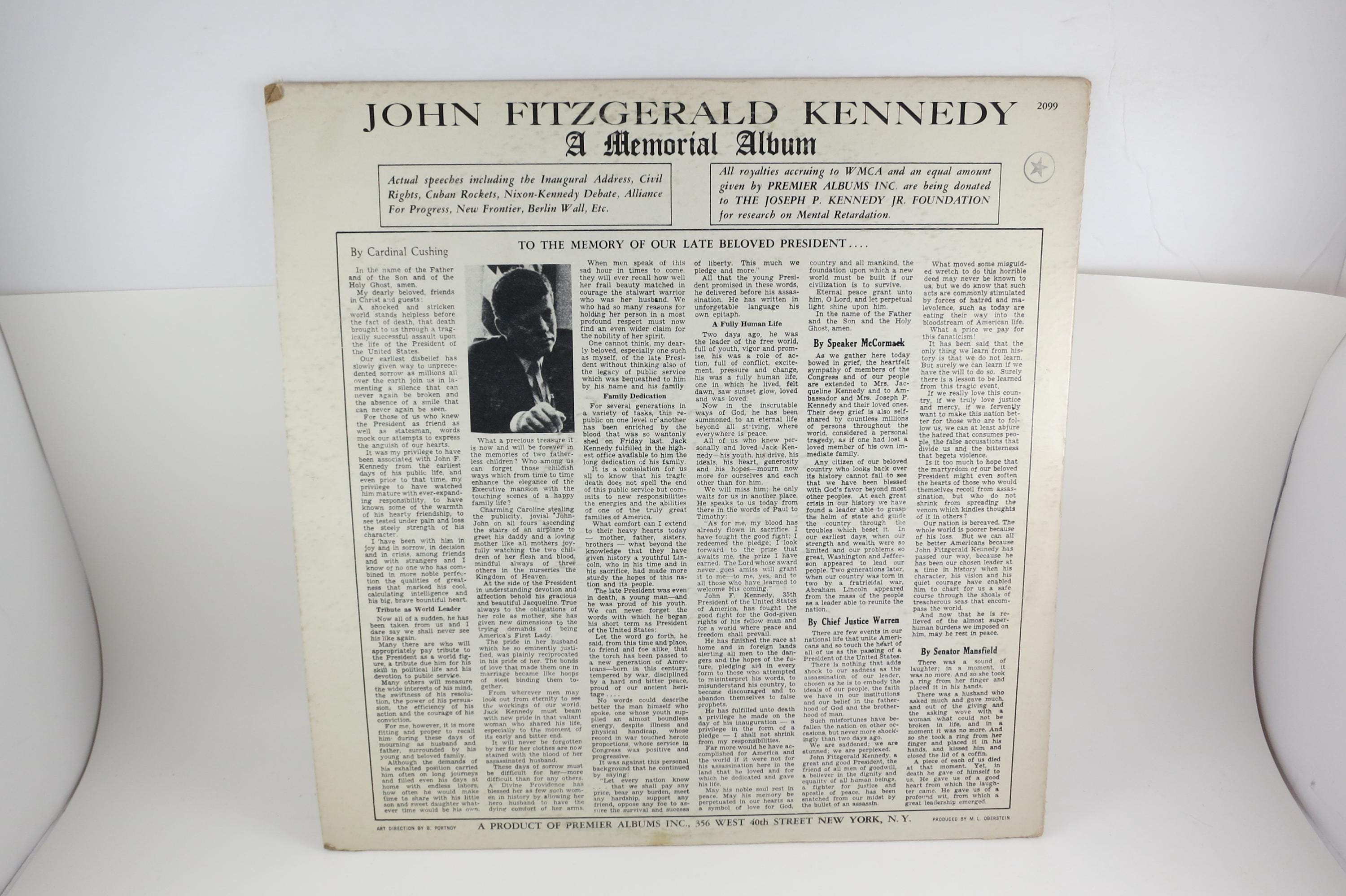 1963 Vinyl LP Record John Fitzgerald Kennedy A Memorial Album Highlights of Speeches by JFK