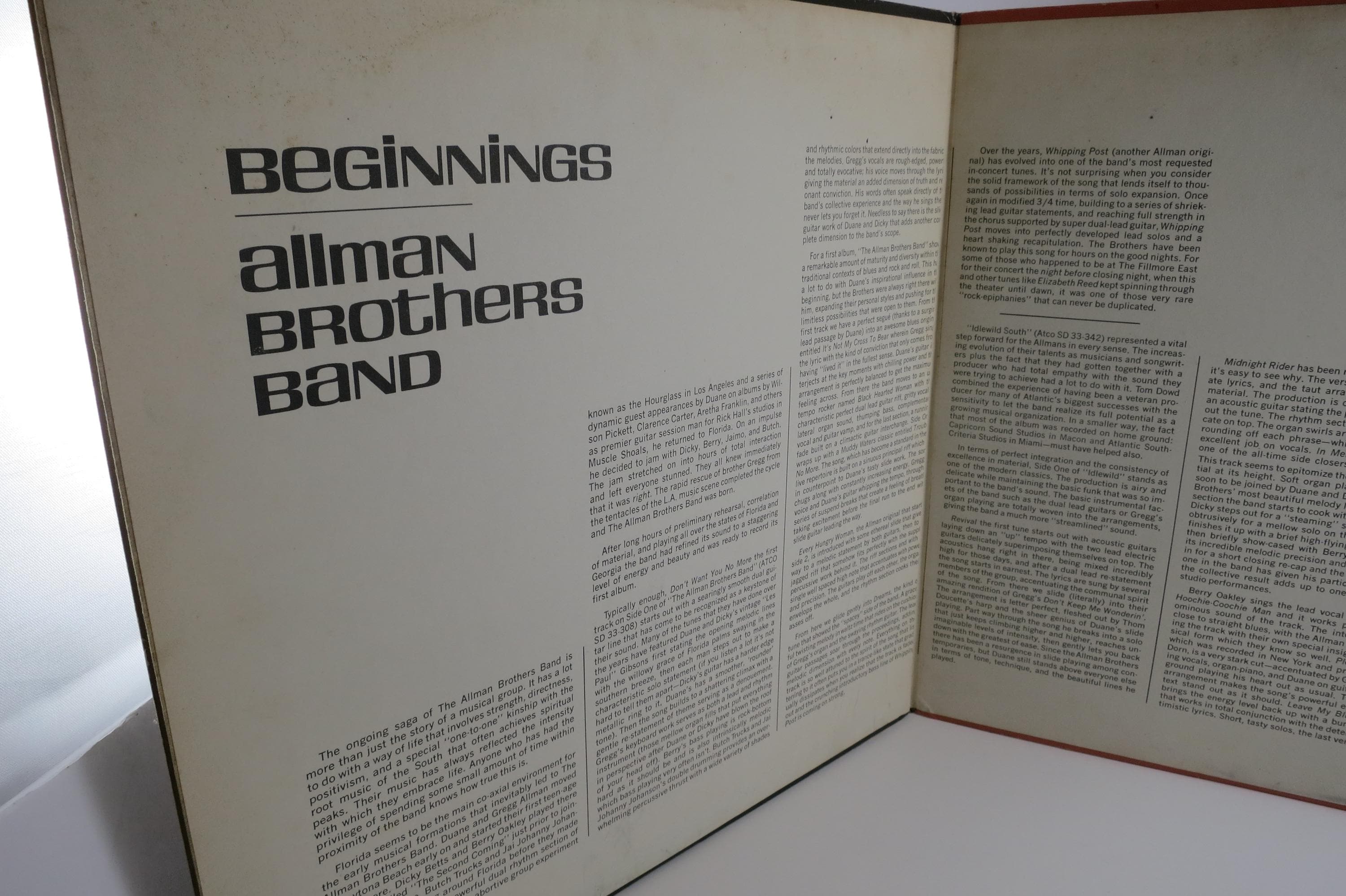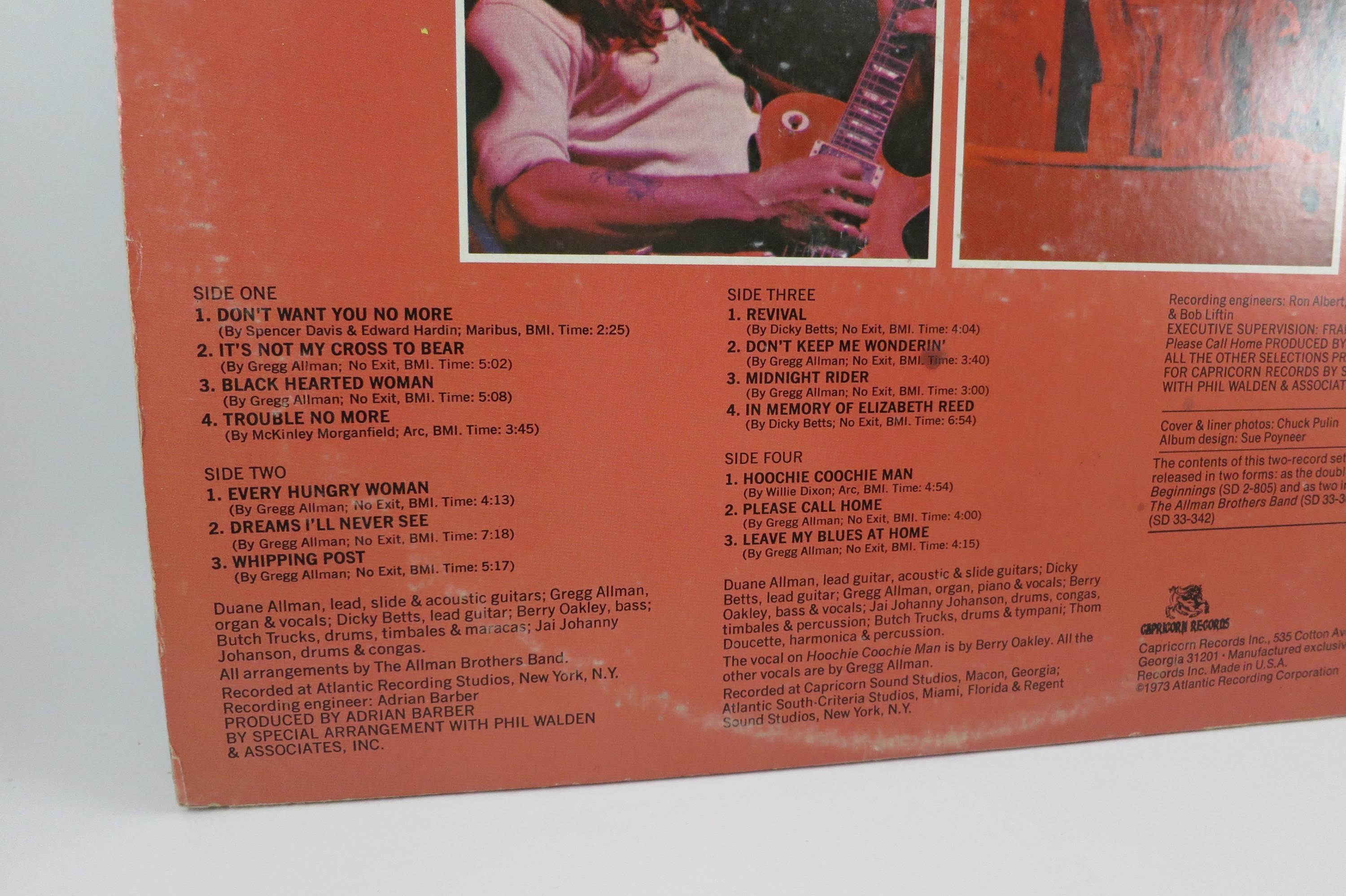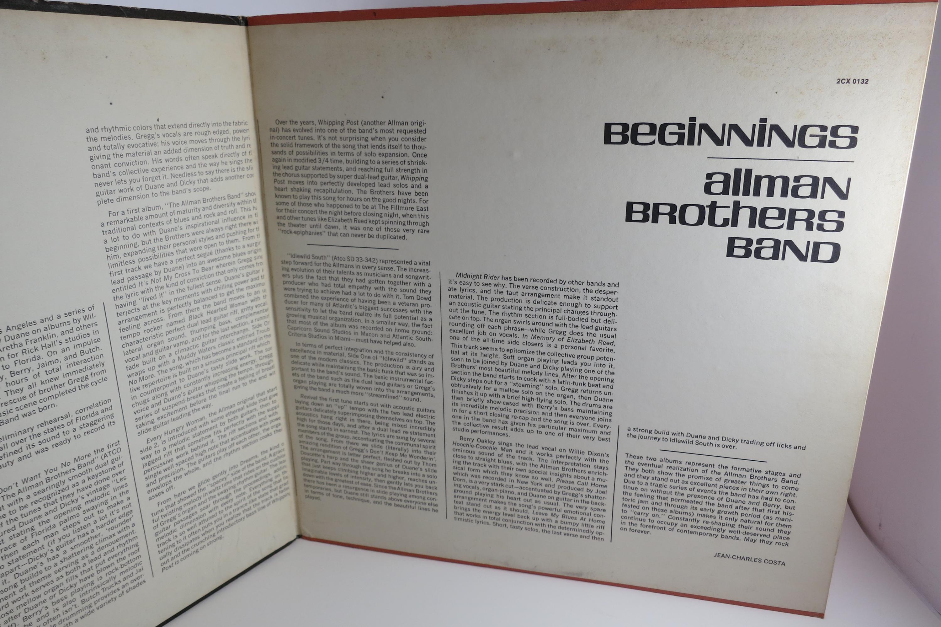 Vintage 1976 Vinyl LP Record Set Beginnings The Allman Brothers Band Excellent Condition. Original gate fold cover is in very good condition and includes the inner paper sleeves. Records are in excellent condition. tracks are as follows