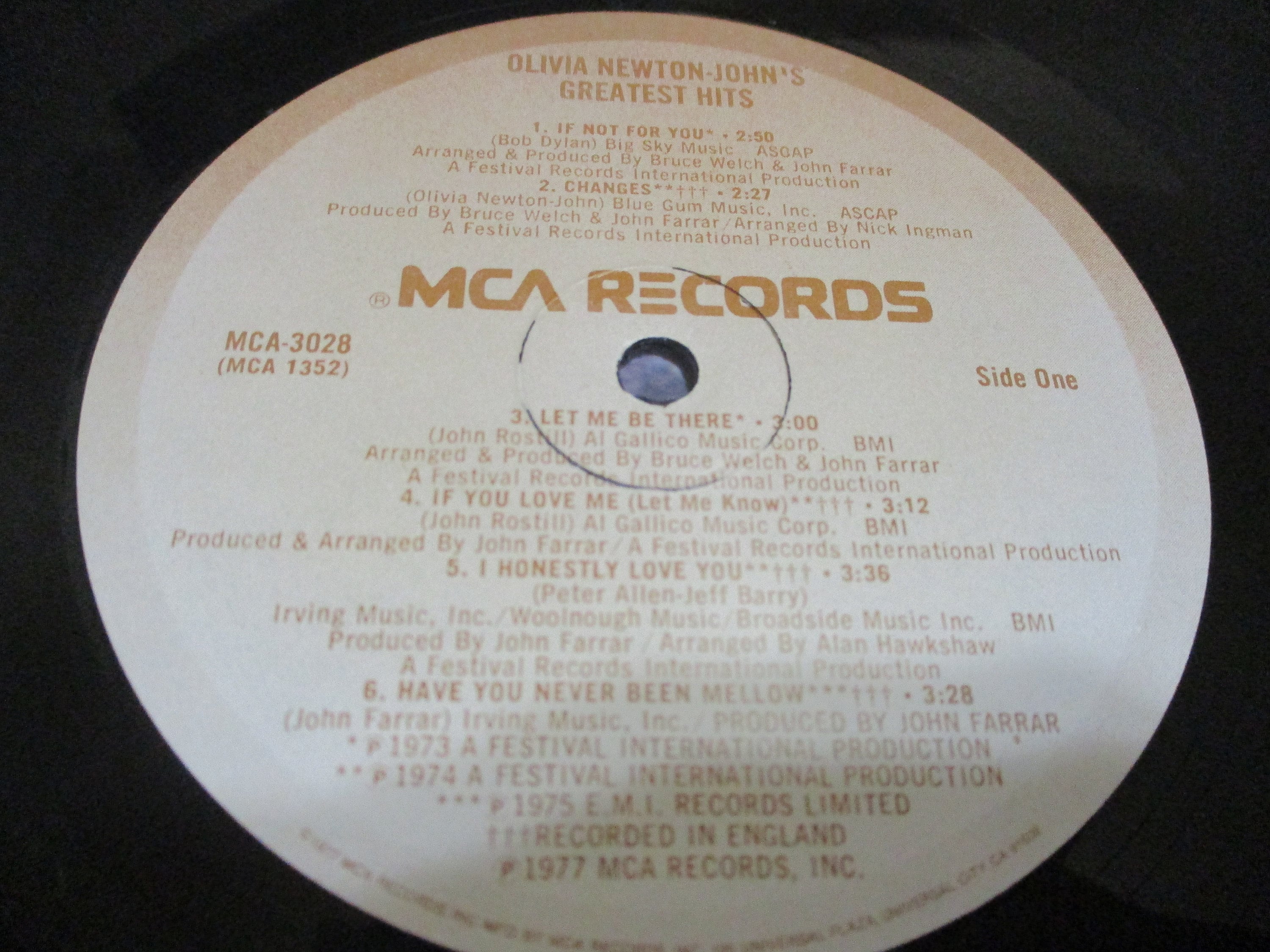 Vintage 1977 Vinyl LP Rock/Pop Record Olivia Newton-John Greatest Hits. Original cover is excellent and includes the original inner paper sleeve. Record is excellent as well. Tracks are as follows