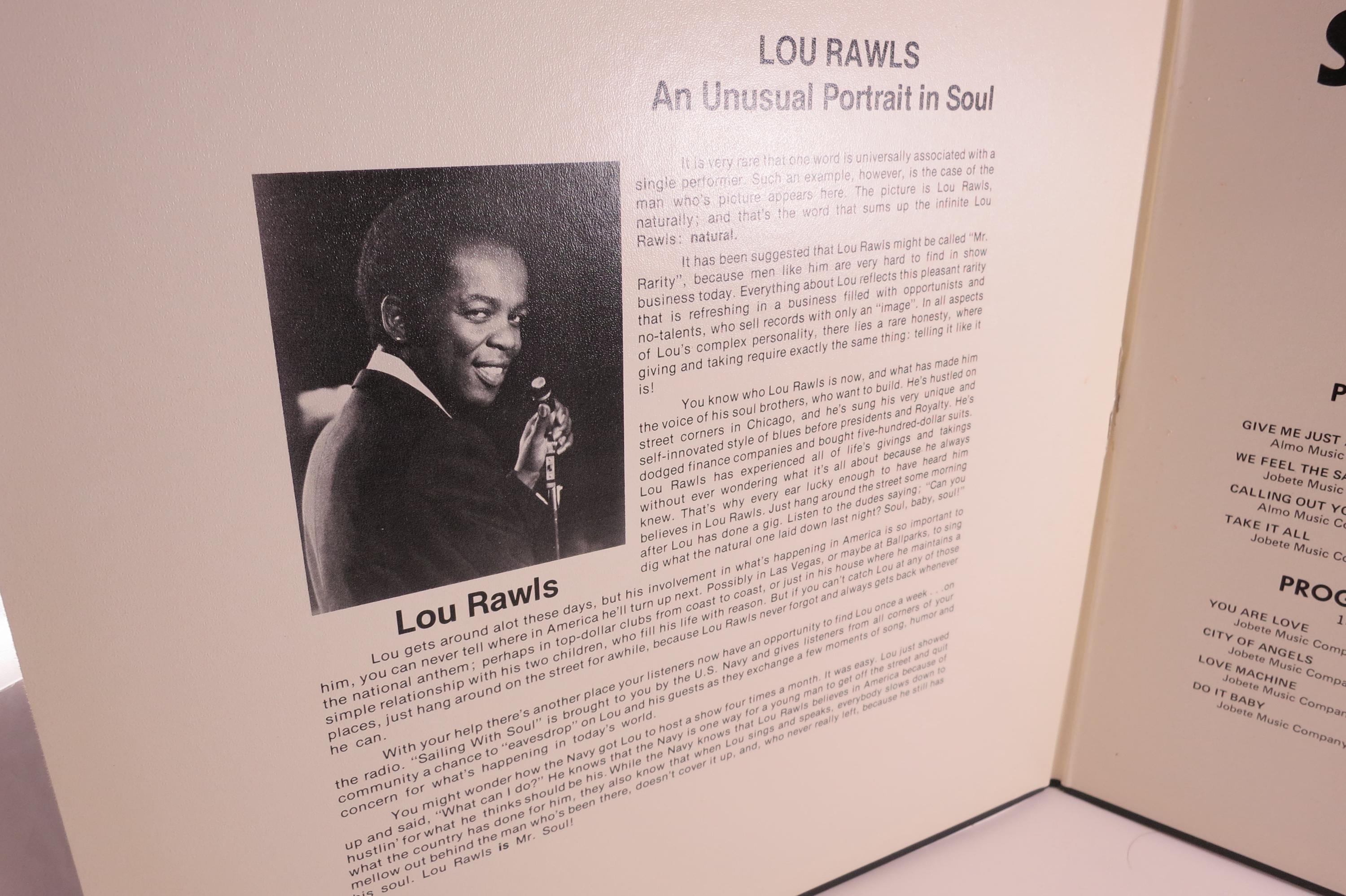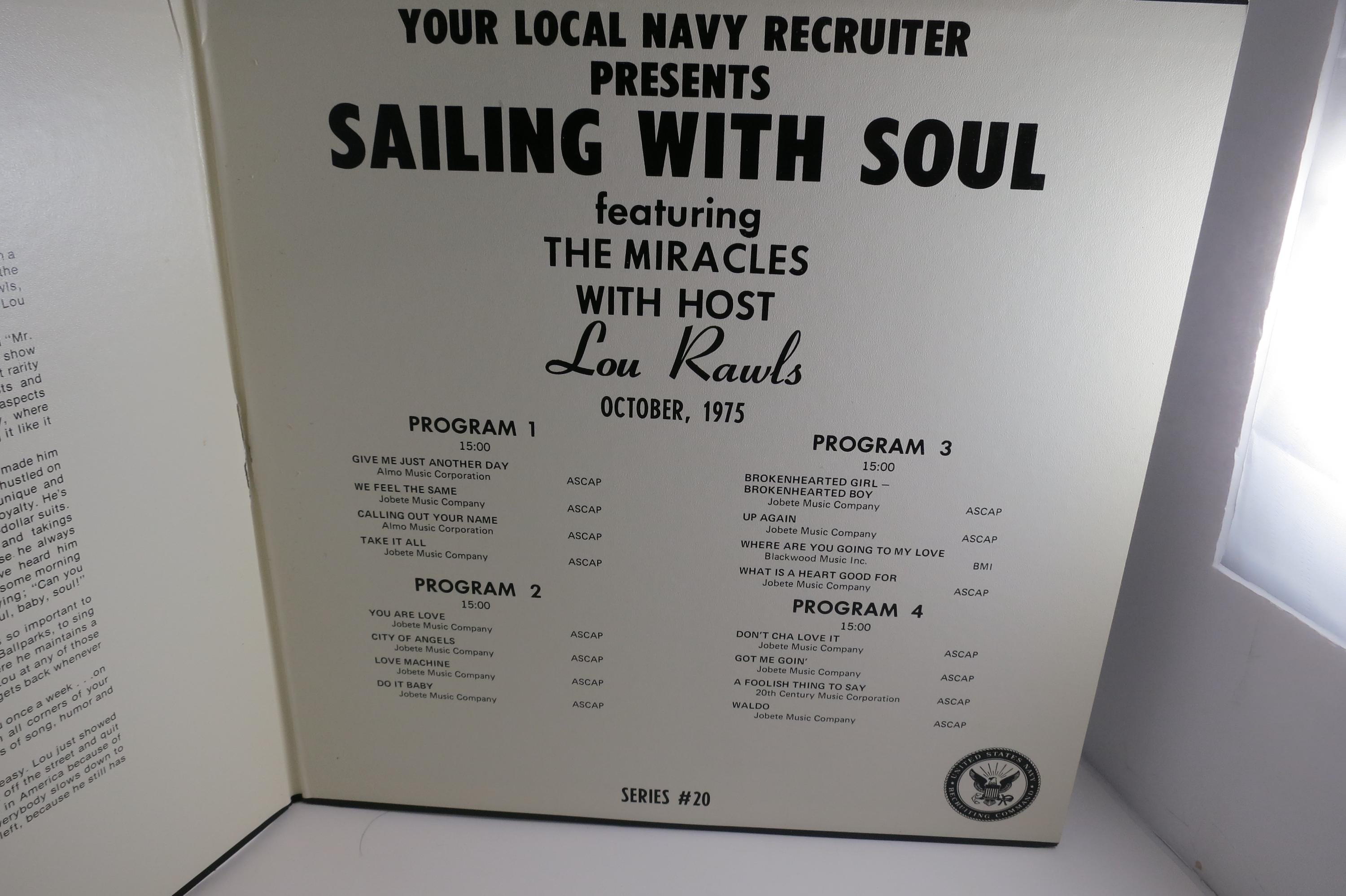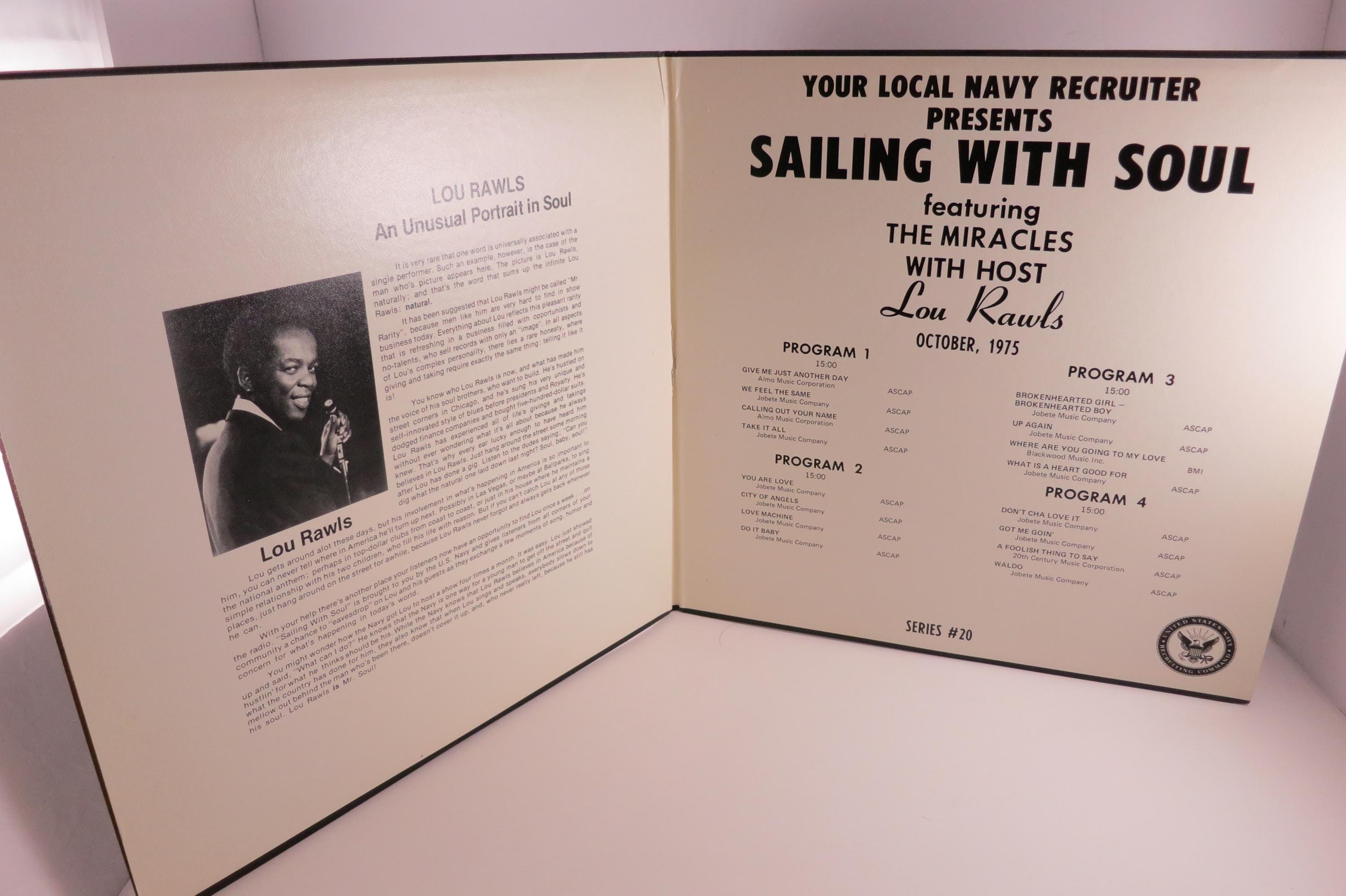 Vintage 1974 Vinyl LP Record Sailing With Soul Lou Rawls with The Miracles RARE Pressing Navy Recruitment. Original cover is in excellent condition and includes the inner paper sleeves. Records are excellent as well. Tracks are as follows