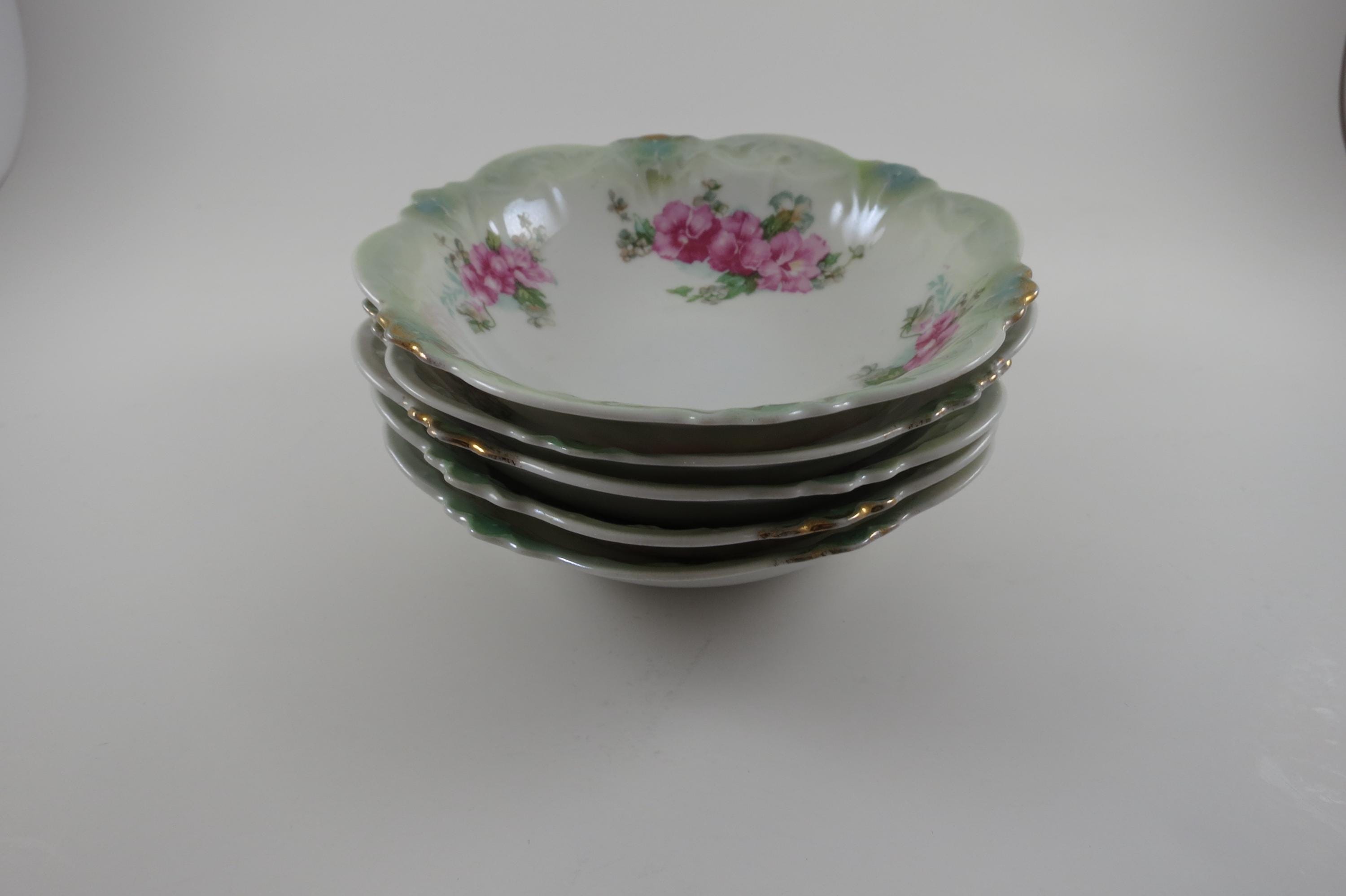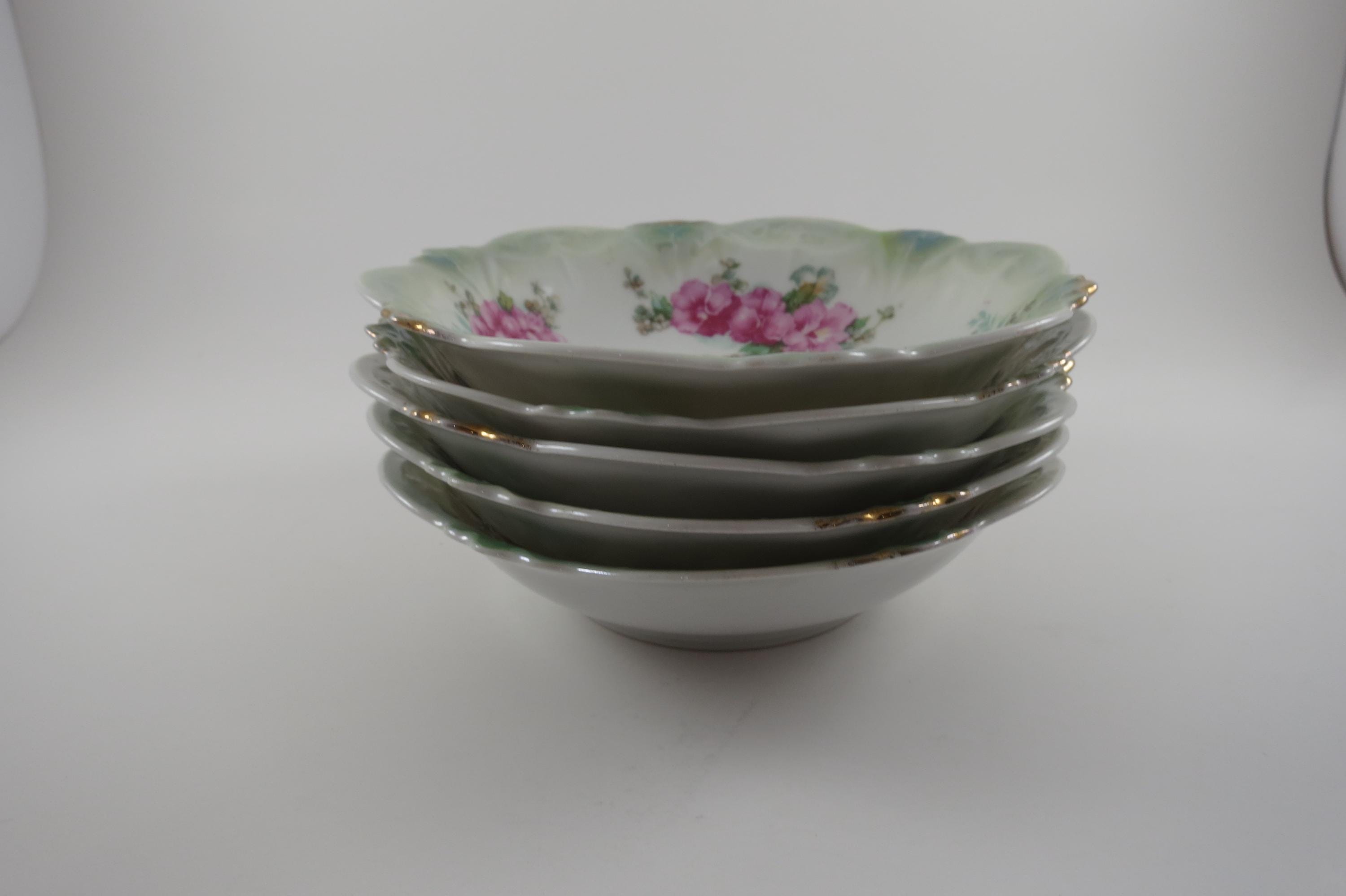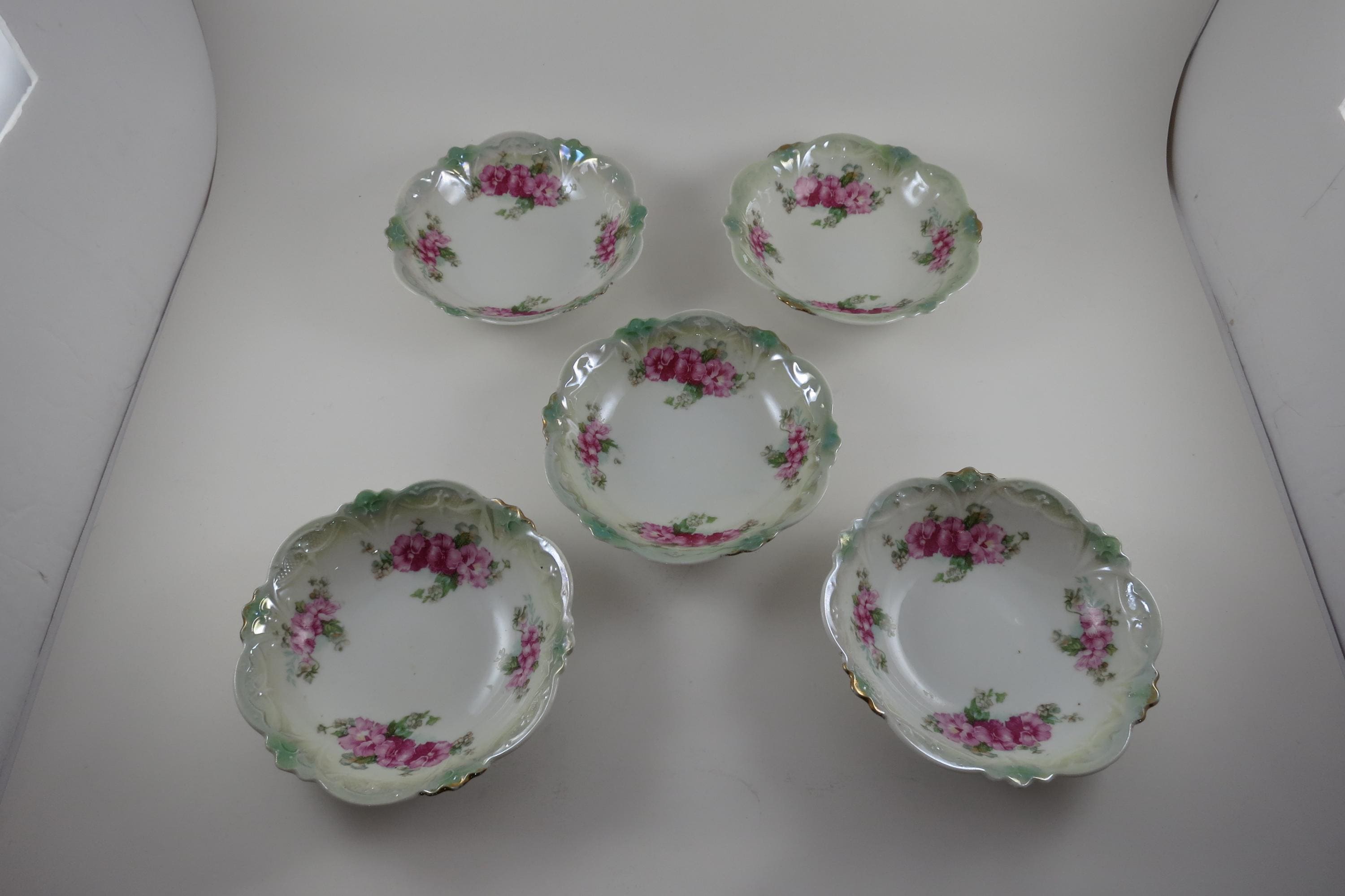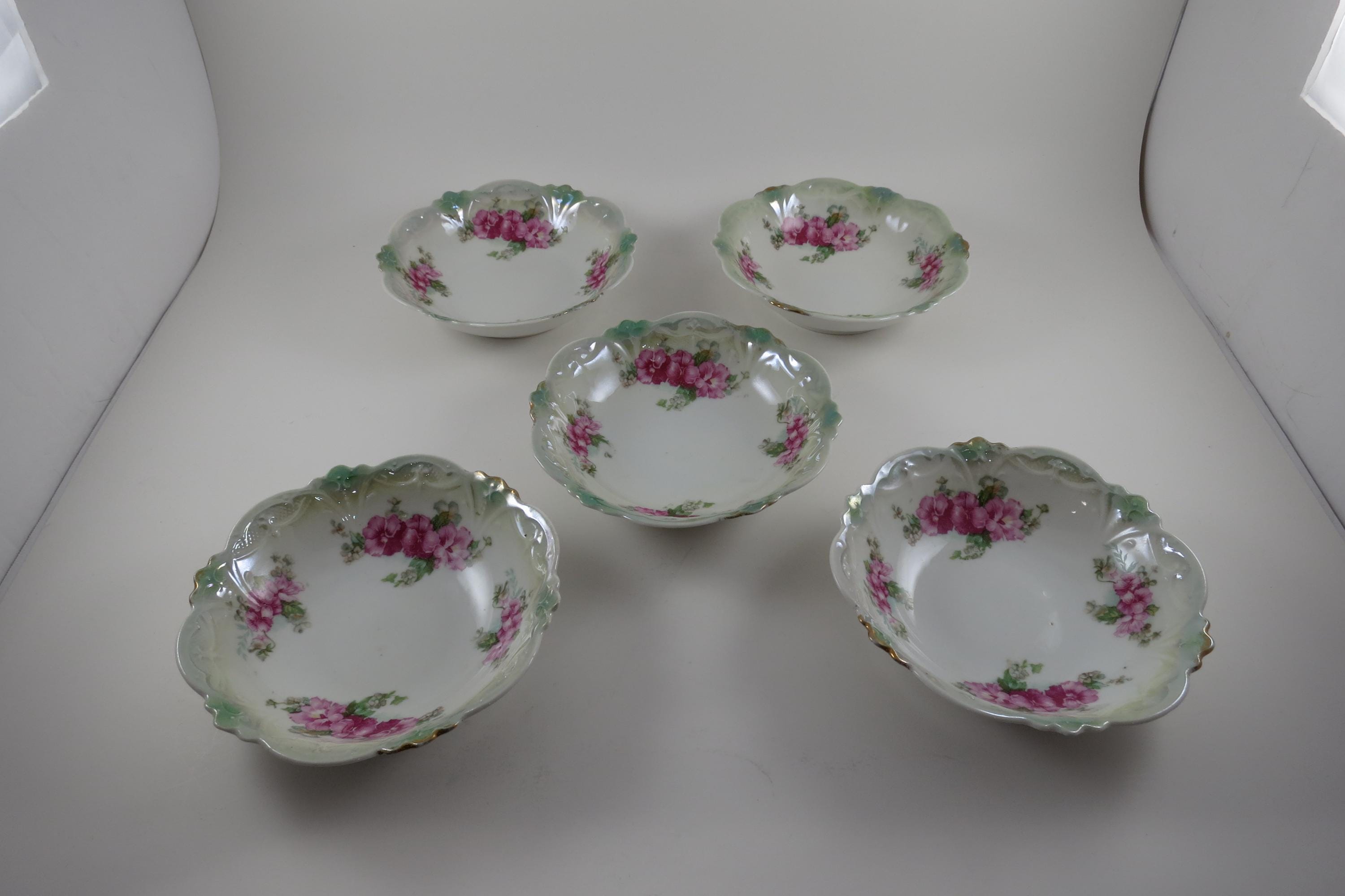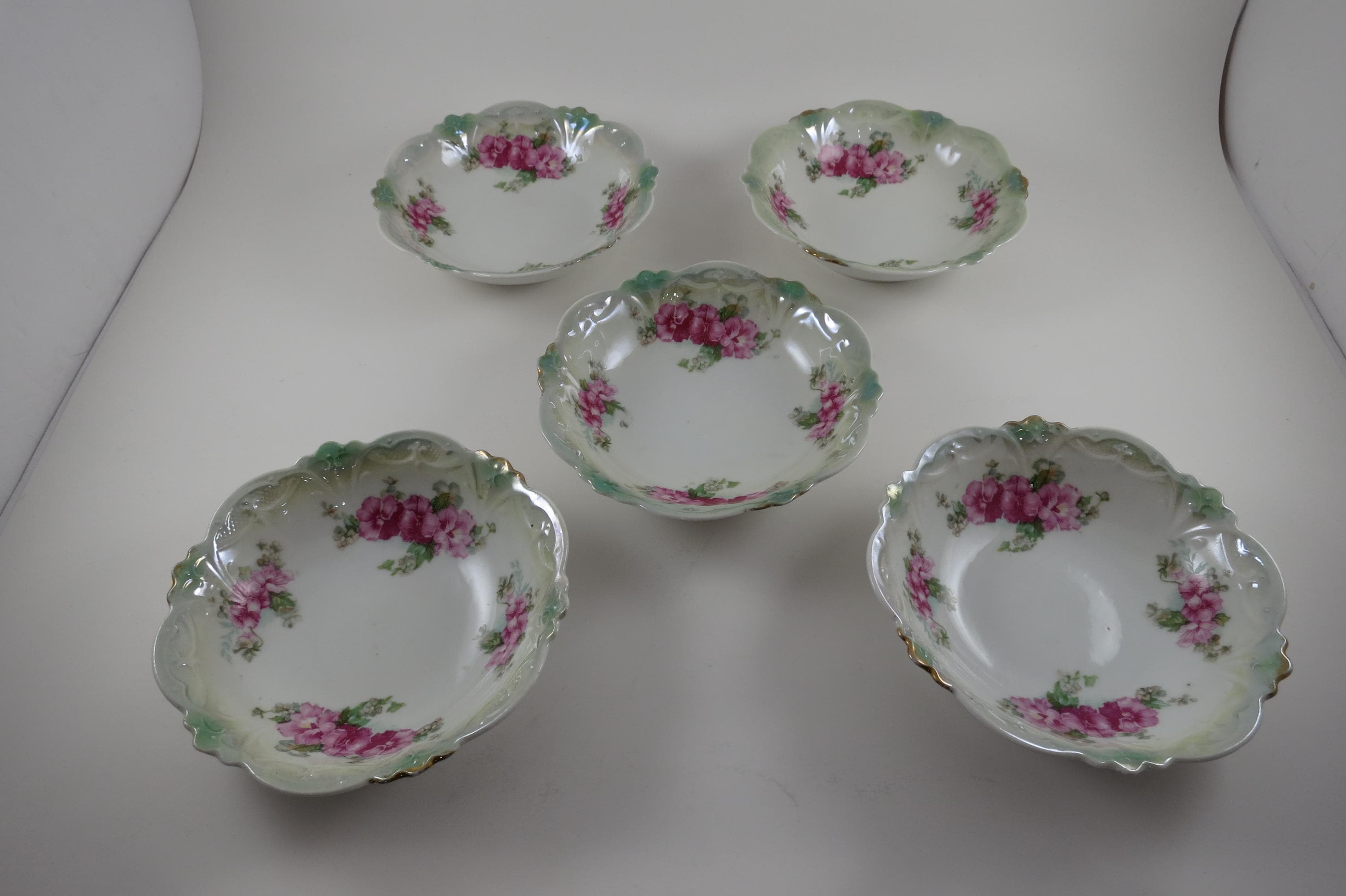 Set of Five Early Century MZ Austria Wheelock Vienna Pink Rose Hand Painted Bowls.