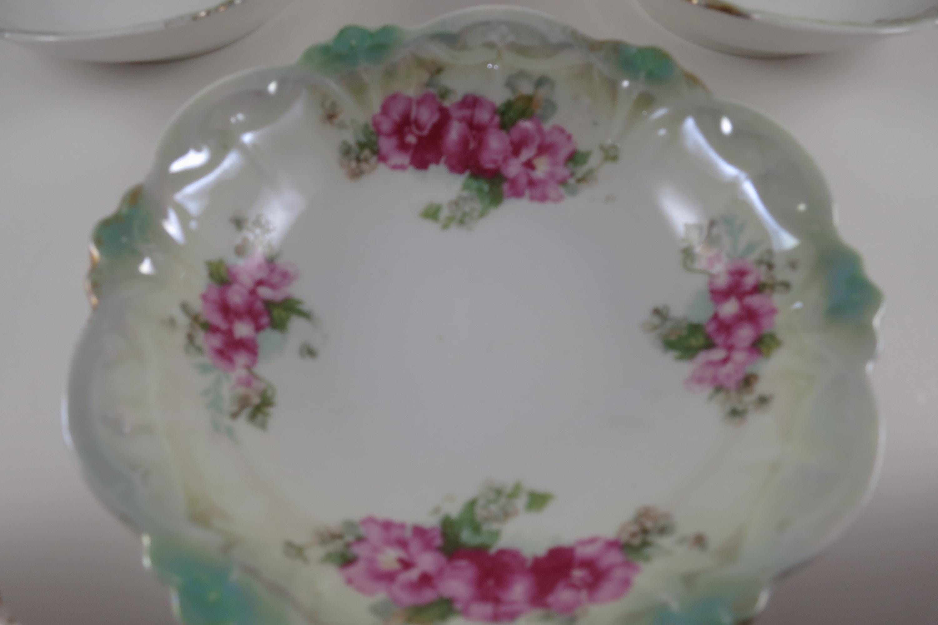 Set of Five Early Century MZ Austria Wheelock Vienna Pink Rose Hand Painted Bowls