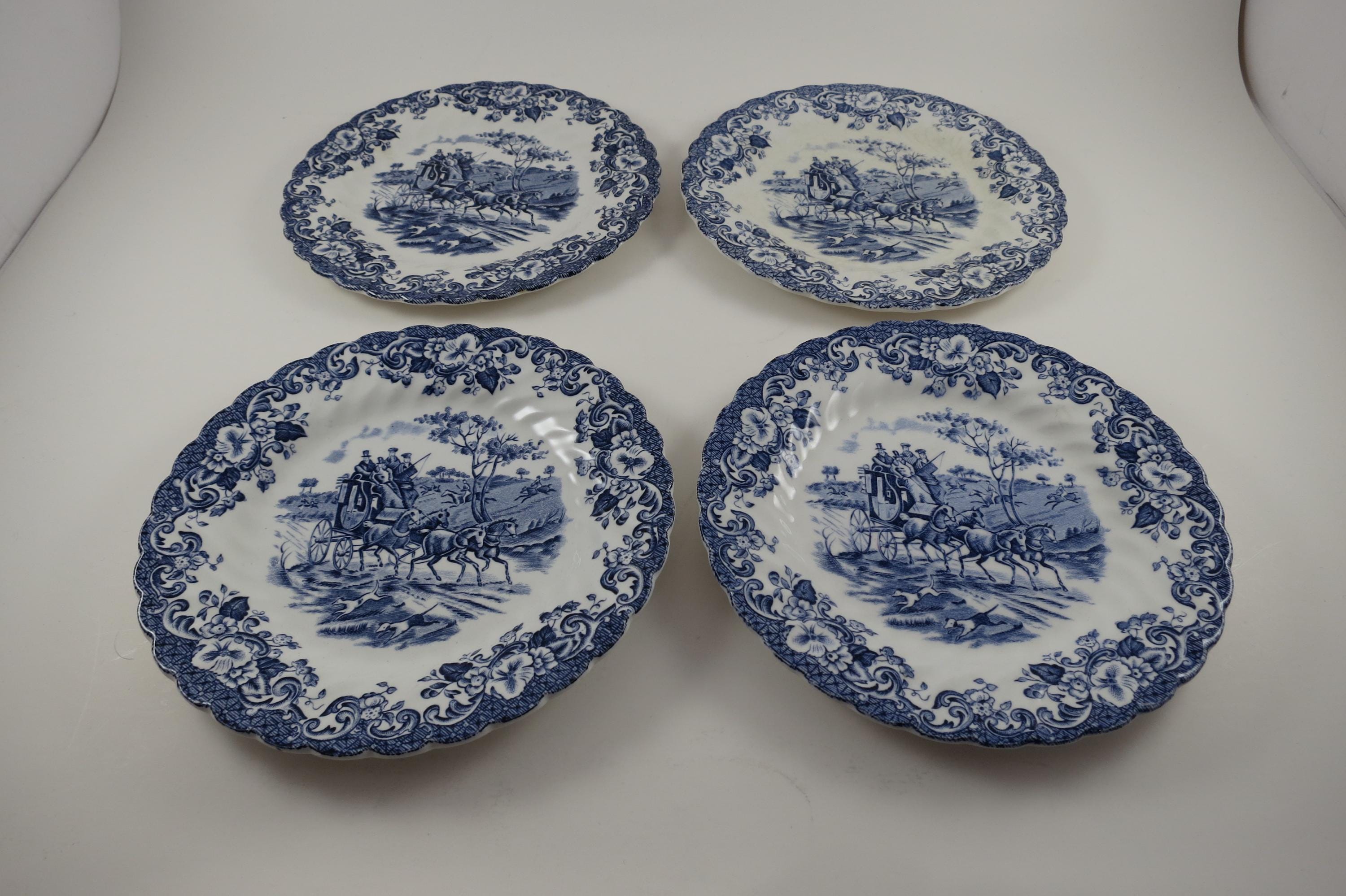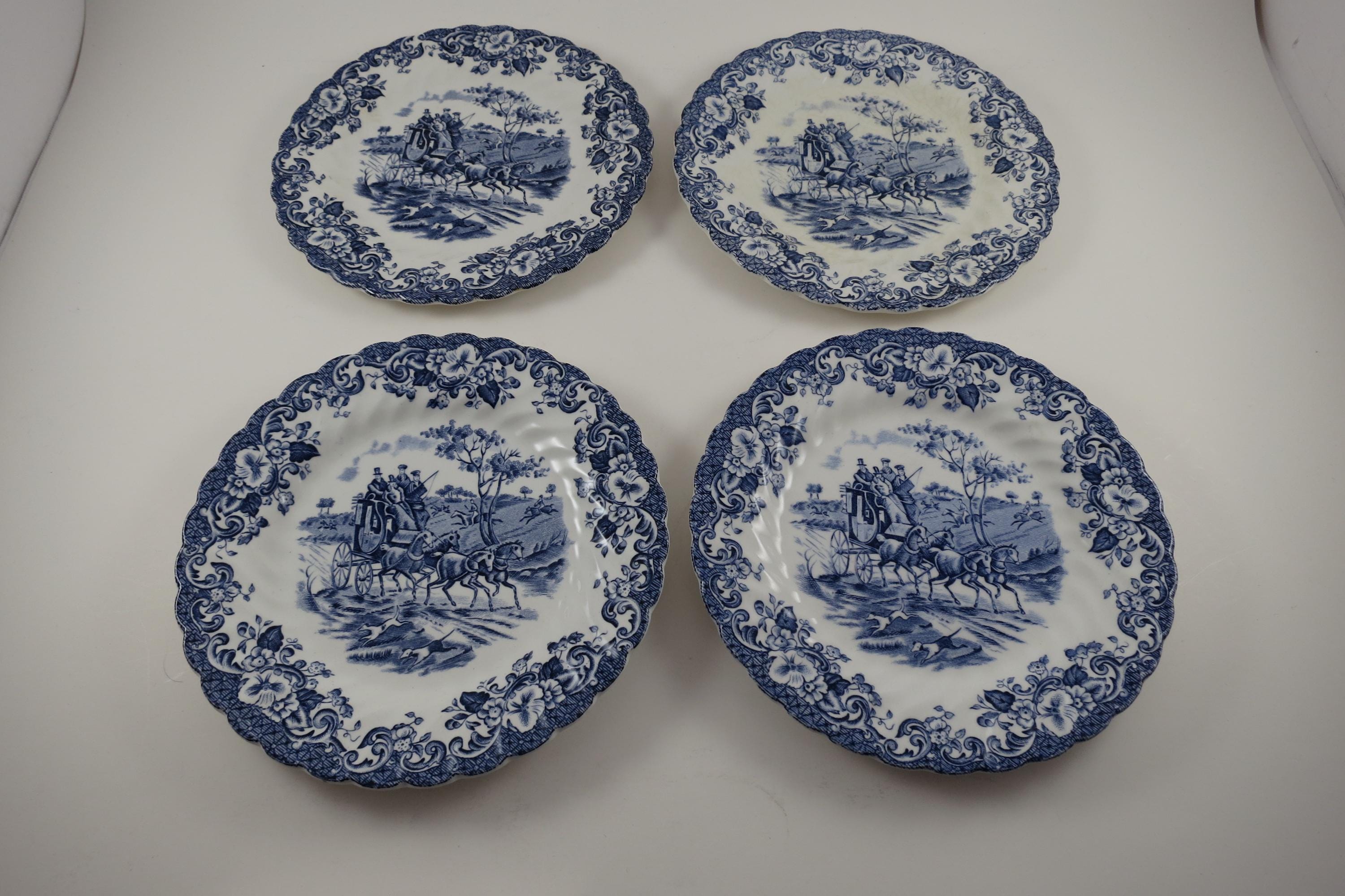 Set of Four Vintage 6 1/4 Inch Bread Plates Johnson Brothers England Coaching Scenes.