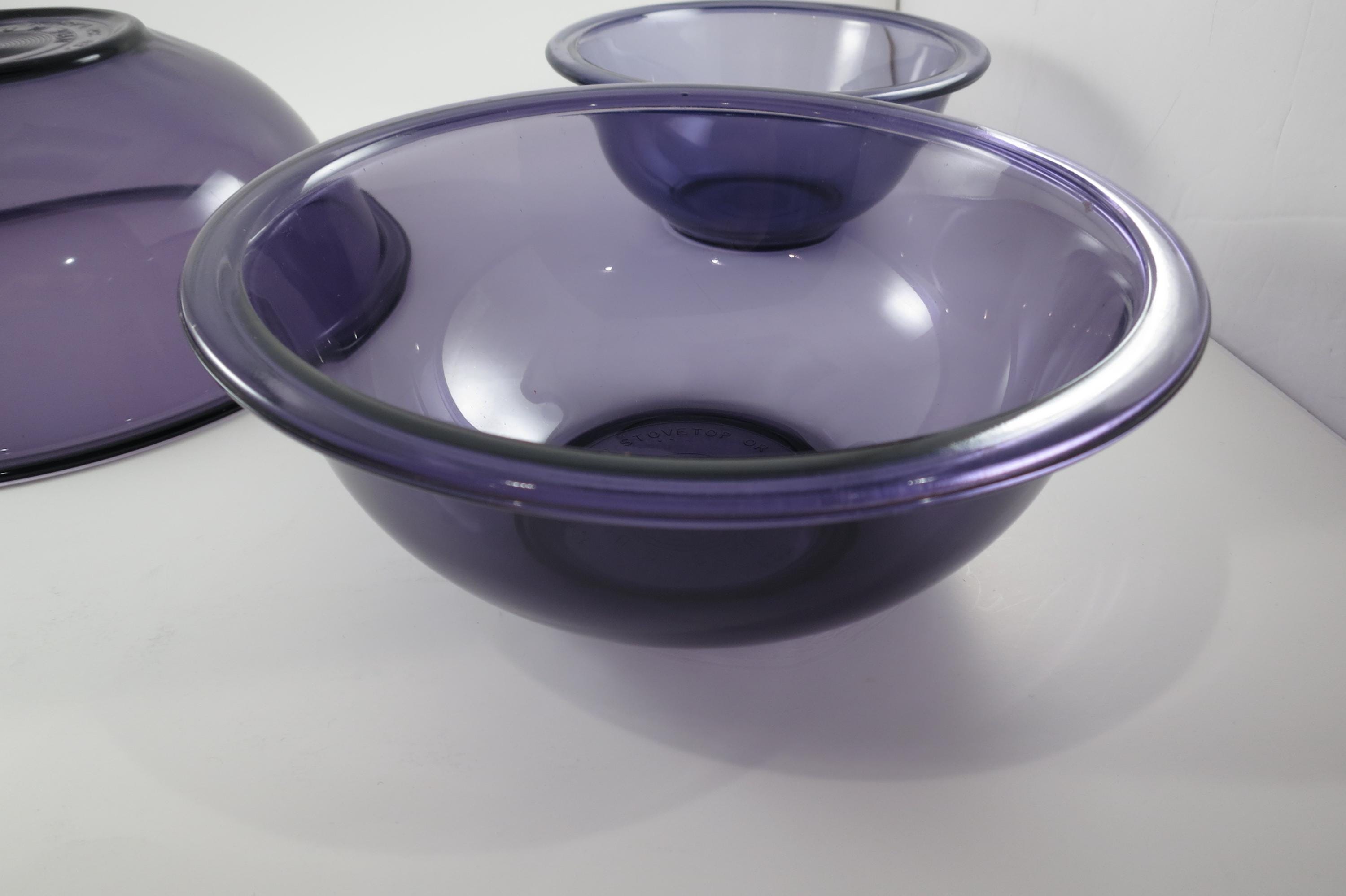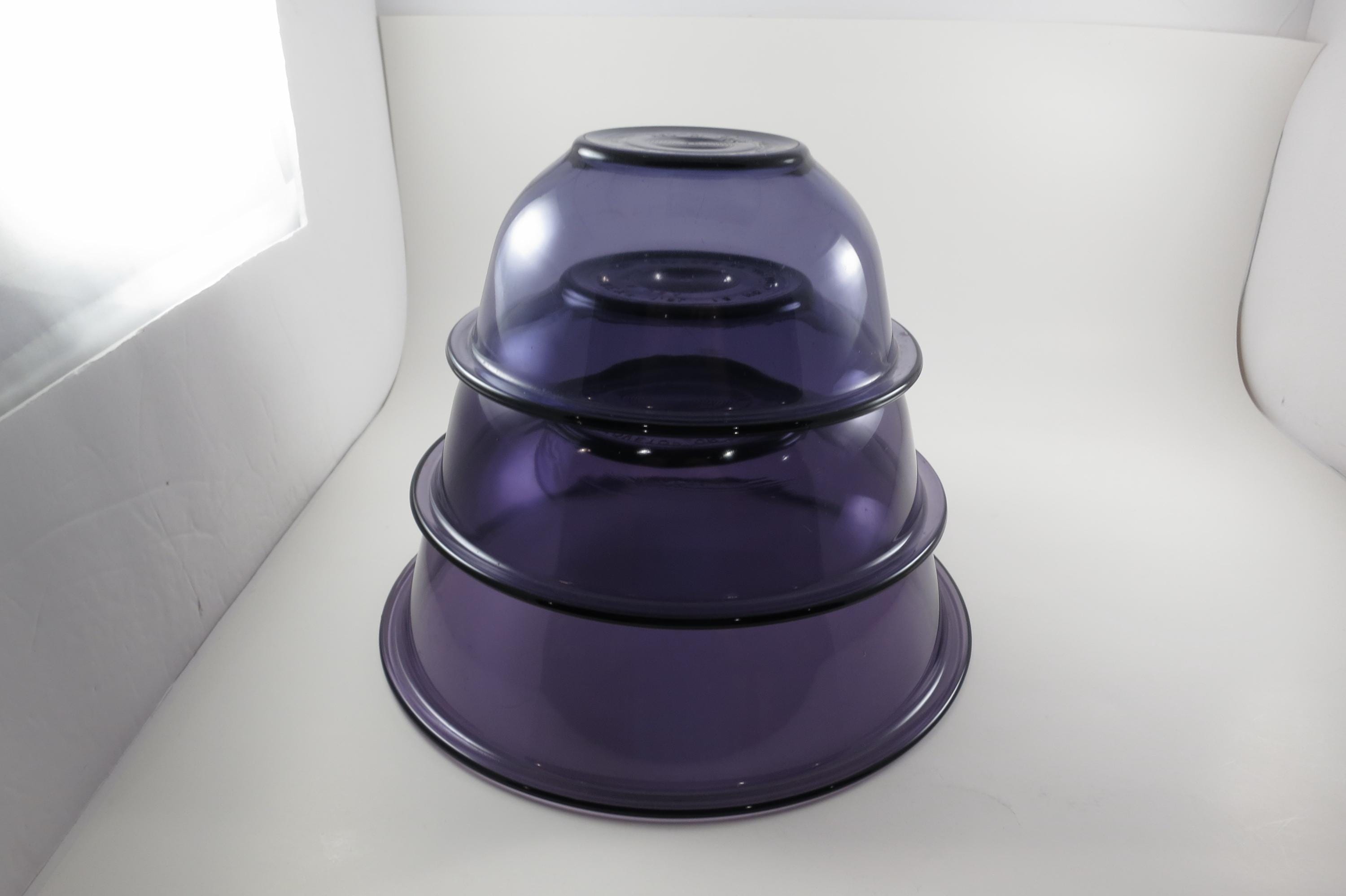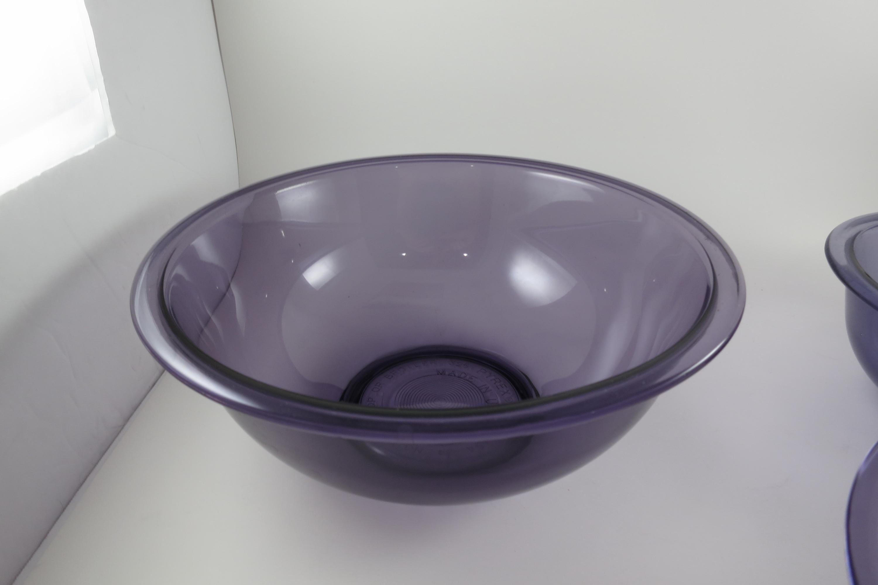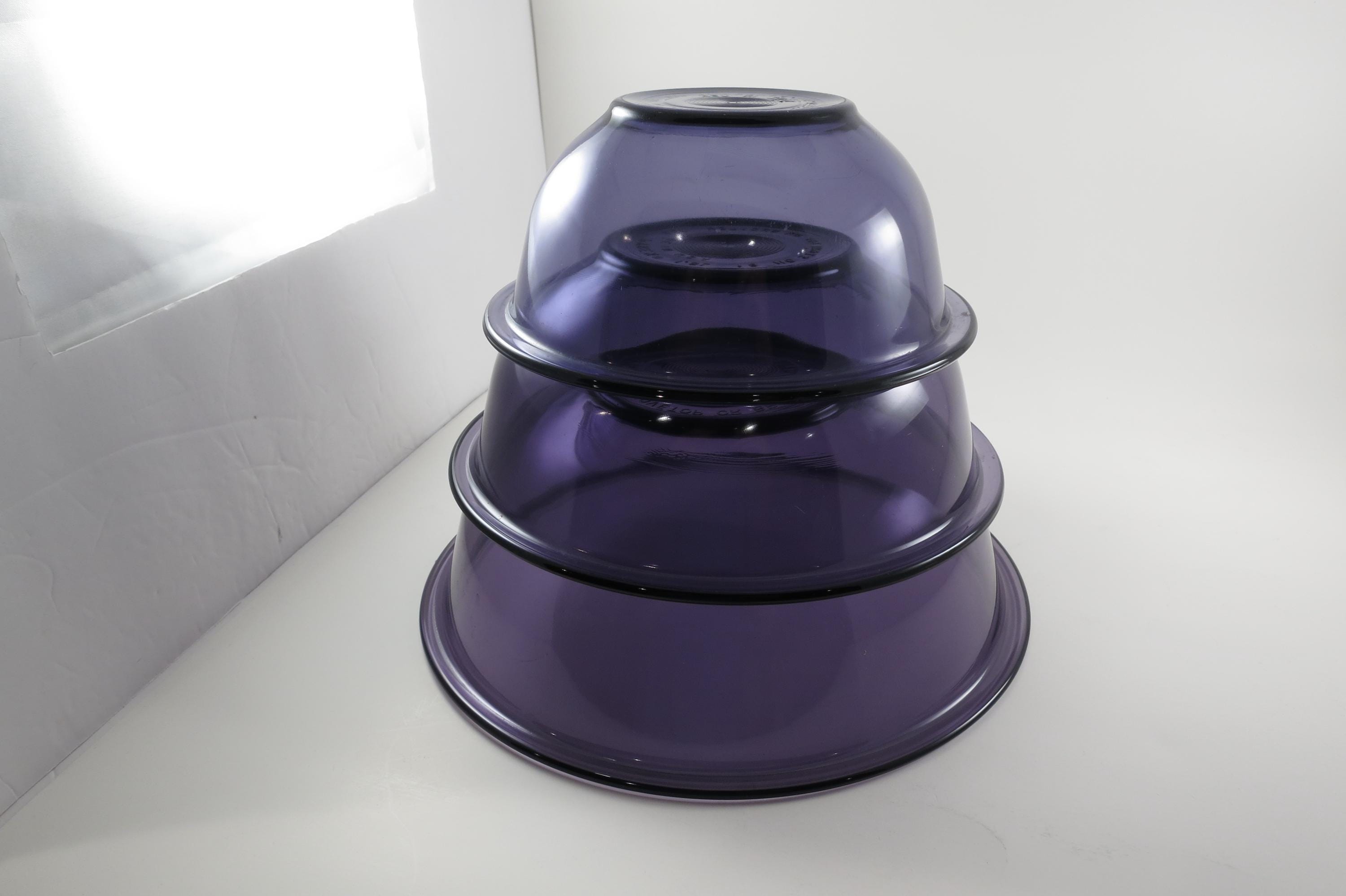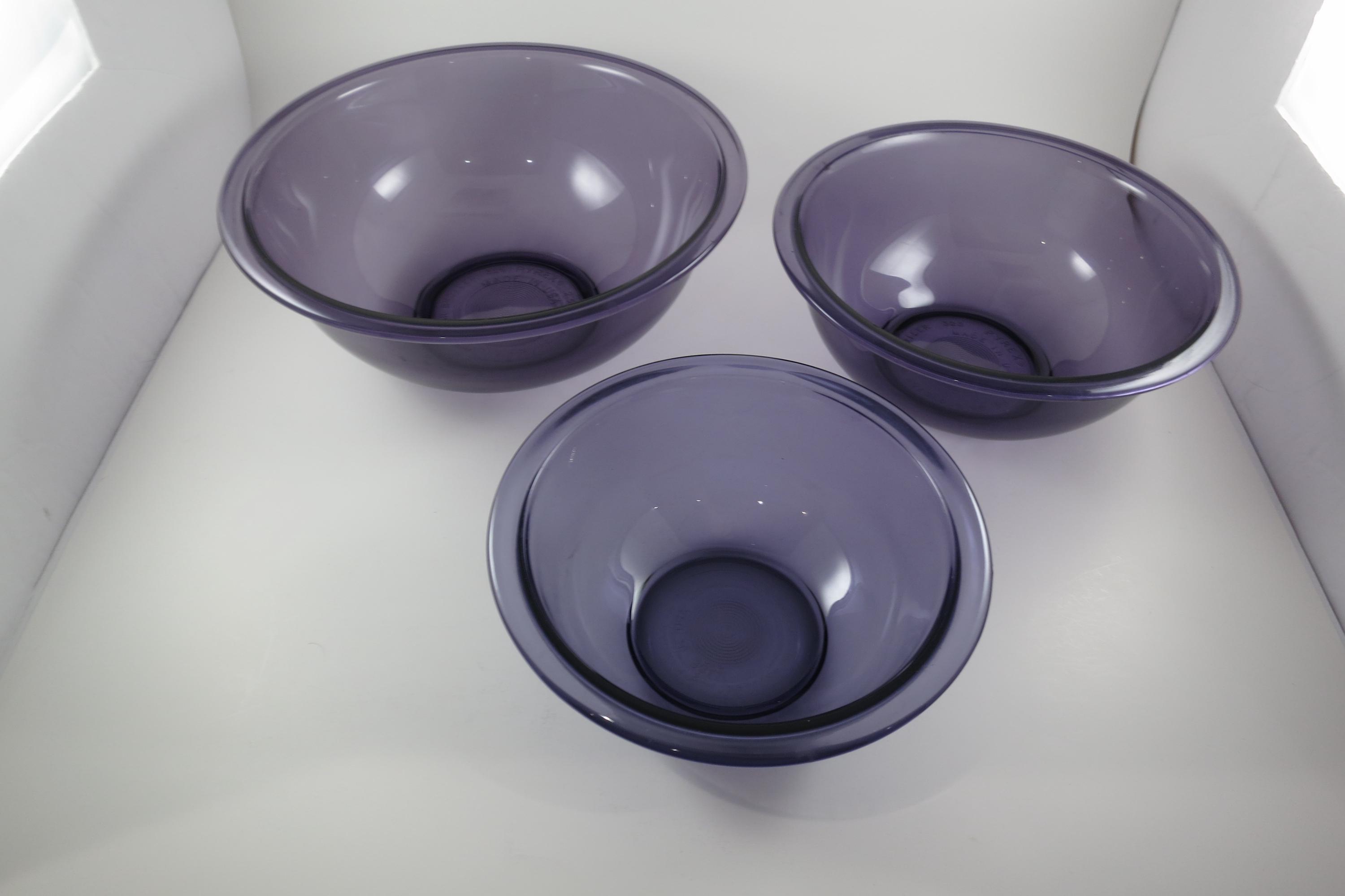 Vintage Three Piece Pyrex Nesting Mixing Bowl Set Harder to Find Purple Amethyst.