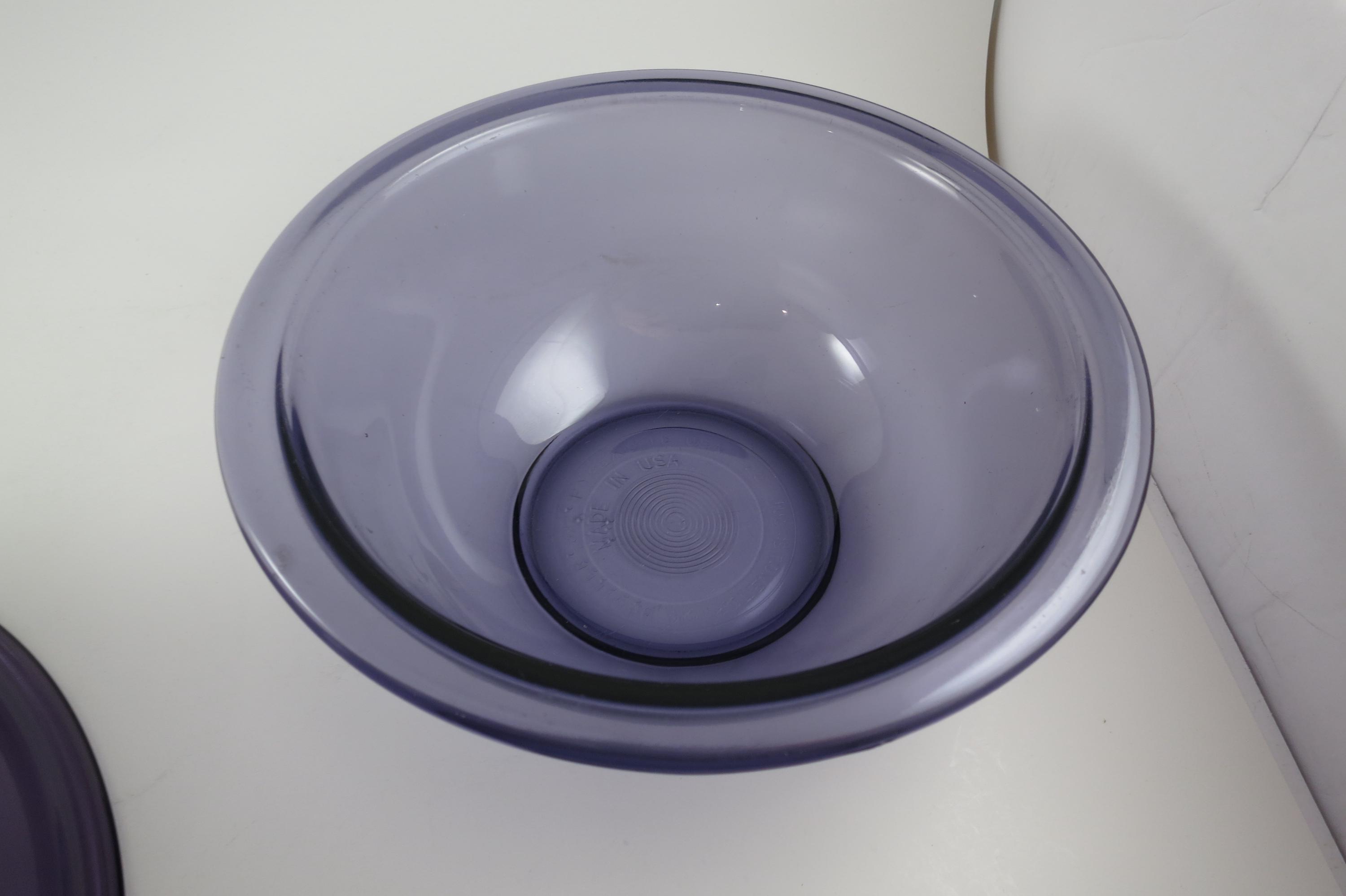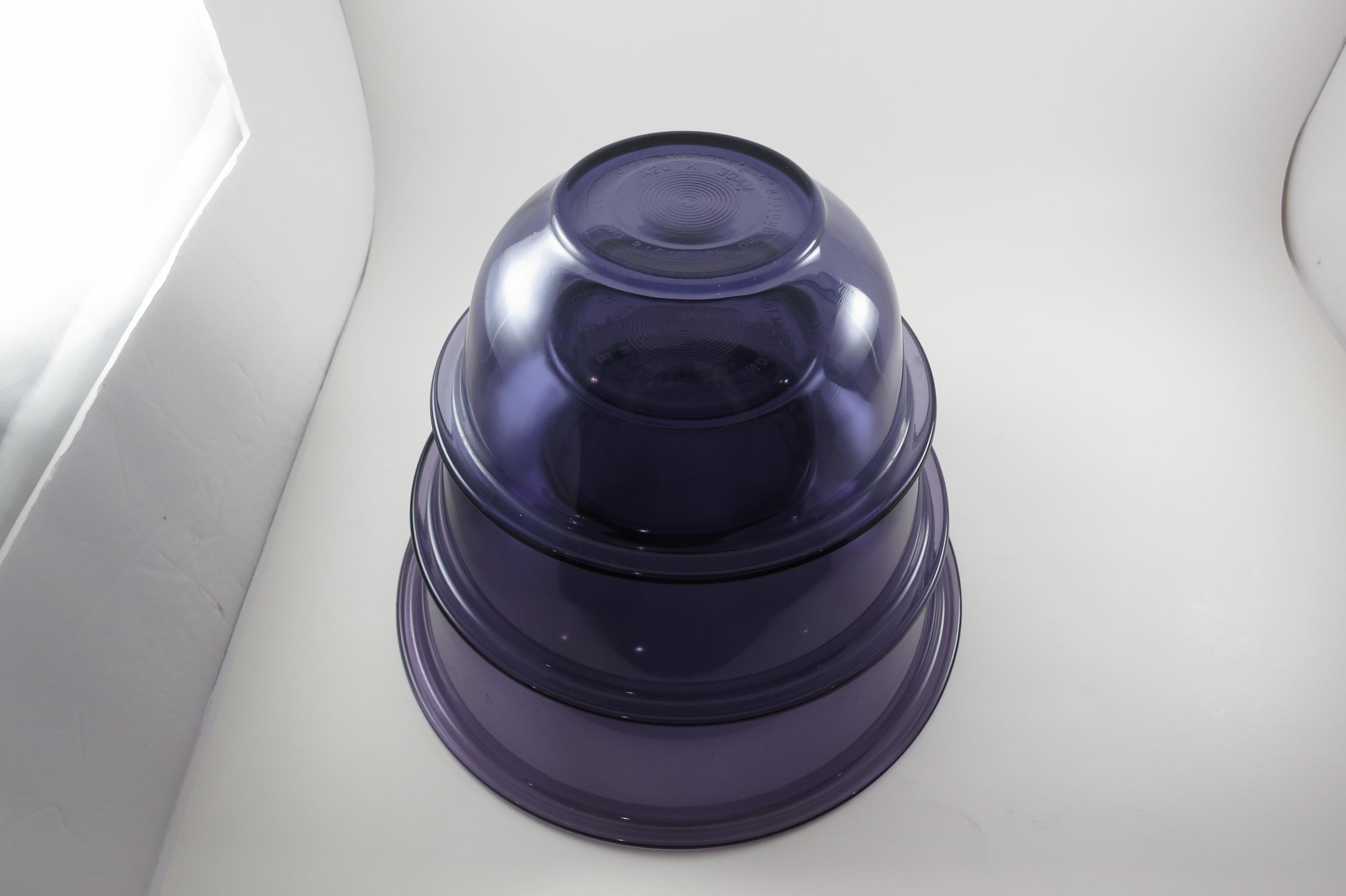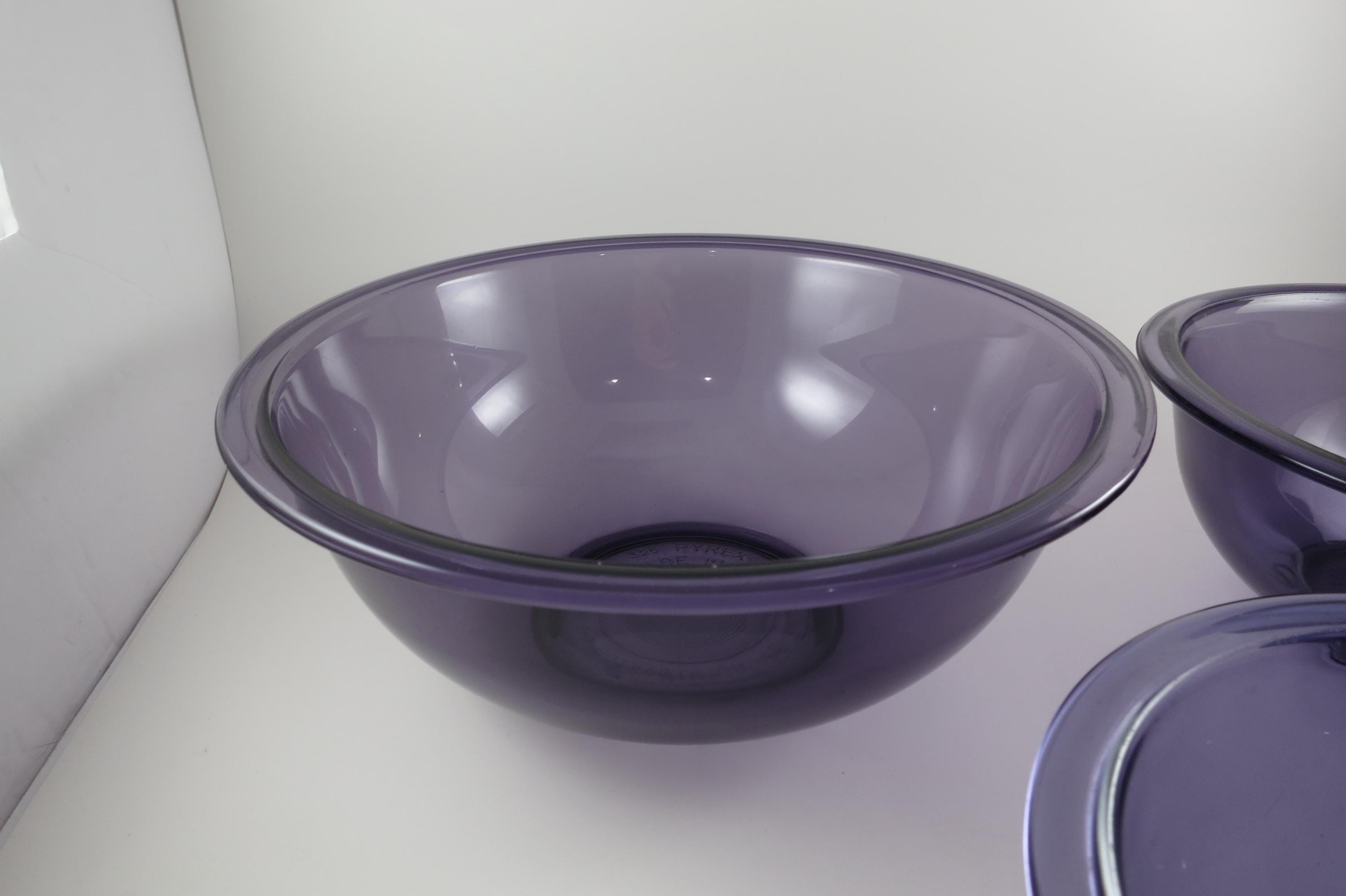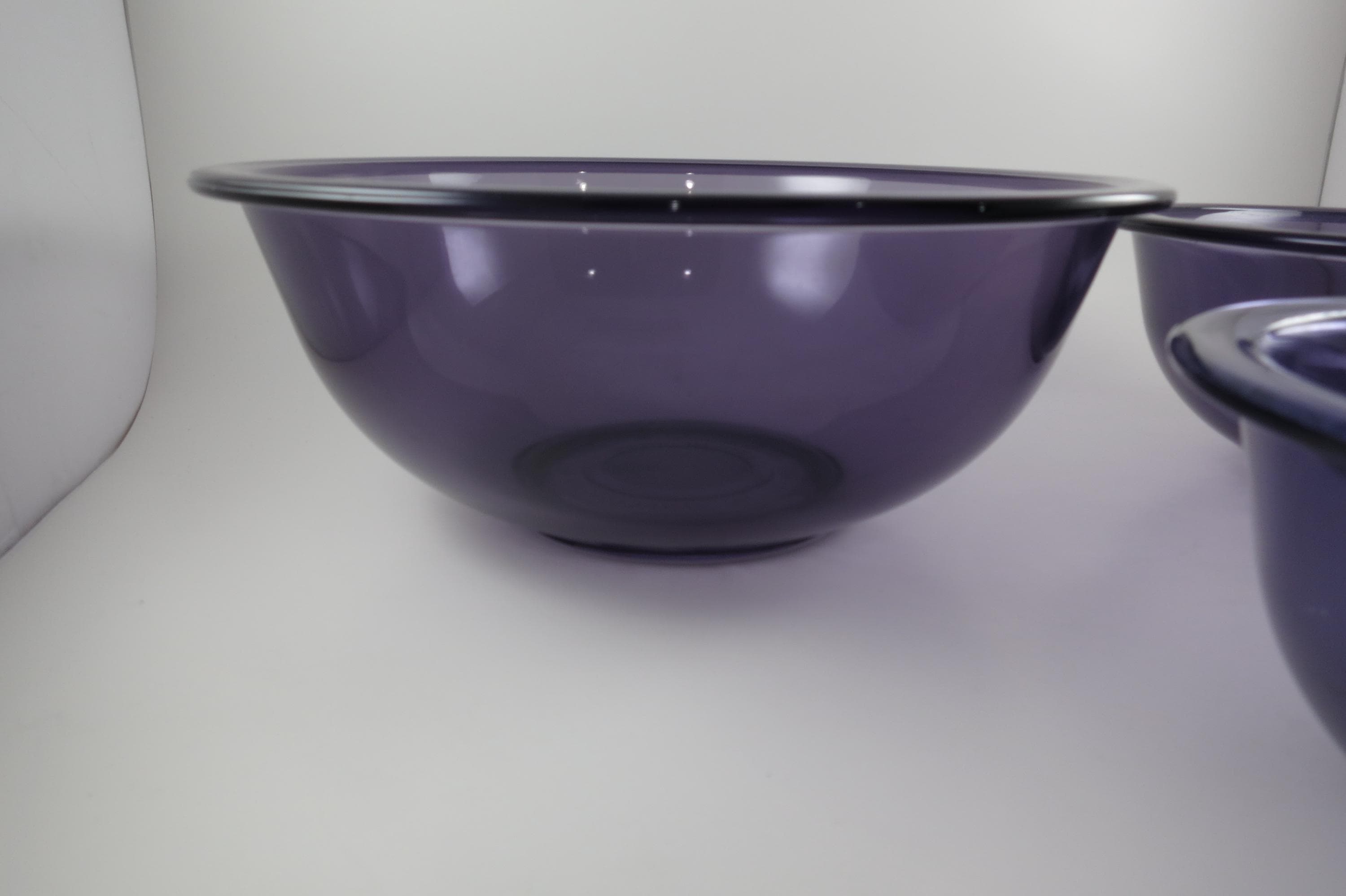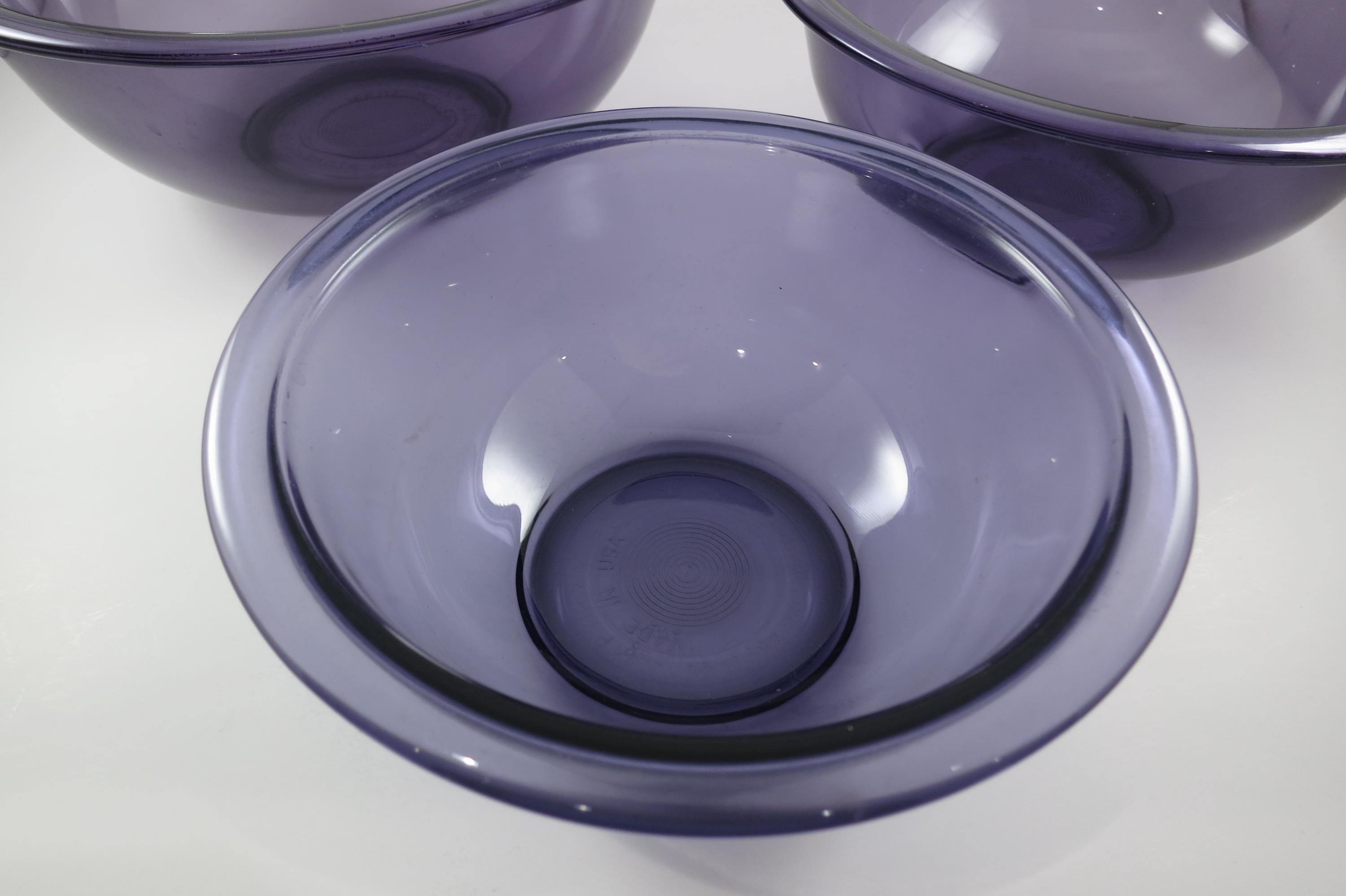 Vintage Three Piece Pyrex Nesting Mixing Bowl Set Harder to Find Purple Amethyst.