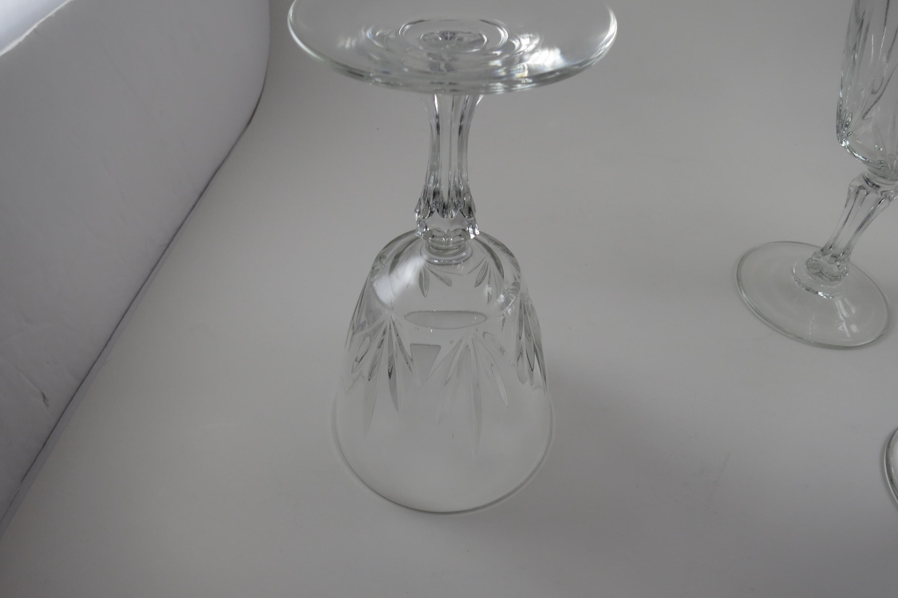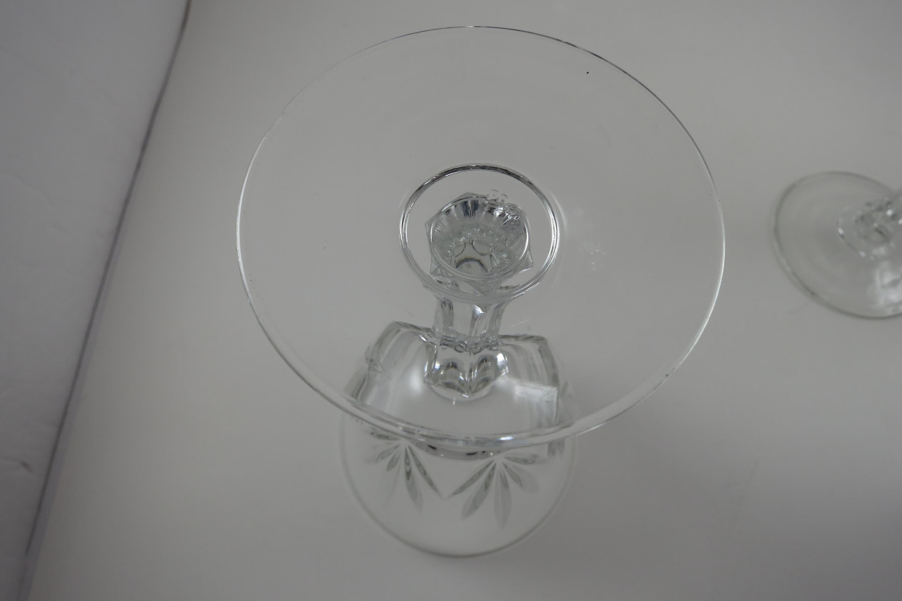 No chips, cracks or other damages. These glasses are beautiful and look like they have never been used. Each measures 7 Inches tall and 3 1/2 inches wide at the mouth. Heavy Stems.