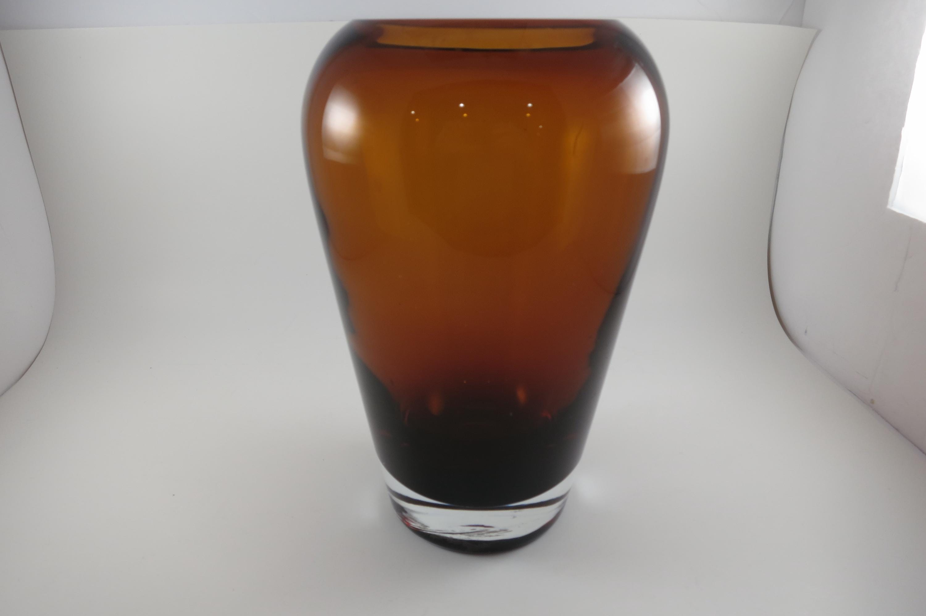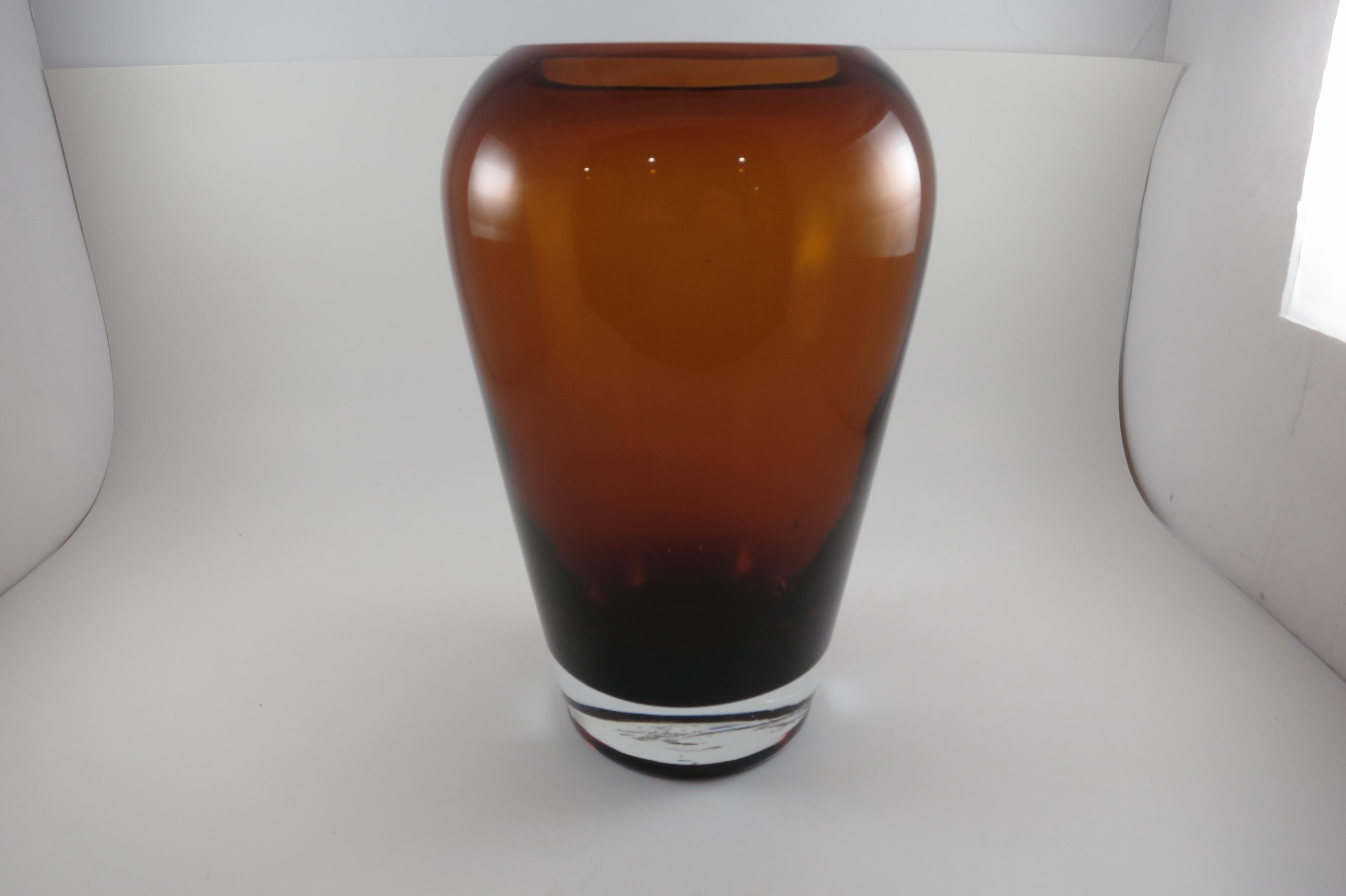 Vintage Art Glass Brown MCM 9 1/4 Inch Vase.