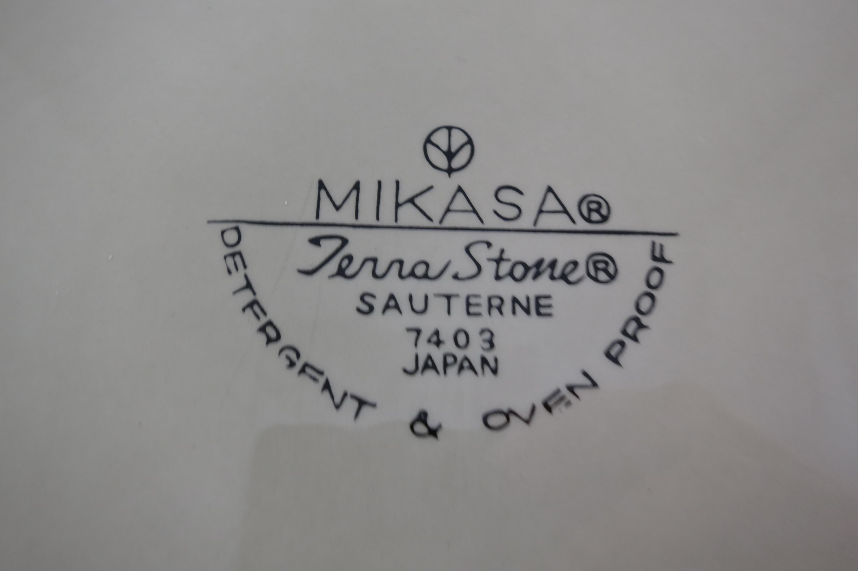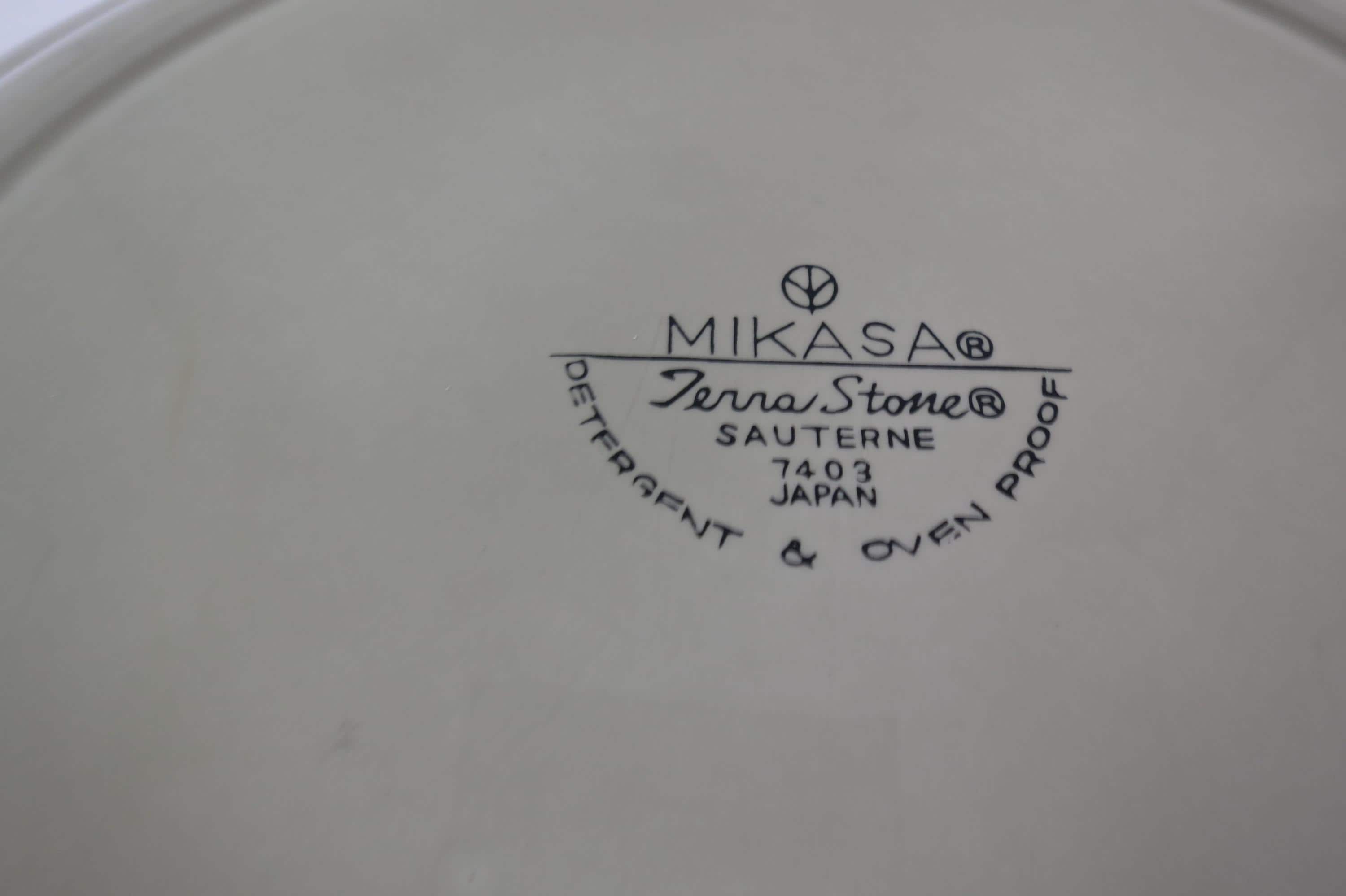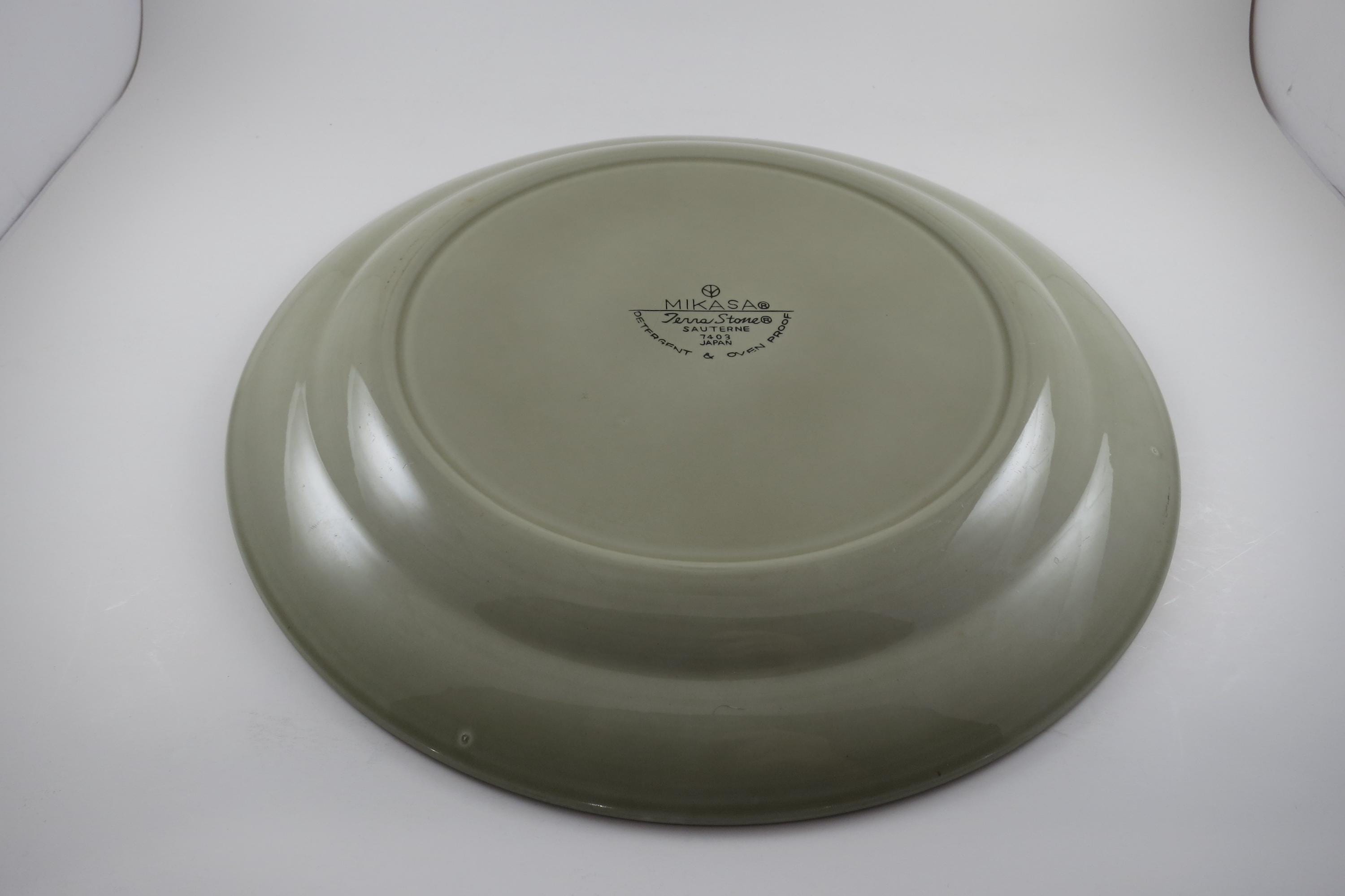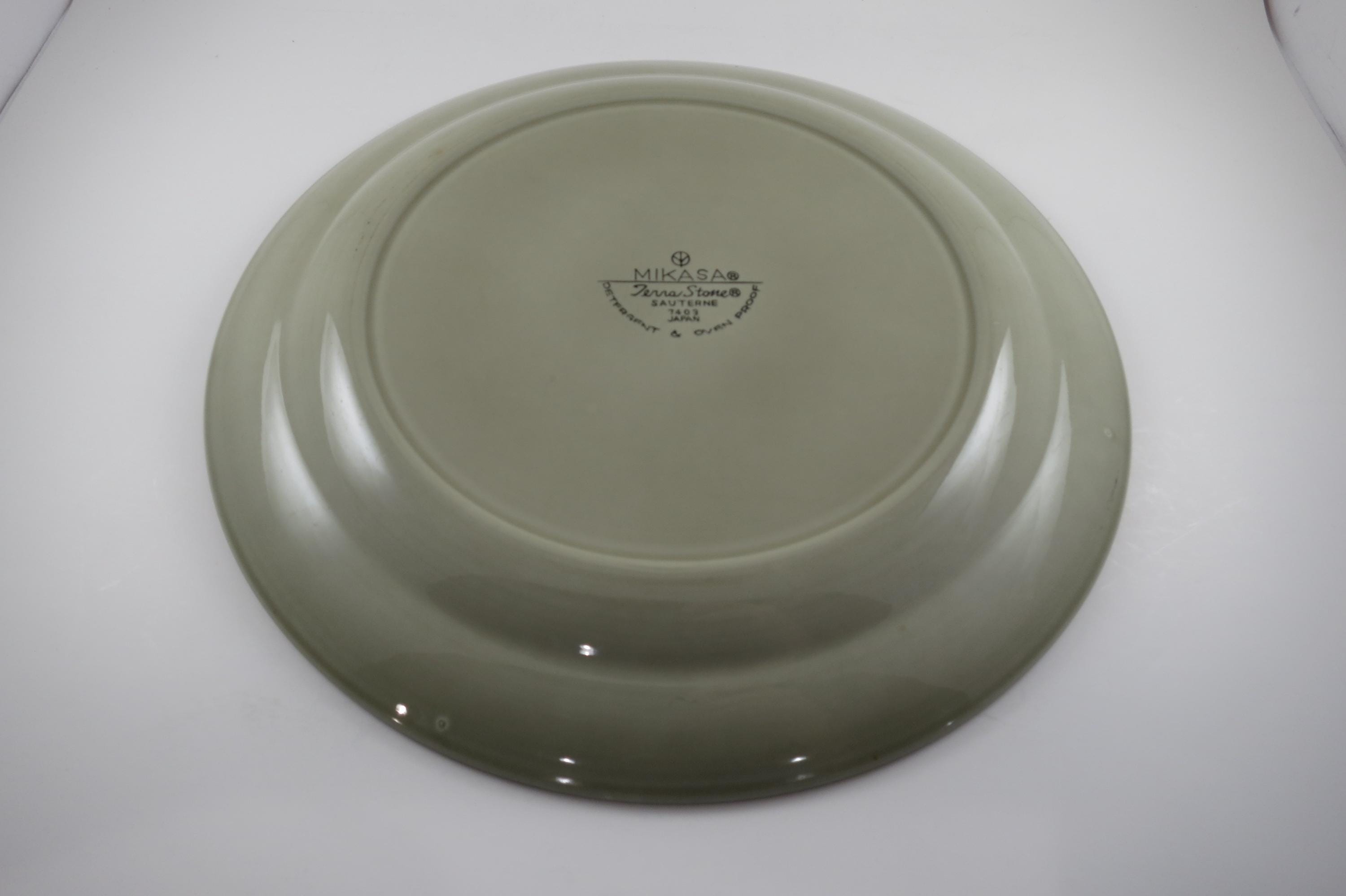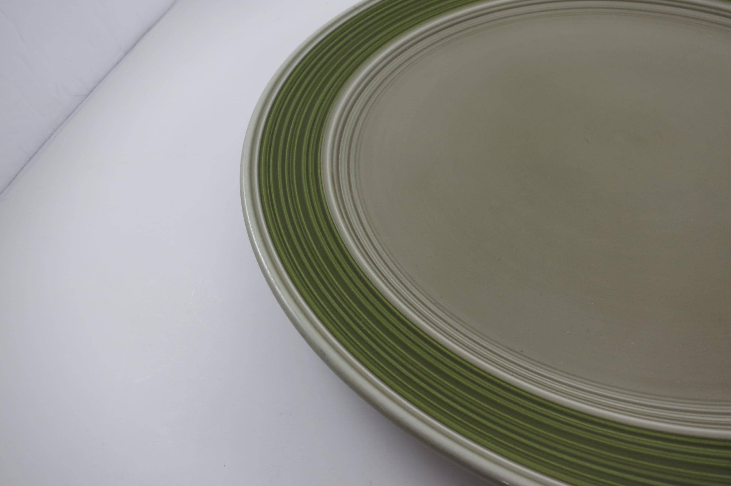 Vintage MCM Mikasa Terra Stone Sauterne Avocado 12 1/4 Inch Round Chop Plate.