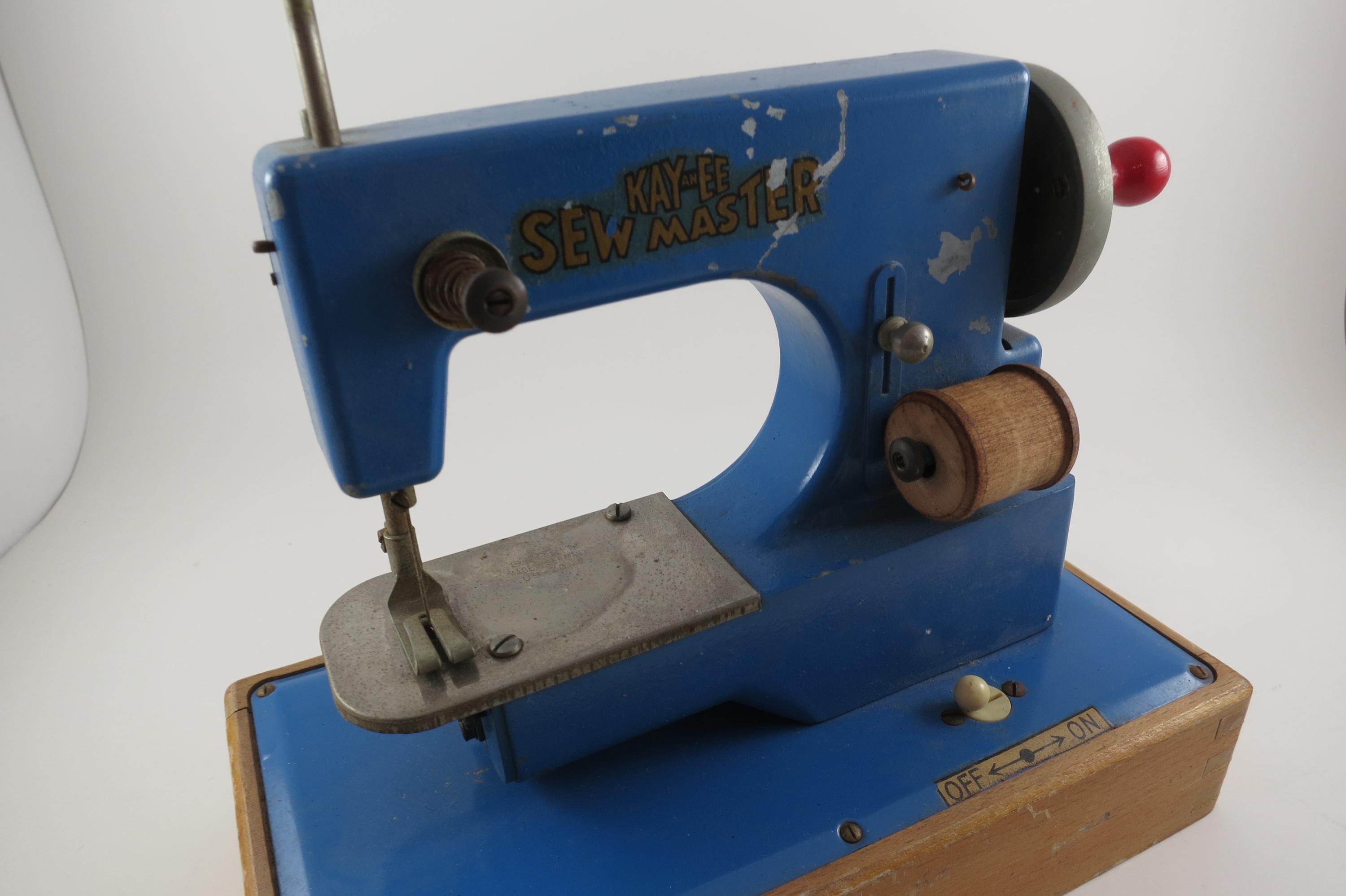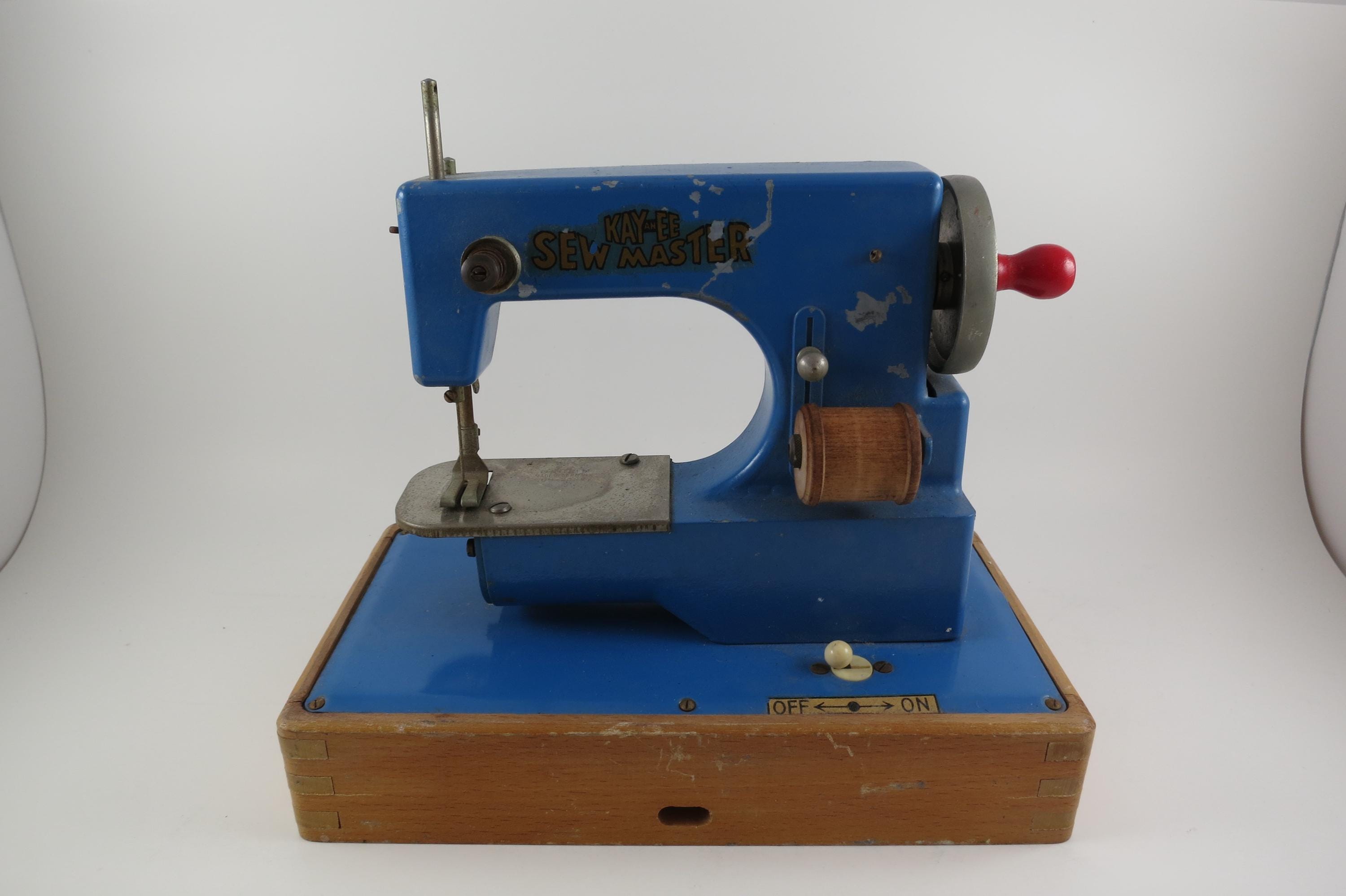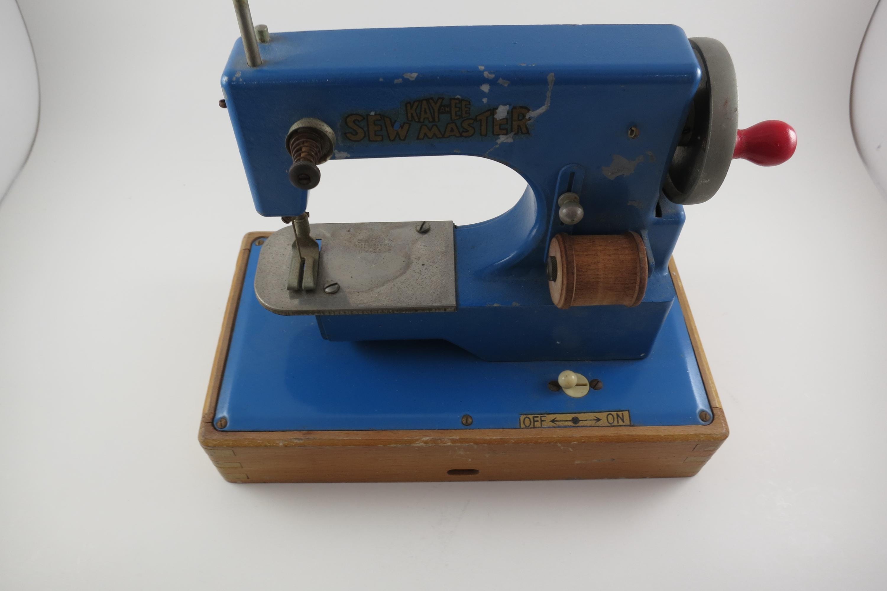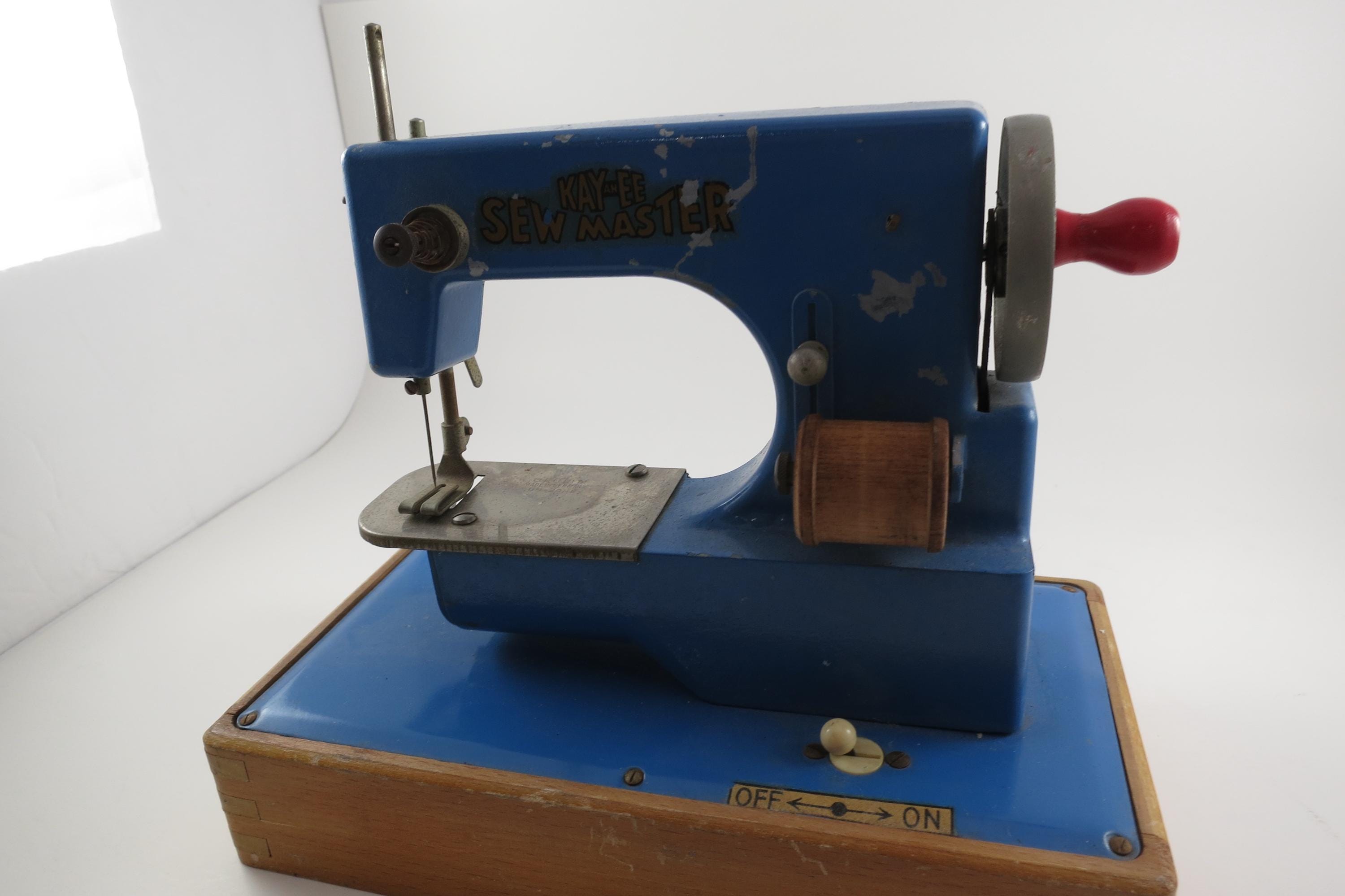 Vintage Mid Century Kay-AN-EE Sew Master Child's Sewing Machine In Blue.
