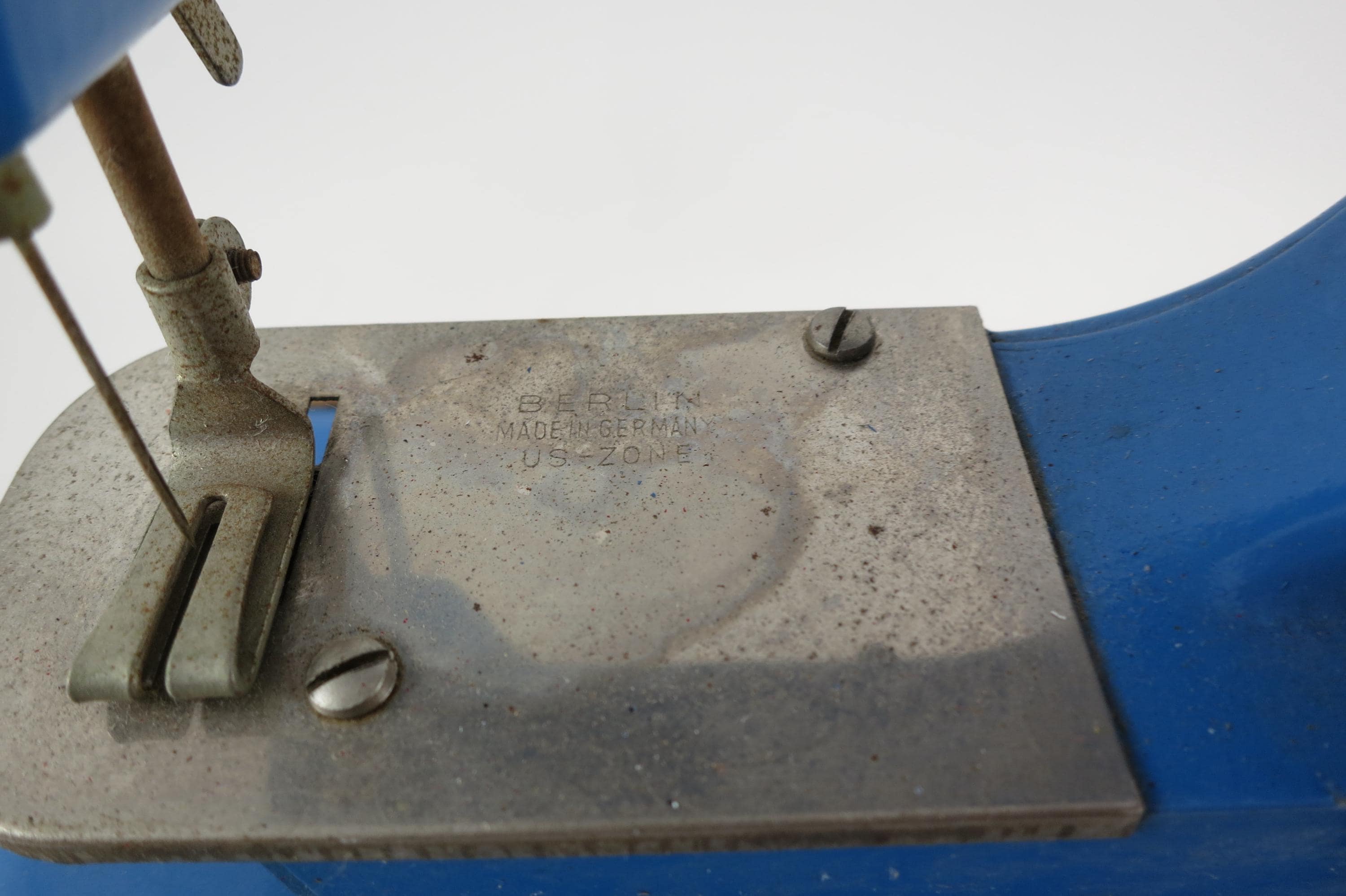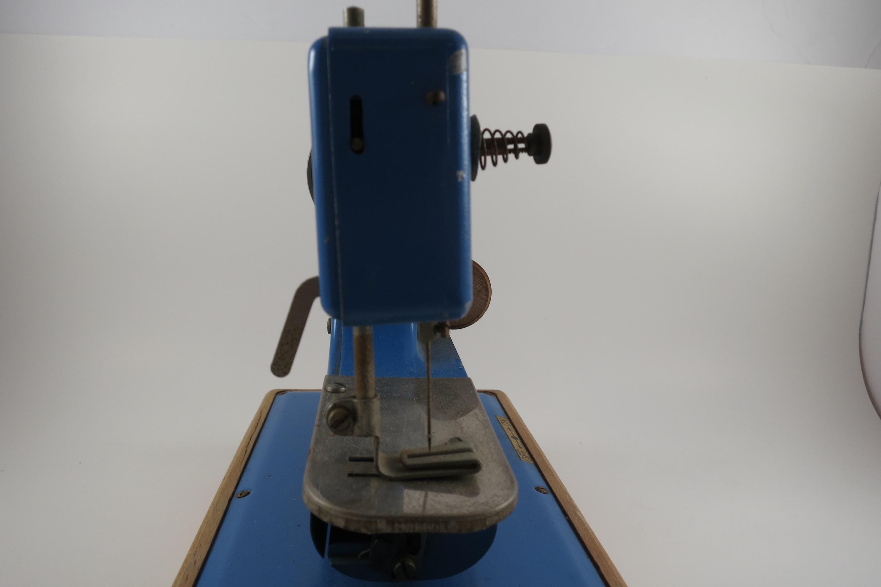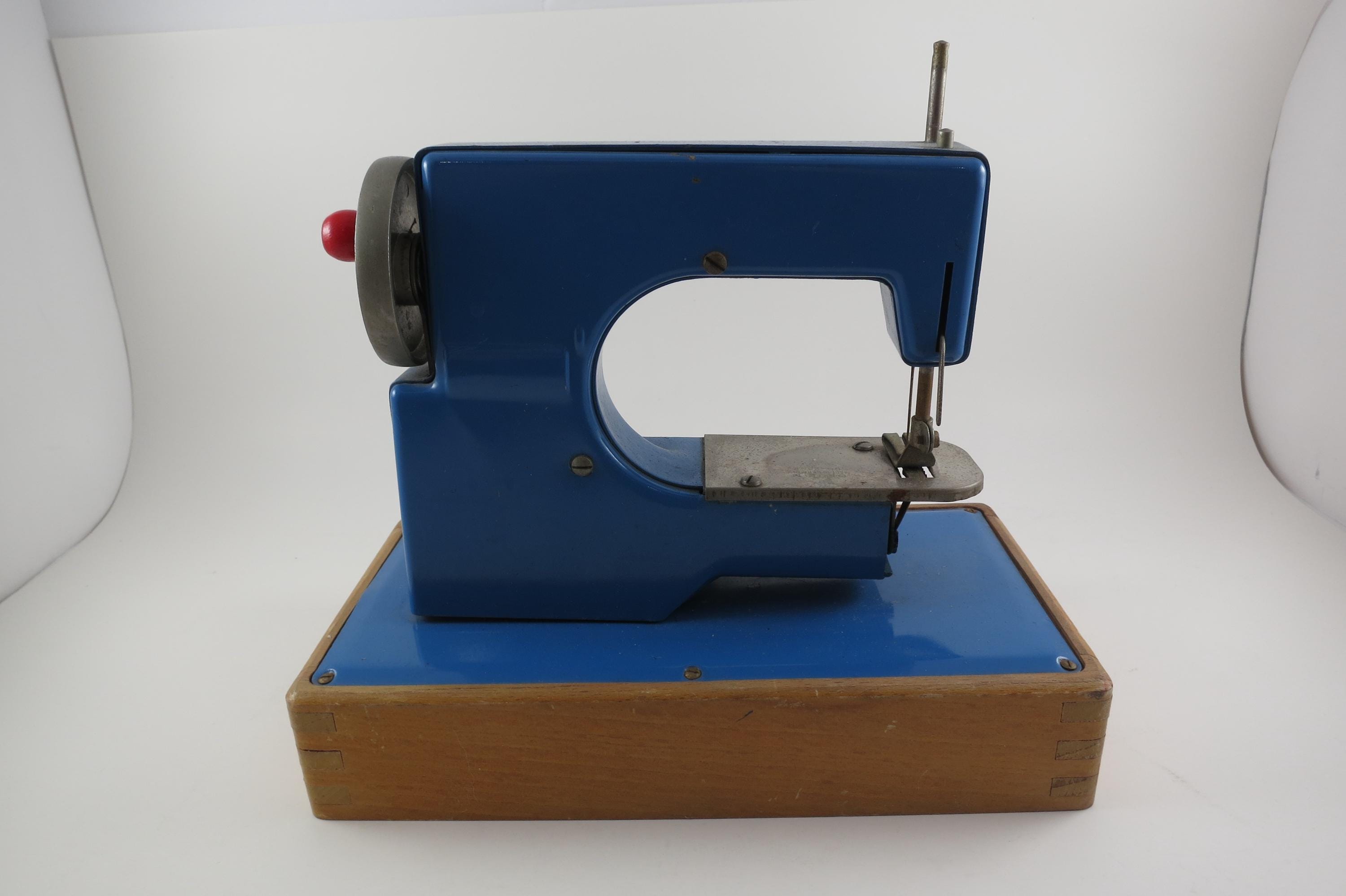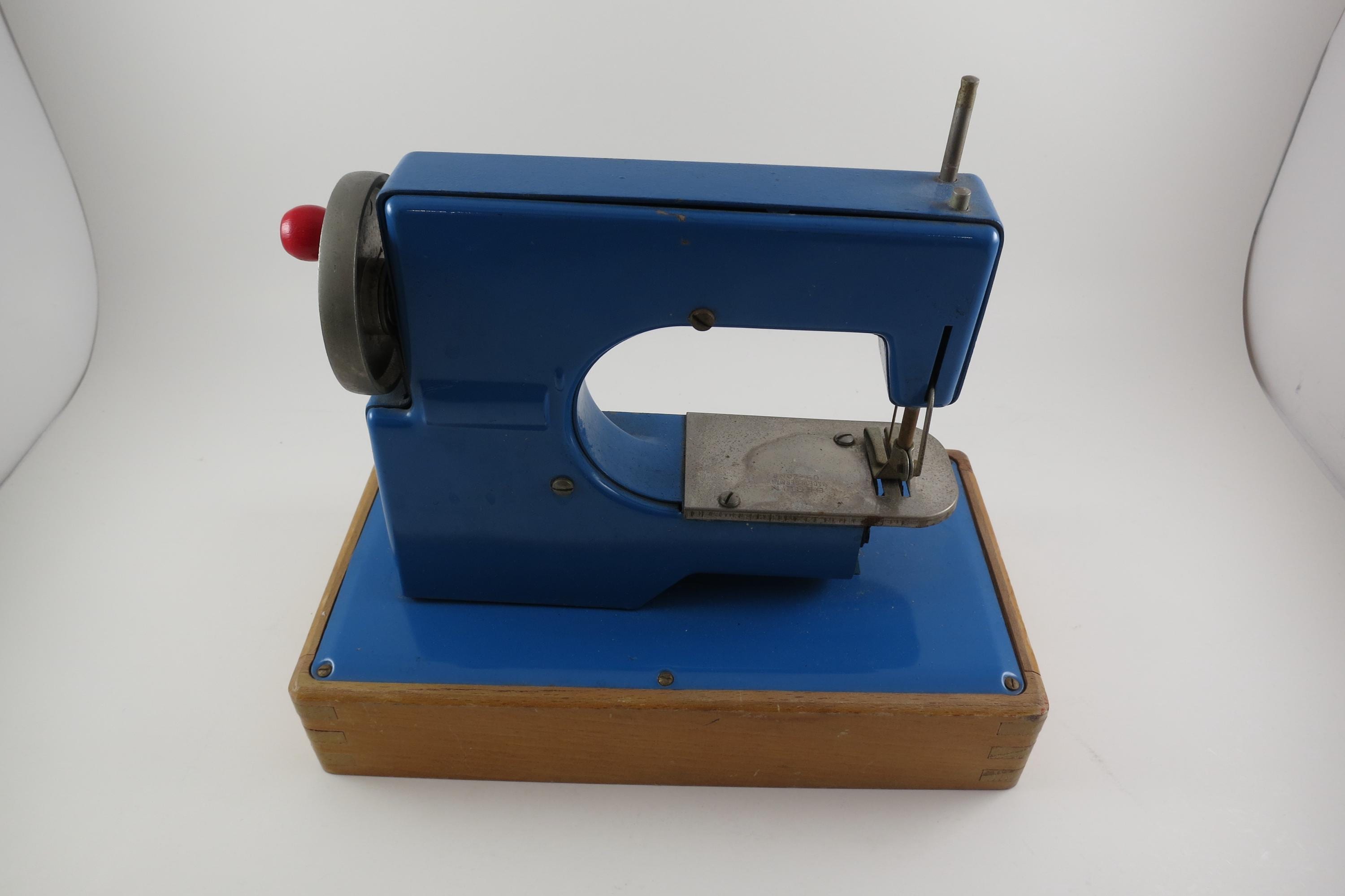 Vintage Mid Century Kay-AN-EE Sew Master Child's Sewing Machine In Blue.