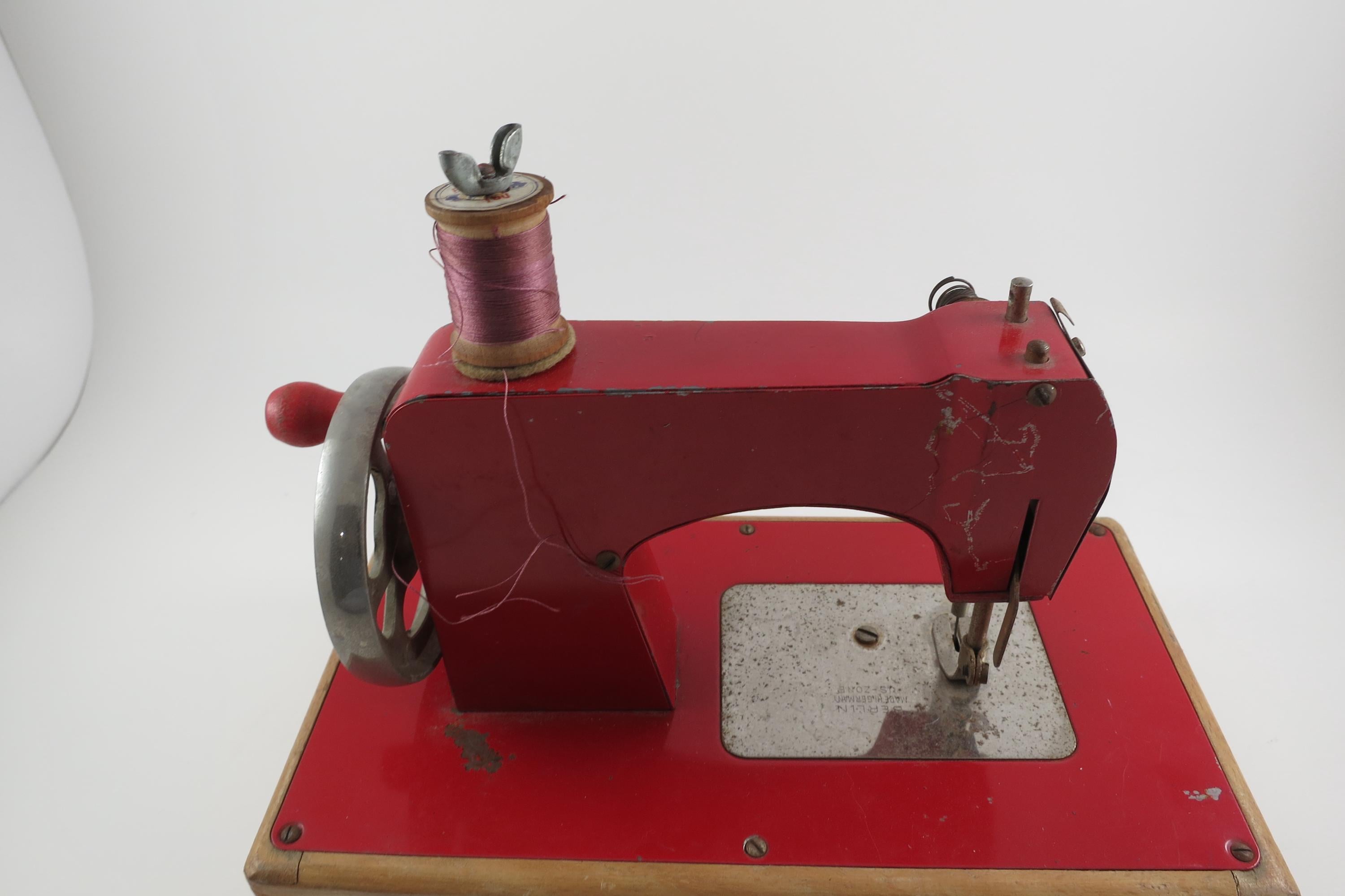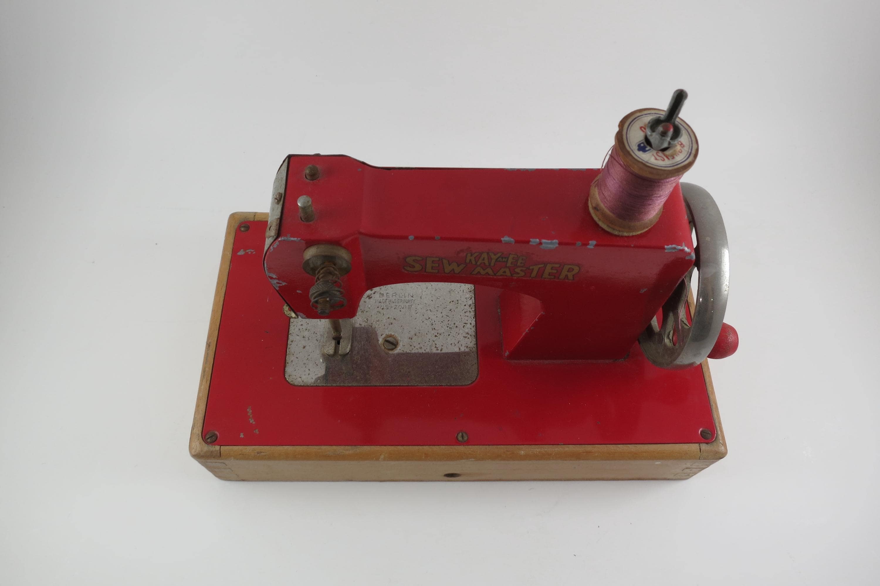 Vintage Mid Century Kay-AN-EE Sew Master Child's Sewing Machine In Red.