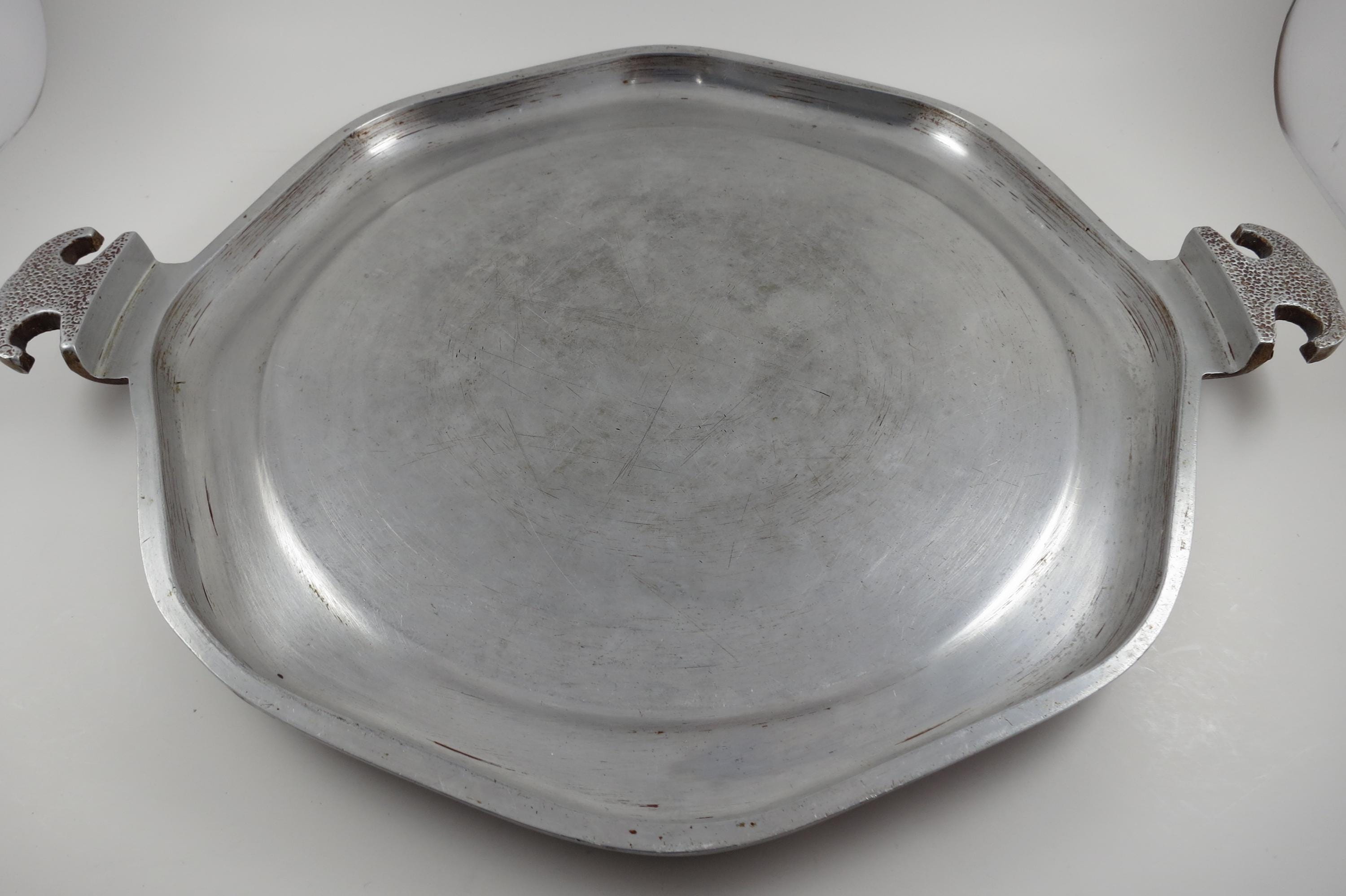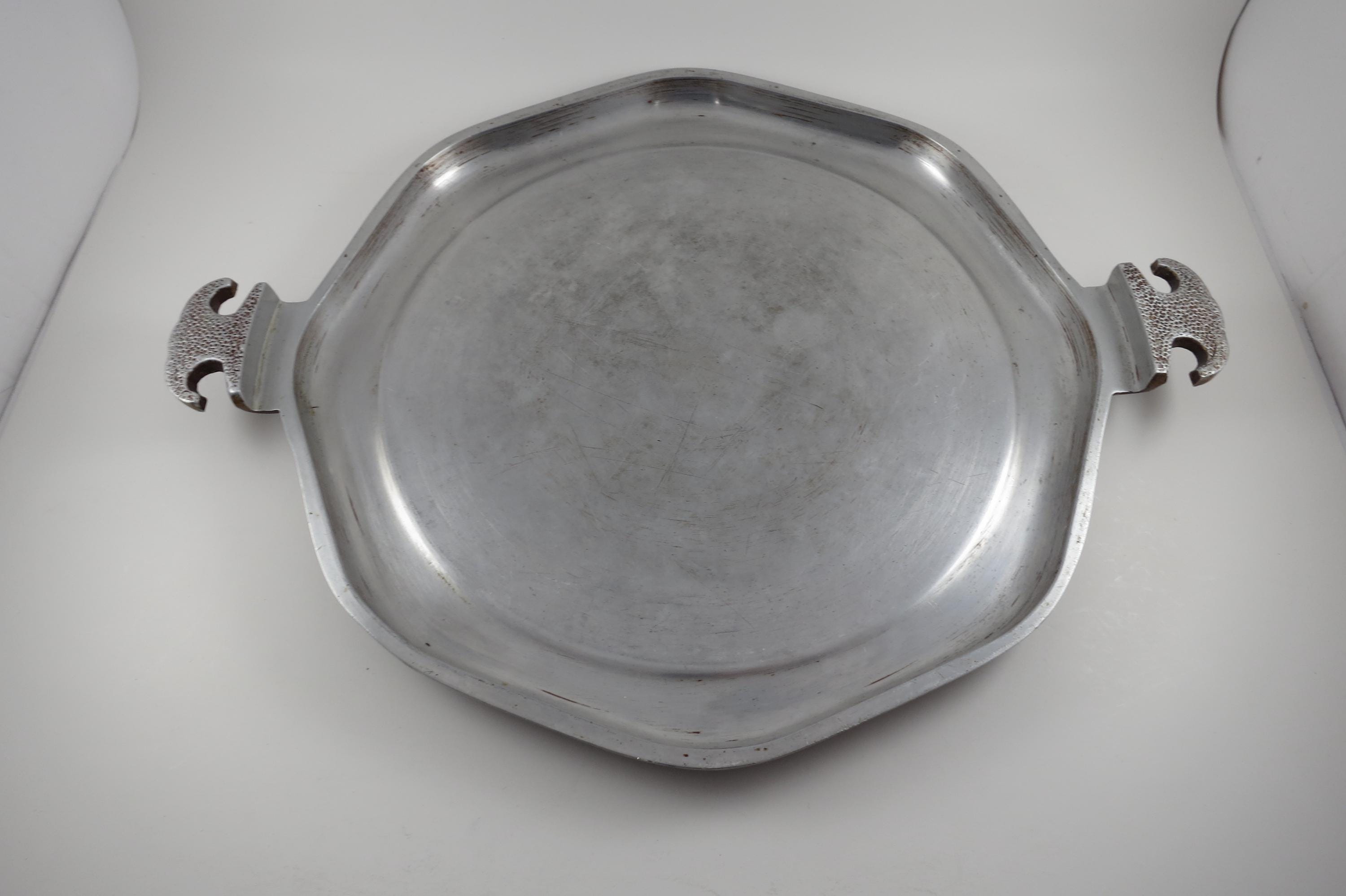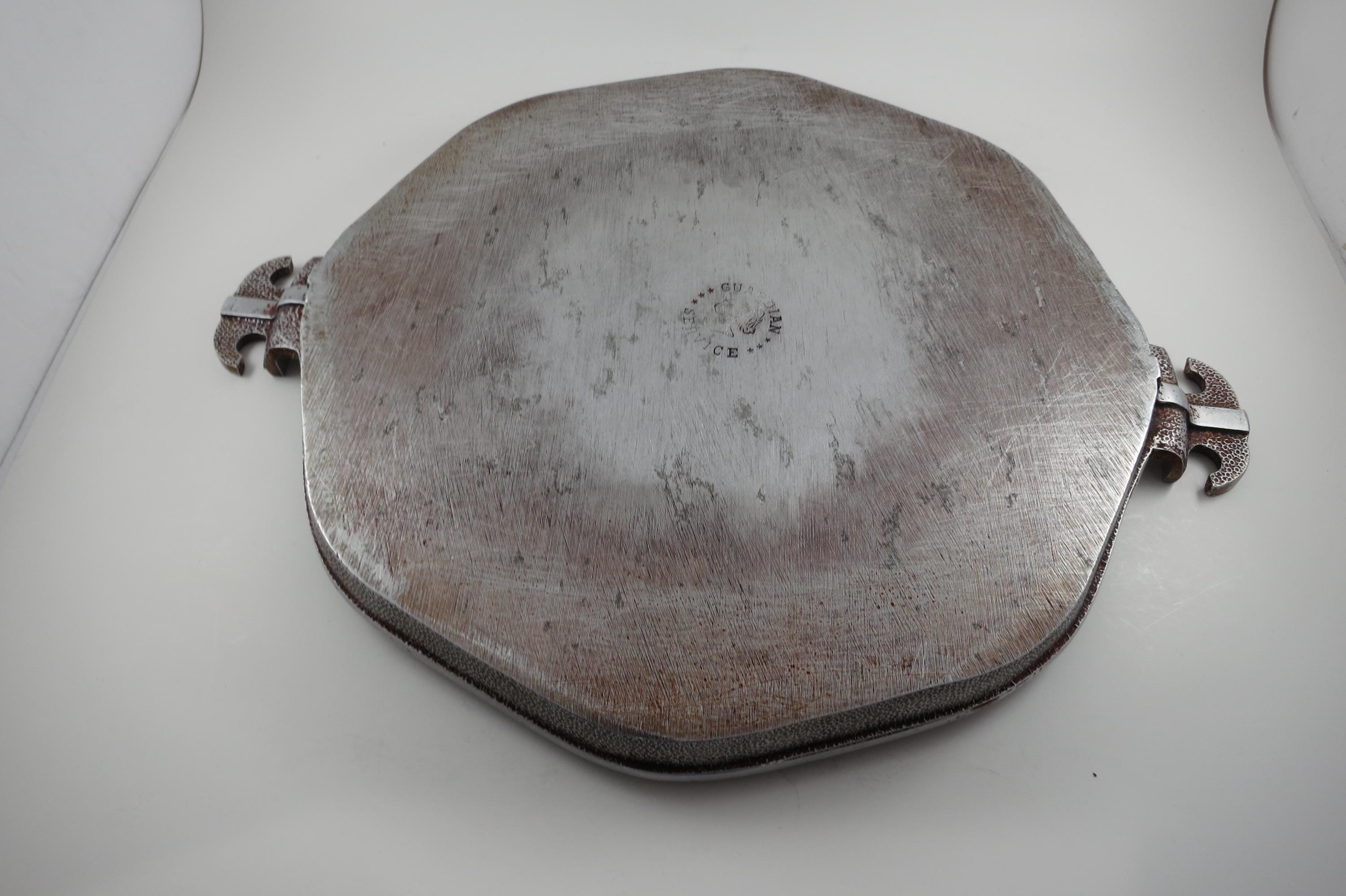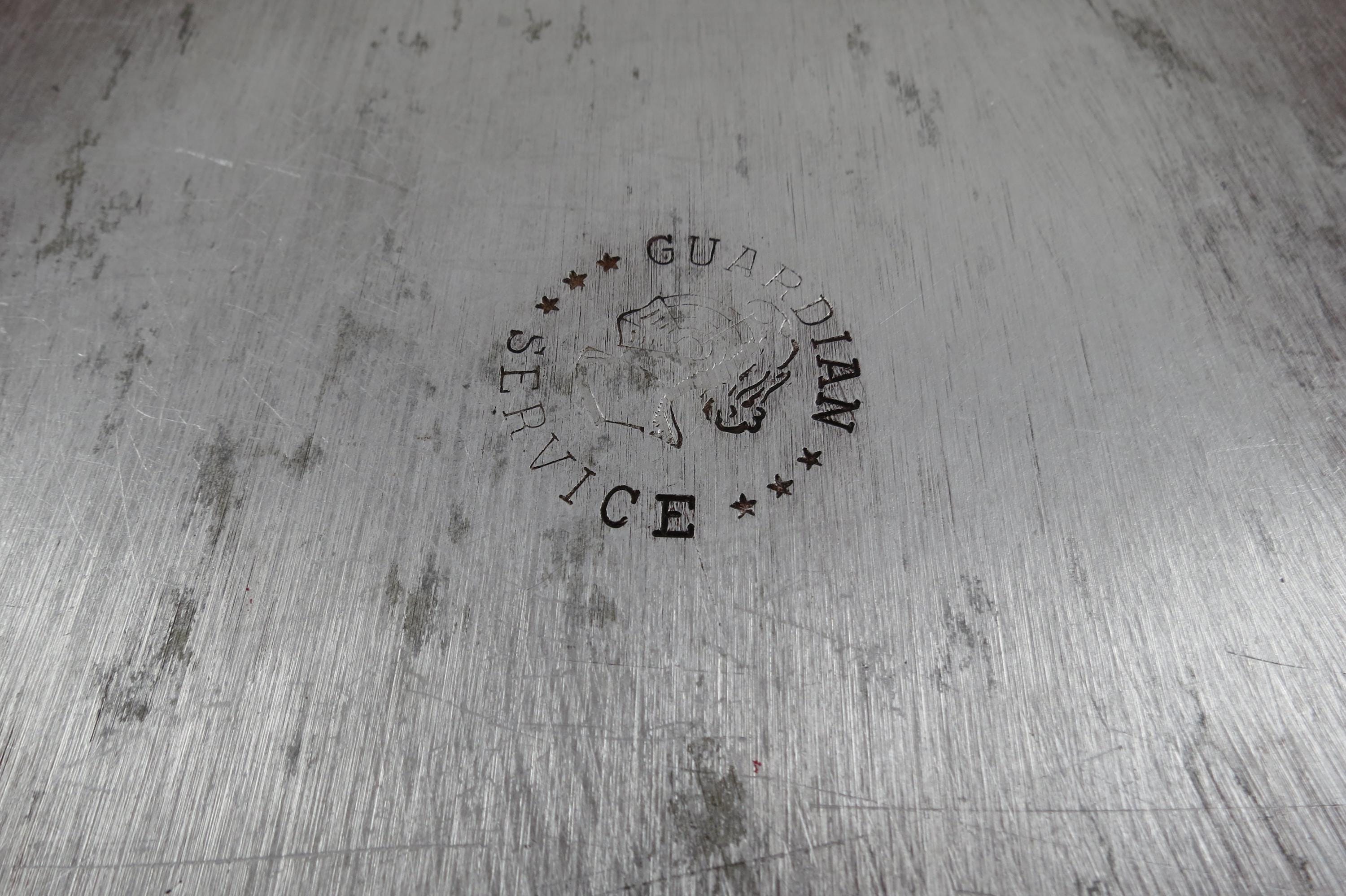 Vintage MCM Guardian Service Cookware Hammered Aluminum 3 Piece Set Tray Roaster Glass Lid.
